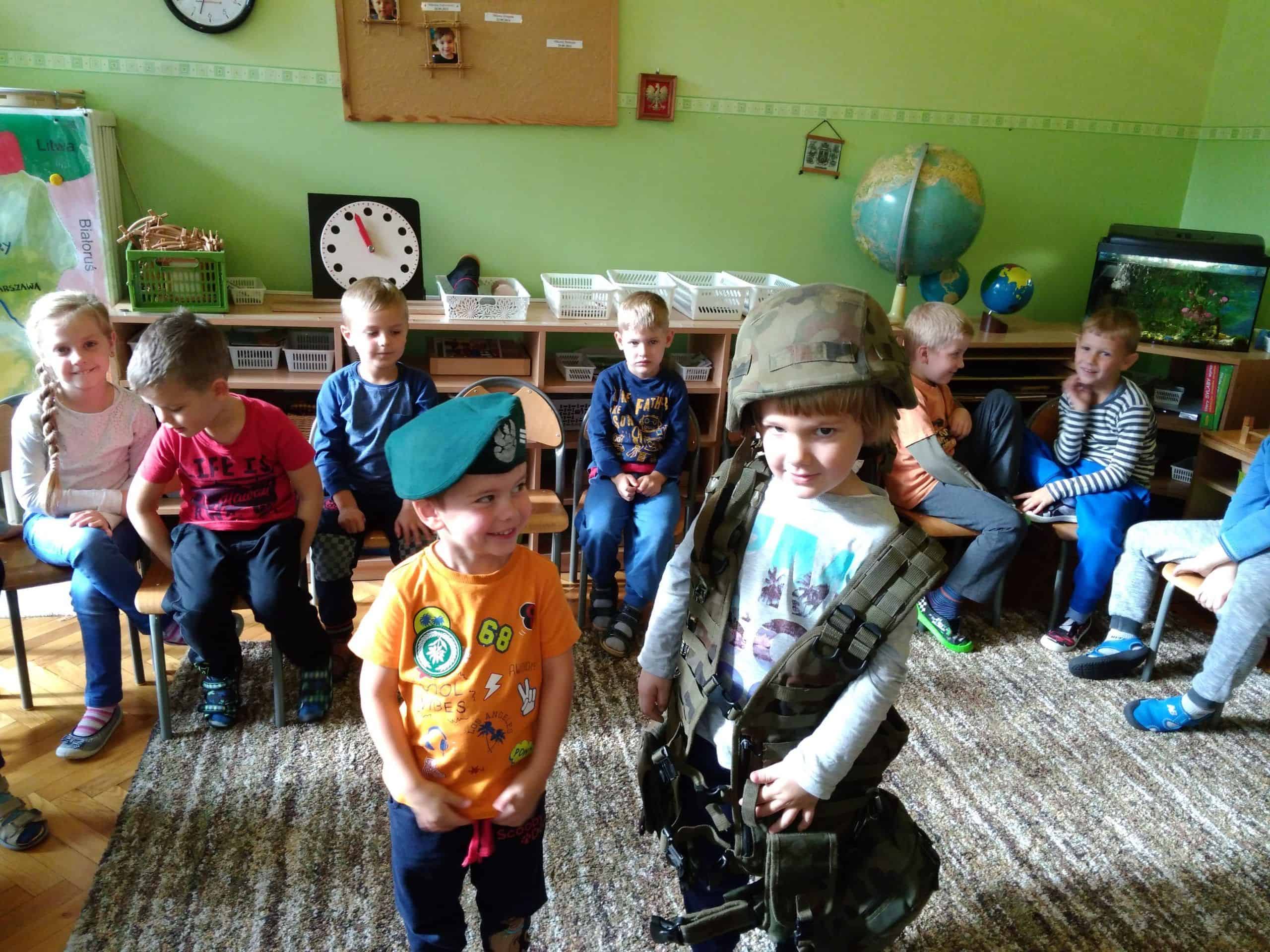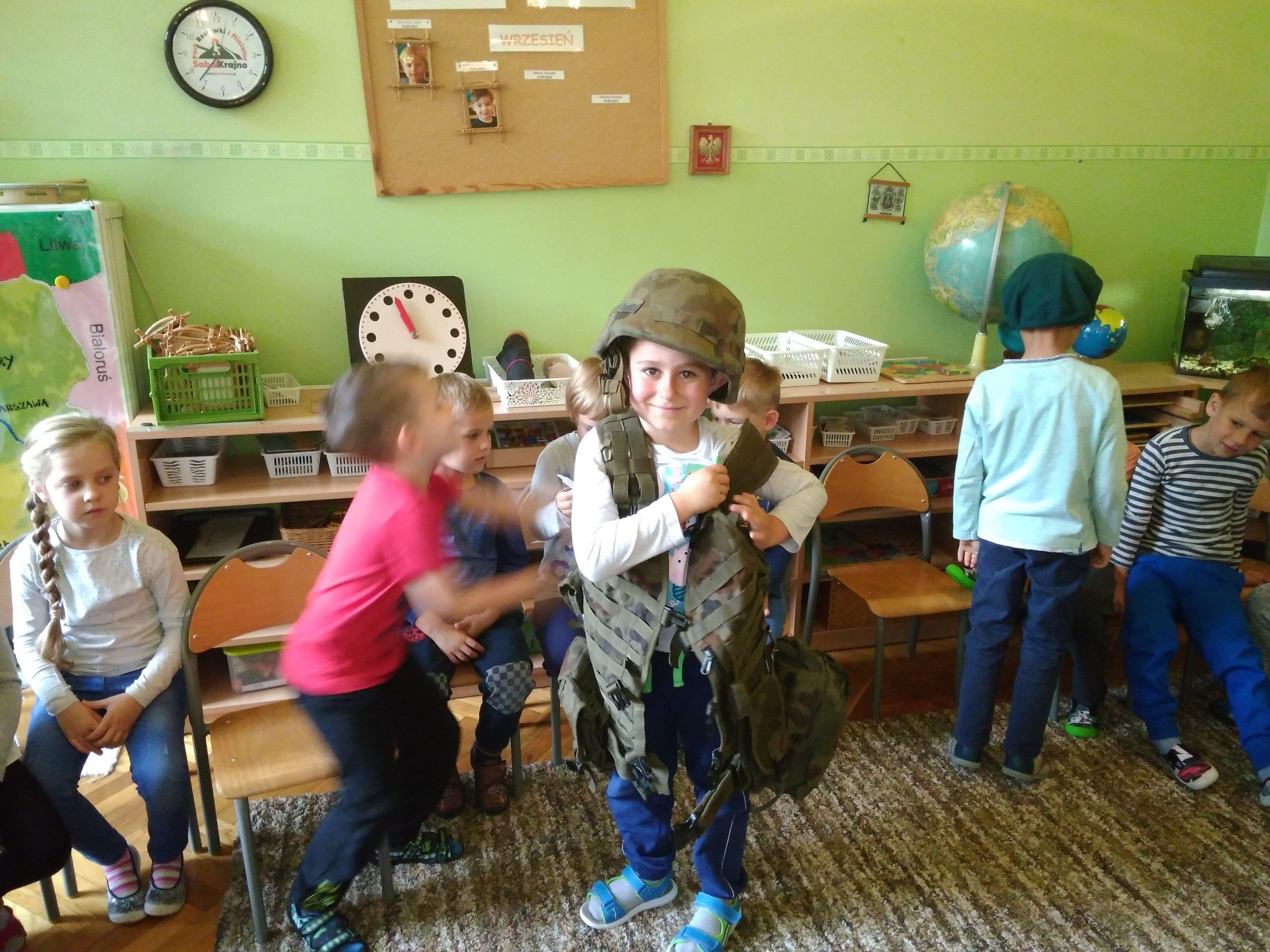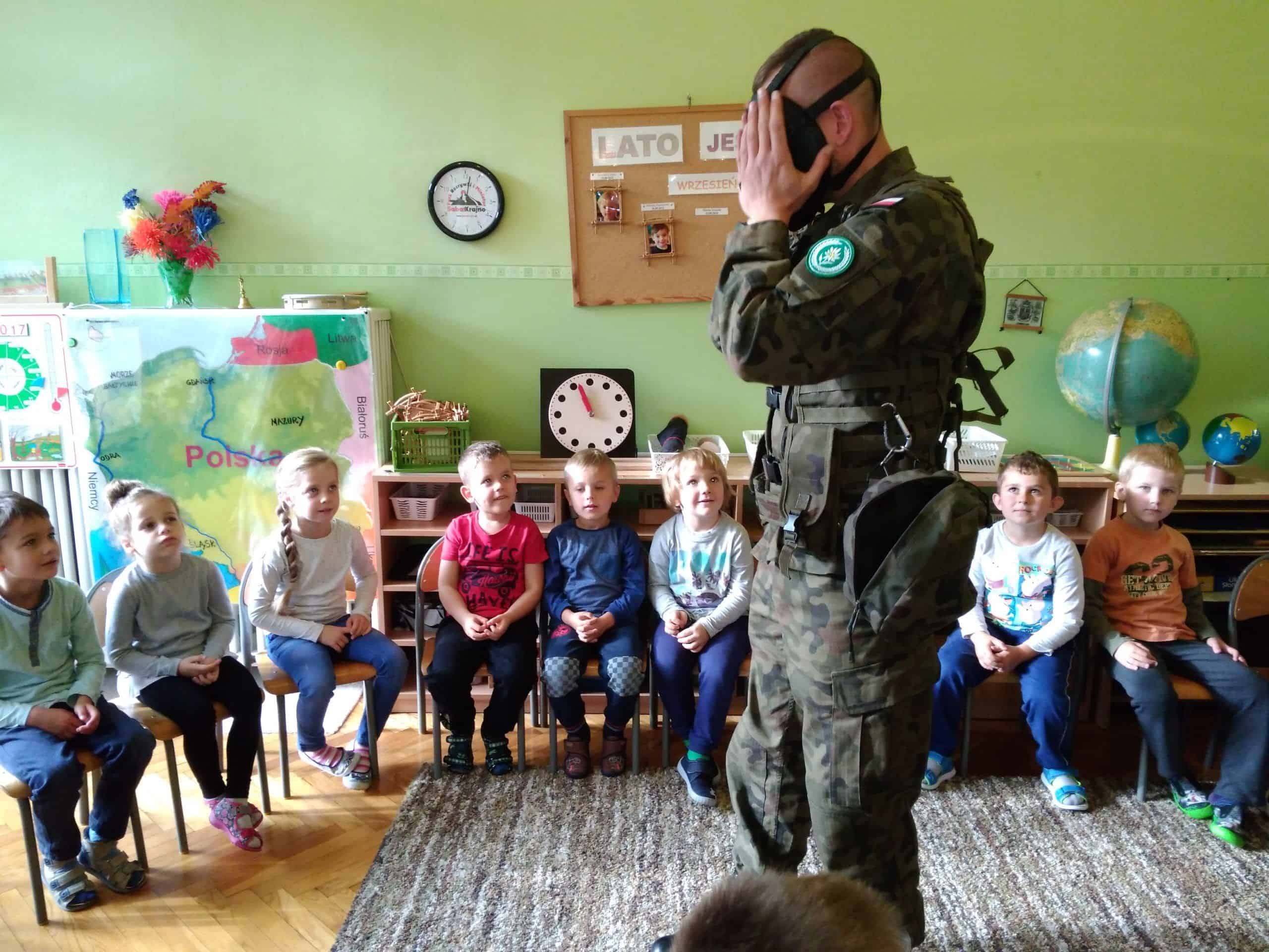 Podczas wizyty opowiedział przedszkolakom o swojej służbie, zaprezentował mundur polowy, oraz pokazał podręczne wyposażenie żołnierza. Każdy mógł sprawdzić jak ciężki jest hełm, jak oddycha się w masce przeciwgazowej, i kiedy używa się noktowizora.