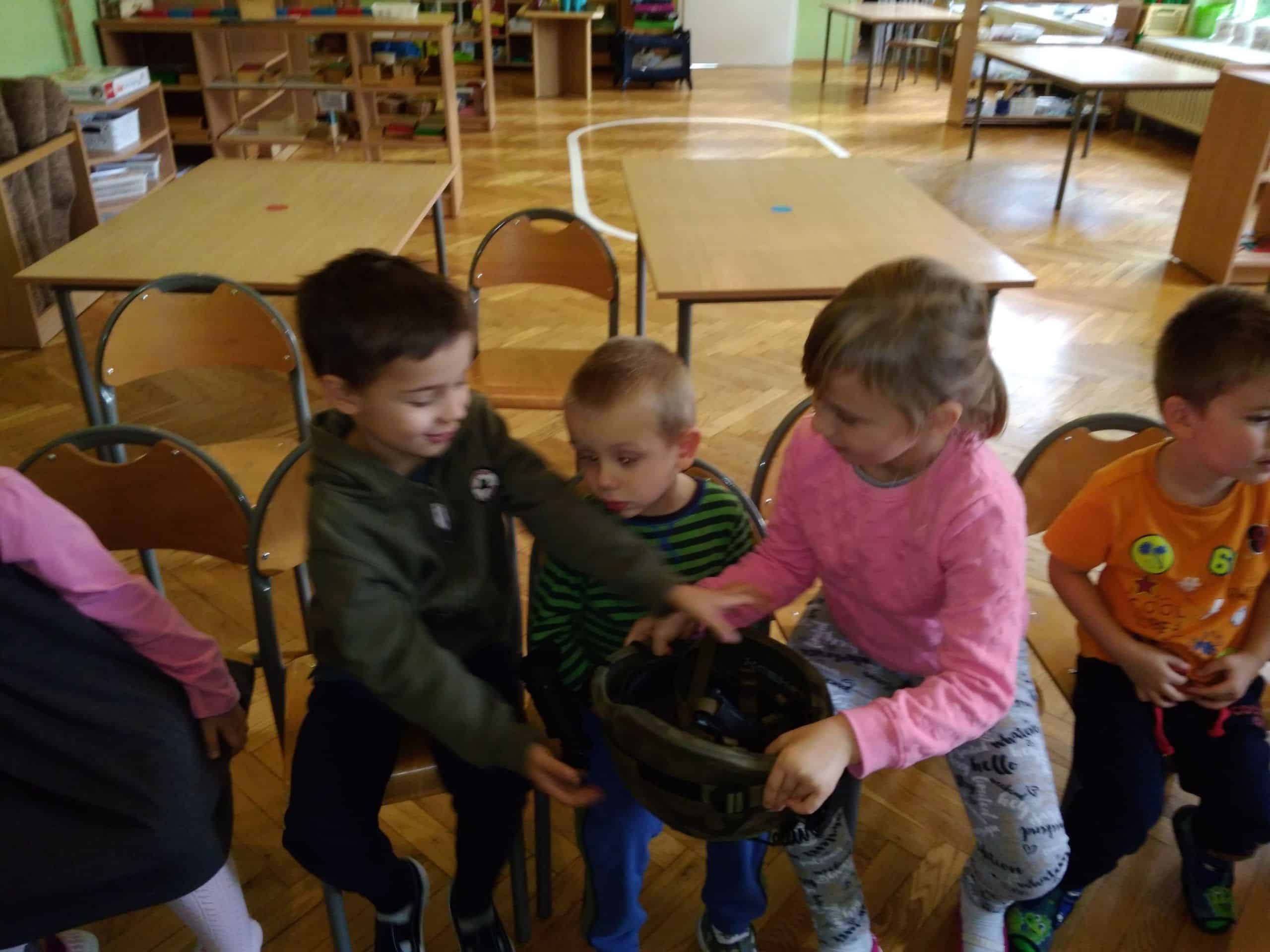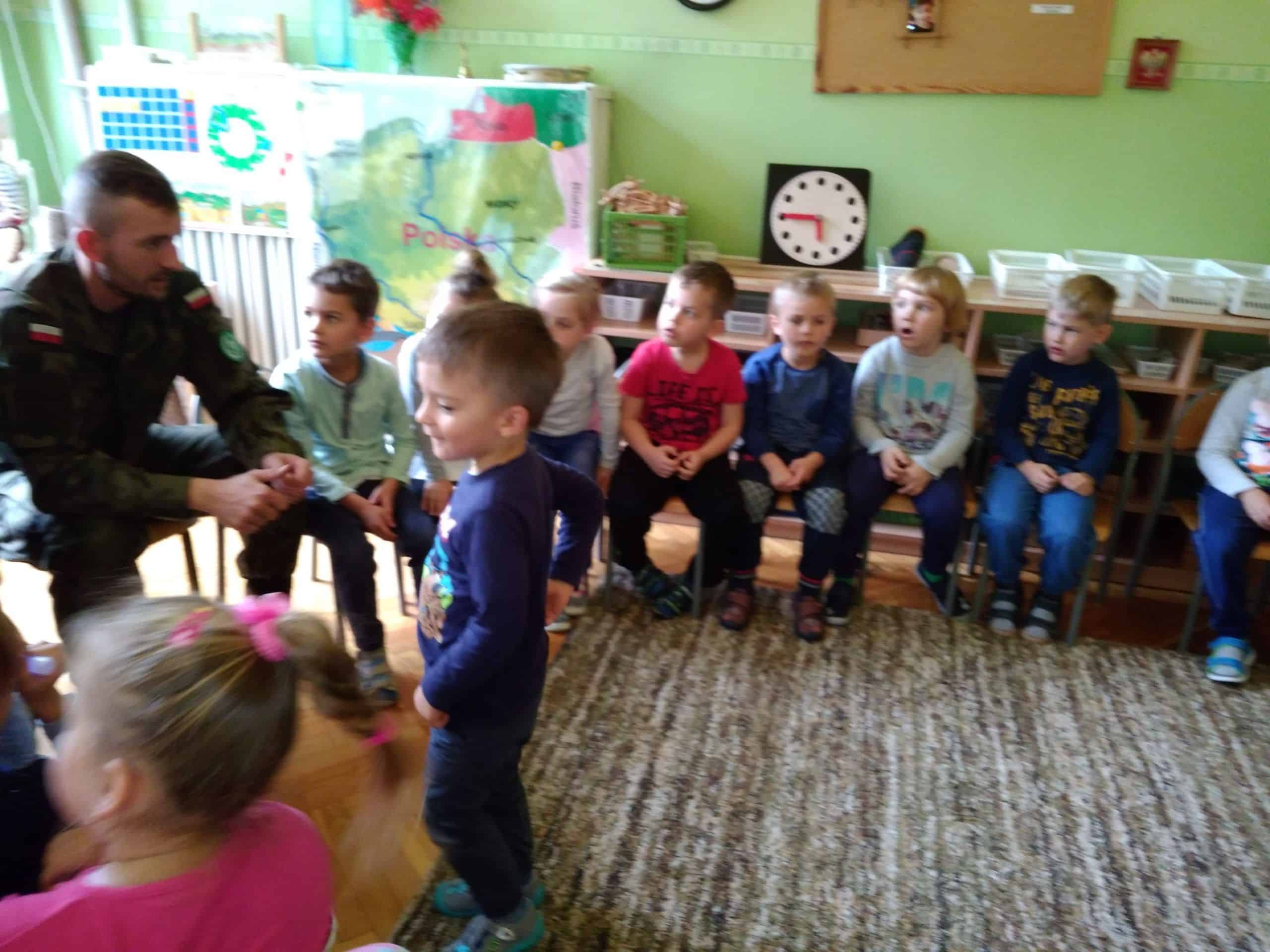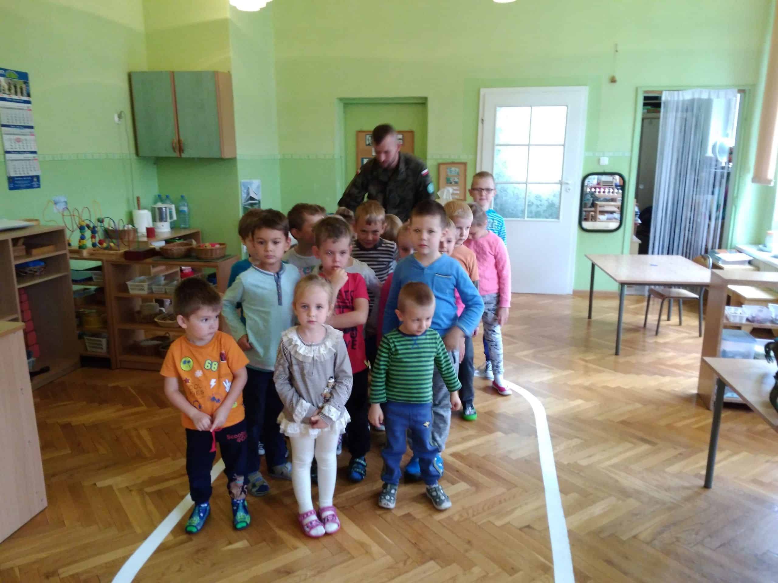 Podczas wizyty opowiedział przedszkolakom o swojej służbie, zaprezentował mundur polowy, oraz pokazał podręczne wyposażenie żołnierza. Każdy mógł sprawdzić jak ciężki jest hełm, jak oddycha się w masce przeciwgazowej, i kiedy używa się noktowizora.
