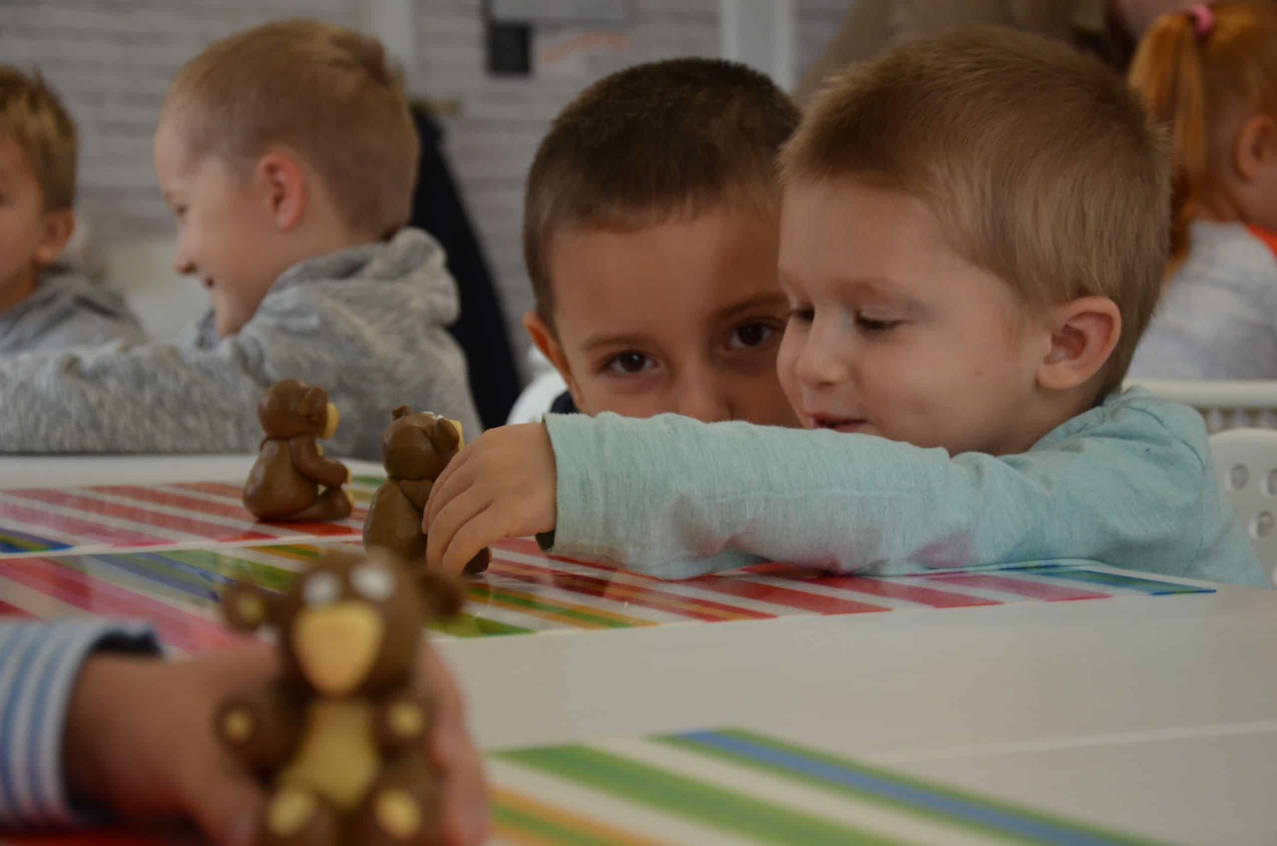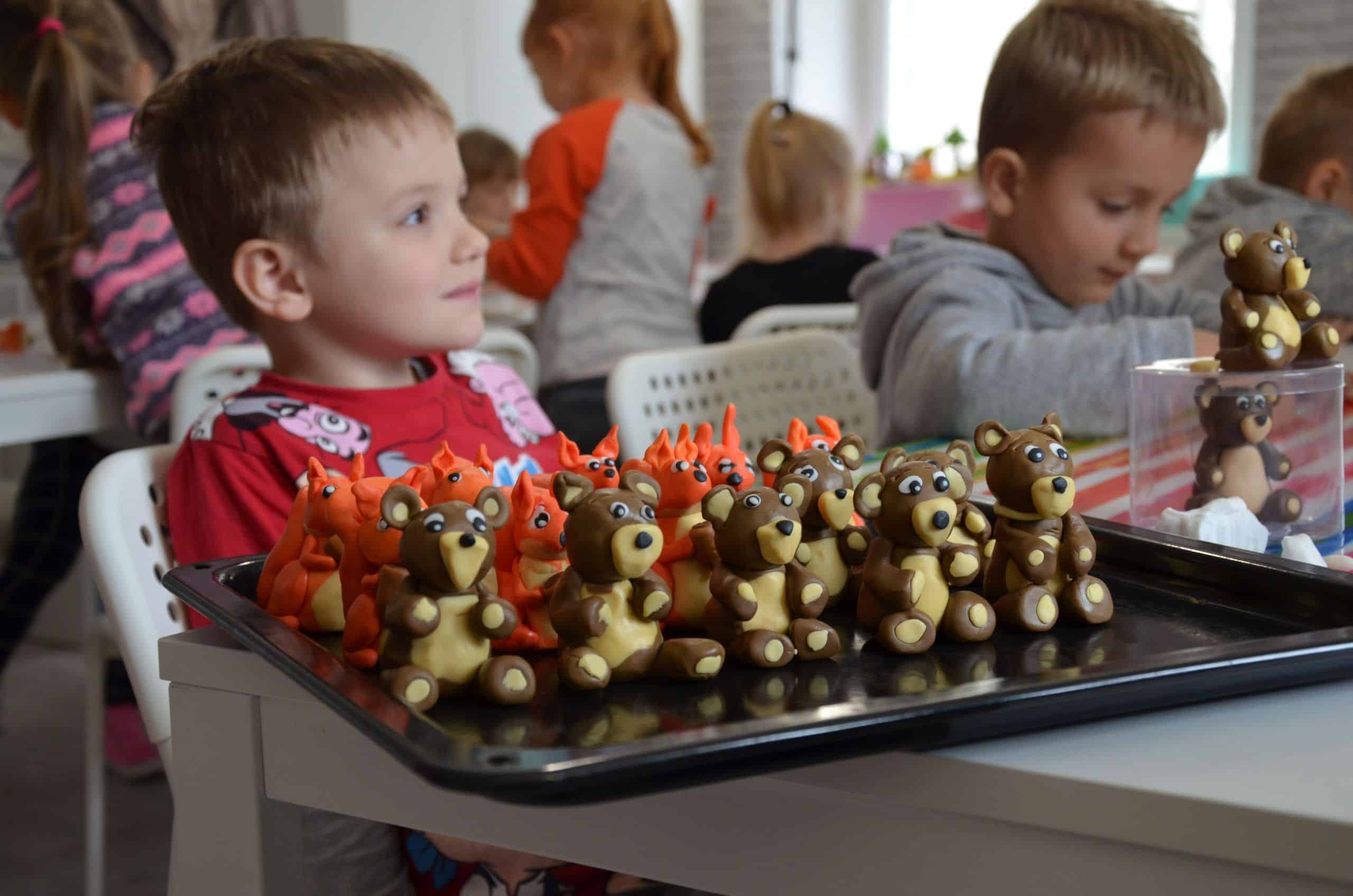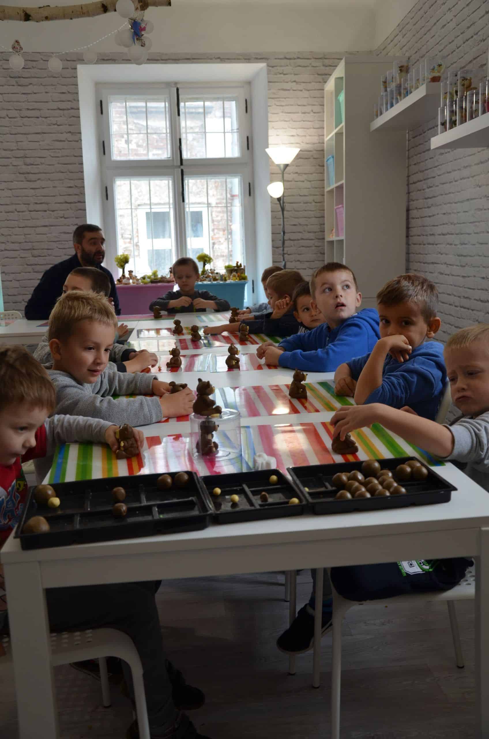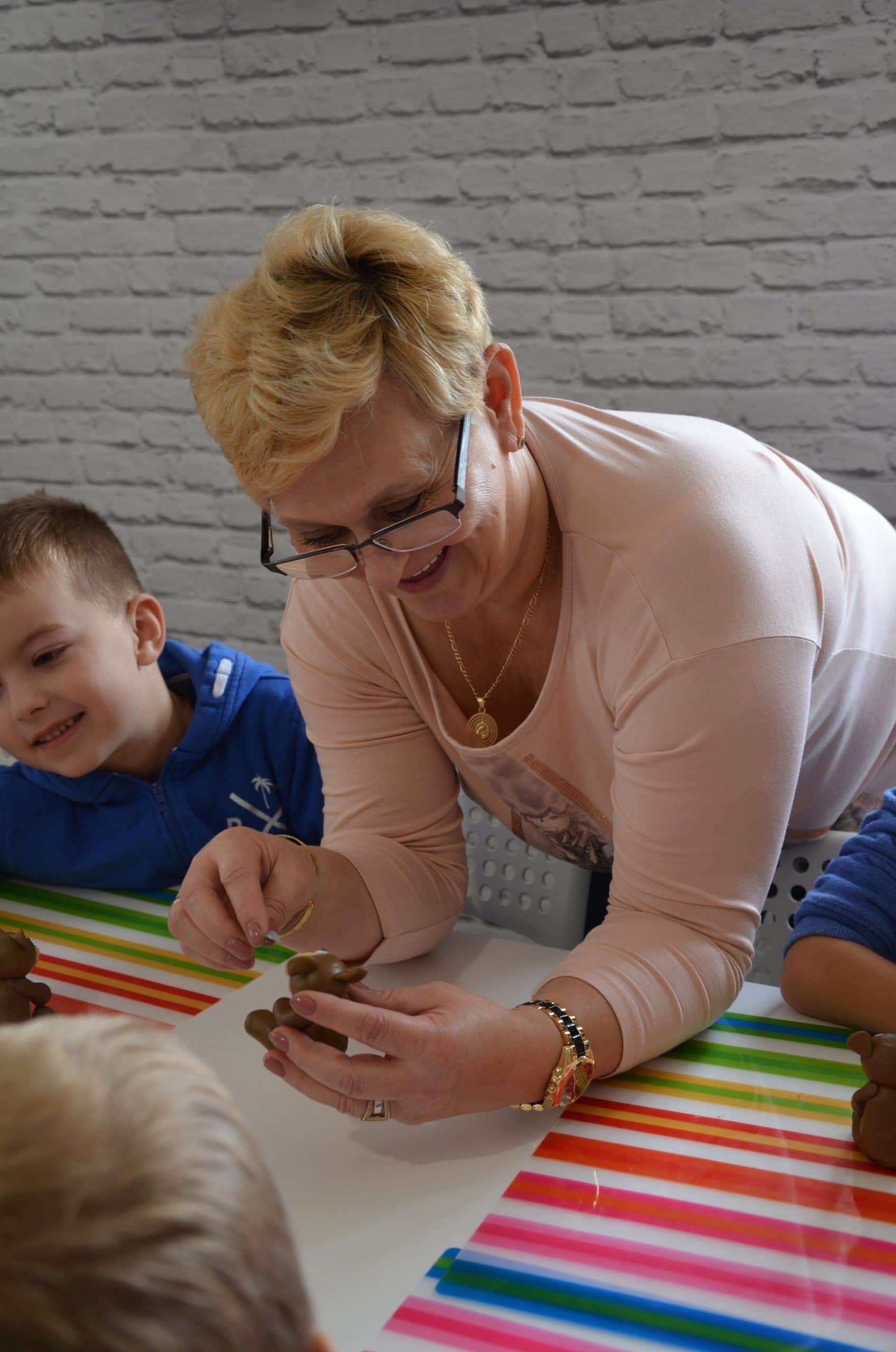 Jest w jarosławskiej kamienicy z podcieniami szczególne miejsce. W nim pan Marcin Kowalczuk (nauczyciel matematyki z zawodu i artysta z powołania)prowadzi zajęcia plastyczne dla dzieci i  młodzieży. Tuż po wejściu do  jego pracowni zauważyłam bogate w formy i w barwy figurki z modeliny, które pan Marcin w swojej pracowni zaprezentował w kilku ciekawych ekspozycjach. Przyznam, że trudno było mi od nich oderwać oczy. Oglądając to pełne artyzmu otoczenie zyskałam przekonanie, że oferta, którą pan Marcin kieruje do najmłodszych, ich rodziców i nauczycieli jest godna uwagi. Przekonana o pożytkach płynących z uczestniczenia dzieci  w spotkaniach plastycznych w zabytkowej kamienicy w Jarosławiu zorganizowałam wspólnie z koleżankami oraz rodzicami wycieczkę dzieci z grupy Niebieskiej do „Figli Migli”. Było warto. O tym jak było najlepiej opowiedzą fotografie.