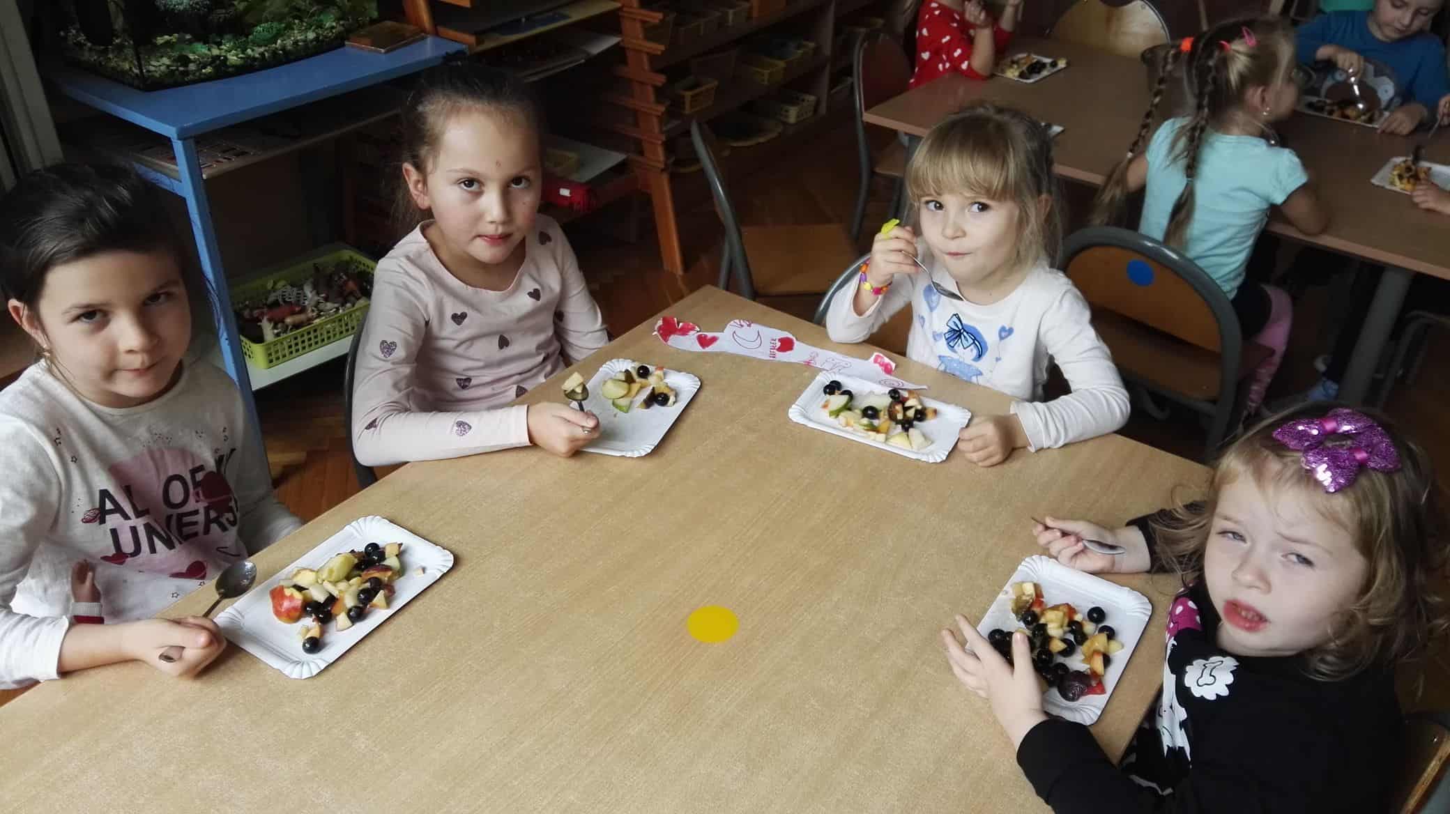 Wycieczka na ogródki działkowe okazała się atrakcyjną formą edukacji ekologicznej. Jesienne miesiące to bardzo dobry czas na wspólną obserwację zmian zachodzących w przyrodzie, a w związku z tym przygotowań do nadejścia zimy. Zwrócili uwagę na prace ogrodnicze wykonywane o tej porze roku gdyż jak wszyscy wiemy początek jesieni to czas zbioru warzyw wysianych wiosną takich jak marchew, kapusta, seler, buraki i fasola. Dzieci dowiedziały się, że uprawiając swój własny ogródek warzywny jesteśmy w stanie poradzić sobie bez często szkodliwej i nie ekologicznej chemii a najbardziej wartościowym nawozem organicznym jest obornik. Zwróciliśmy uwagę dzieci na miejsce położenia ogródków działkowych z dala od jezdni i samochodów, które to zanieczyszczają powietrze. Dzieci wzbogaciły swoja wiedzę o znaczenie nowych pojęć tj.: nawozy, warunki uprawy, ogródek działkowy, kopanie, sadzenie, plony, grabienie, ekologiczne warzywa i owoce, witaminy. Dzieci wiedzą, że owoce i warzywa są źródłem witamin, a najzdrowsze są te z działki, wyhodowane bez sztucznych nawozów, w związku z czym wspólnie przygotowaliśmy sałatkę owocowa z przyniesionych owoców z własnych upraw działkowych.