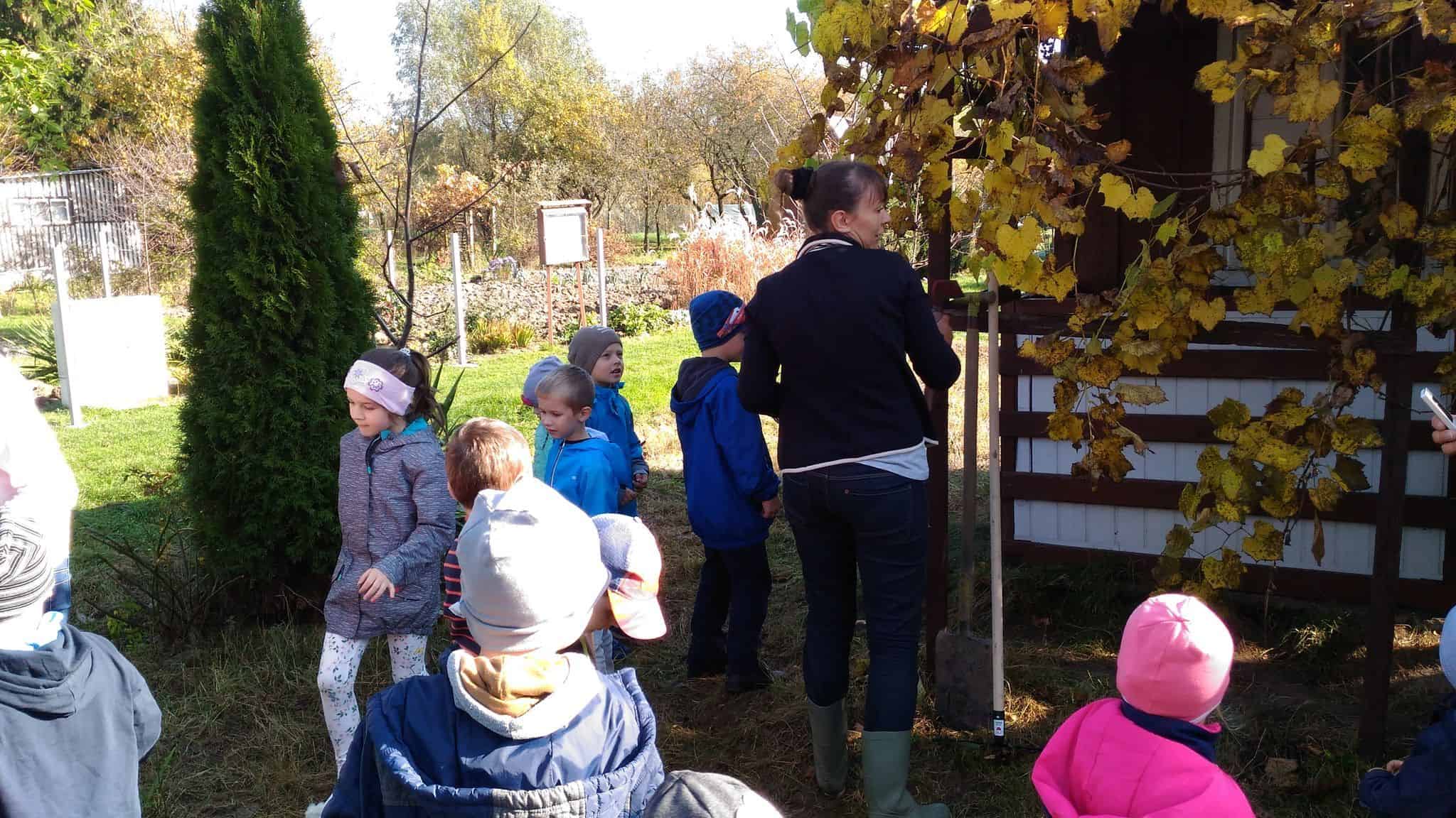 Podczas zajęć dzieci zdobywały wiedze na temat roli działki w życiu człowieka, uprawy warzyw bez działania nawozów i oprysków chemicznych. Dzieci zapoznały się również z pracami wykonanymi na działce jesienią, poznały narzędzia ogrodnicze i ich rolą.