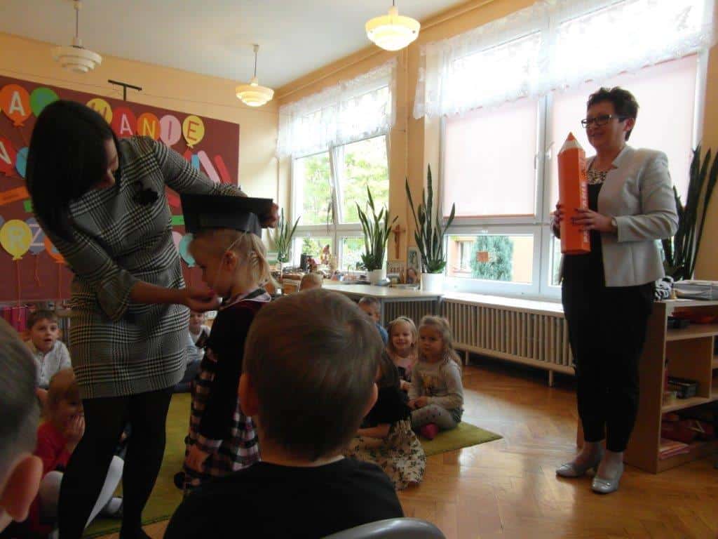 25 października w naszej grupie miało miejsce szczególne wydarzenie – uroczystość pasowania na przedszkolaka. W tym dniu uroczyście do społeczności przedszkolnej zostali włączeni: Marysia, Julia, Natalia, Tymon, Antoś, Gabryś i Kamila. Aktu pasowania dokonała Pani Dyrektor. Uroczystości towarzyszyły piękne wiersze, piosenki, taniec i integracyjna zabawa przy muzyce, a także obecność Rodziców. Na zakończenie uroczystości dzieci otrzymały pamiątkowe dyplomy. Gratulujemy.