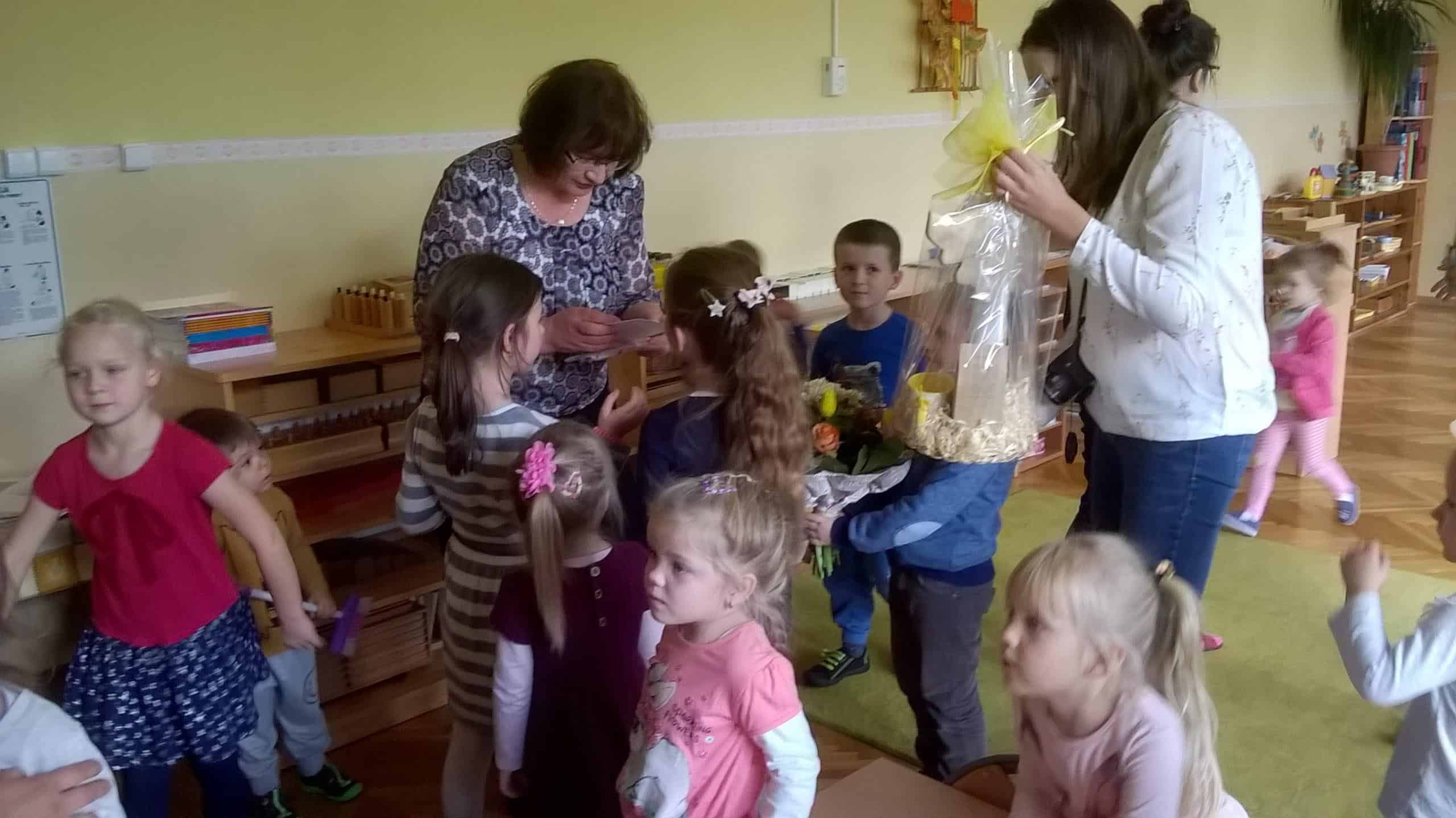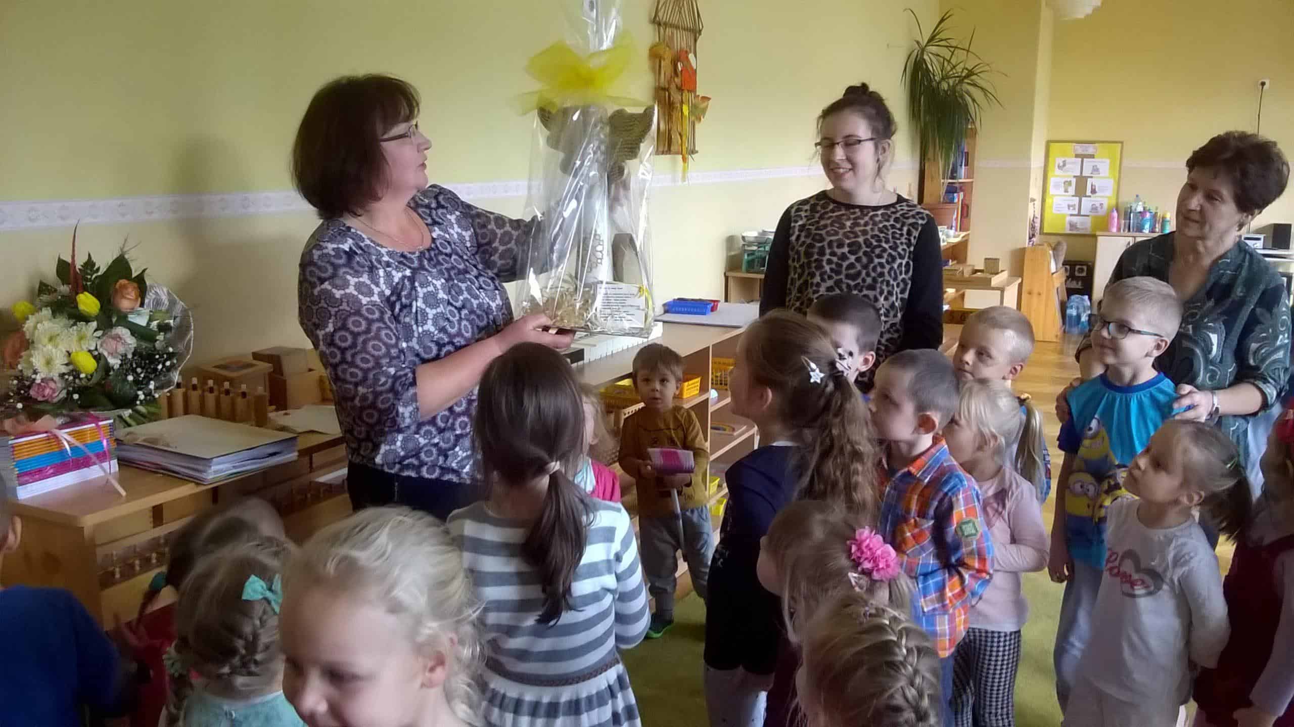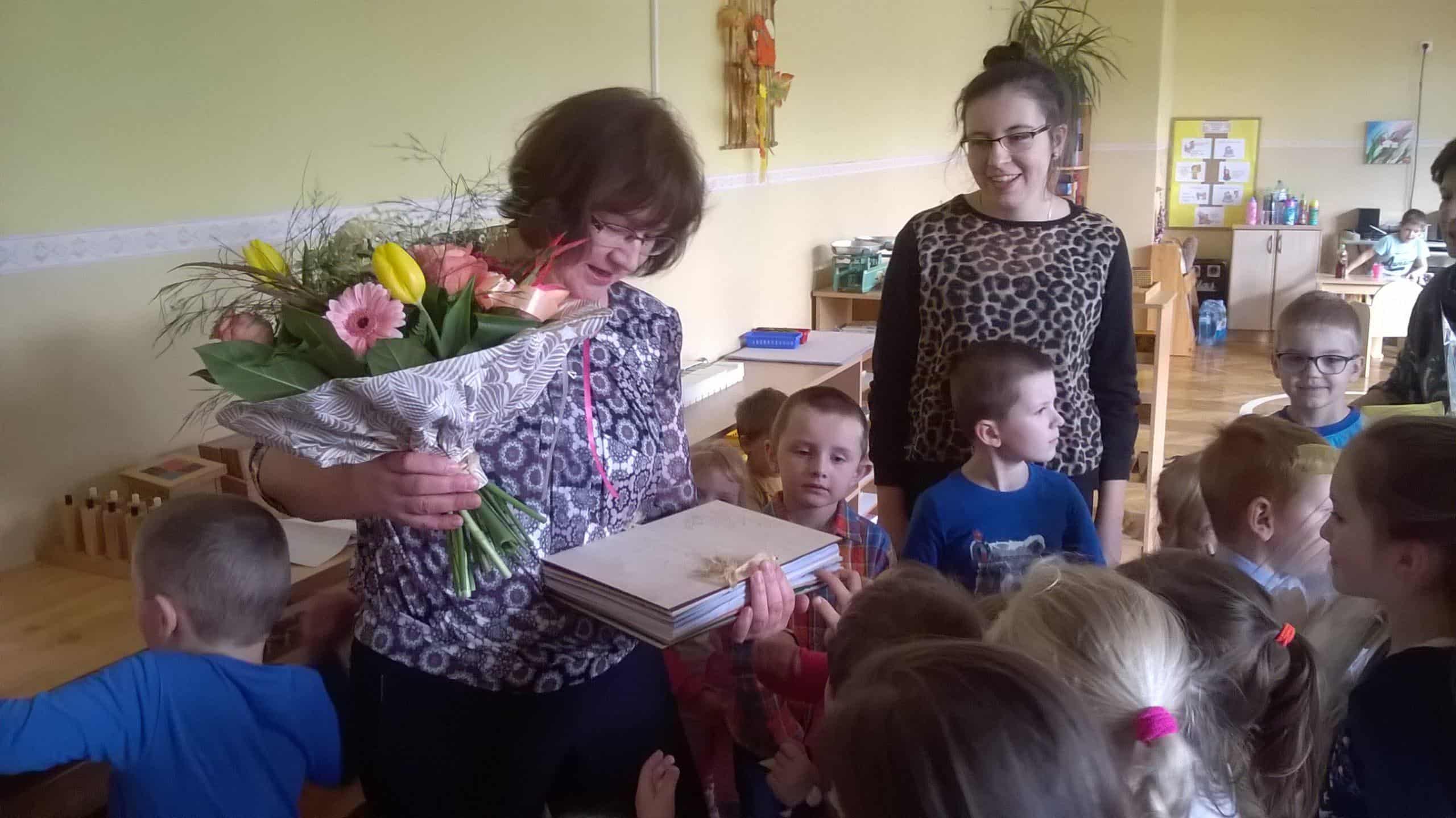 W dniu 30 października pożegnaliśmy odchodzącą na zasłużoną emeryturę Panią Elę Buniowską. W tym dniu dzieci wspólnie z rodzicami przygotowały piękne słowa podziękowania. Dziękując za każdy dzień spędzony z dziećmi w przedszkolu, za cierpliwość, wyrozumiałość, okazałe serce, za pomoc, życząc jednocześnie samych pogodnych dni aby dalsze lata upływały w zdrowiu, radości, szczęściu i spokoju. W dowód wdzięczności dzieci wręczyły Pani Eli bukiet kwiatów i pamiątkowy album, aby w każdej wolnej chwili mogła wrócić wspomnieniami do chwil spędzonych razem. W tym dniu nie zabrakło również wzruszeń oraz symbolicznego sto lat.