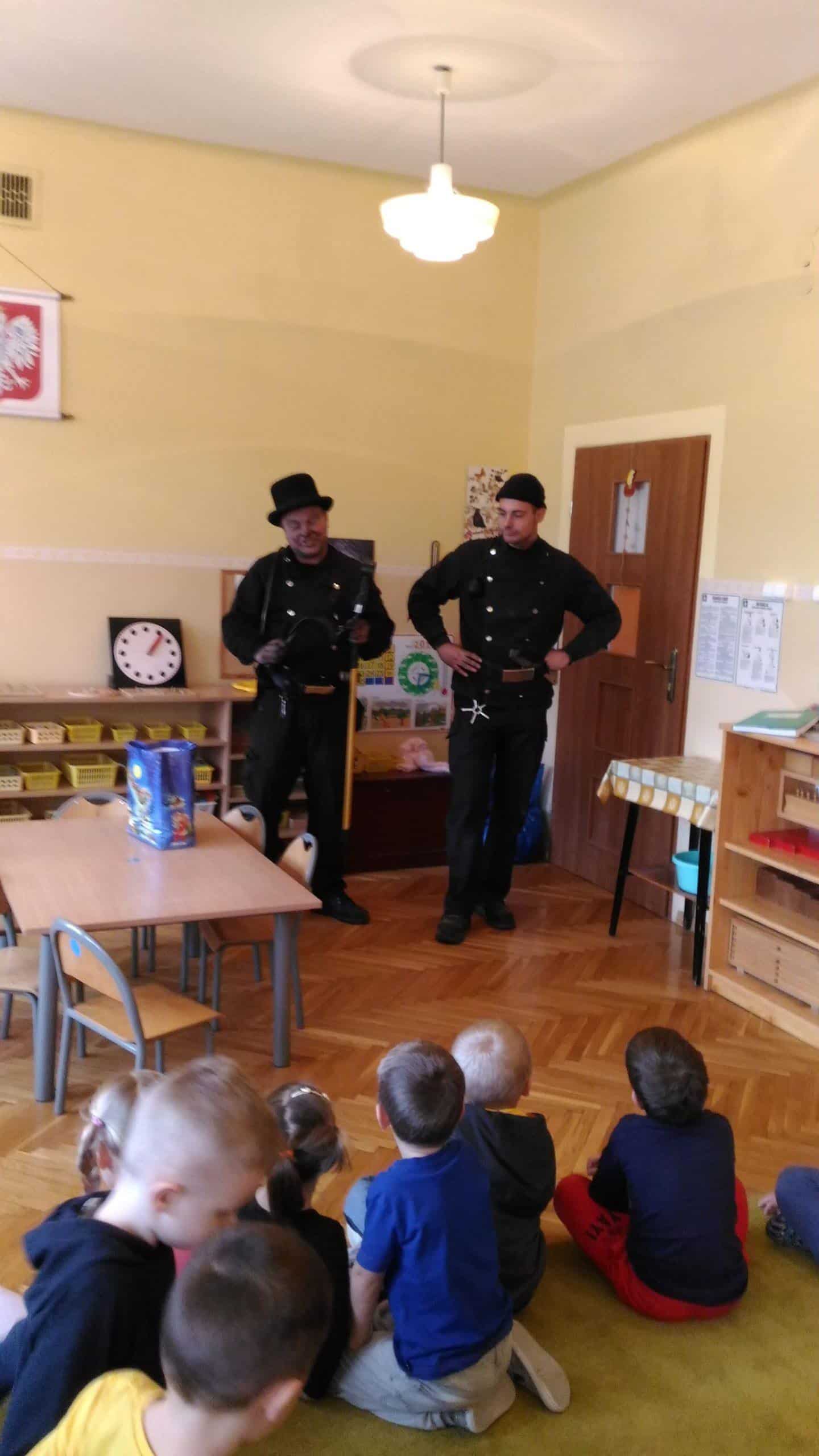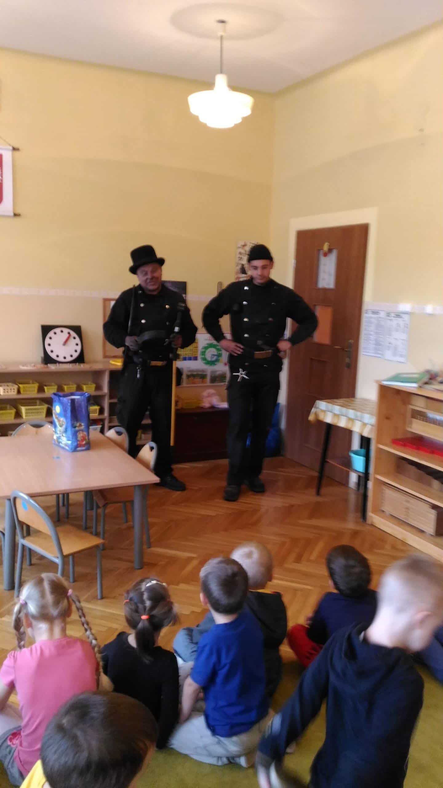 Wizyta tak ważnych gości  wzbudziła ogromne zainteresowanie dzieci. Spotkanie  odbyło się w ramach realizacji treści programowych związanych z profilaktyką i bezpieczeństwem dzieci.