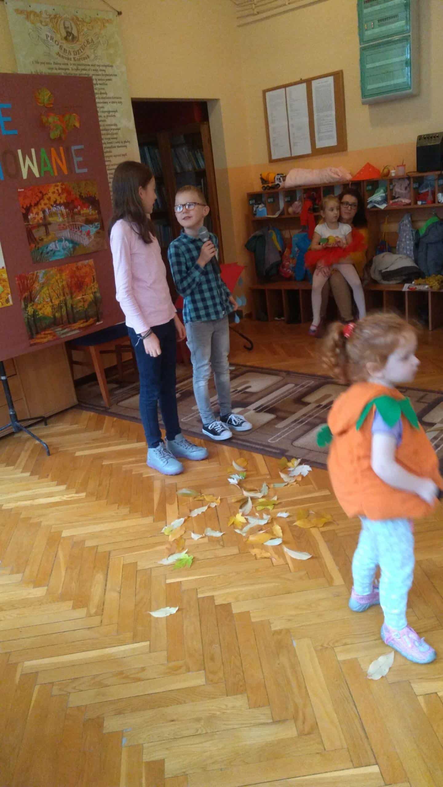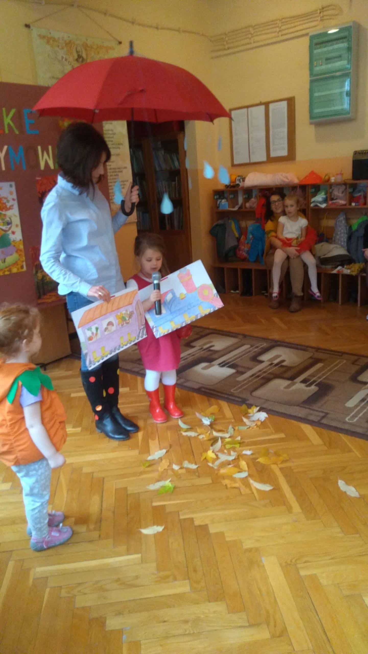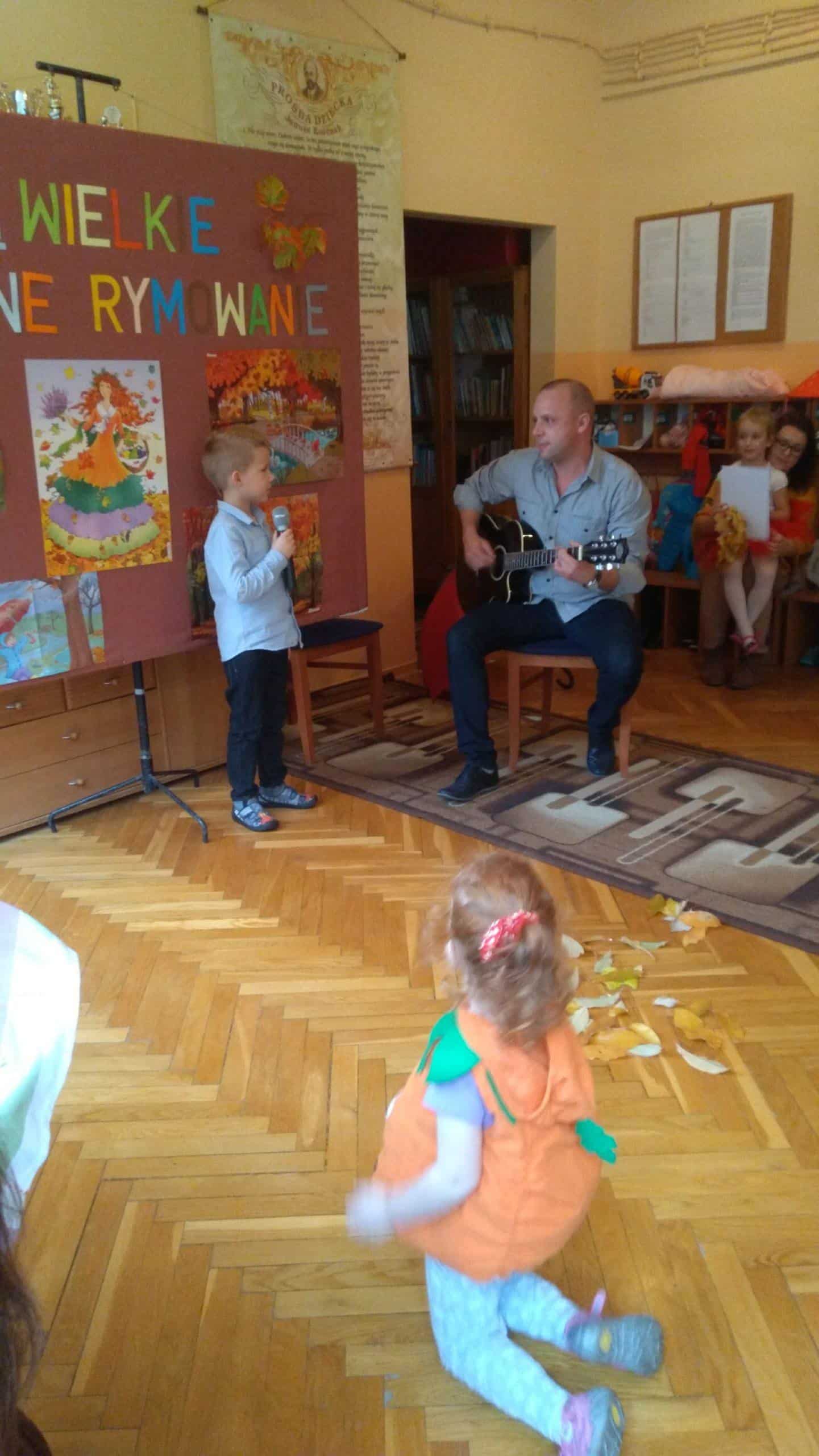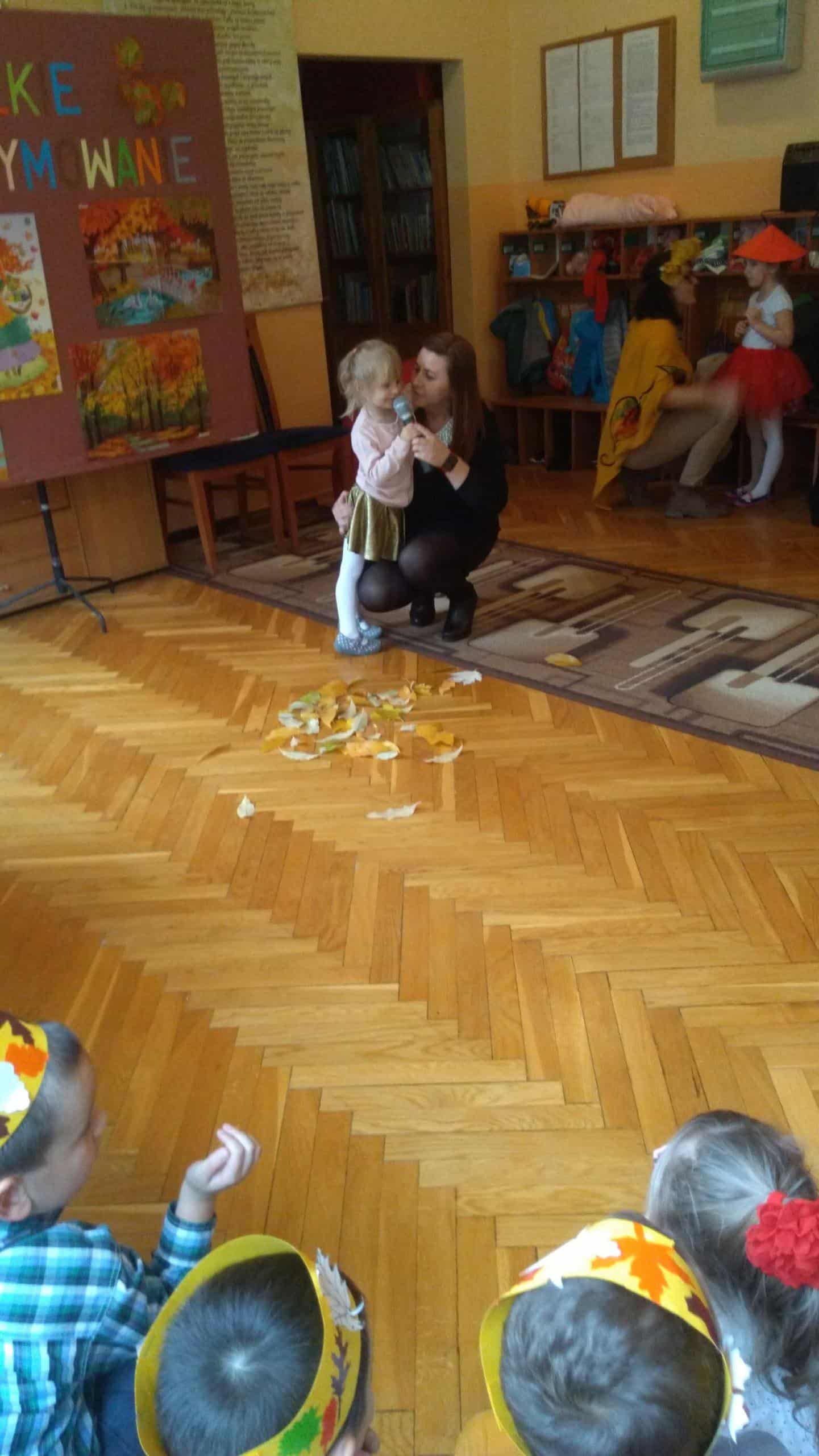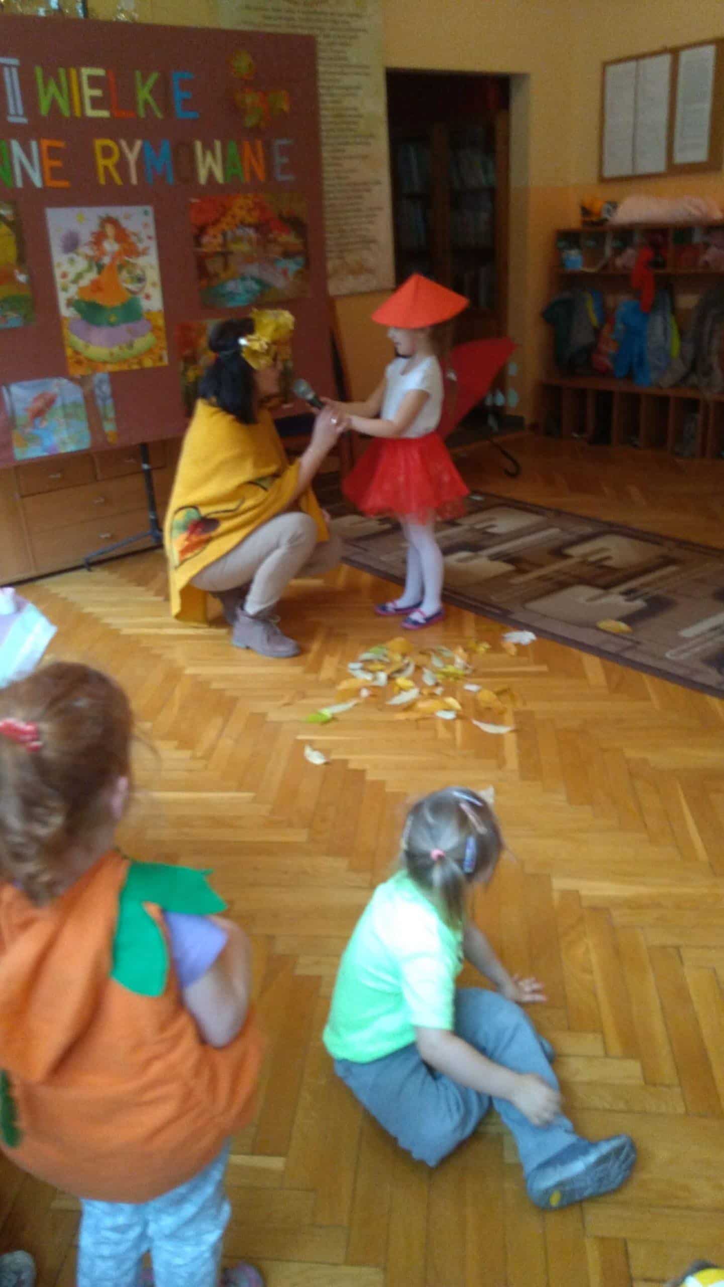 7 listopada w naszym przedszkolu odbyła się druga edycja konkursu pt. „Jesienne Rymowanie”. W wydarzeniu tym brały udział dzieci ze wszystkich grup przedszkolnych, którym partnerowali rodzice, dziadkowie i rodzeństwo. Duet, który zgłosił swoje uczestnictwo w konkursie miał za zadanie przygotować wiersz o tematyce jesiennej i według własnego pomysłu interpretować tekst. Występy uczestników przerosły nasze oczekiwania. Były wielobarwne stroje, ciekawe i dowcipne wiersze a nawet występ muzyczny przy dźwiękach gitary. Wszyscy uczestnicy wypadli doskonale. Mamy nadzieję, że za rok chętnych do wzięcia udziału w naszym konkursie będzie jeszcze więcej. „Jesienne Rymowanie” zakończyło się rozdaniem pamiątkowych dyplomów i pysznych, jesiennych jabłek. Jeszcze raz gratulujemy odwagi i dziękujemy za przyjęcie zaproszenia. Było to bardzo mile i twórczo spędzone południe.