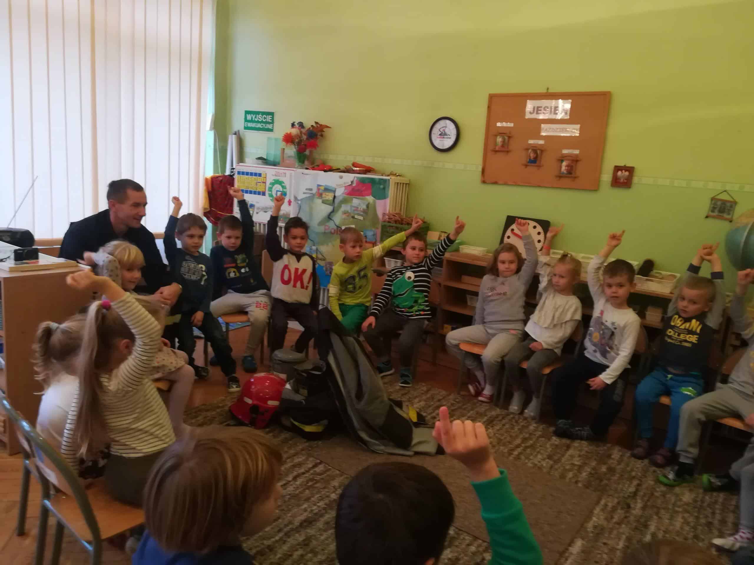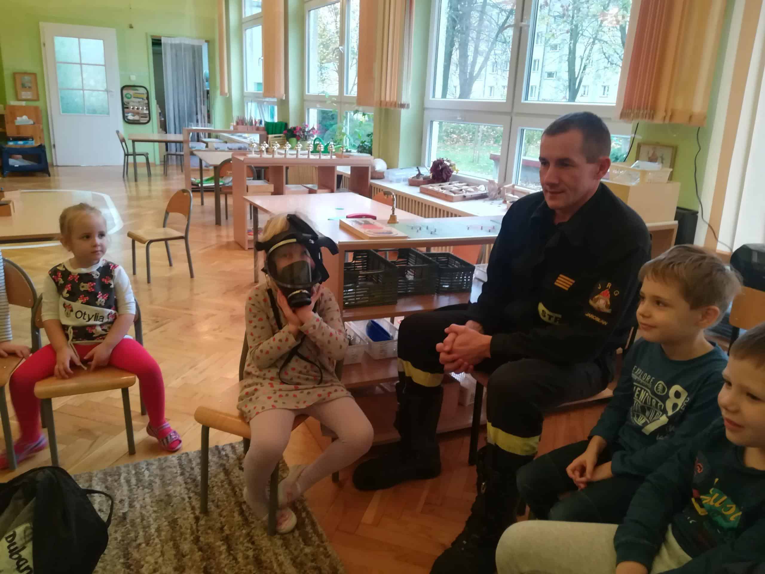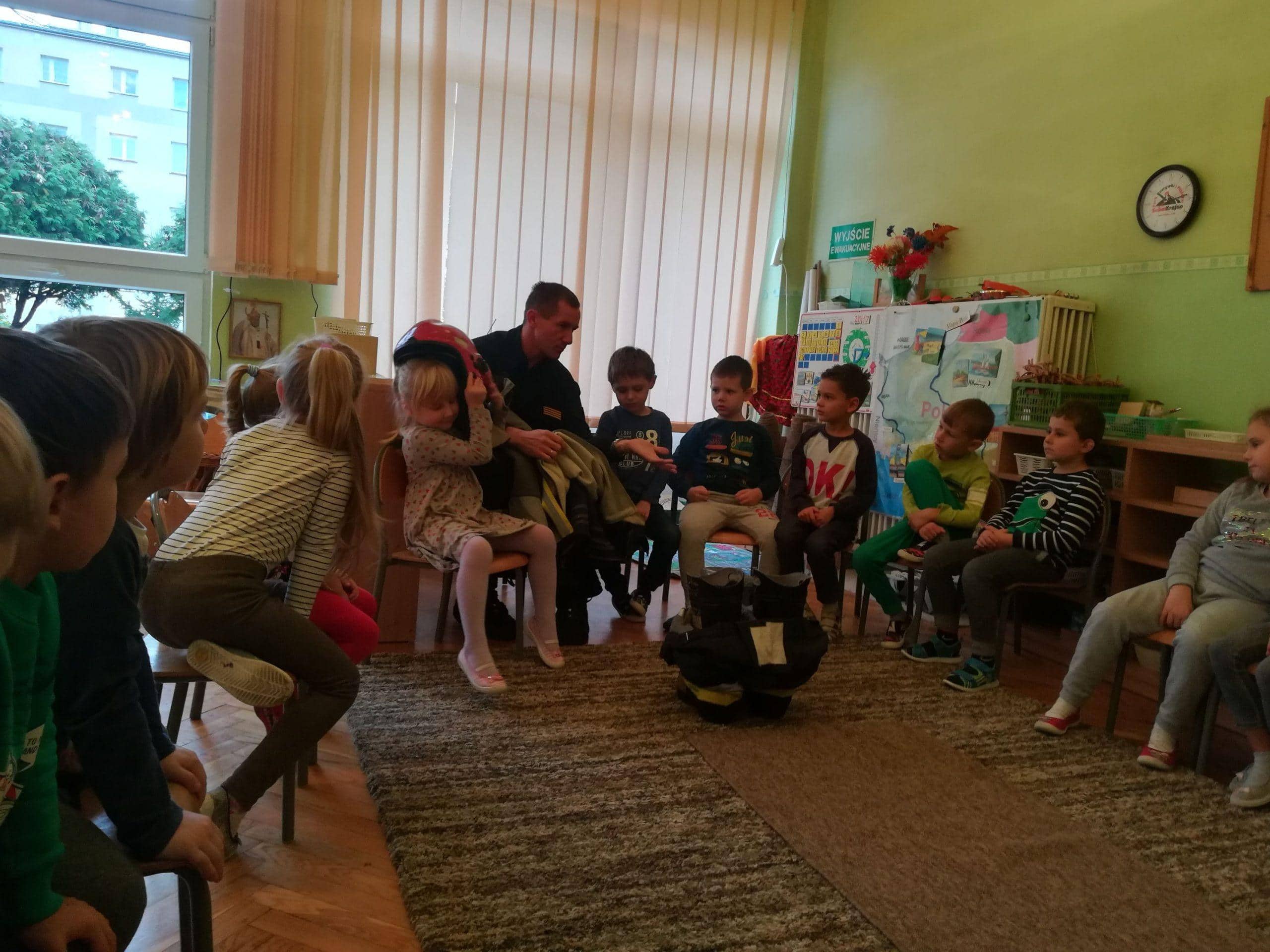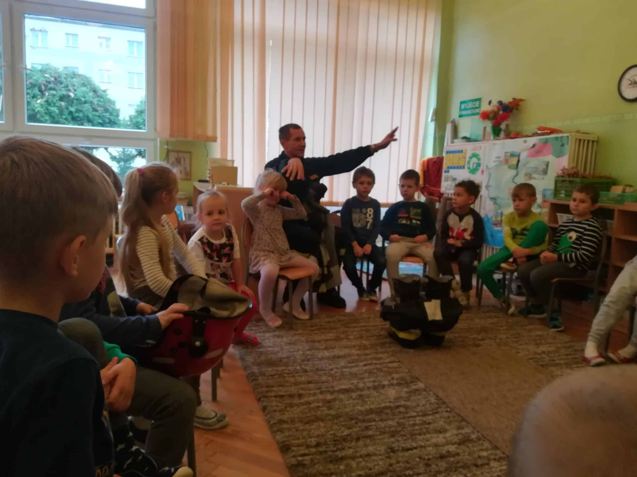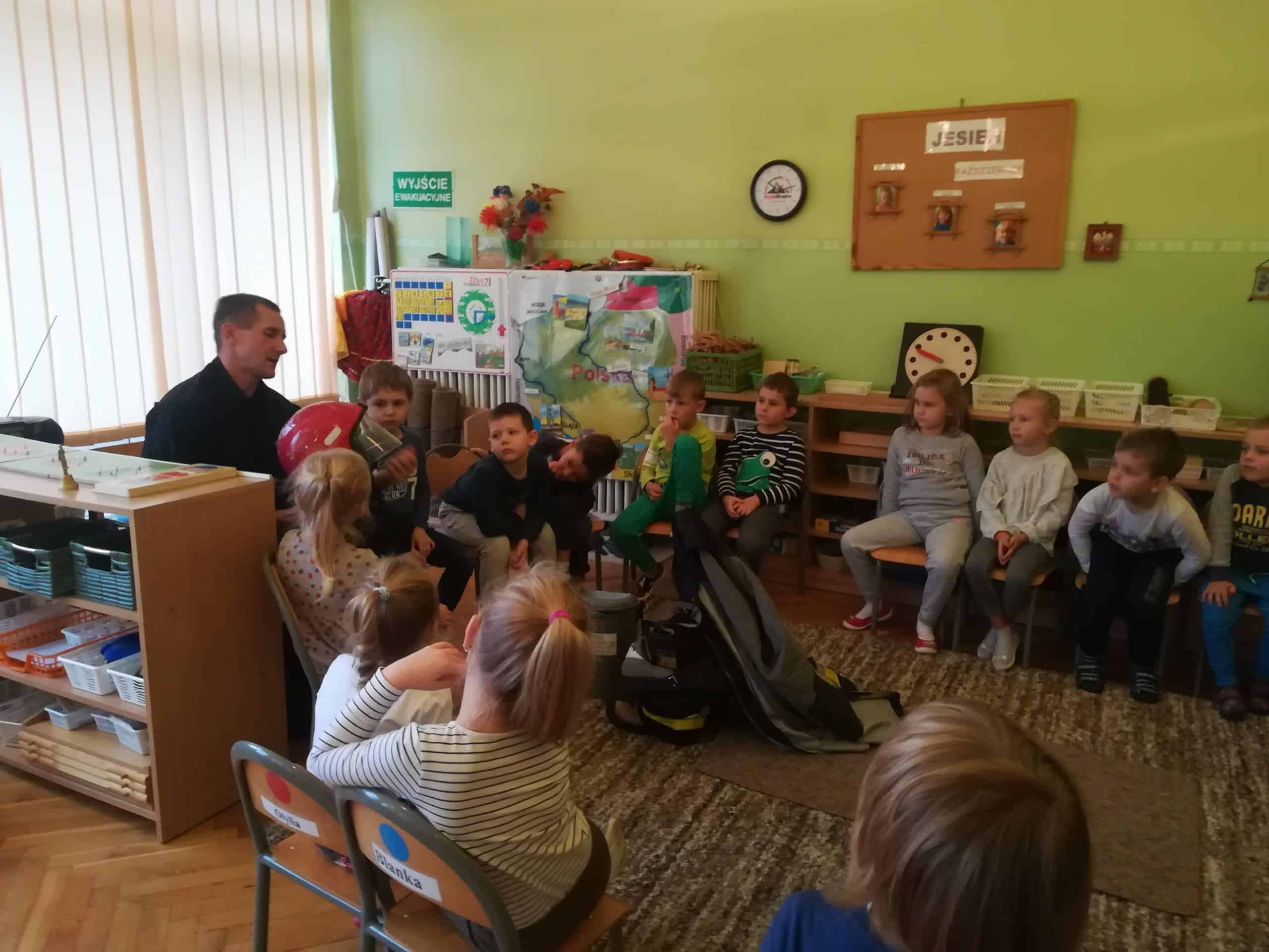 Pierwszą lekcję przeprowadził 24 października Pan Krzysztof. Przypomniał dzieciom zasady bezpiecznych zachowań, opowiedział jak wygląda praca strażaków.