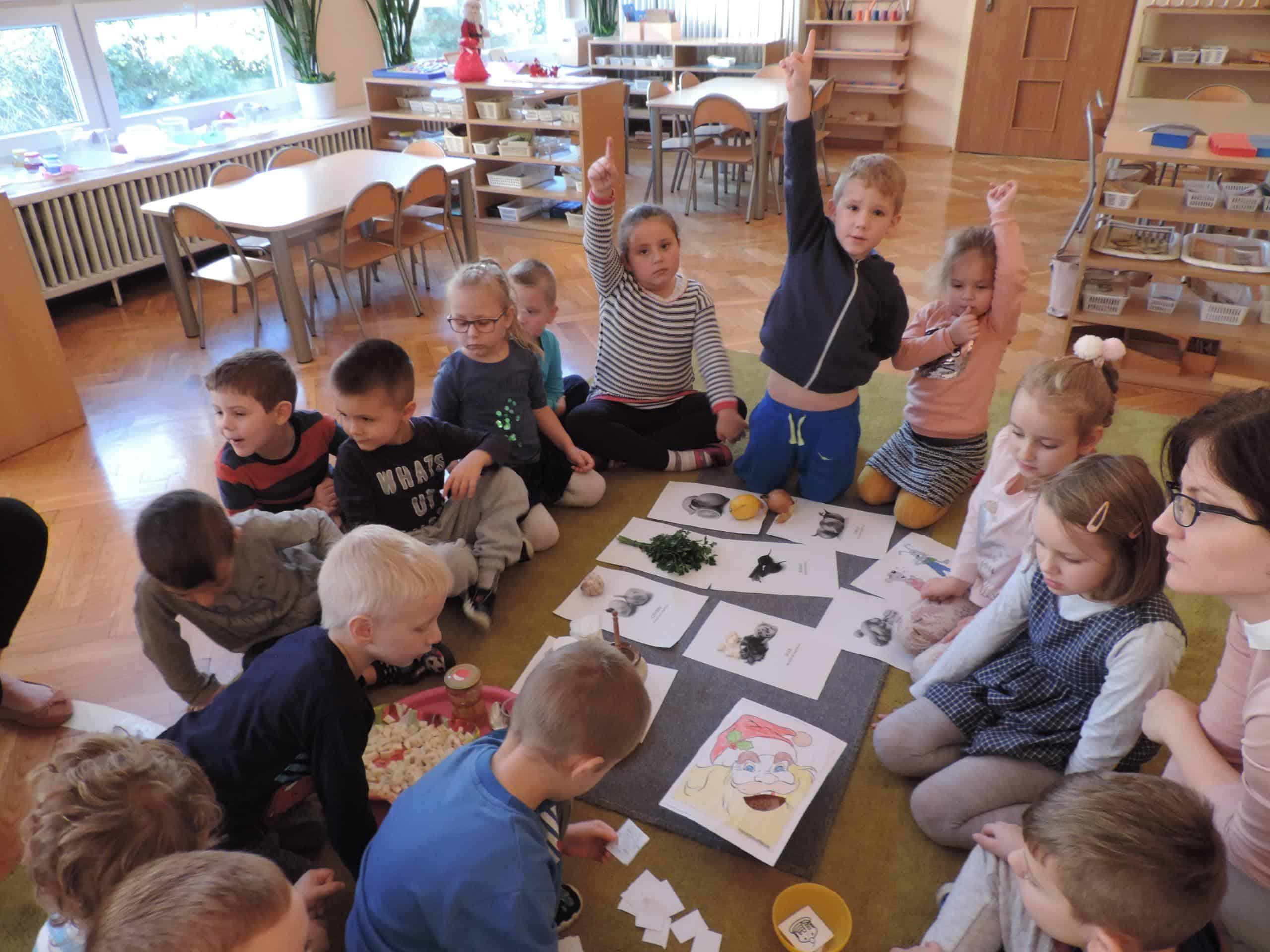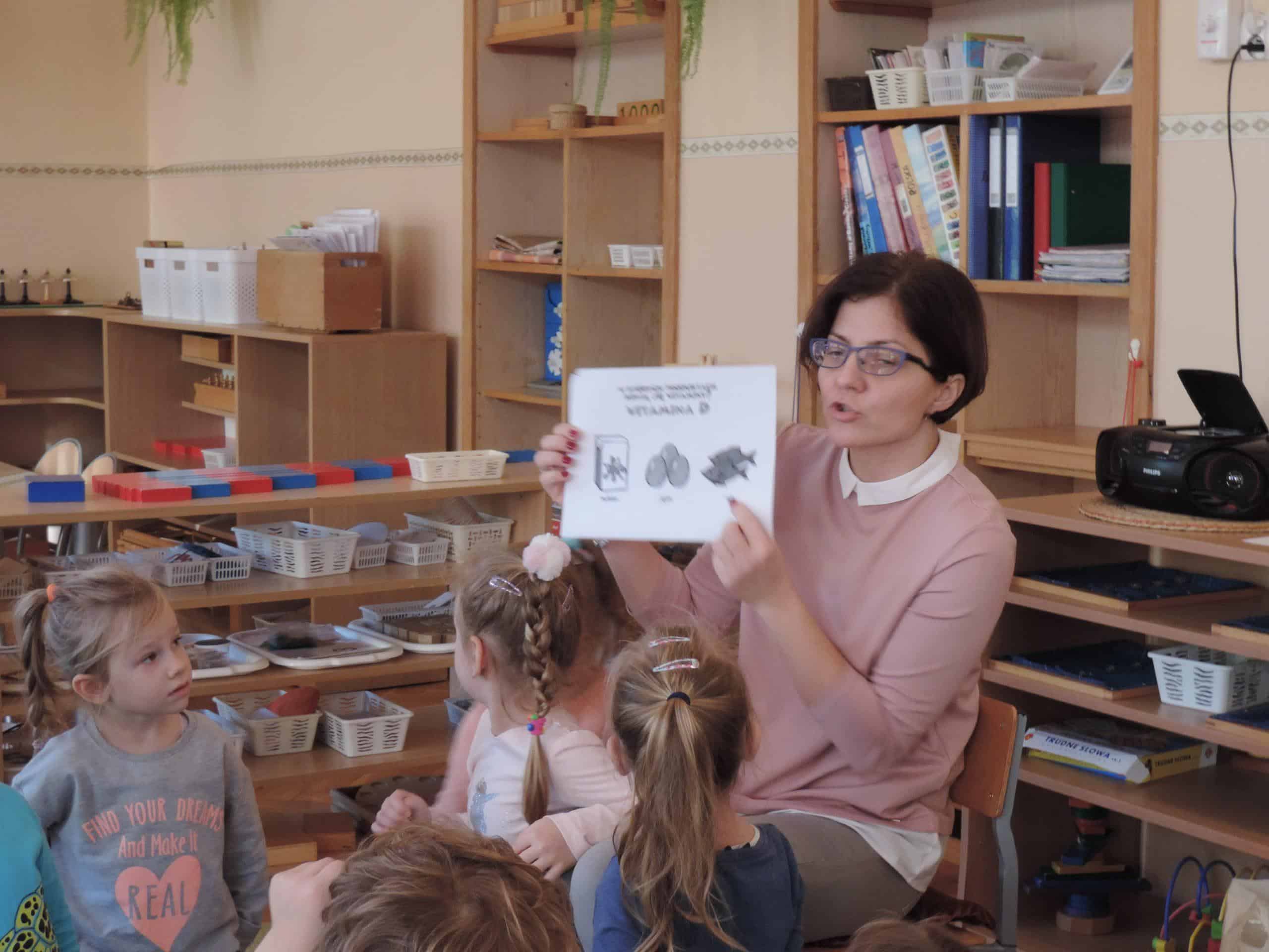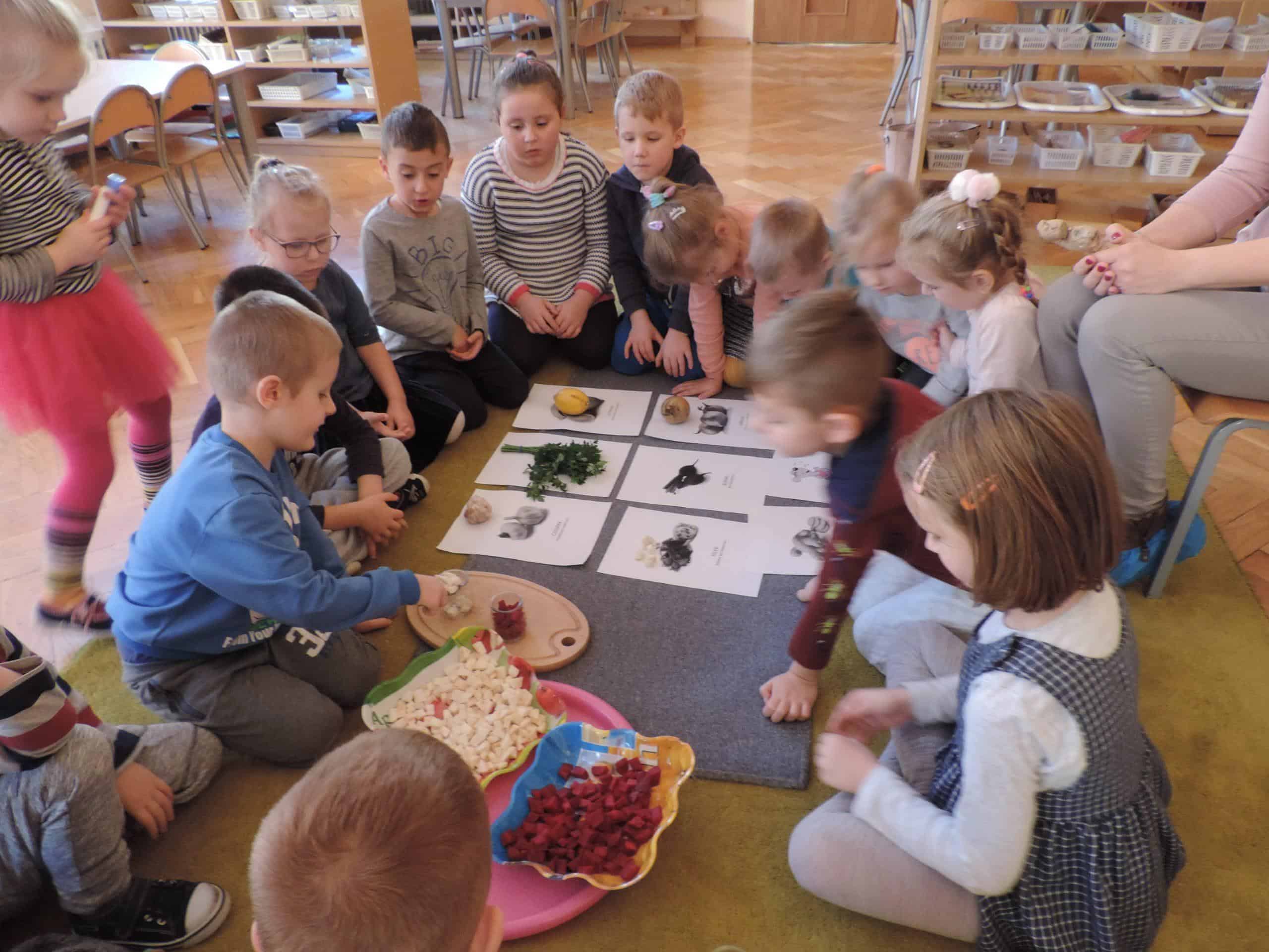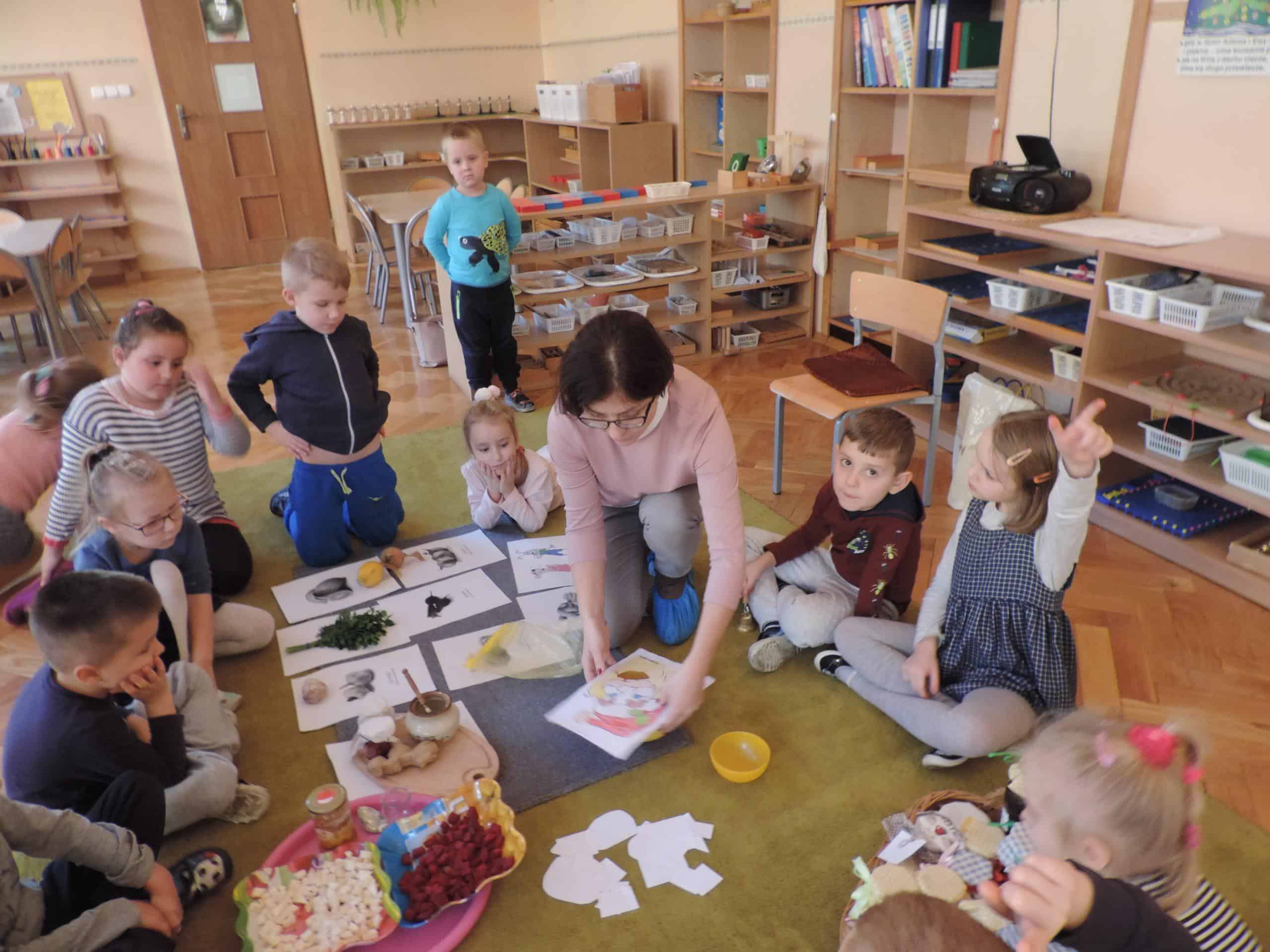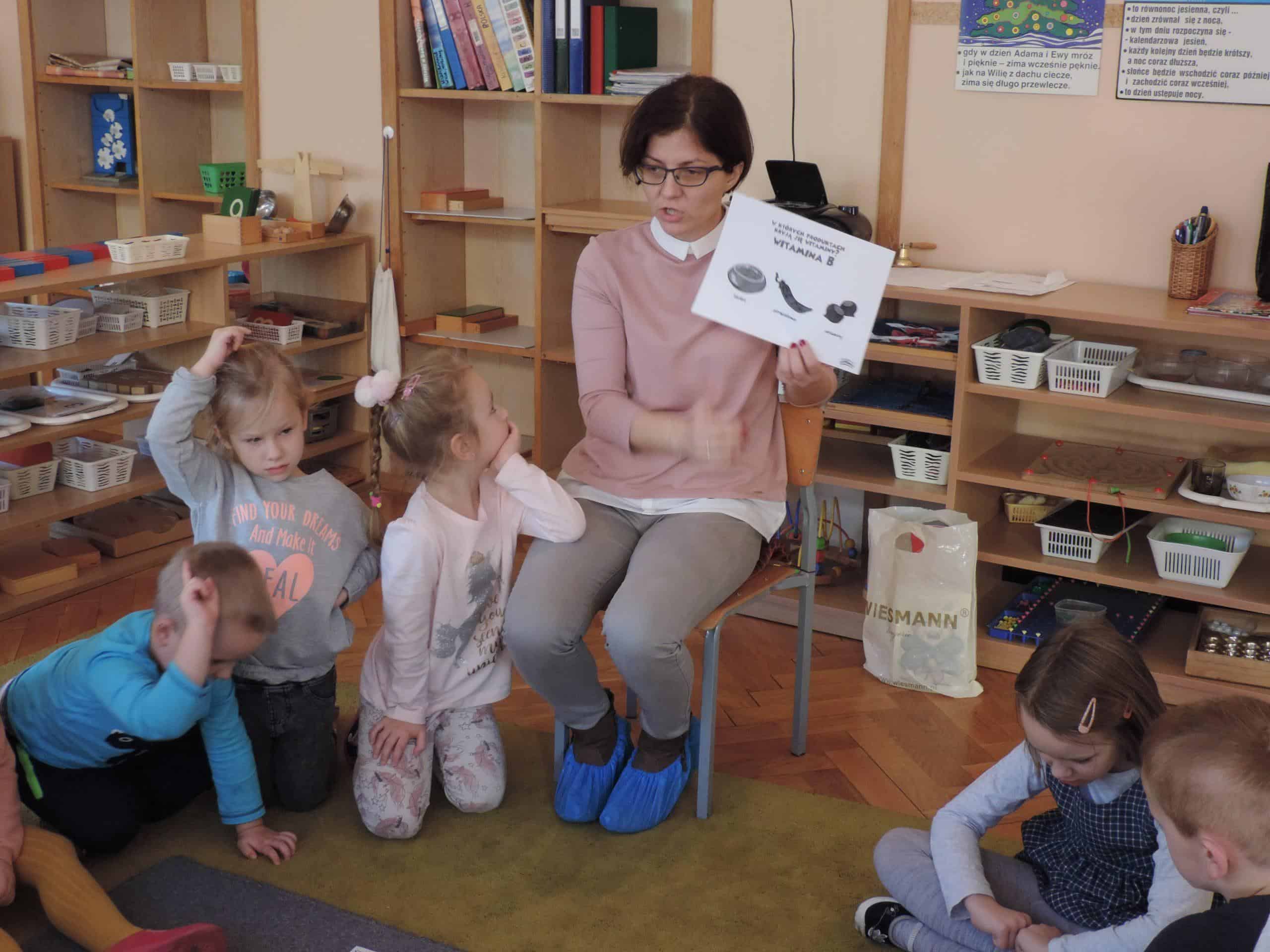 W ramach realizacji zagadnień związanych z profilaktyką zdrowotną w naszej grupie odbyła się lekcja z udziałem Mamusi Tomasza, która na co dzień pracuje jako lekarz pediatra. Jesień to okres dość częstych zachorowań, więc tematem naszego spotkania było zapobieganie chorobom. Dzieci dowiedziały się, że o zdrowiu dziecka i jego prawidłowym rozwoju decyduje wiele czynników, w tym odpowiednie odżywianie, a także dbałość o czystość osobistą. Dzieci poznały niektóre produkty, które mają ogromne znaczenie dla naszego zdrowia, bo zawierają mnóstwo witamin. Dzieci poznały witaminy A,B,C,D i dowiedziały się w jakich produktach żywnościowych występują, i że burak, seler, imbir, nać pietruszki, cytryna, to bogactwo witamin. Na koniec dzieci przygotowały z buraka i selera naturalne syropki, a zabawa dydaktyczna „Nakarm Mikołaja” pozwoliła utrwalić wiedzę o produktach sprzyjających utrzymaniu zdrowia. Dziękujemy Mamusi Tomasza za poświęcony nam czas.