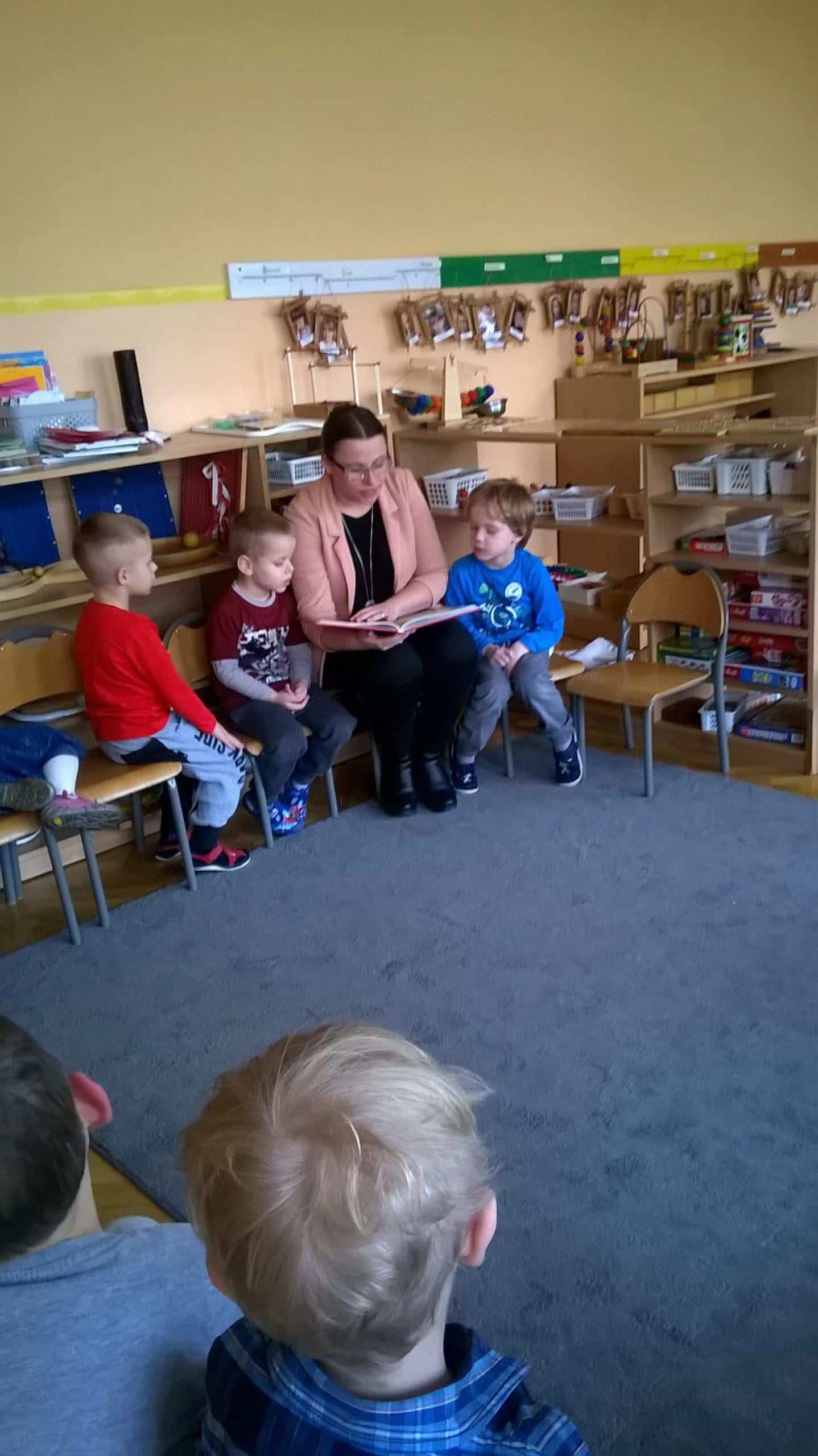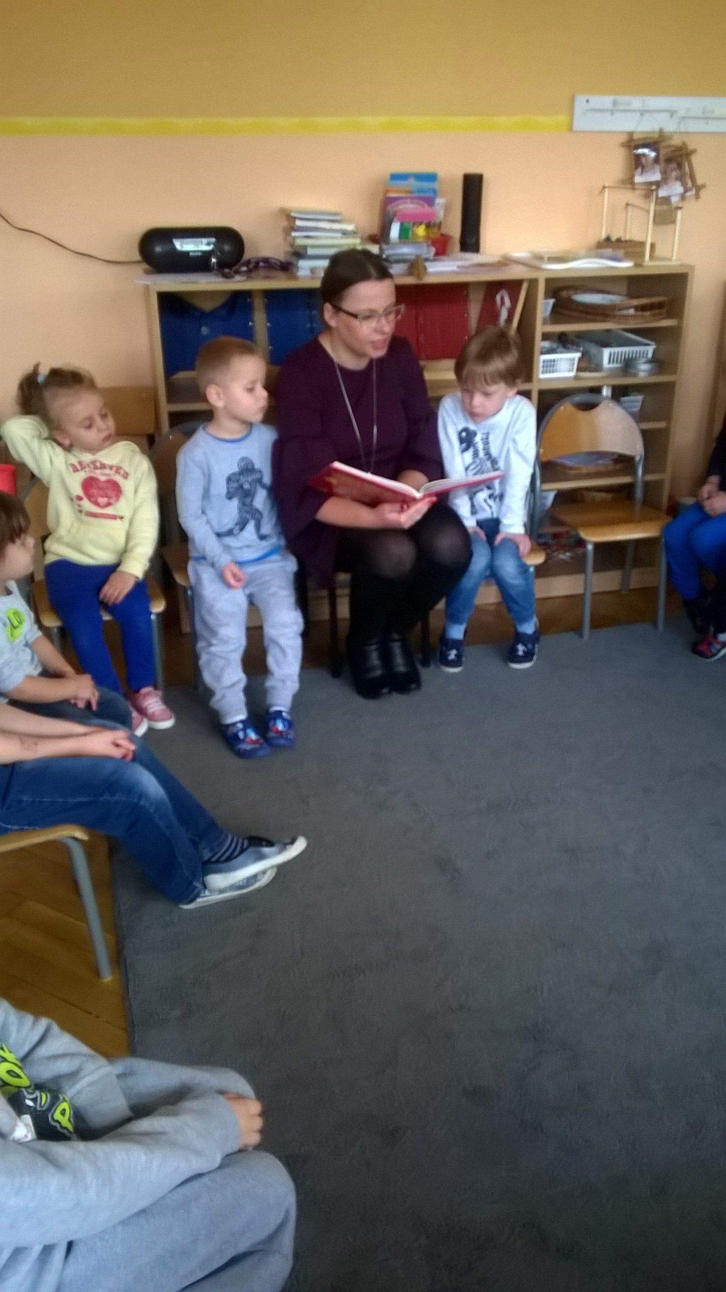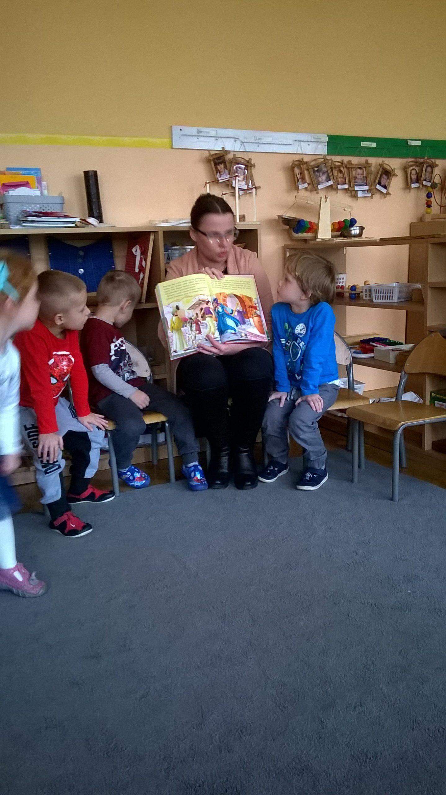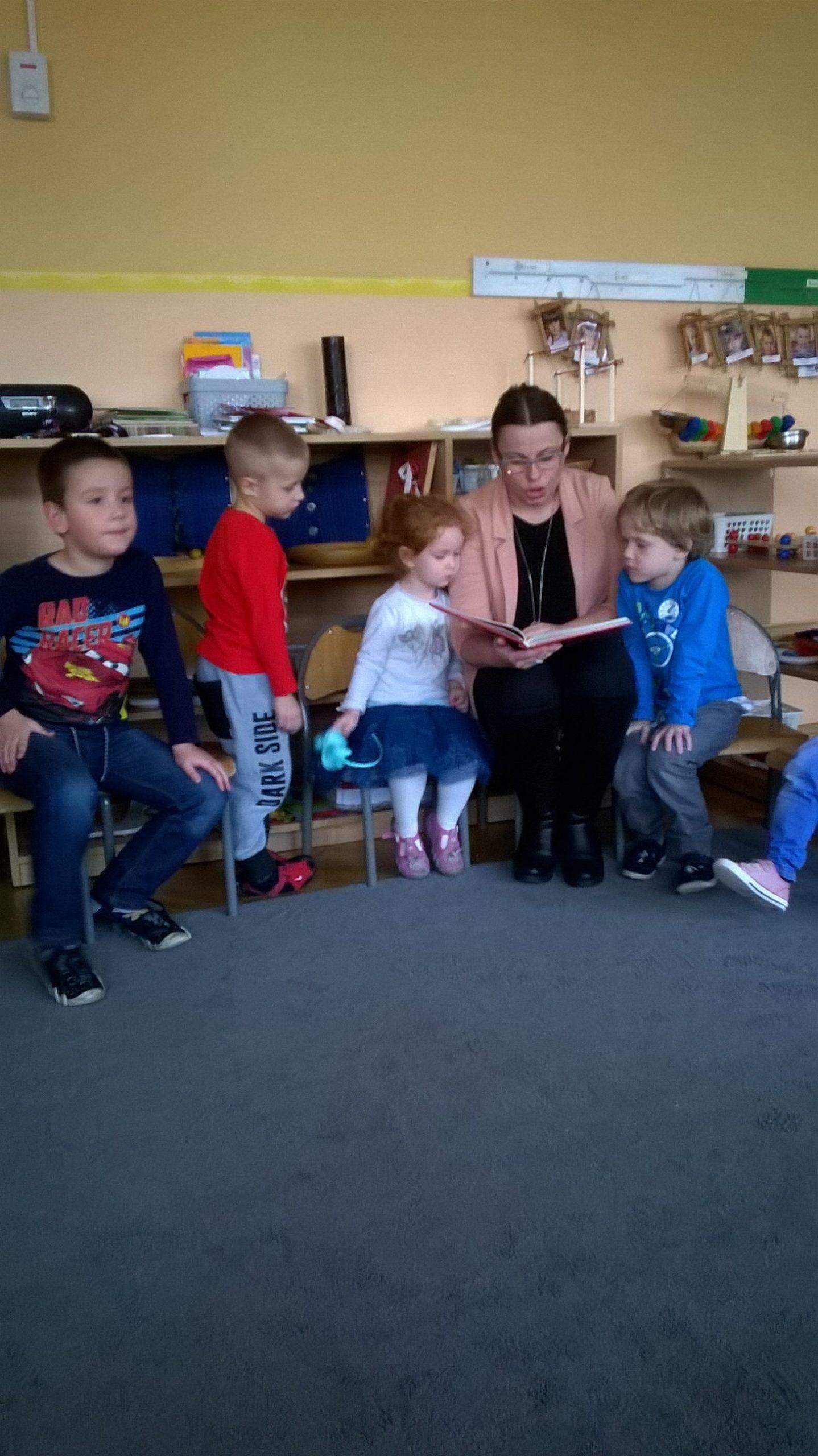 To jak ważne i potrzebne jest czytanie książek wie każdy, a jak jeszcze te historie czyta mama, to wtedy szczęście, duma i radość działają na dziecko z podwójna mocą. Tak też było i w naszej grupie, gdzie mogliśmy gościć mamusię Mateuszka, Panią Iwonę, która przez dwa poniedziałki z rzędu przychodziła do nas w celu czytania dzieciom bajki. Nasz gość zaprezentował przedszkolakom utwory literackie z kolekcji literatury dziecięcej. Dzieci z uwagą słuchały czytanych utworów, chętnie rozmawiały o ich treści i zadawały, jak również odpowiadały, na pytania. Na ręce Pani Iwonki składamy serdeczne podziękowania a nam pozostaje nadzieja, że każdy przedszkolak słucha ciekawych bajek nie tylko w przedszkolu, ale także w domu, bo pamiętajmy, że: „Cała Polska czyta dzieciom. Codziennie, przynajmniej 15 minut dziennie”.