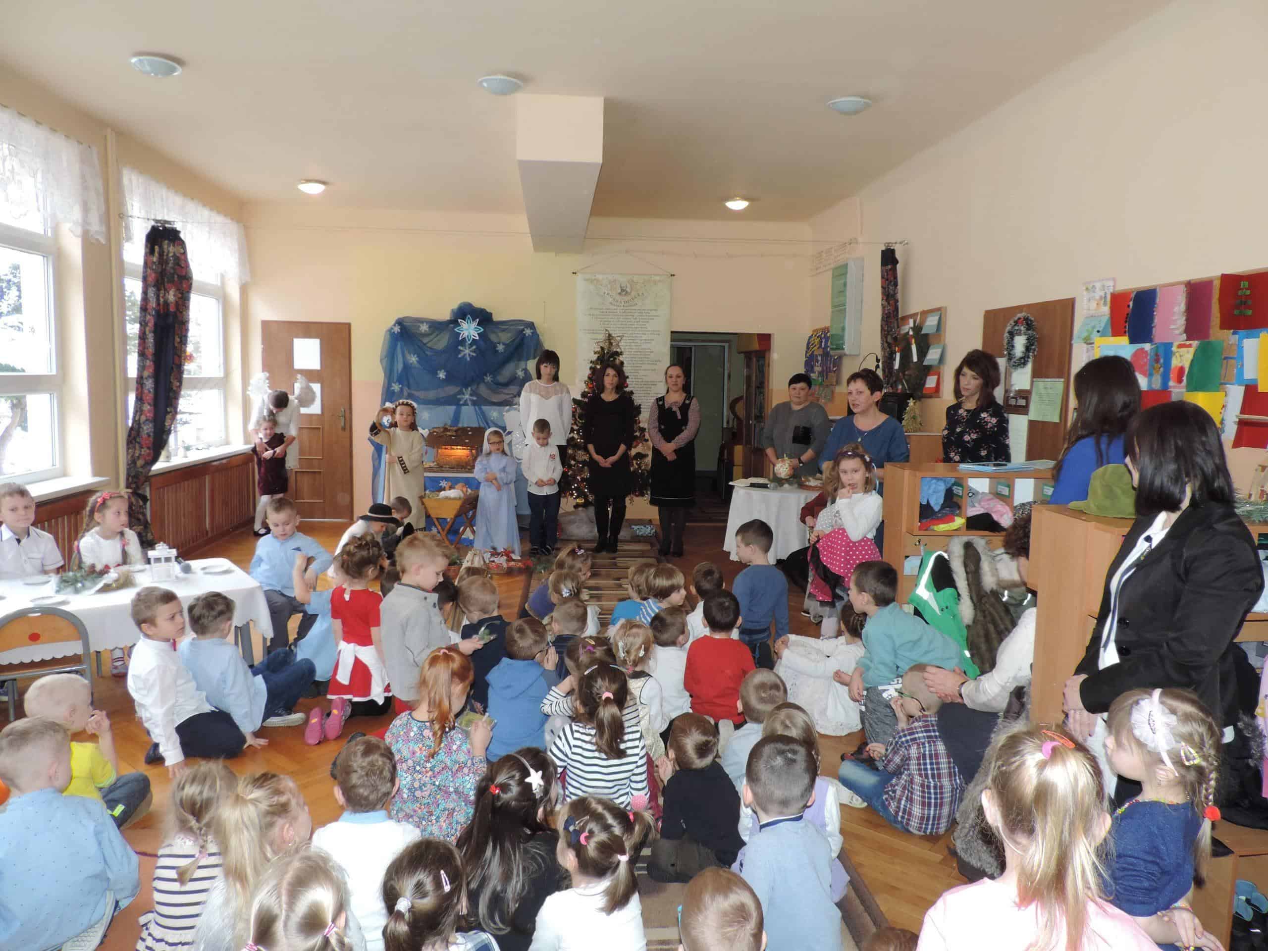 21 grudnia 2017r. w naszym przedszkolu odbyło się spotkanie Wigilijne, które przygotowała grupa Czerwona wraz z Rodzicami. Święta Bożego Narodzenia kryją w sobie niepowtarzalny urok: radość i niecierpliwe oczekiwanie na narodziny Jezusa i pierwszą wigilijną gwiazdkę. Dla wielu jest to czas spotkań w rodzinnym gronie, dzielenia się opłatkiem, składania życzeń najbliższym, wspólnego kolędowania.