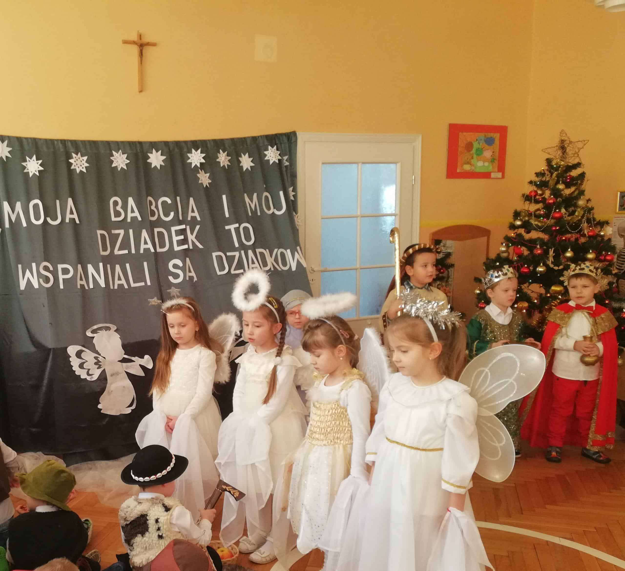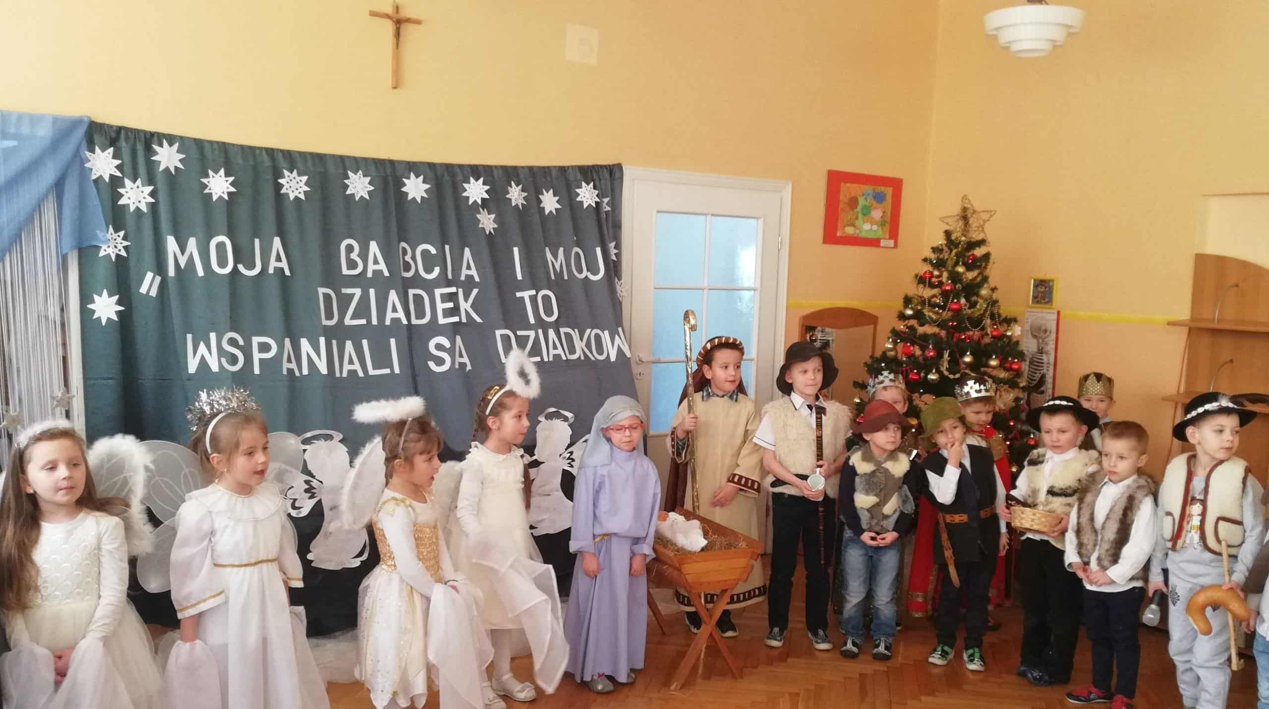 Święto to jest jednym z ważniejszych świąt na stałe wpisanych w kalendarz uroczystości przedszkolnych. 25 stycznia obchodziliśmy go w gr. Czerwonej. W czwartkowe przedpołudnie dzieci w pięknych strojach wystąpiły przed licznie zgromadzoną publicznością wystawiając „Jasełka”. Dzieci z dużym wdziękiem wcieliły się w swoje role. Maryja, Józef, Trzej Królowie, Aniołowie, Pasterze a także dzieci, które przyszły powitać Jezuska byli oklaskiwani przez zgromadzonych gości. Wszyscy dziadkowie z dumą patrzyli na swoje wnuczęta, które włożyły wiele wysiłku w to, aby jak najlepiej wyrazić swoją miłość i szacunek oraz podziękować dziadkom za cierpliwość, zrozumienie i opiekę, a przede wszystkim za czas, który zawsze mają dla swoich wnuków. Po występie artystycznym dzieci złożyły Babciom i Dziadkom najserdeczniejsze życzenia, wręczając im własnoręcznie wykonane laurki.