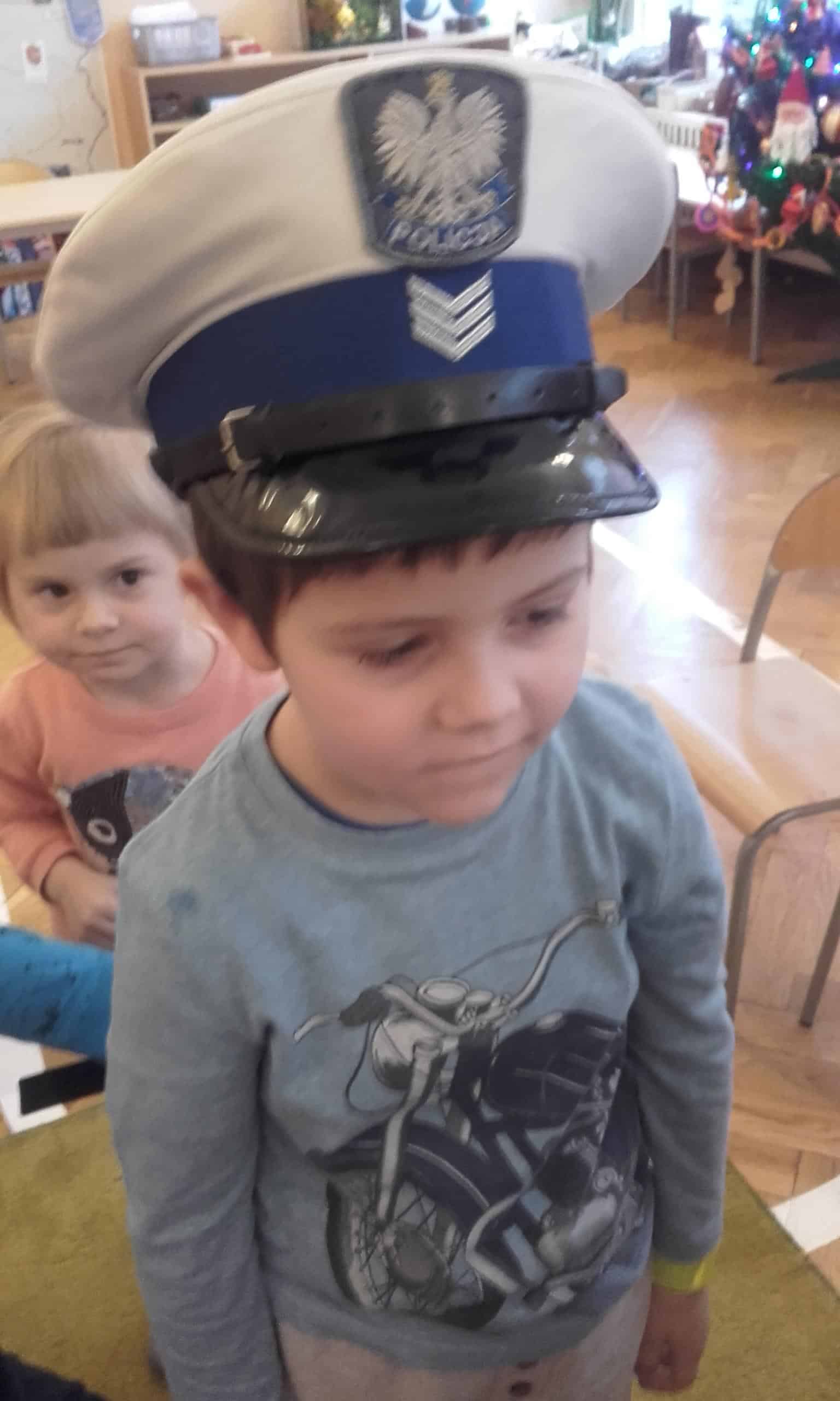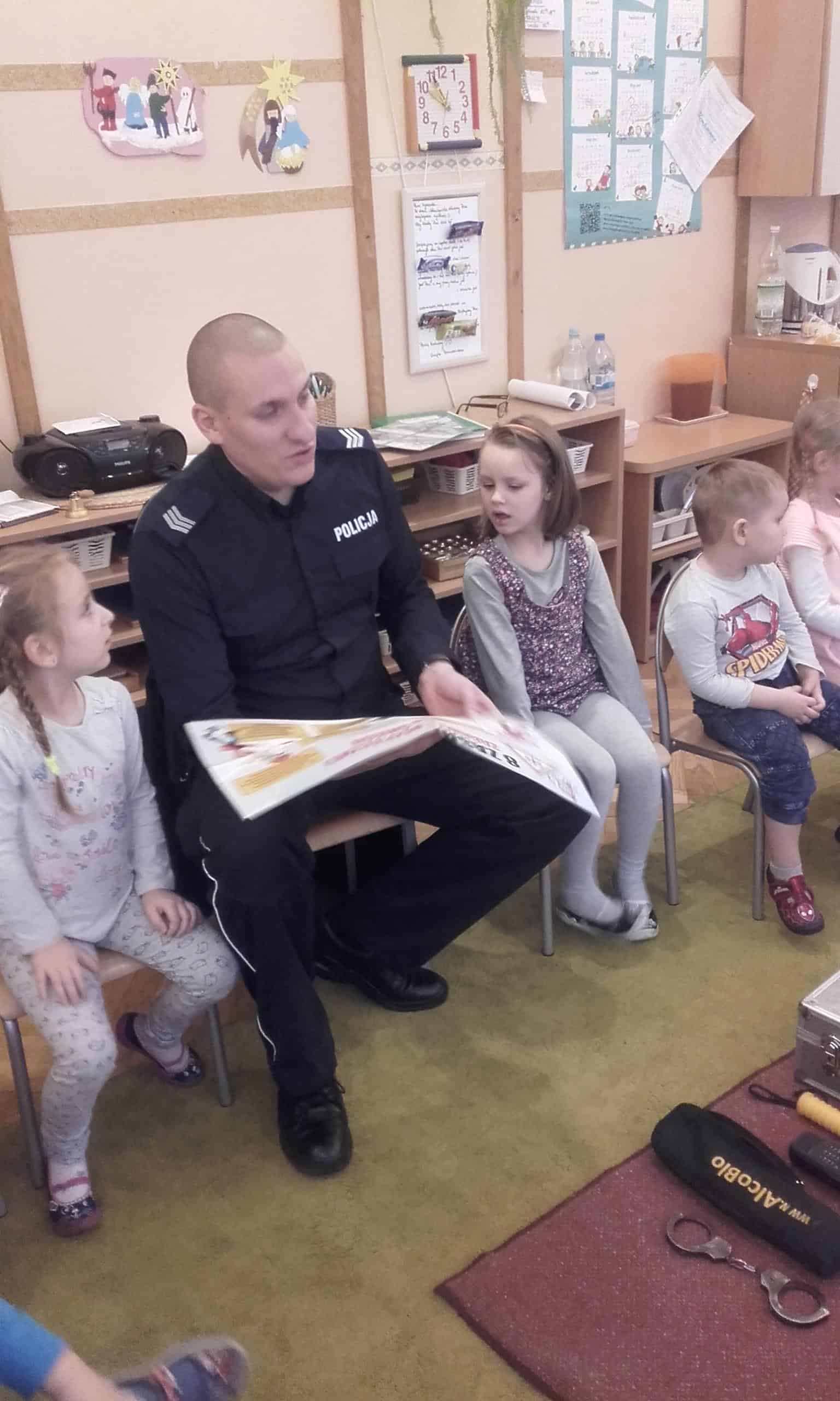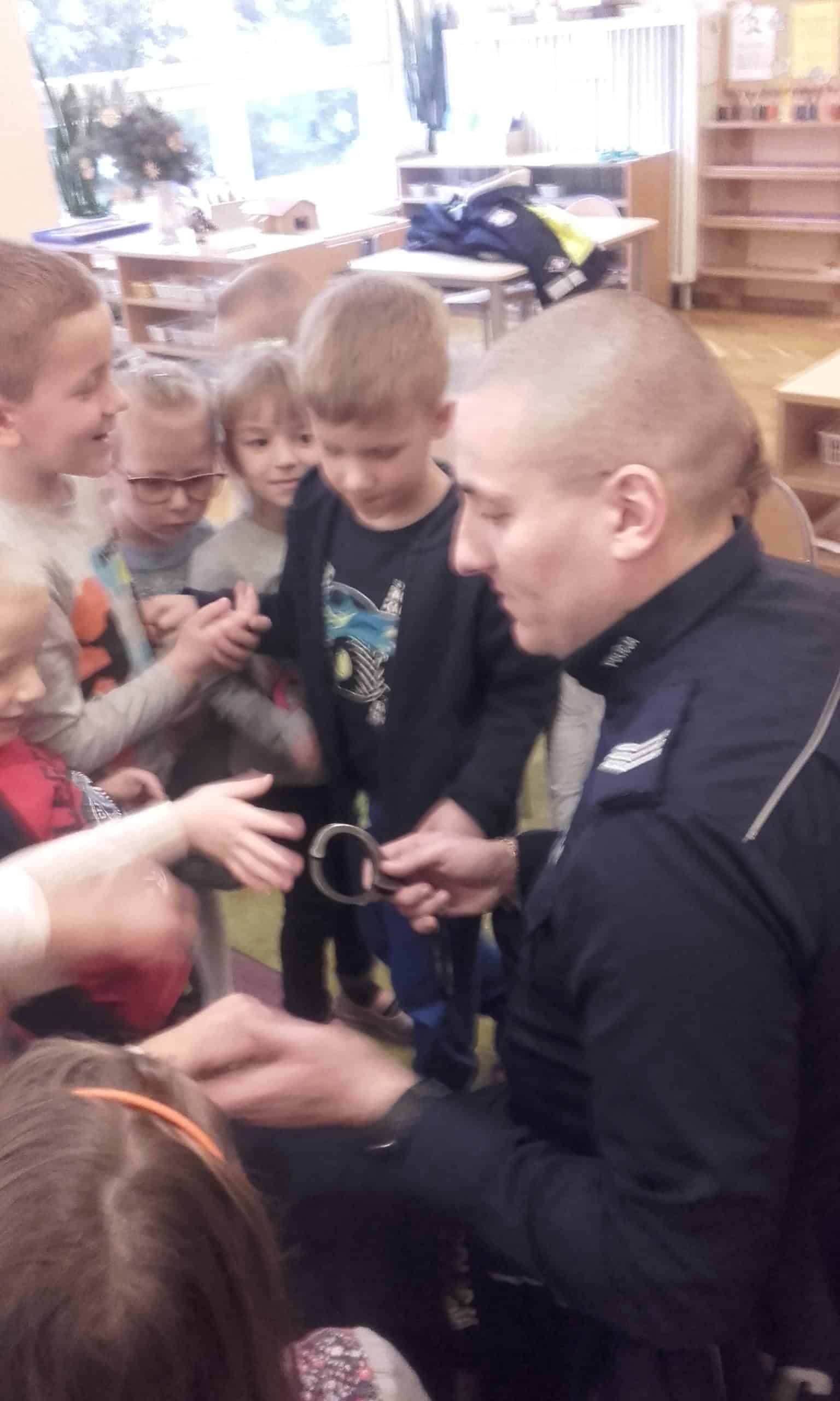 Zbliżają się ferie zimowe- czas wypoczynku, wyjazdów, zabaw na świeżym powietrzu, na śniegu, jest to również okazja do uprawiania sportów zimowych. W trosce o bezpieczeństwo dzieci do naszej grupy zaproszony został Tatuś Oksany, który jest policjantem i którego zadaniem było pomóc dzieciom utrwalić i zrozumieć zasady warunkujące bezpieczeństwo dzieci w różnych okolicznościach dnia codziennego, a szczególnie podczas zbliżających się ferii zimowych. Rozumienie konieczności przestrzegania przepisów ruchu drogowego nie tylko przez kierujących, ale także przez pieszych oraz poznanie wybranych możliwości radzenia sobie w sytuacjach zagrażających bezpieczeństwu było istotnym elementem pogadanki. Dzieci utrwaliły sobie telefony alarmowe oraz zasady przechodzenia przez jezdnię, rozwiązywały sytuacje problemowe przedstawione na obrazkach dotyczące niewłaściwego zachowania się w ruchu drogowym. Wspólnie z Panem policjantem poznały i przeanalizowały 8 zasad bezpiecznej zabawy na śniegu popartych serią kolorowych obrazków. Na zakończenie zajęcia dzieci otrzymały gadżety odblaskowe.
