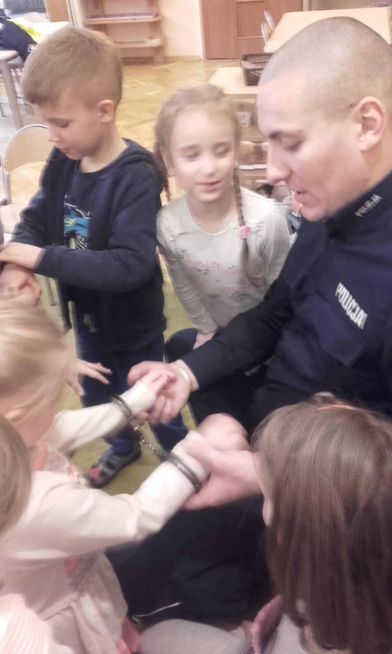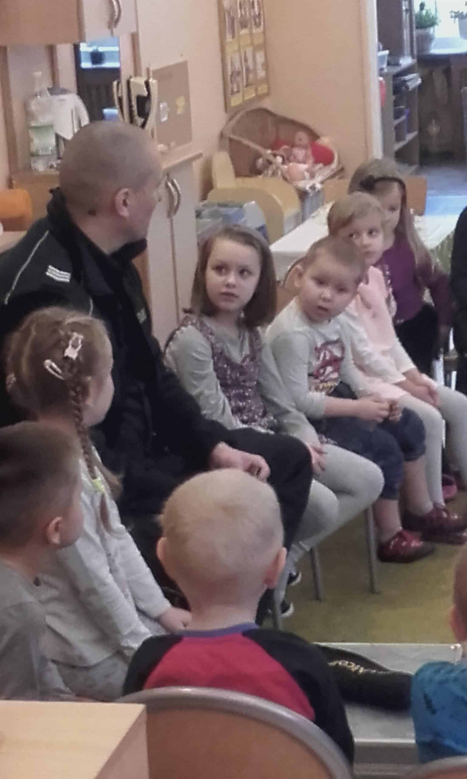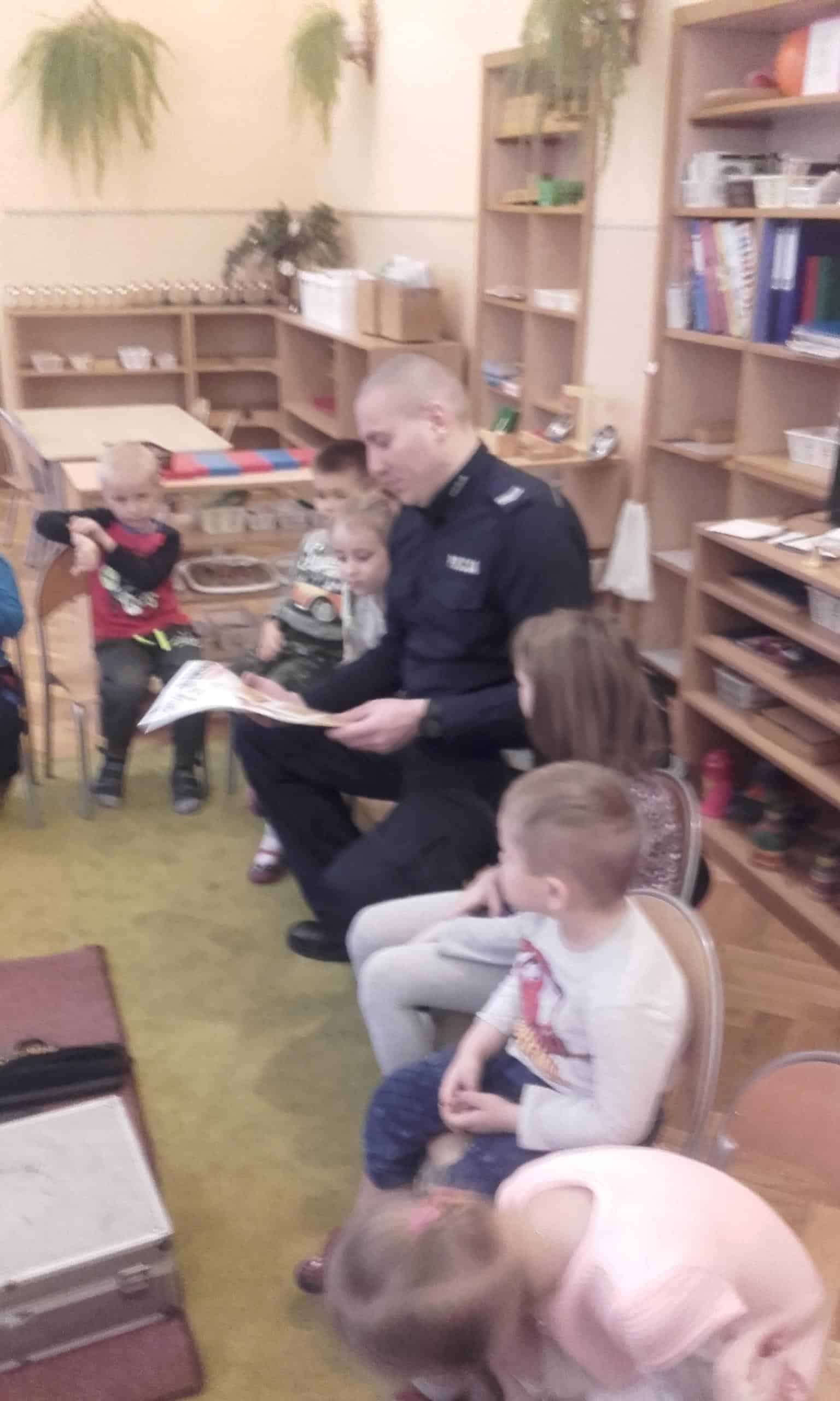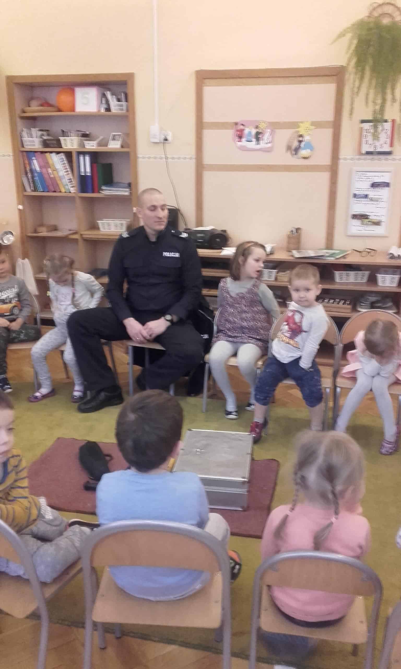 Zbliżają się ferie zimowe- czas wypoczynku, wyjazdów, zabaw na świeżym powietrzu, na śniegu, jest to również okazja do uprawiania sportów zimowych. W trosce o bezpieczeństwo dzieci do naszej grupy zaproszony został Tatuś Oksany, który jest policjantem i którego zadaniem było pomóc dzieciom utrwalić i zrozumieć zasady warunkujące bezpieczeństwo dzieci w różnych okolicznościach dnia codziennego, a szczególnie podczas zbliżających się ferii zimowych. Rozumienie konieczności przestrzegania przepisów ruchu drogowego nie tylko przez kierujących, ale także przez pieszych oraz poznanie wybranych możliwości radzenia sobie w sytuacjach zagrażających bezpieczeństwu było istotnym elementem pogadanki. Dzieci utrwaliły sobie telefony alarmowe oraz zasady przechodzenia przez jezdnię, rozwiązywały sytuacje problemowe przedstawione na obrazkach dotyczące niewłaściwego zachowania się w ruchu drogowym. Wspólnie z Panem policjantem poznały i przeanalizowały 8 zasad bezpiecznej zabawy na śniegu popartych serią kolorowych obrazków. Na zakończenie zajęcia dzieci otrzymały gadżety odblaskowe.
