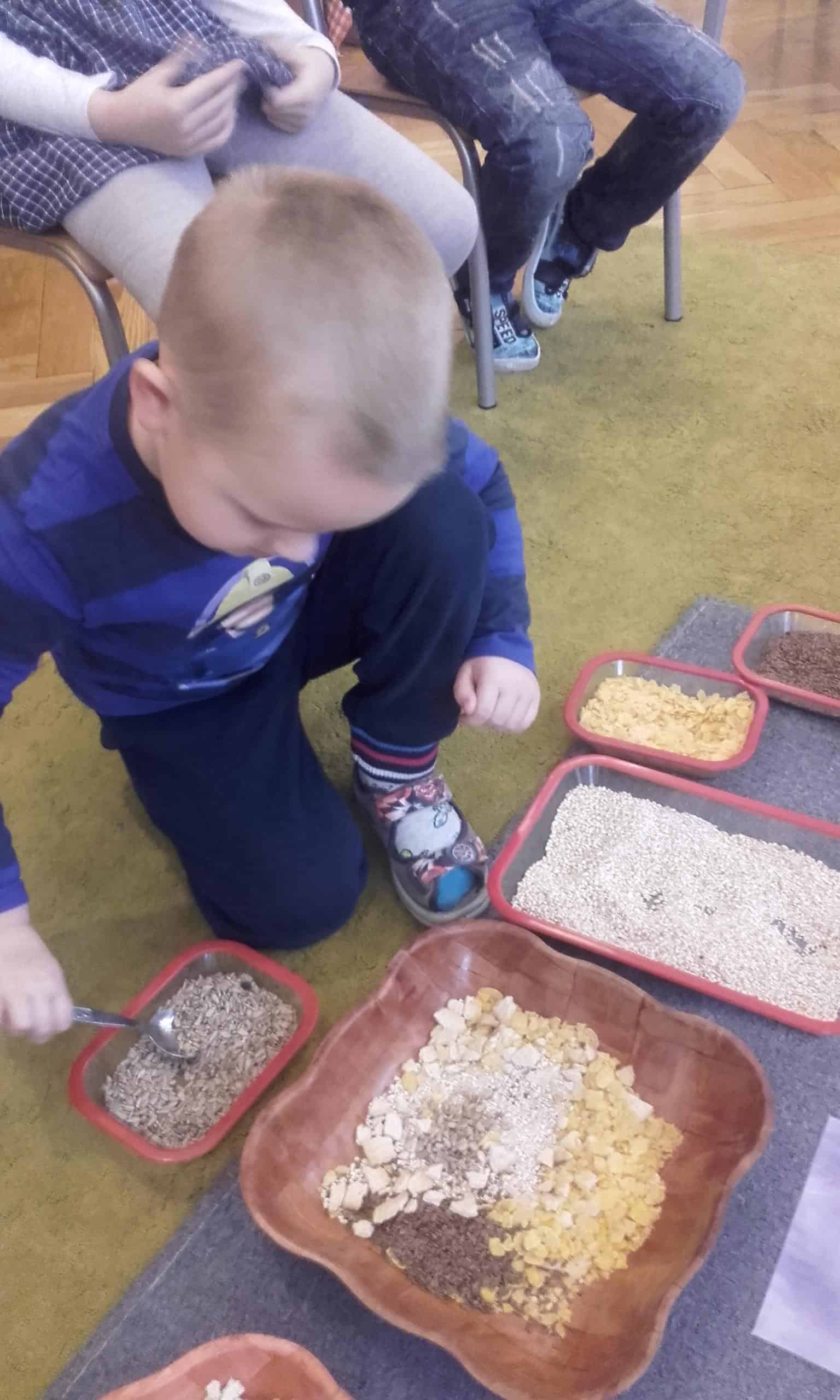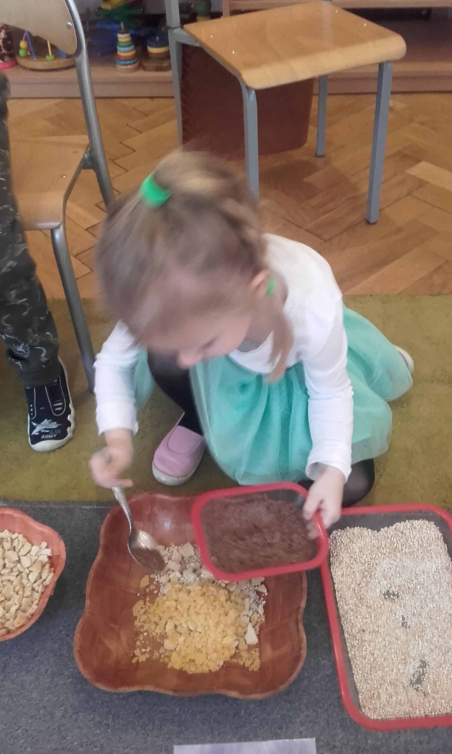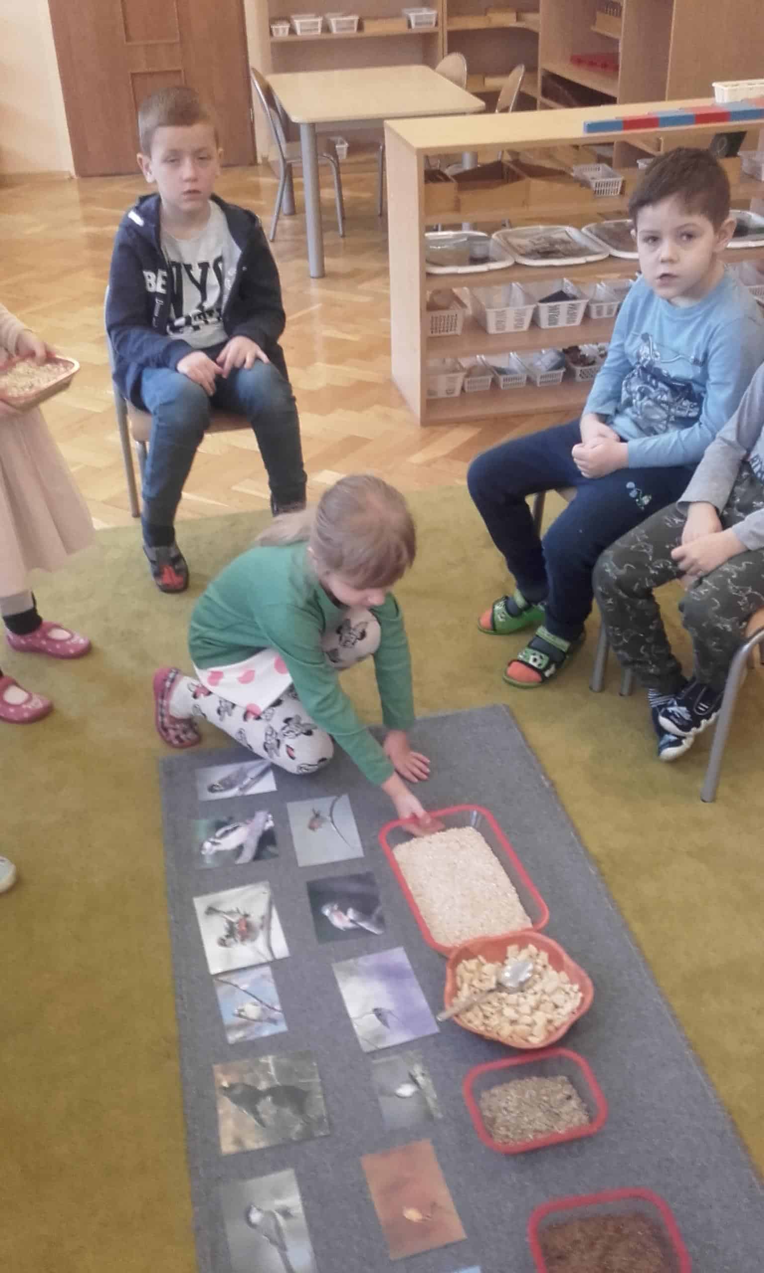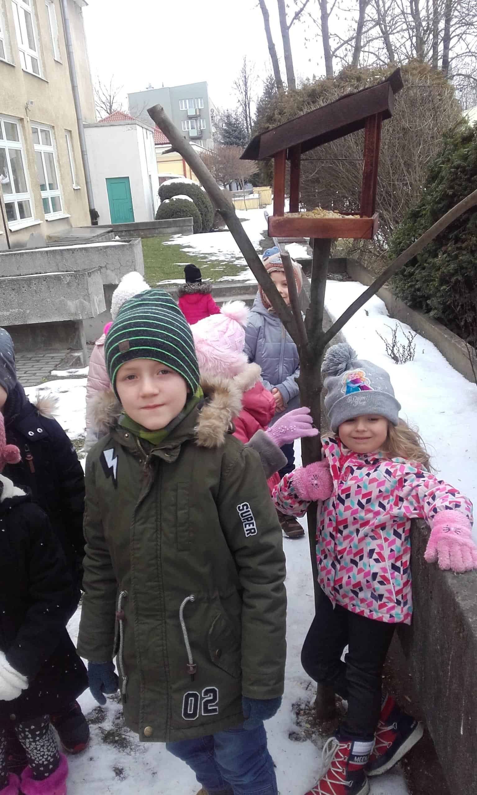 Zima to pora roku, podczas której musimy pomagać zwierzętom. Ptakom jest trudno znaleźć pożywienie. W naszym ogrodzie przedszkolnym mamy mnóstwo skrzydlatych sąsiadów. Ale trzeba dobrze wiedzieć jak im pomóc, czym dokarmiać, aby niechcący im zaszkodzić. Była to okazja do utrwalenia wiedzy o gatunkach ptaków zimujących i o ich potrzebach. Dzieci poznały wybrane zwierzęta żyjące w naturalnym środowisku zimą ,ze szczególnym uwzględnieniem ptaków – sikorki, rudzika, zimorodka, wróbelka, gawrona, kruka, jemiołuszki, mazurka. Omówiliśmy ich wygląd, sposób poruszania się i odżywiania. Potem wykonaliśmy odpowiednią wysokokaloryczną mieszankę pokarmową i wyłożyliśmy w karmnikach w ogrodzie przedszkolnym. Bez wsparcia ludzi, mniej doświadczone, stare, bądź osłabione ptaki mają nikłe szanse na przeżycie w okresie mrozów i obfitych opadów śniegu. Dni są wówczas krótkie, a dostęp do pokarmu utrudniony. Wyjście do ogrodu przedszkolnego i nakarmienie ptaków było frajdą. Była to również okazja do rozbudzania wśród dzieci opiekuńczego stosunku do zwierząt.
