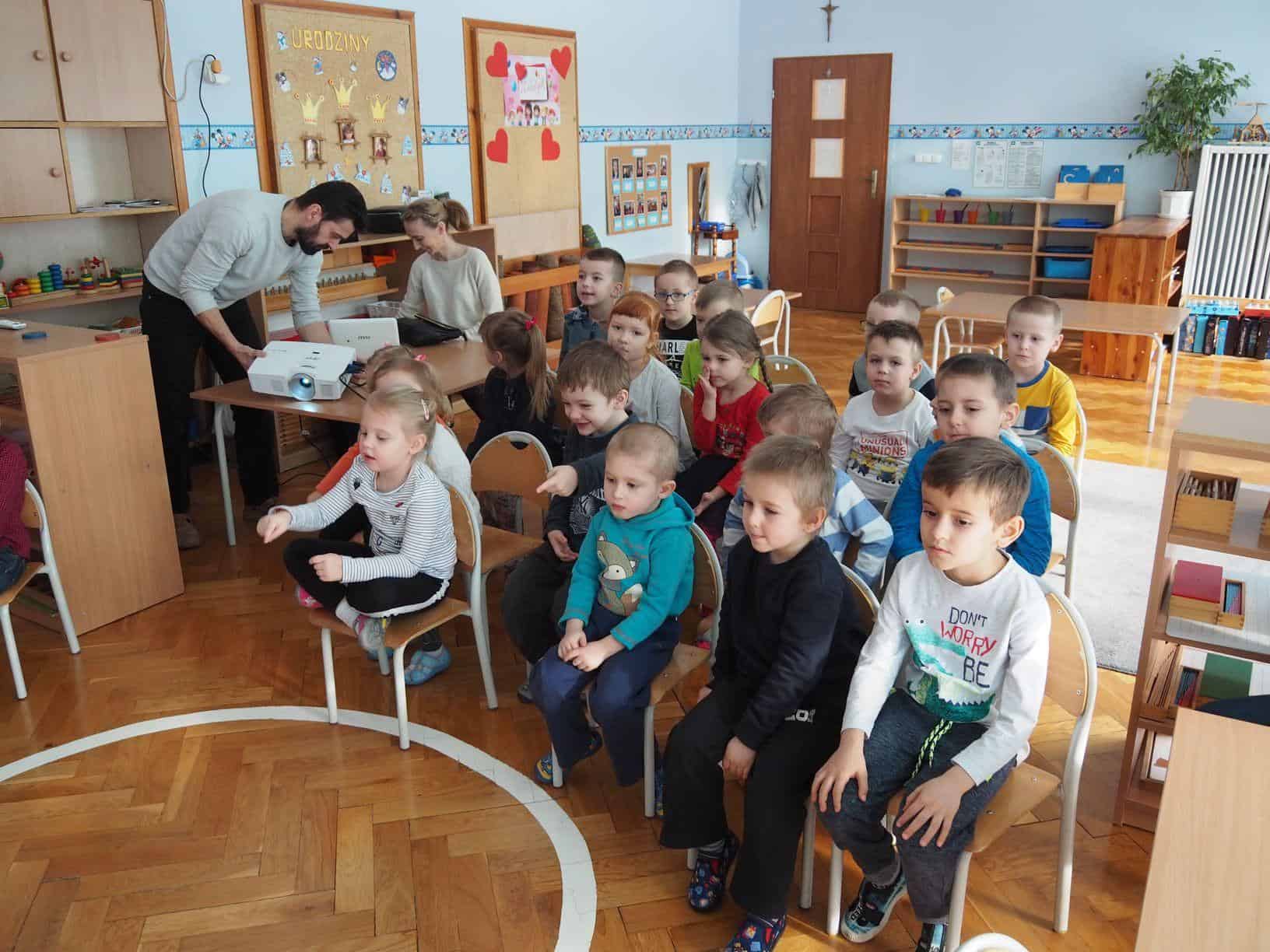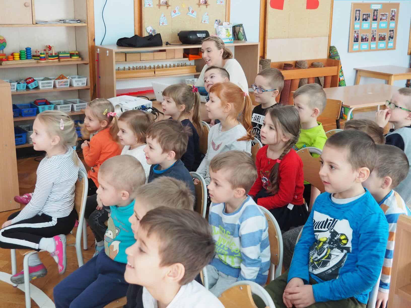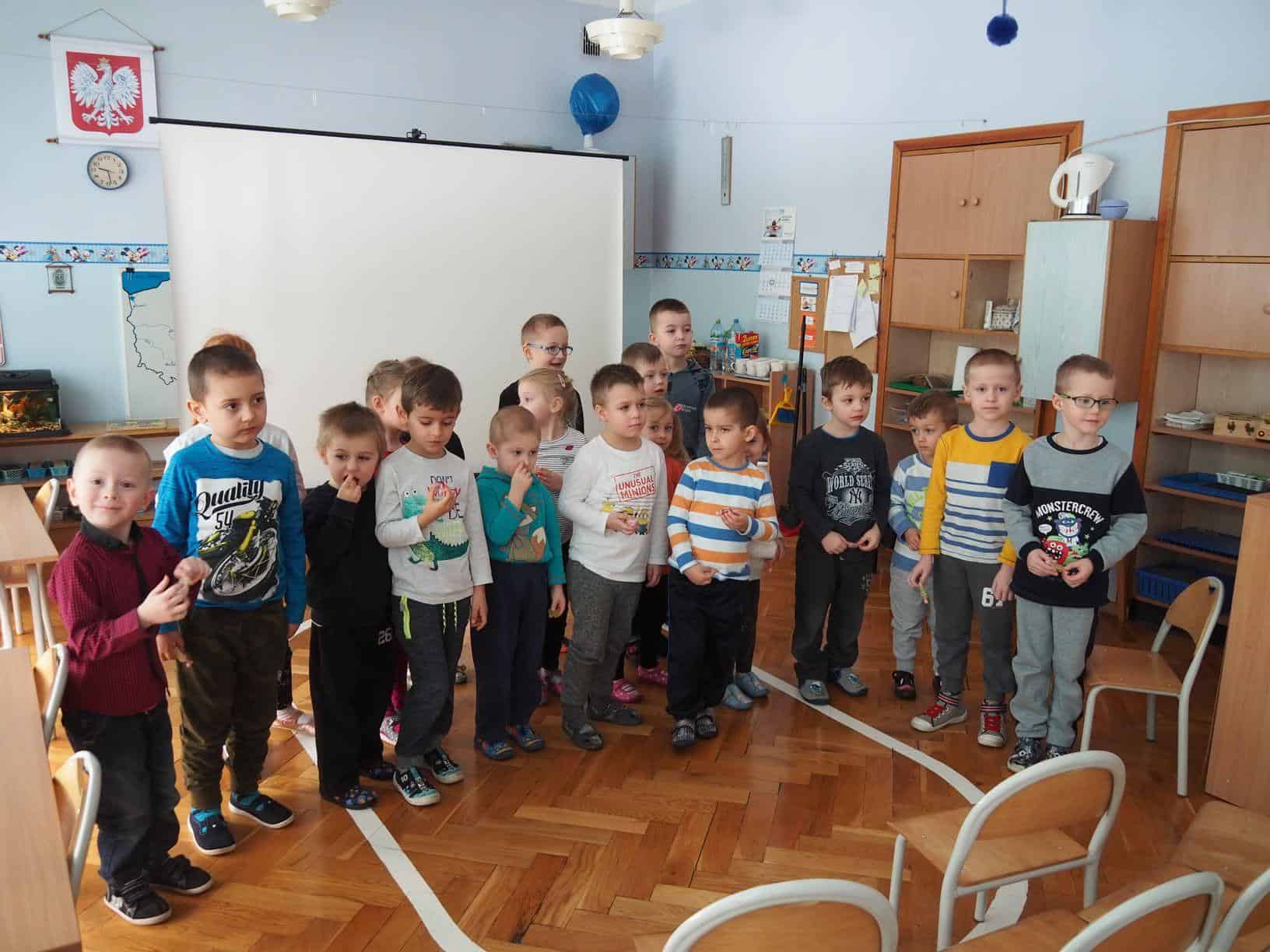 z grupy. Przedszkolaki z uśmiechem i zaangażowaniem uczestniczyły