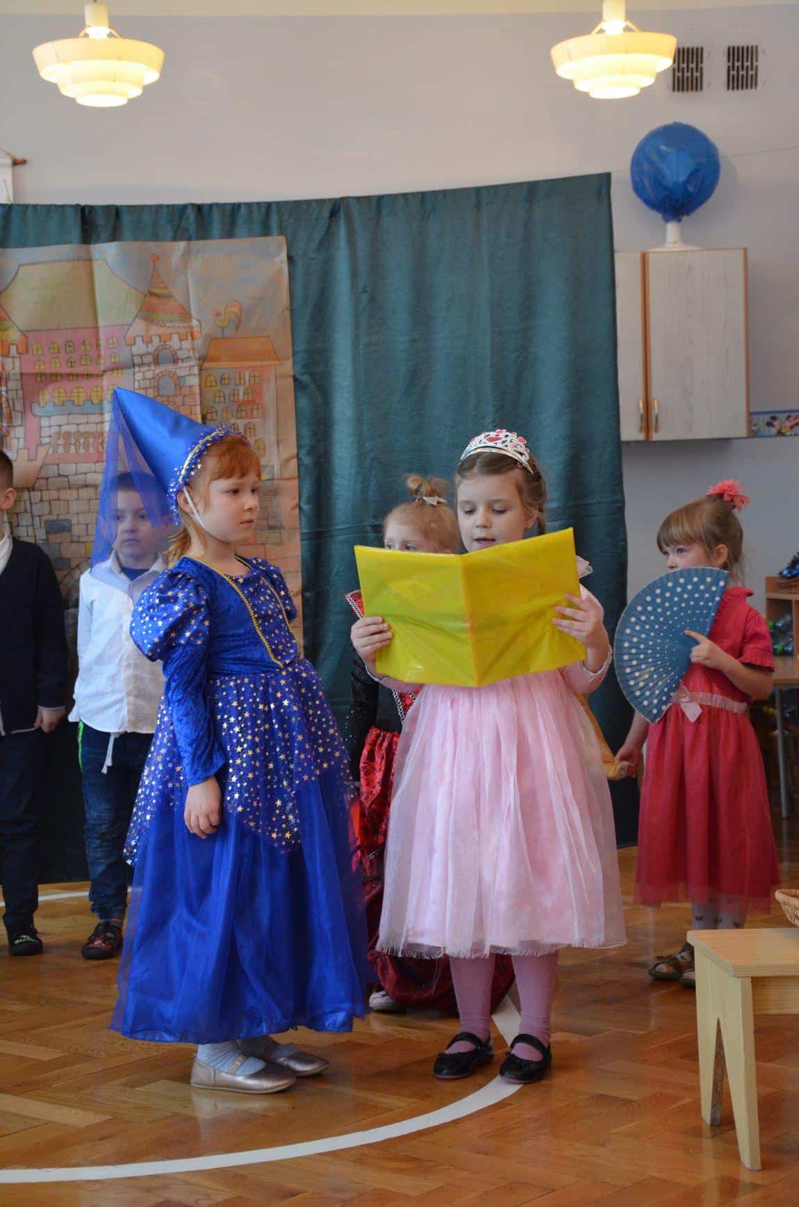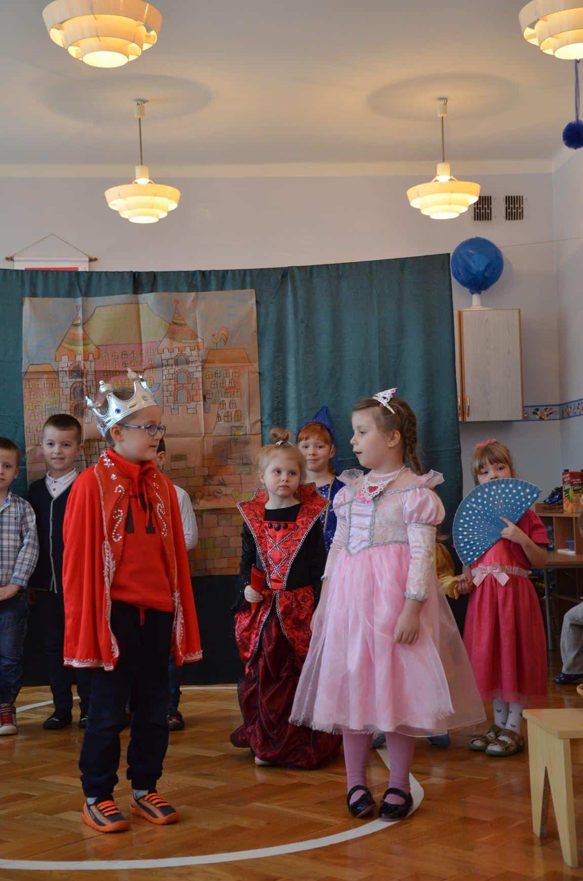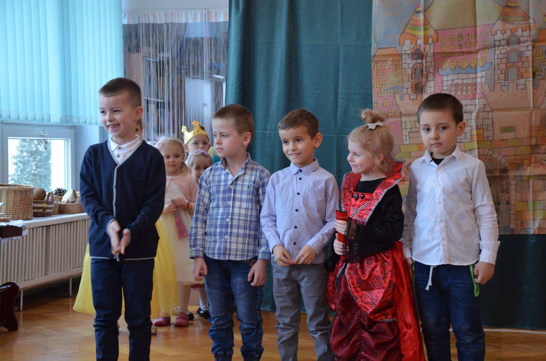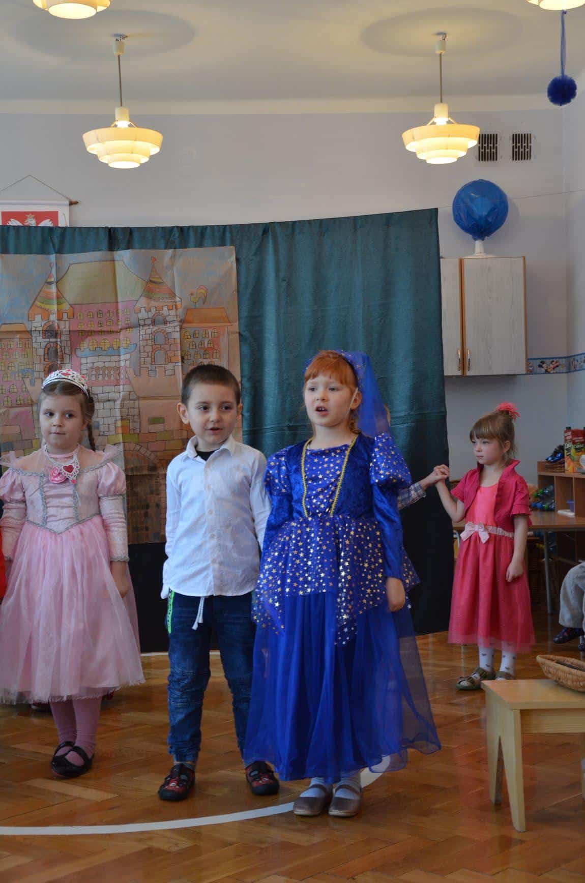 Dzieci z grupy Niebieskiej zaprezentowały teatrzyk „Królewna Gburka”. Przedstawienie obejrzeli rodzice małych aktorów oraz ich koledzy
