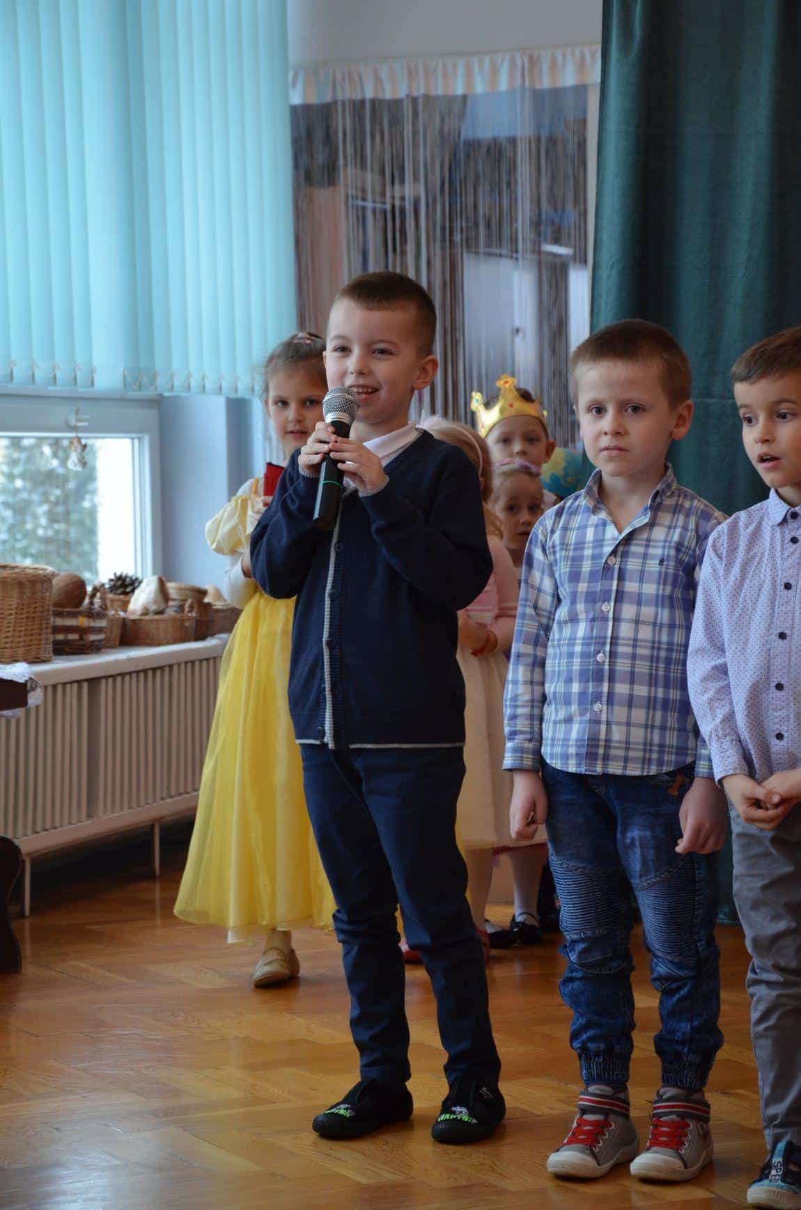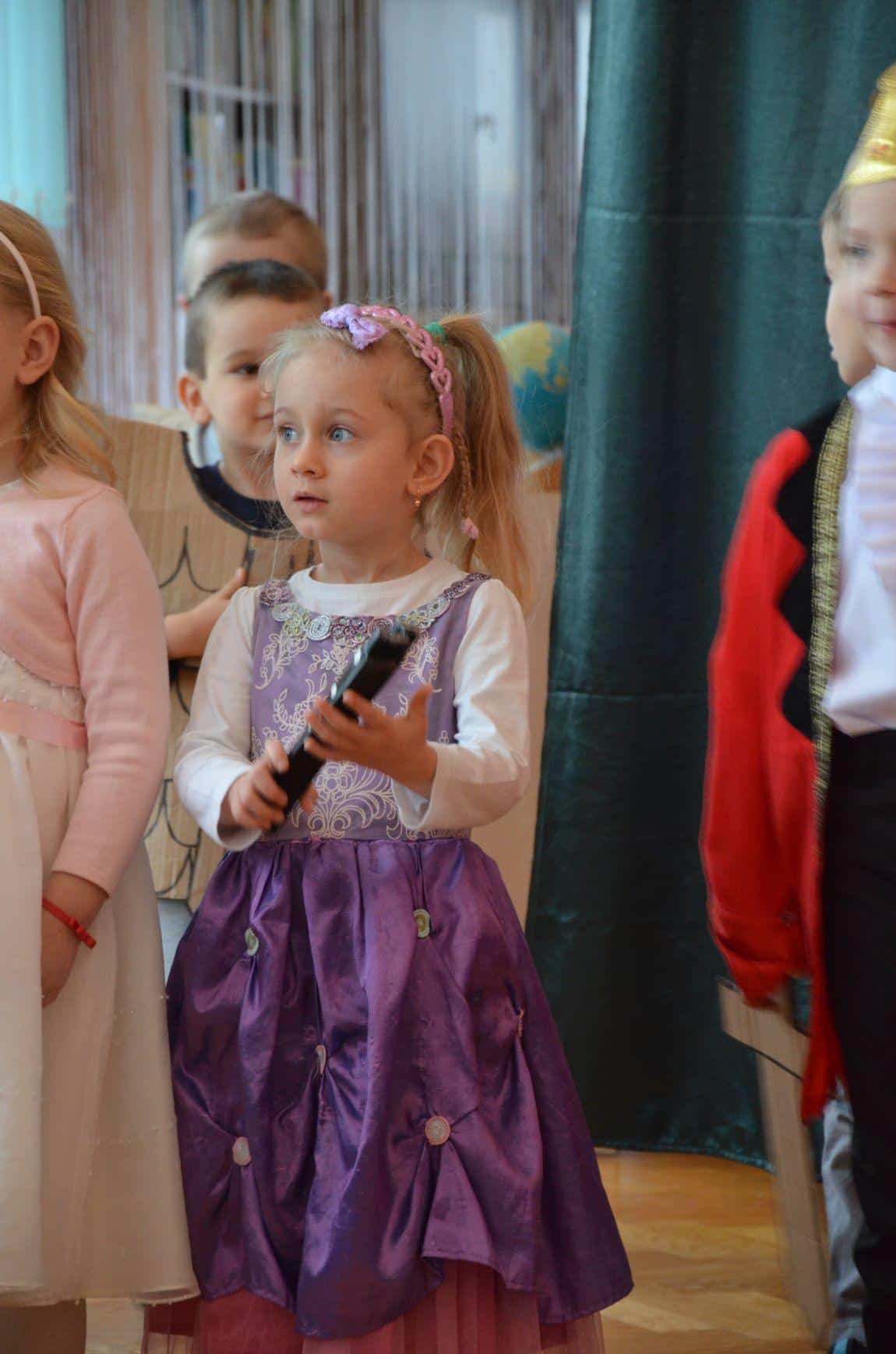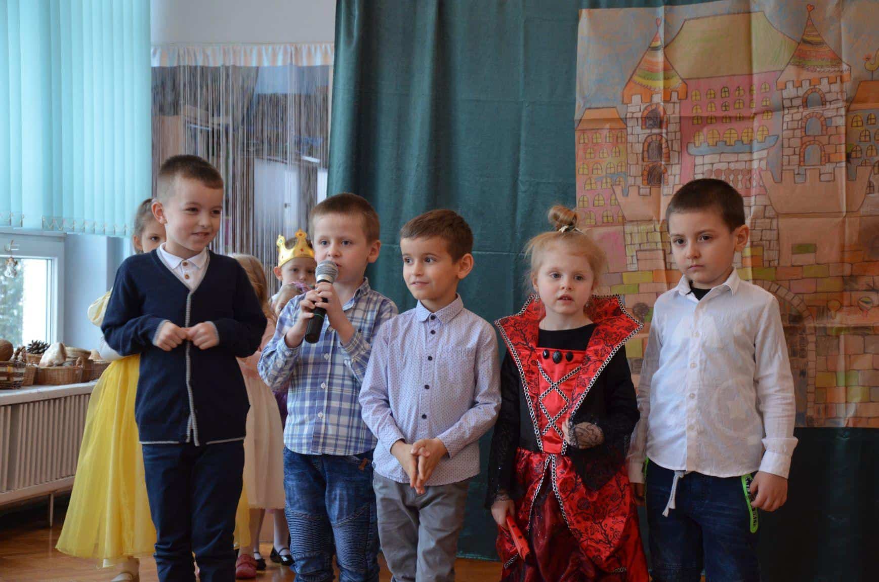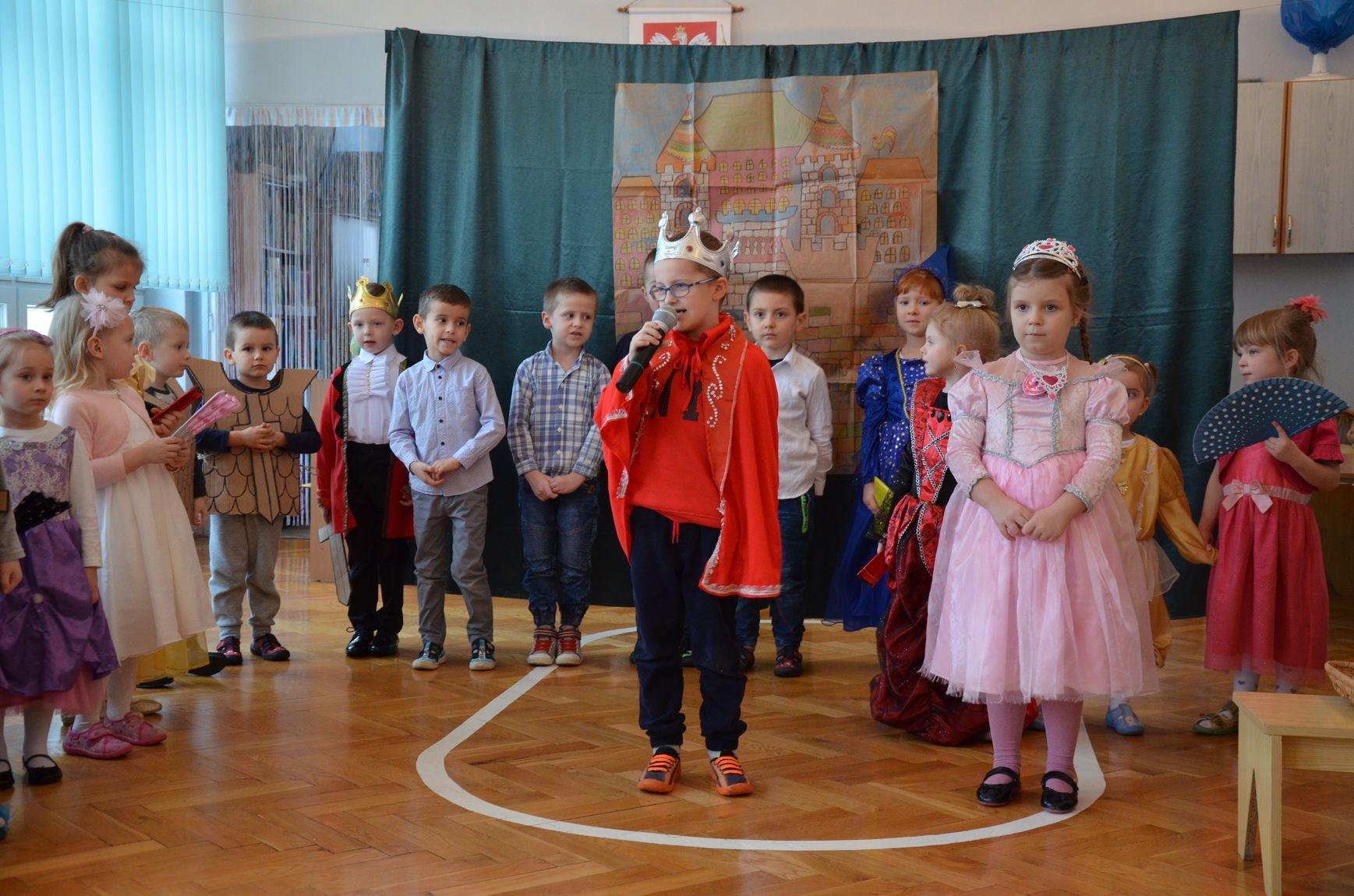 Dzieci z grupy Niebieskiej zaprezentowały teatrzyk „Królewna Gburka”. Przedstawienie obejrzeli rodzice małych aktorów oraz ich koledzy