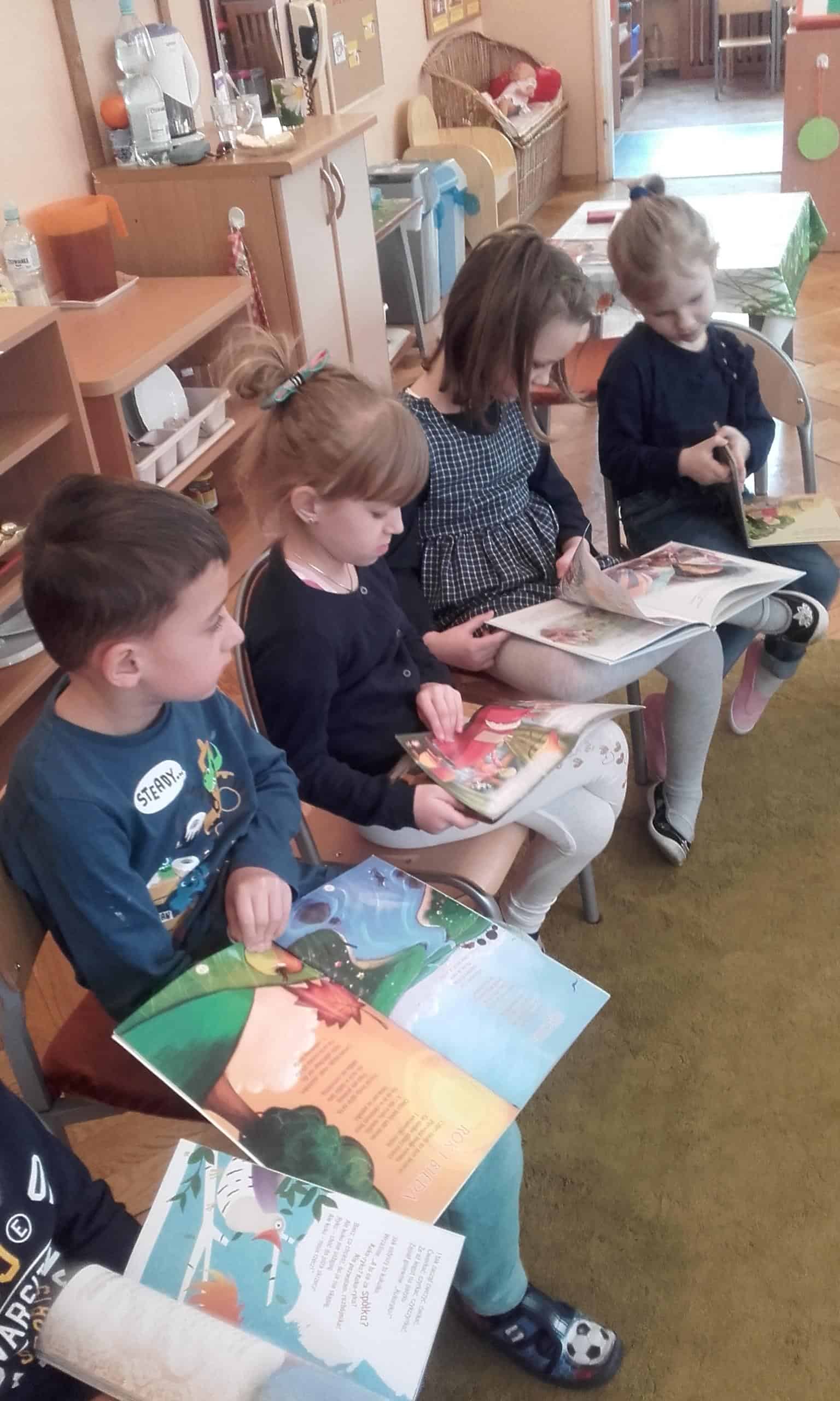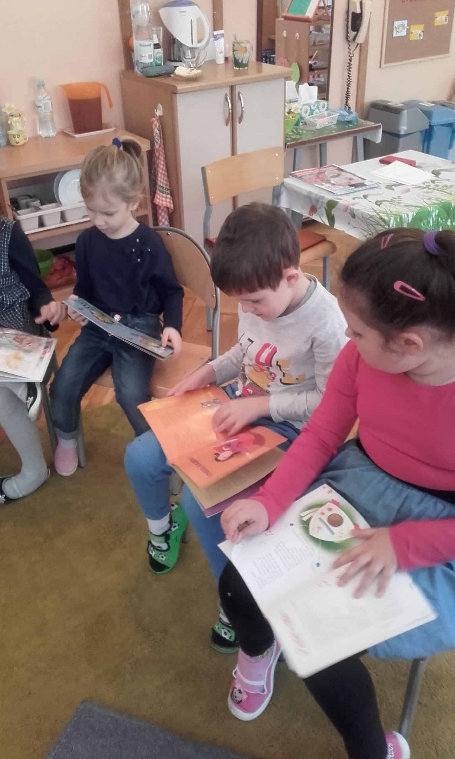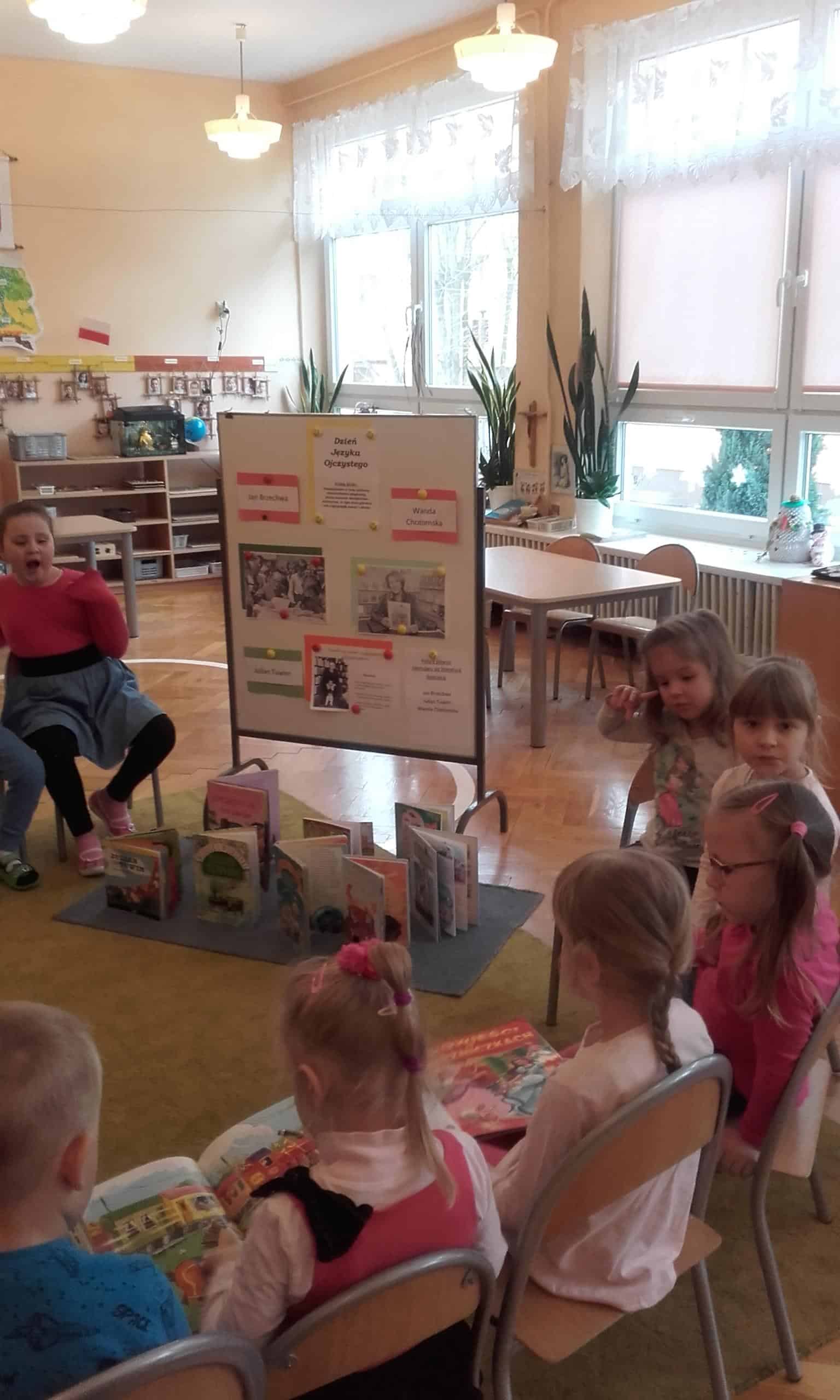 21 luty został ogłoszony Dniem Języka Ojczystego. Święto to zostało ustanowione w celu ochrony różnorodności językowej, która stanowi nasze dziedzictwo kulturowe. W tym dniu kluczową rolę odgrywają mowa i słowa.Tak więc Dzień języka Ojczystego w naszej grupie był wspaniałą okazją do tego, aby dzieci przyniosły do przedszkola swoje ulubione książki. Była to również okazja do zapoznania dzieci z twórczością najbardziej znanych polskich pisarzy zajmujących się literaturę dziecięcą. Dzieci miały okazję poznać sylwetkę Juliana Tuwima, Jana Brzechwy i Wandy Chotomskiej. Jak się okazało prawie w każdym domu znajdują się książki z zabawnymi utworami Tuwima, Brzechwy, które stanowią klasykę polskiej literatury dziecięcej. Ich utwory to również świetna zabawa dla najmłodszych czytelników. Po odczytaniu znanych wierszy Tuwima i Brzechwy dzieci szybko zorientowały się, że to zabawny świat pełen przygód, w którym głównymi bohaterami są między innymi zwierzęta i rośliny. Wszystkie utwory zawierają humor, oraz niekiedy zaskakujące zakończenie, uczą, wychowują, ośmieszają naganne zachowanie, a pochwalają dobre. Kontynuatorką tradycji Tuwima i Brzechwy była również Wanda Chotomska – jak się okazało przygody Martynki jej autorstwa są dzieciom dobrze znane. W swoich utworach Chotomska podaje dzieciom informacje o otaczających świecie, podkreśla wagę przyjaźni, kształtuje kulturę uczuć i dobre obyczaje. Na zakończenie każde dziecko mogło przedstawić swoją ulubiona książkę. Ciekawym elementem tego zajęcia była zabawa w tzw. łamańce językowe. Próby bezbłędnego wypowiedzenia „stół z powyłamywanymi nogami”, czy też „w czasie suszy szosa sucha” była dla wszystkich nie lada wyzwaniem i wyzwoliły mnóstwo śmiechu. Skojarzenie treści wiersza, czy fragmentu bajki z ilustracją, czy też z rekwizytem bardzo zaangażowało dzieci. Czytajmy dzieciom codziennie, książka to towarzysz dzieciństwa wielu pokoleń.