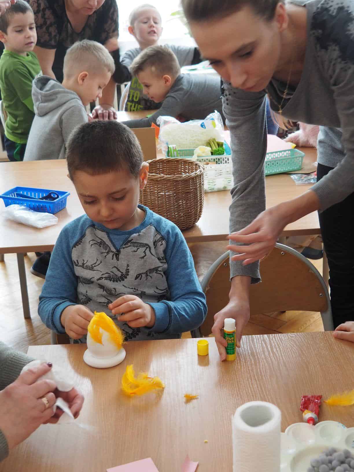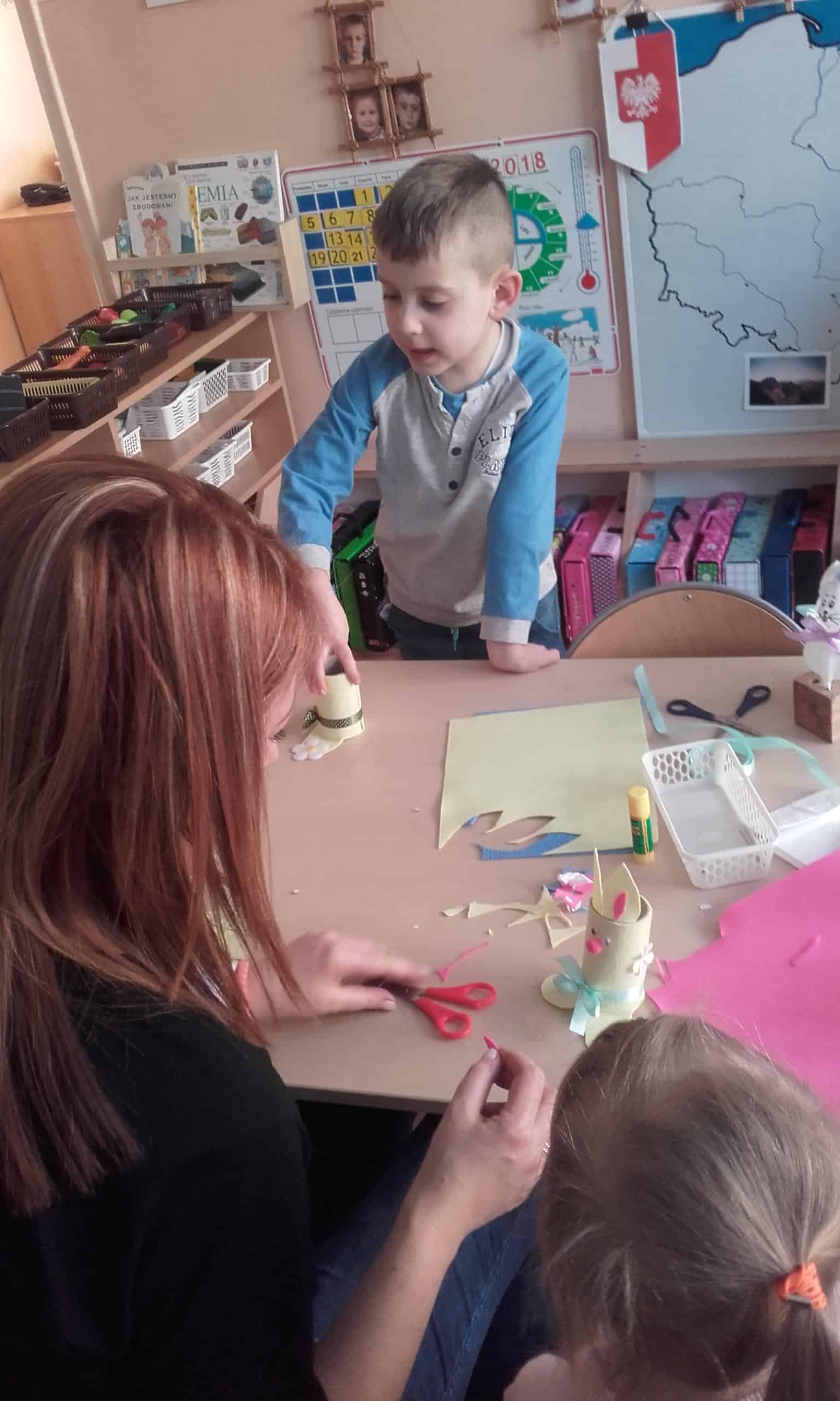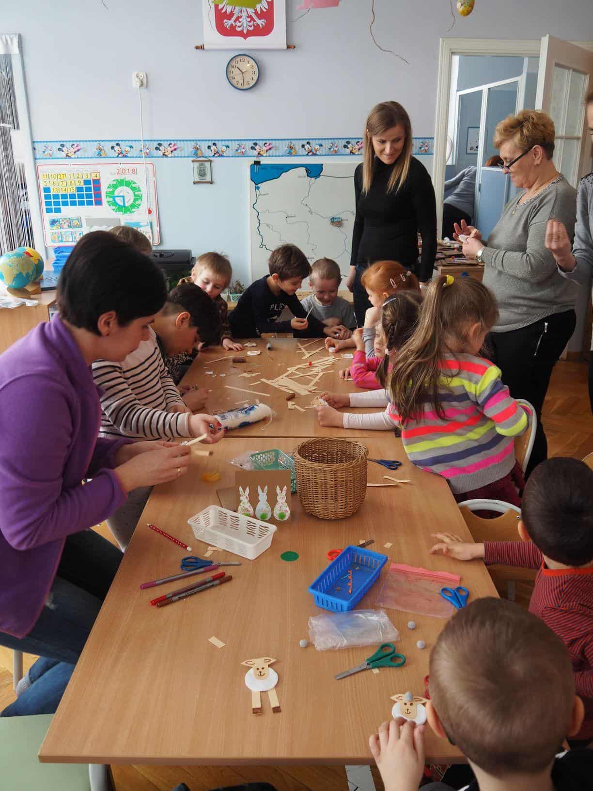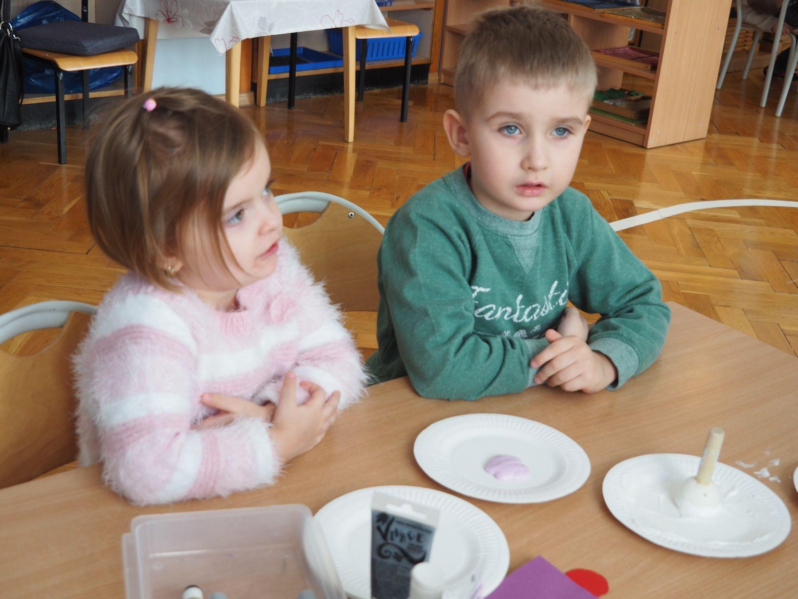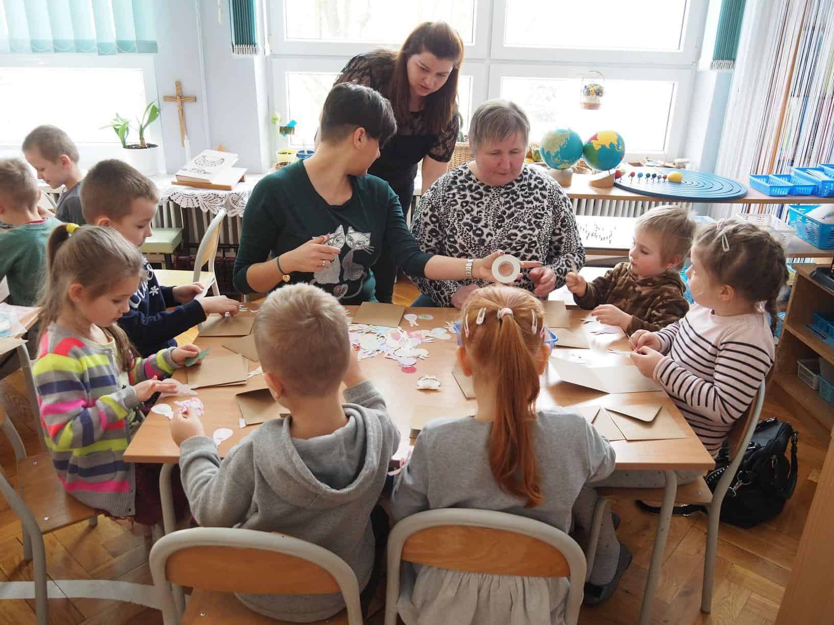 26 marca dzieci z grupy Czerwonej odbyły wycieczkę do Ośrodka Rehabilitacyjno – Edukacyjno – Wychowawczego im. K. Rajtar w Jarosławiu, aby w imieniu całego przedszkola przekazać datki, które udało nam się zebrać na leczenia i rehabilitację psa Leosia dotkniętego choroba nowotworową. Pan terapeuta, będący zarazem opiekunem psa, mówił nam o udziale Leosia w terapii dzieci i młodzieży z niepełnosprawnością intelektualną i z autyzmem. Opowiadał jak jego podopieczny pomaga dzieciom w wyzbyciu się lęku i w pokonywaniu różnych trudności. Wspominał jak usprawnia zaburzone funkcje, rozwija koordynację wzrokowo – ruchową oraz wyzwala aktywność głosową osób niemówiących i kształtuje ich kwalifikacje społeczne. Po części wstępnej zostaliśmy zaproszeni do udziału w pokazach umiejętności Leosia. Pod czujnym okiem terapeuty dzieci obserwowały i brały udział w zabawach z psiakiem, który odnajdywał smakołyki chowane przez dzieci lub zjadał z łapy przysmaki, których nazwy dzieci szeptały mu do ucha. Atrakcjom i radości nie było końca, bo po zabawach z psem panie terapeutki włączyły nas do zabaw z dziećmi mającymi wówczas zajęcia. Były zabawy z chustą Klanza i nauka języka migowego. Dzieci uchyliły nam rąbek swojego świata dzięki elektronicznym i tradycyjnym książkom pisanym za pomocą piktogramów. Na koniec wzięliśmy udział w zbiórce prężnie działającej grupy harcerskiej pod nazwą „Słoneczna Gromada” a dzięki nowoczesnej technologii mogliśmy połączyć się harcerzami z odległego Rokitna. Z donośnym okrzykiem „Czuwaj”, słodkościami, którymi zostaliśmy poczęstowani, uśmiechem na twarzy i sercem pełnym wrażeń wróciliśmy do przedszkola.