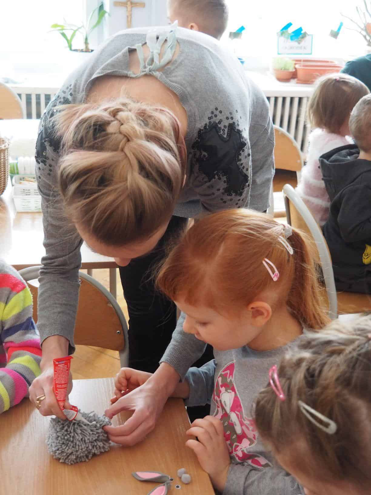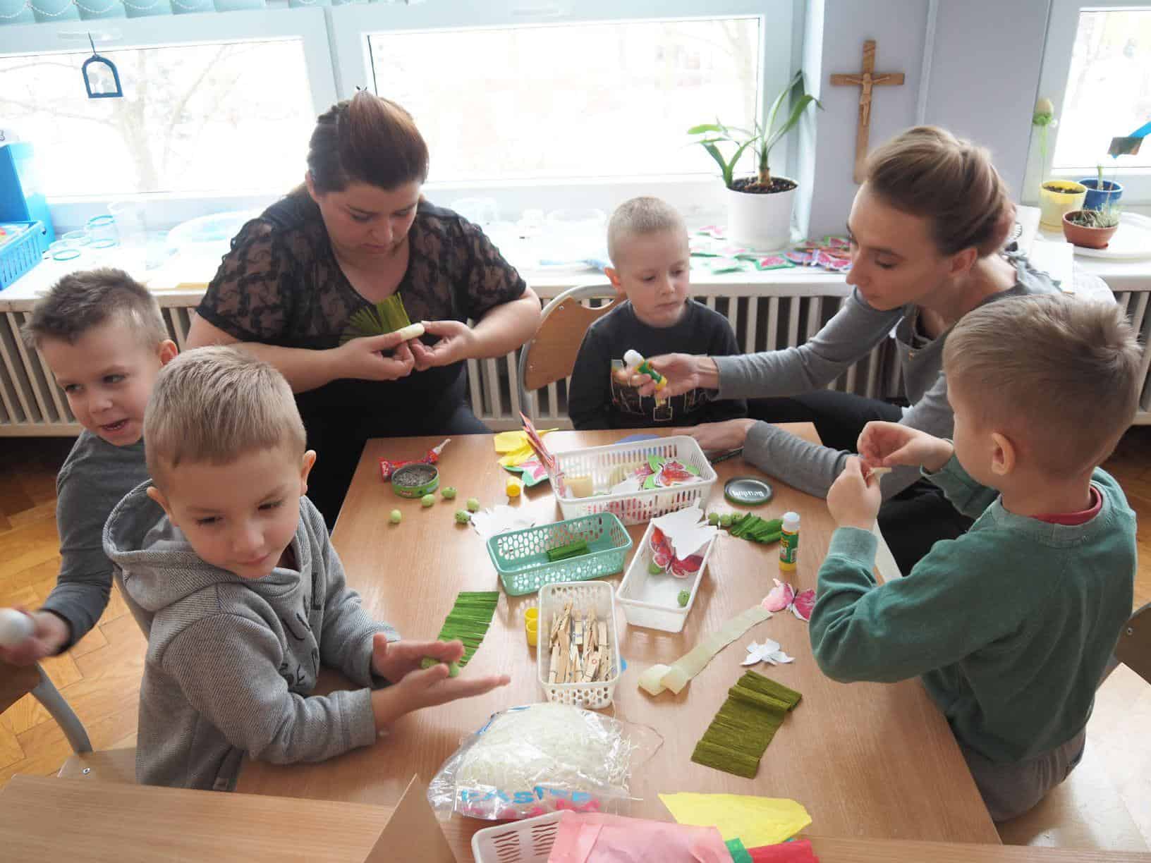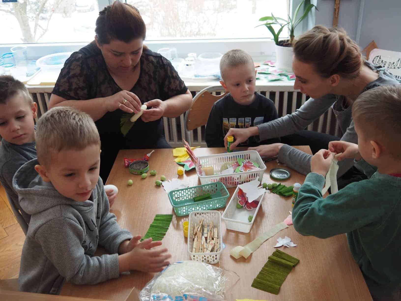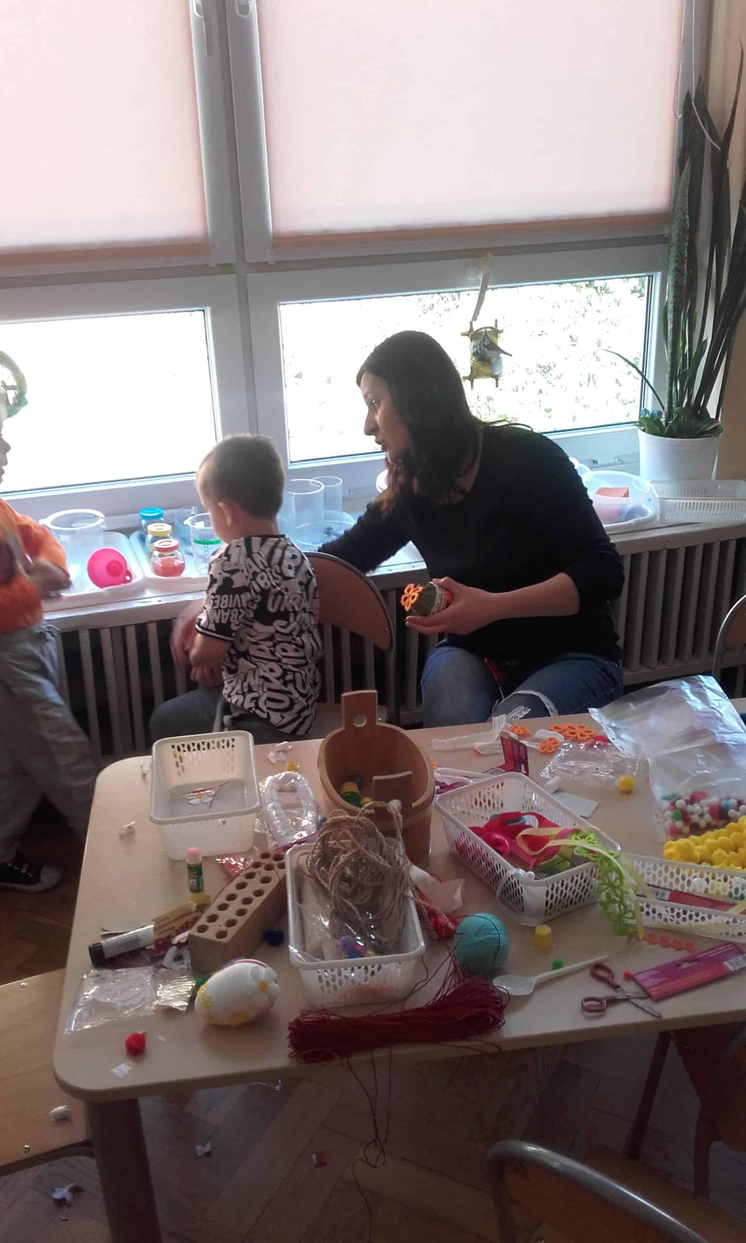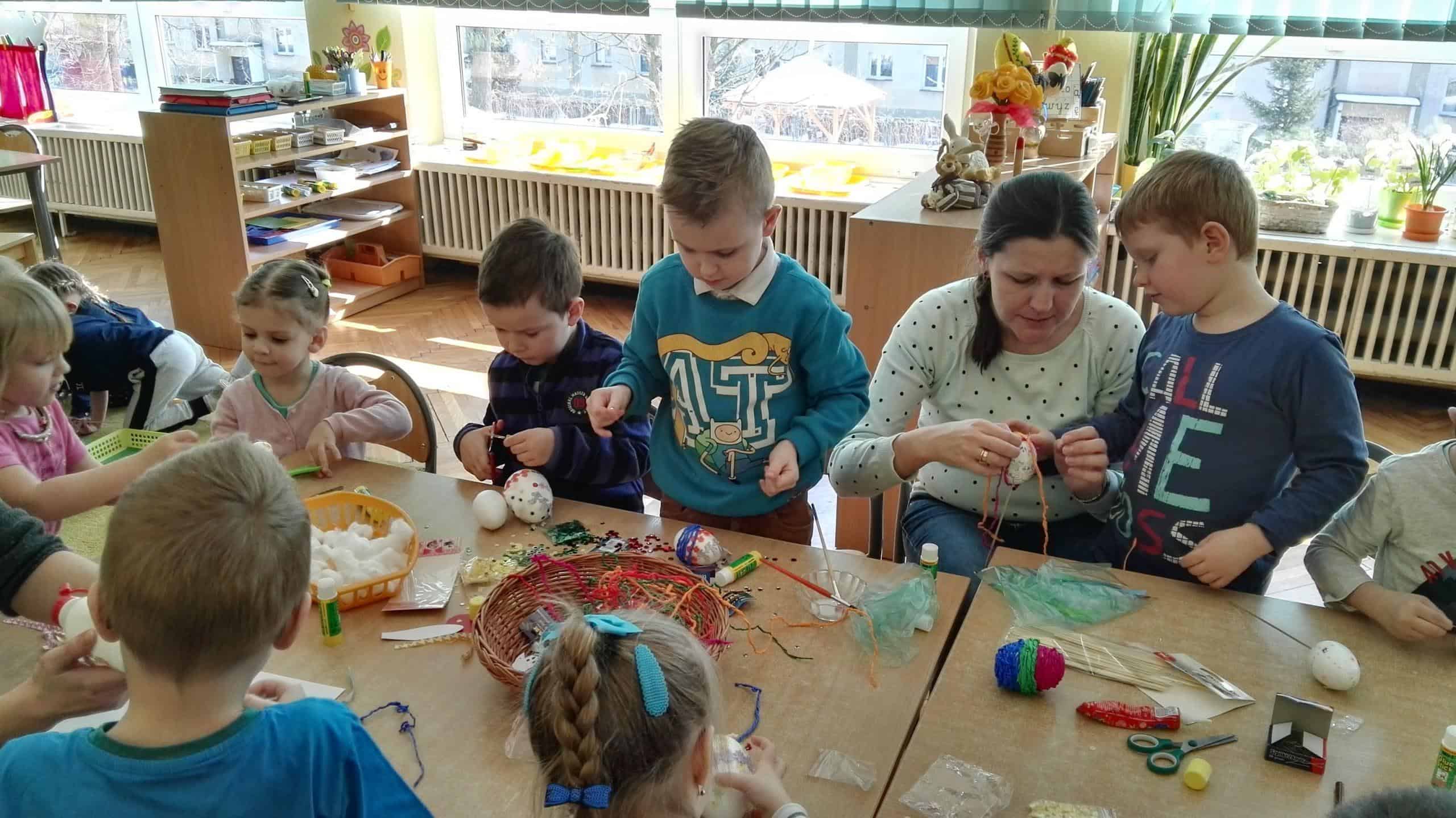 26 marca dzieci z grupy Czerwonej odbyły wycieczkę do Ośrodka Rehabilitacyjno – Edukacyjno – Wychowawczego im. K. Rajtar w Jarosławiu, aby w imieniu całego przedszkola przekazać datki, które udało nam się zebrać na leczenia i rehabilitację psa Leosia dotkniętego choroba nowotworową. Pan terapeuta, będący zarazem opiekunem psa, mówił nam o udziale Leosia w terapii dzieci i młodzieży z niepełnosprawnością intelektualną i z autyzmem. Opowiadał jak jego podopieczny pomaga dzieciom w wyzbyciu się lęku i w pokonywaniu różnych trudności. Wspominał jak usprawnia zaburzone funkcje, rozwija koordynację wzrokowo – ruchową oraz wyzwala aktywność głosową osób niemówiących i kształtuje ich kwalifikacje społeczne. Po części wstępnej zostaliśmy zaproszeni do udziału w pokazach umiejętności Leosia. Pod czujnym okiem terapeuty dzieci obserwowały i brały udział w zabawach z psiakiem, który odnajdywał smakołyki chowane przez dzieci lub zjadał z łapy przysmaki, których nazwy dzieci szeptały mu do ucha. Atrakcjom i radości nie było końca, bo po zabawach z psem panie terapeutki włączyły nas do zabaw z dziećmi mającymi wówczas zajęcia. Były zabawy z chustą Klanza i nauka języka migowego. Dzieci uchyliły nam rąbek swojego świata dzięki elektronicznym i tradycyjnym książkom pisanym za pomocą piktogramów. Na koniec wzięliśmy udział w zbiórce prężnie działającej grupy harcerskiej pod nazwą „Słoneczna Gromada” a dzięki nowoczesnej technologii mogliśmy połączyć się harcerzami z odległego Rokitna. Z donośnym okrzykiem „Czuwaj”, słodkościami, którymi zostaliśmy poczęstowani, uśmiechem na twarzy i sercem pełnym wrażeń wróciliśmy do przedszkola.