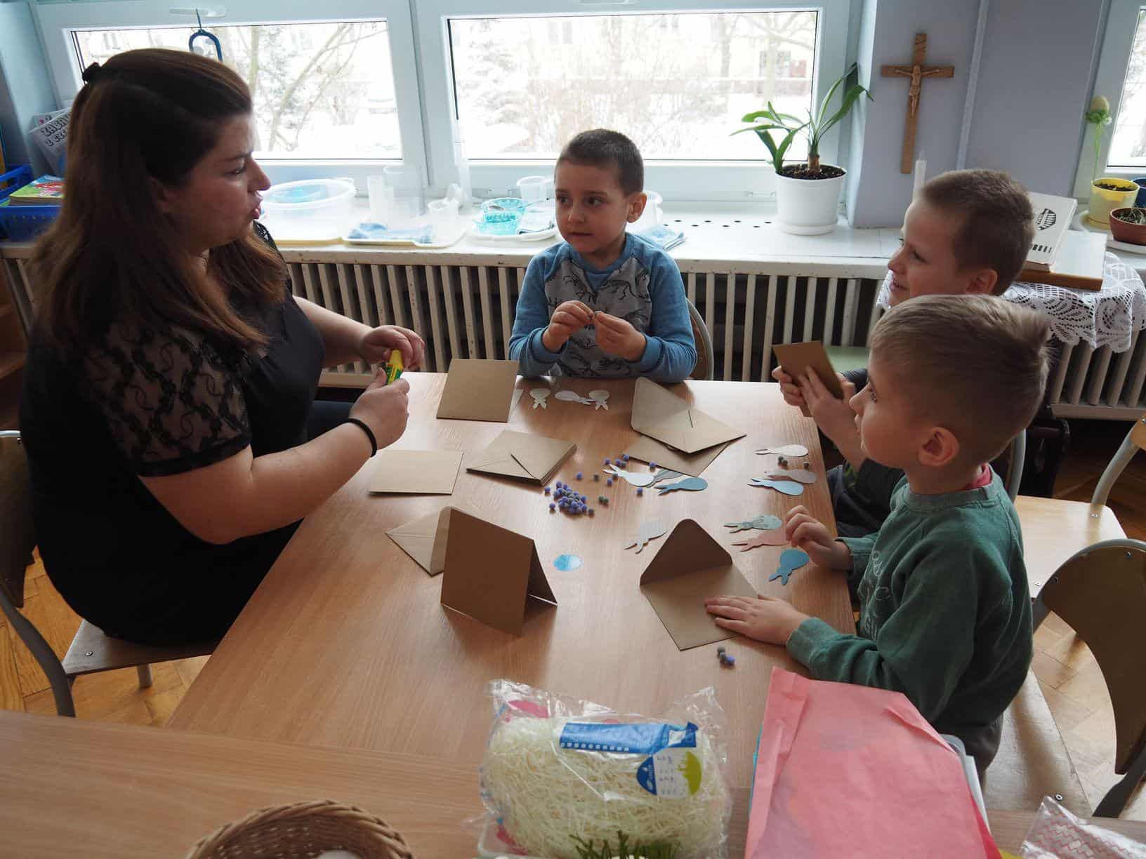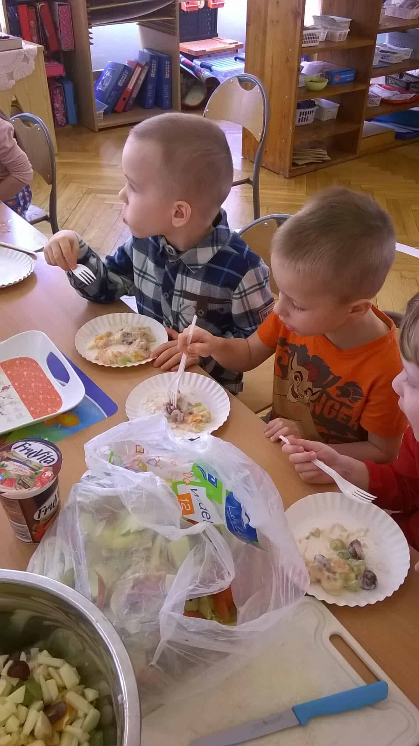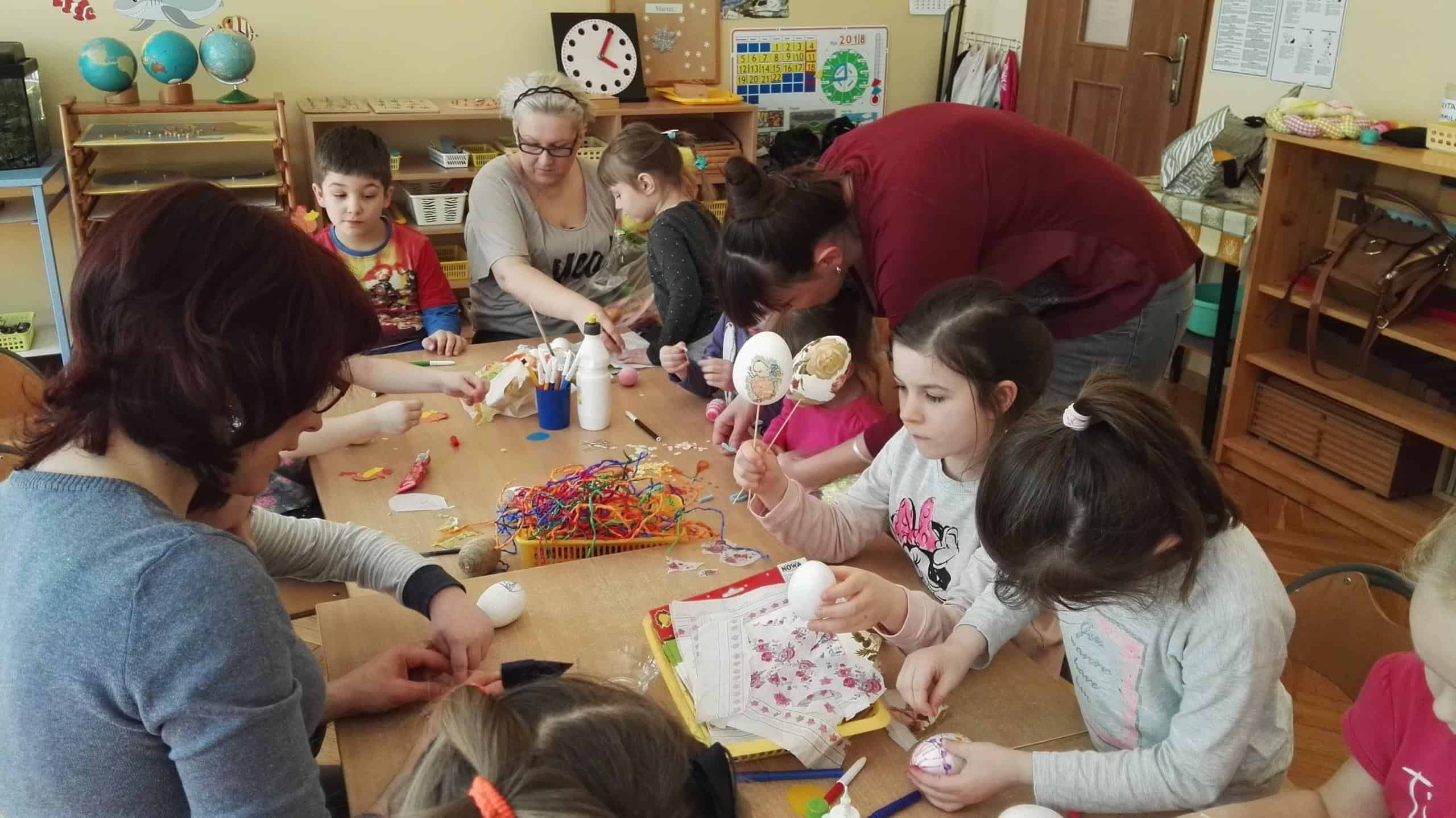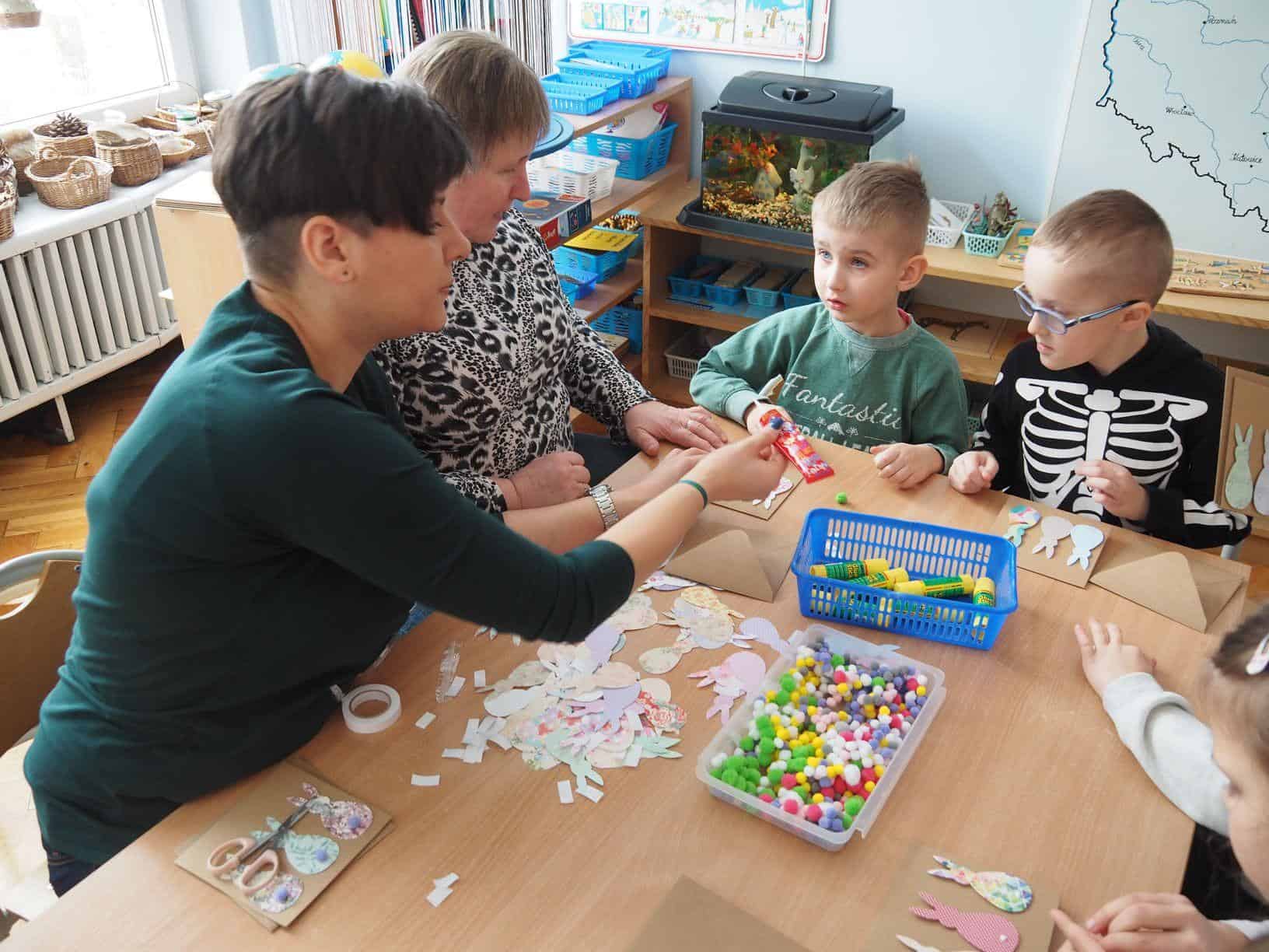 26 marca dzieci z grupy Czerwonej odbyły wycieczkę do Ośrodka Rehabilitacyjno – Edukacyjno – Wychowawczego im. K. Rajtar w Jarosławiu, aby w imieniu całego przedszkola przekazać datki, które udało nam się zebrać na leczenia i rehabilitację psa Leosia dotkniętego choroba nowotworową. Pan terapeuta, będący zarazem opiekunem psa, mówił nam o udziale Leosia w terapii dzieci i młodzieży z niepełnosprawnością intelektualną i z autyzmem. Opowiadał jak jego podopieczny pomaga dzieciom w wyzbyciu się lęku i w pokonywaniu różnych trudności. Wspominał jak usprawnia zaburzone funkcje, rozwija koordynację wzrokowo – ruchową oraz wyzwala aktywność głosową osób niemówiących i kształtuje ich kwalifikacje społeczne. Po części wstępnej zostaliśmy zaproszeni do udziału w pokazach umiejętności Leosia. Pod czujnym okiem terapeuty dzieci obserwowały i brały udział w zabawach z psiakiem, który odnajdywał smakołyki chowane przez dzieci lub zjadał z łapy przysmaki, których nazwy dzieci szeptały mu do ucha. Atrakcjom i radości nie było końca, bo po zabawach z psem panie terapeutki włączyły nas do zabaw z dziećmi mającymi wówczas zajęcia. Były zabawy z chustą Klanza i nauka języka migowego. Dzieci uchyliły nam rąbek swojego świata dzięki elektronicznym i tradycyjnym książkom pisanym za pomocą piktogramów. Na koniec wzięliśmy udział w zbiórce prężnie działającej grupy harcerskiej pod nazwą „Słoneczna Gromada” a dzięki nowoczesnej technologii mogliśmy połączyć się harcerzami z odległego Rokitna. Z donośnym okrzykiem „Czuwaj”, słodkościami, którymi zostaliśmy poczęstowani, uśmiechem na twarzy i sercem pełnym wrażeń wróciliśmy do przedszkola.