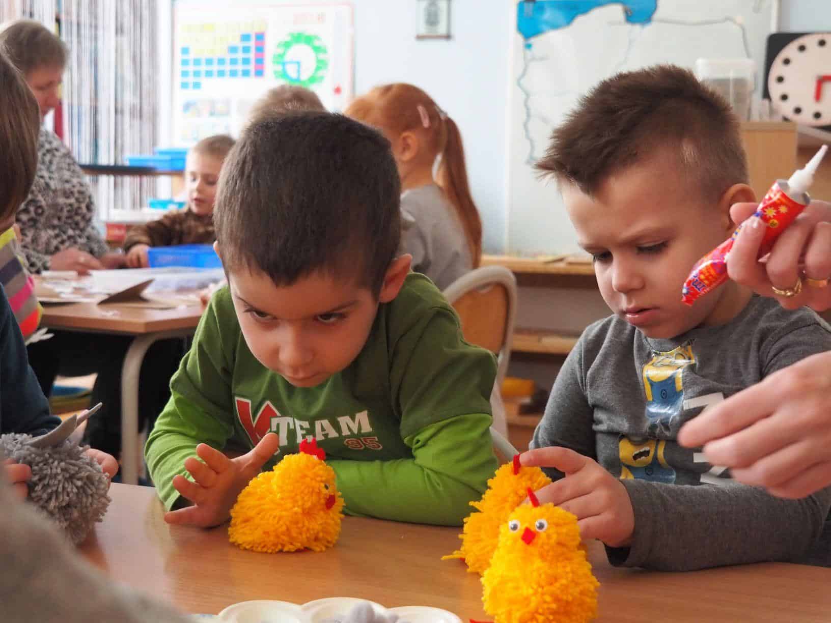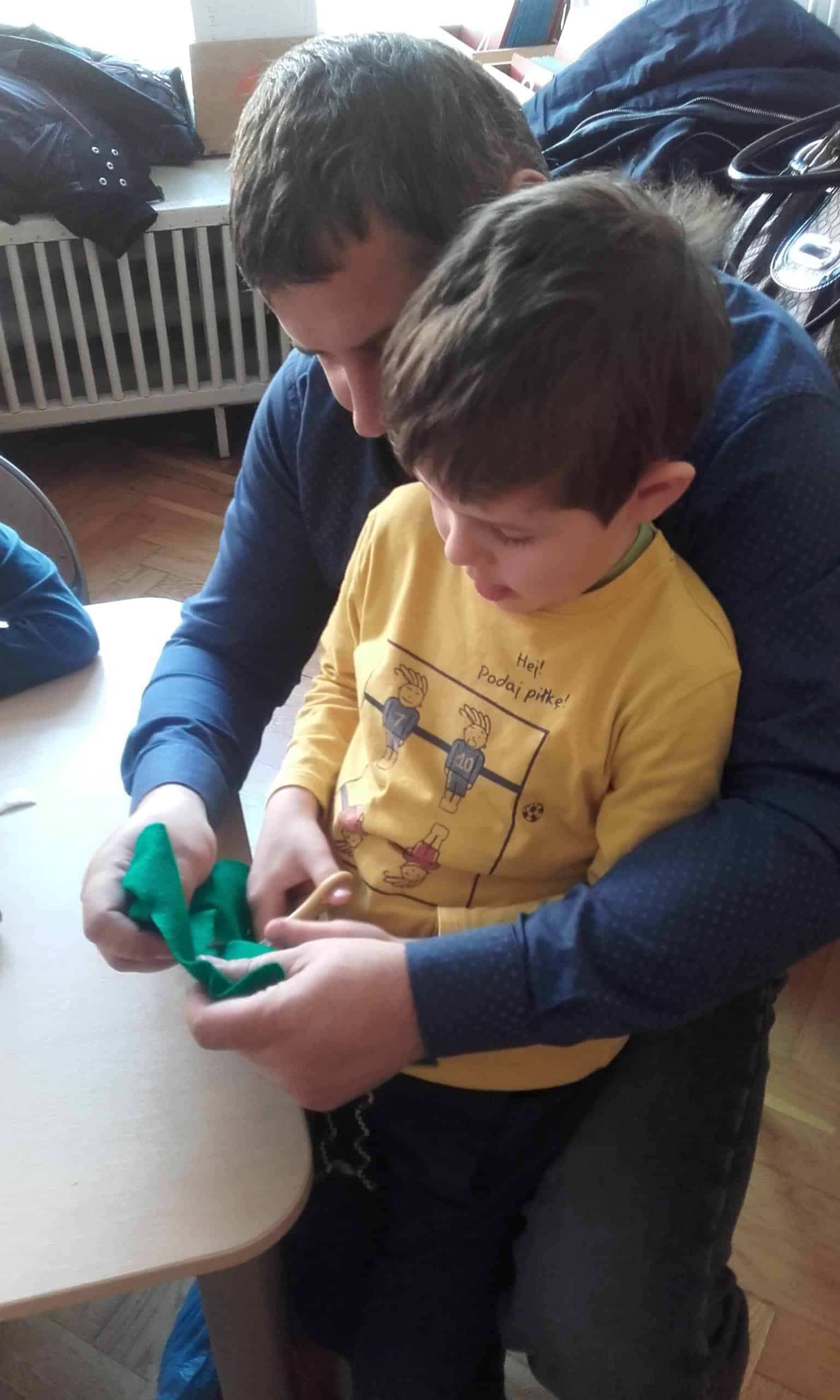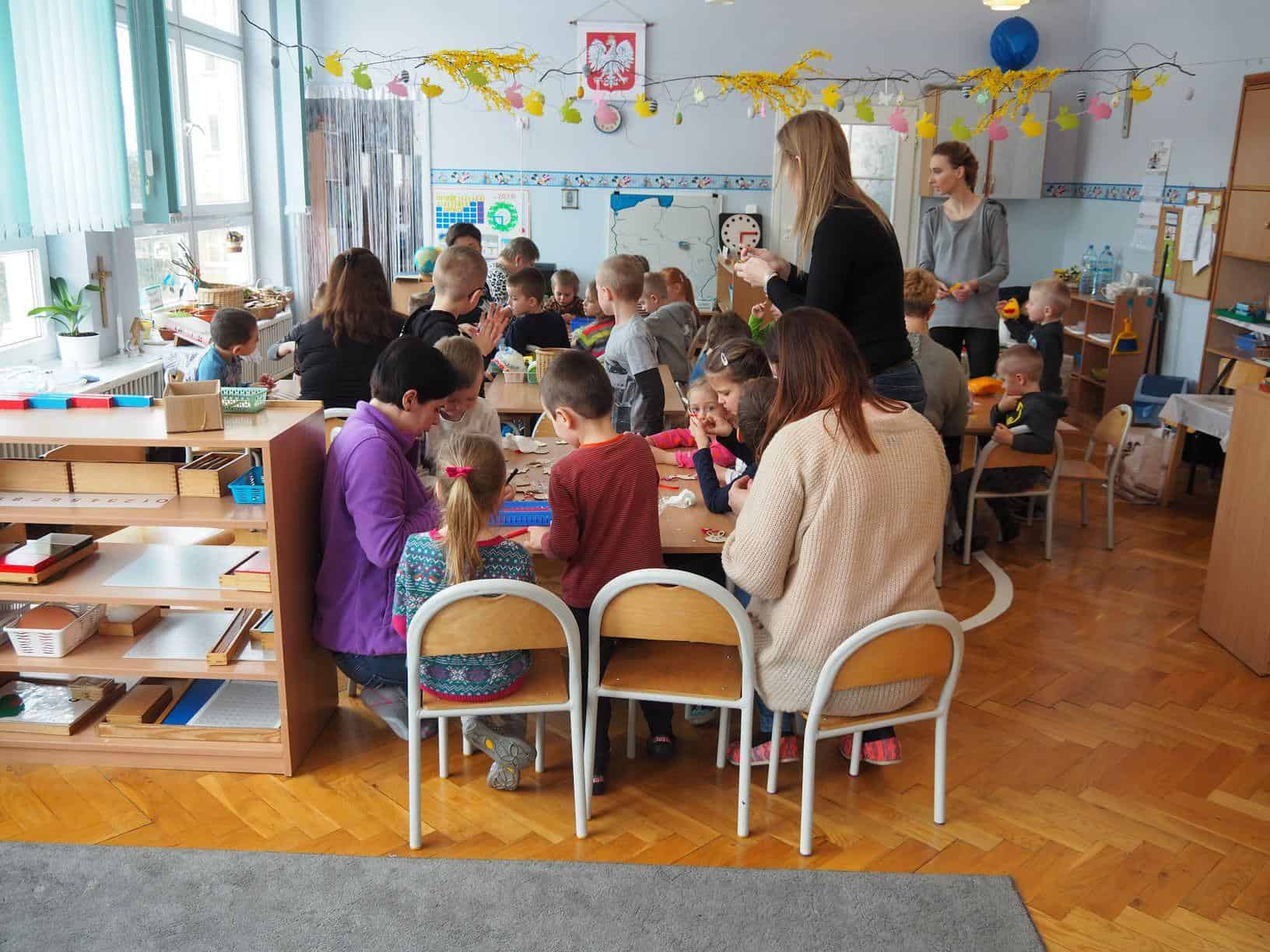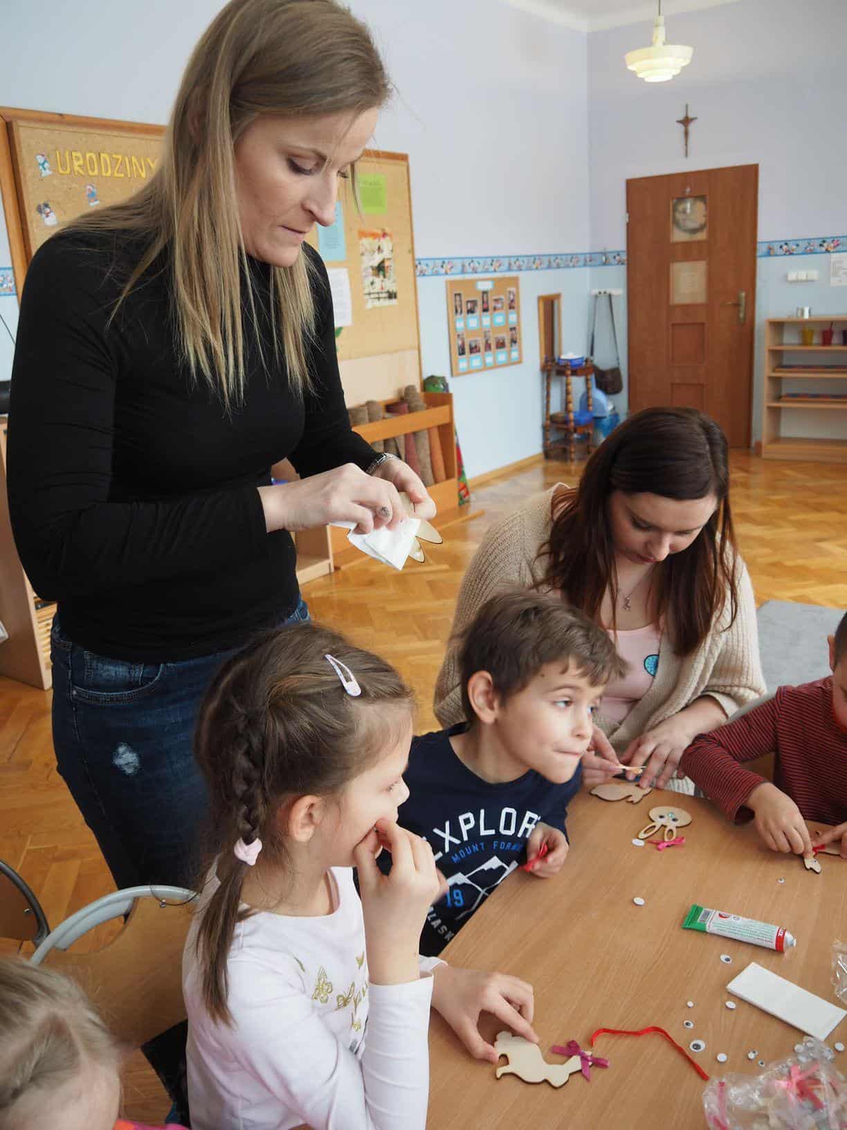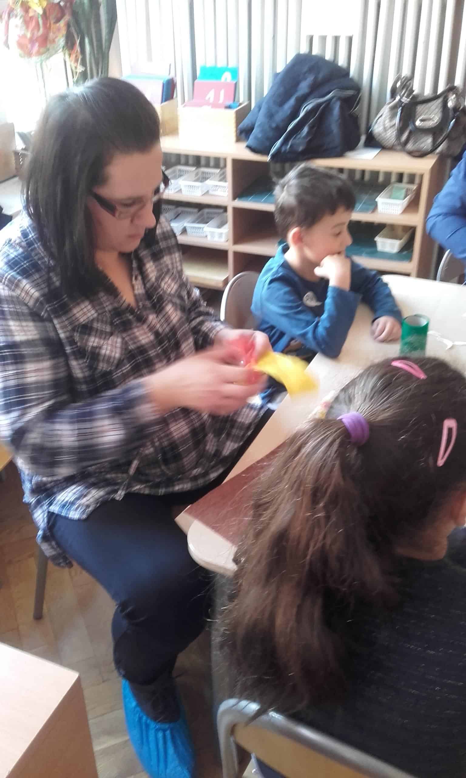 26 marca dzieci z grupy Czerwonej odbyły wycieczkę do Ośrodka Rehabilitacyjno – Edukacyjno – Wychowawczego im. K. Rajtar w Jarosławiu, aby w imieniu całego przedszkola przekazać datki, które udało nam się zebrać na leczenia i rehabilitację psa Leosia dotkniętego choroba nowotworową. Pan terapeuta, będący zarazem opiekunem psa, mówił nam o udziale Leosia w terapii dzieci i młodzieży z niepełnosprawnością intelektualną i z autyzmem. Opowiadał jak jego podopieczny pomaga dzieciom w wyzbyciu się lęku i w pokonywaniu różnych trudności. Wspominał jak usprawnia zaburzone funkcje, rozwija koordynację wzrokowo – ruchową oraz wyzwala aktywność głosową osób niemówiących i kształtuje ich kwalifikacje społeczne. Po części wstępnej zostaliśmy zaproszeni do udziału w pokazach umiejętności Leosia. Pod czujnym okiem terapeuty dzieci obserwowały i brały udział w zabawach z psiakiem, który odnajdywał smakołyki chowane przez dzieci lub zjadał z łapy przysmaki, których nazwy dzieci szeptały mu do ucha. Atrakcjom i radości nie było końca, bo po zabawach z psem panie terapeutki włączyły nas do zabaw z dziećmi mającymi wówczas zajęcia. Były zabawy z chustą Klanza i nauka języka migowego. Dzieci uchyliły nam rąbek swojego świata dzięki elektronicznym i tradycyjnym książkom pisanym za pomocą piktogramów. Na koniec wzięliśmy udział w zbiórce prężnie działającej grupy harcerskiej pod nazwą „Słoneczna Gromada” a dzięki nowoczesnej technologii mogliśmy połączyć się harcerzami z odległego Rokitna. Z donośnym okrzykiem „Czuwaj”, słodkościami, którymi zostaliśmy poczęstowani, uśmiechem na twarzy i sercem pełnym wrażeń wróciliśmy do przedszkola.