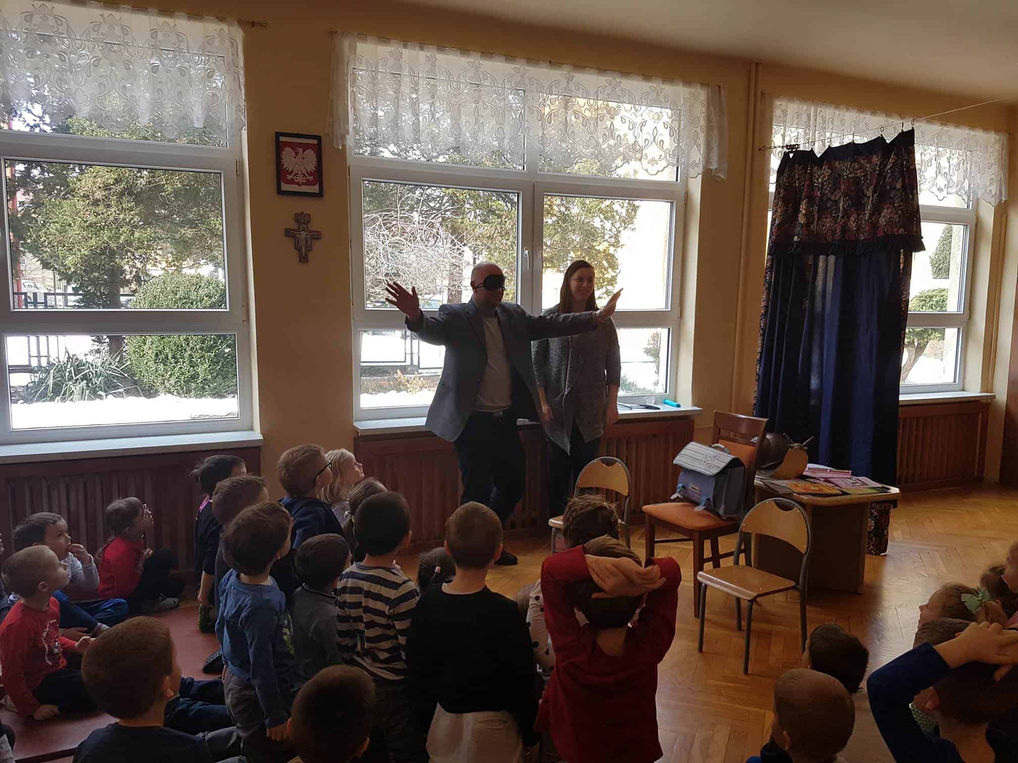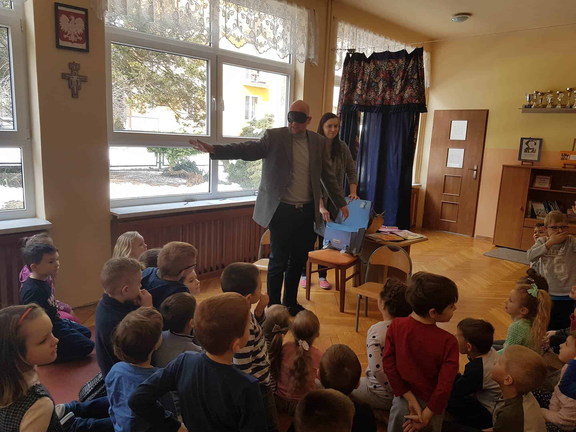 Wspólnie z panem Krzysztofem zainscenizowaliśmy utwór Baran u lekarza. Dzieci bardzo lubią ten wierszyk, opowiadający o baranie, który nie umiał powiedzieć u lekarza AAA… Autor obiecał, że podczas następnego spotkania zaprezentuje nam nowe utwory. Czekamy na nie z niecierpliwością, a panu Krzysztofowi bardzo, bardzo dziękujemy.