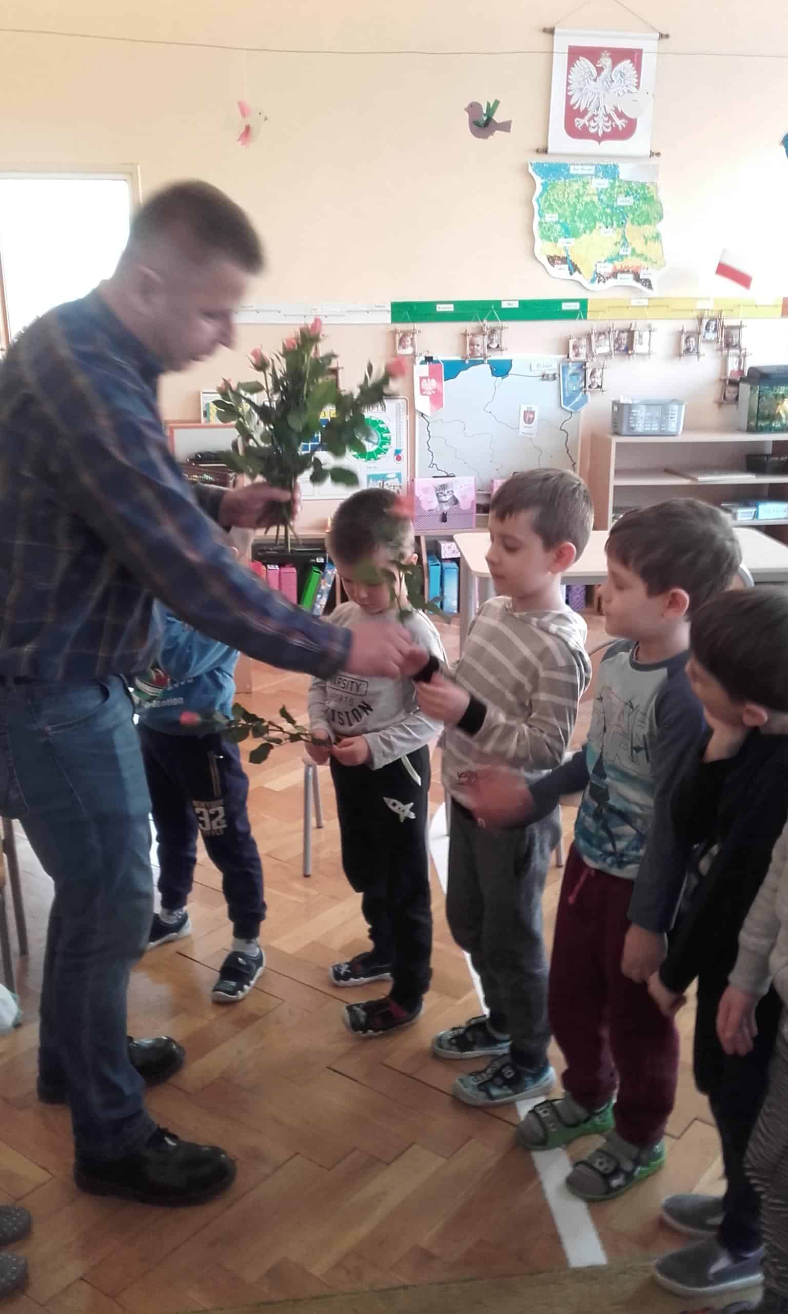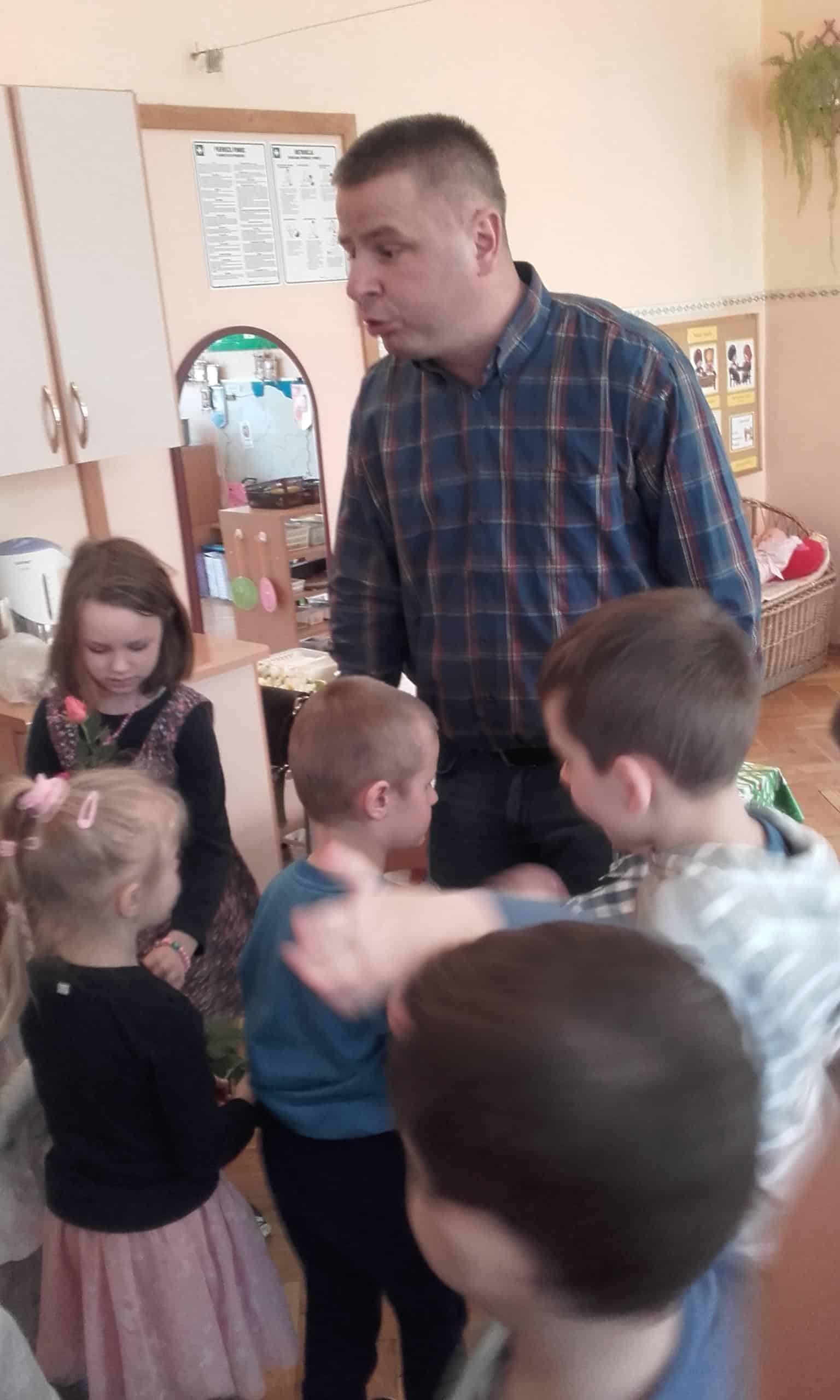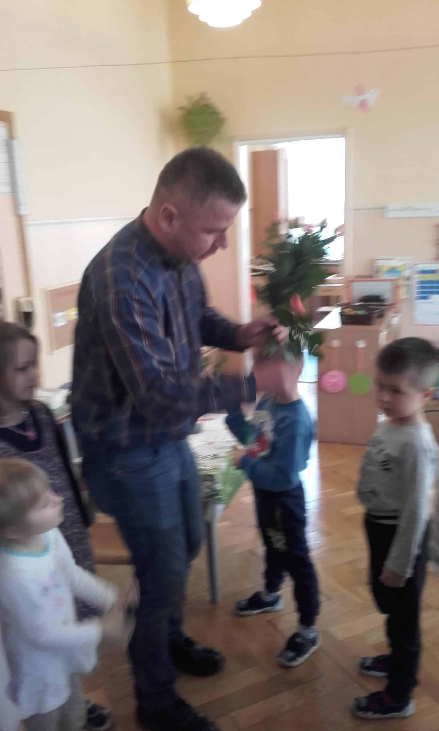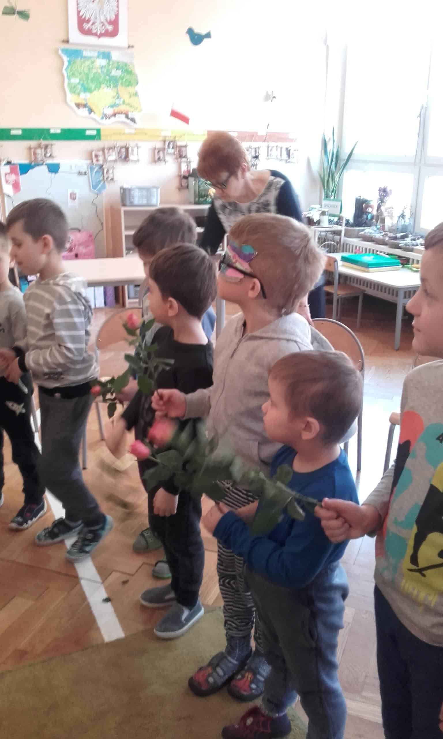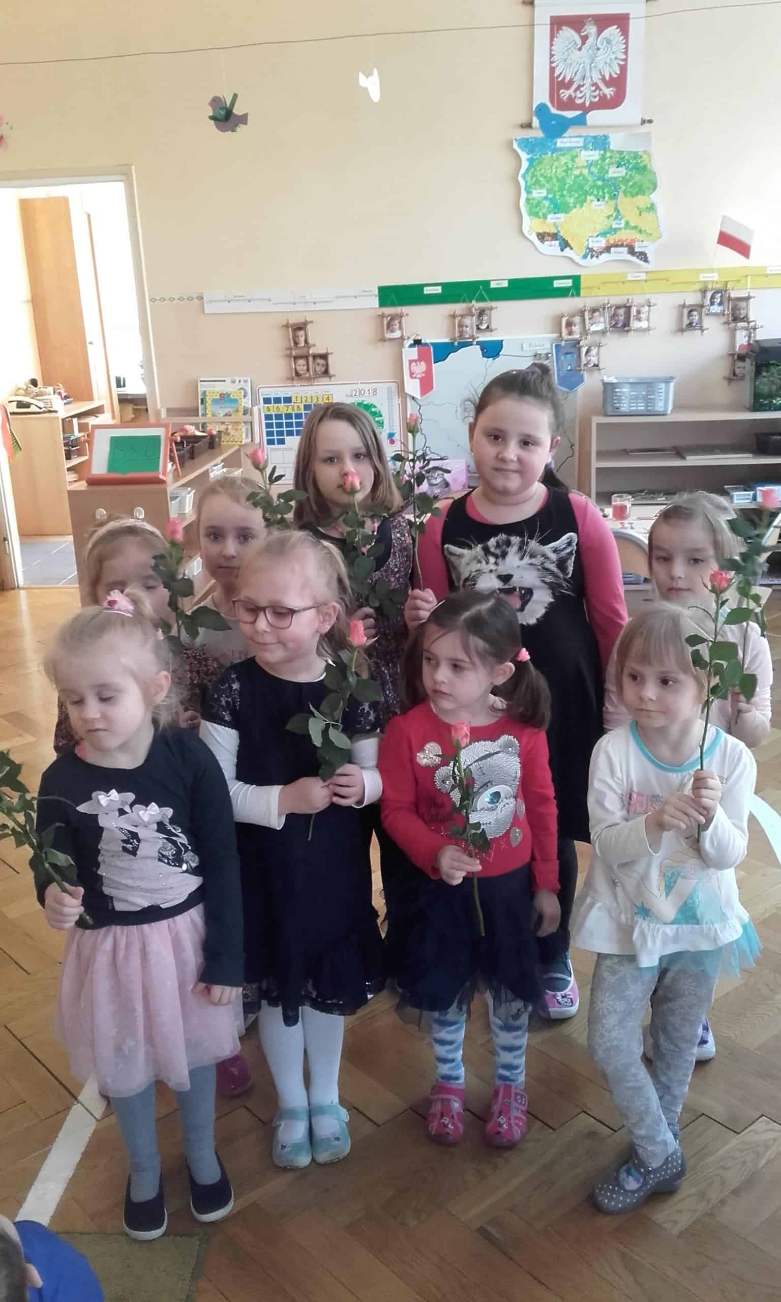 „Marzec czasem wiosną dmucha, czasem znowu zawierucha, jednak w jednym marca dniu słońce świeci tam i tu, bo to dzień szczególny jest – Dniem Kobiet nazywa się!” O tym jak bardzo jest to wyjątkowy dzień już w czwartkowy poranek przekonały się wszystkie Panie i dziewczynki z grupy Pomarańczowej. Była to dla nas ogromna niespodzianka, którą pieczołowicie przygotował Pan Wojciech Hołowacz – tatuś Michałka. To właśnie za sprawą Pana Wojciecha już od rana w sali zapanował ciepły, pogodny i wesoły nastój, a zapach przepięknych, świeżych róż unosił się dookoła. Było bardzo miło, wszystkie dziewczynki i Panie otrzymały piękne róże oraz najserdeczniejsze życzenia. W tym dniu chłopcy wyręczali dziewczynki we wszystkim, sprzątali, podawali do stołu podczas posiłków. Bardzo dziękujemy za pamięć, za życzenia, za kwiaty i słodkie niespodzianki. Wspólne przeżywanie takich wyjątkowych chwil dało nam wszystkim wiele radości. Była to również okazja do rozmowy z dziećmi o roli kobiet w ich życiu- o mamusiach, babciach, siostrach, koleżankach. „Ósmy marca to dzień szczególny i wspaniały dla wszystkich kobiet dużych i małych”. Panu Wojciechowi serdecznie dziękujemy, że zadbał o to, aby ten dzień był dla nas wyjątkowy.