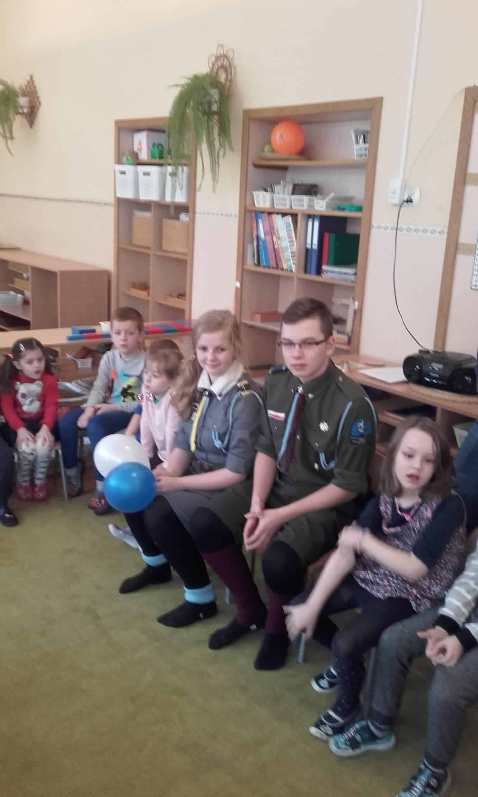 W czwartek 8 marca  z inicjatywy Pana Wojciecha – tatusia Michałka do grupy Pomarańczowej zawitali harcerze. Było to już drugie spotkanie z harcerzami. Druhna  Wiktoria i druh   Tomasz  z  I gromady „Strażnicy wygasłych korytarzy” opowiedzieli dzieciom  o tradycjach harcerskich. Zaprezentowali symbole harcerskie jak np. lilijkę harcerską symbolizującą jedną z najważniejszych powinności harcerza, czyli postępowanie  w zgodzie z prawem harcerskim. Dzieci poznały także tradycyjne pozdrowienie harcerskie  słowem „ Czuwaj” oznaczającym  stałą gotowość do czynu dla Ojczyzny, pracy dla innych i nad sobą. Druhna Wiktoria opowiedziała również o tym jak wyglądaj cotygodniowe zbiórki zuchowe, czego dzieci się tam uczą, czego dowiadują ,jak się bawią,  jakie sprawności harcerskie zdobywają. Mówiła również o tym, jakie warunki trzeba spełnić, aby zostać zuchem. Na zakończenie dzieci mogły uczestniczyć w zabawie „My idziemy na bizony” i zdobyć sprawność harcerską – wiązanie supełków. Jak się okazało było to bardzo dobre ćwiczenie rozwijające  samodzielność, a także sprawność manualną dzieci. Panu Wojciechowi serdecznie dziękujemy za organizację spotkania z harcerzami –  Pan Wojciech ma wspaniałe pomysły i zawsze znajduje czas dla dzieci z Grupy Pomarańczowej – Brawo!