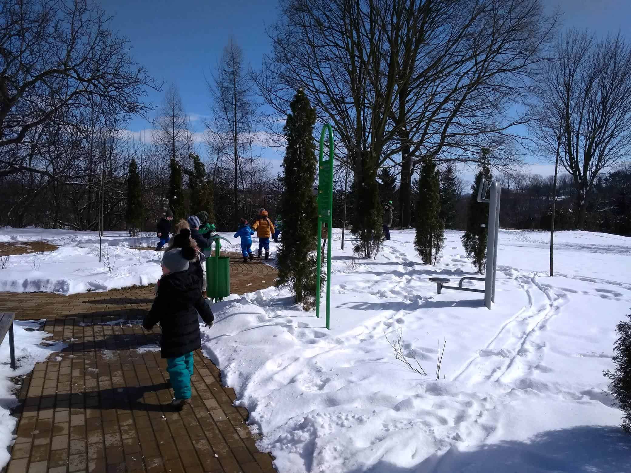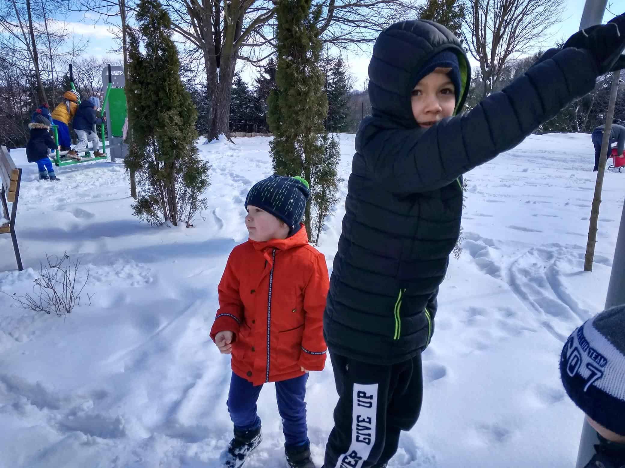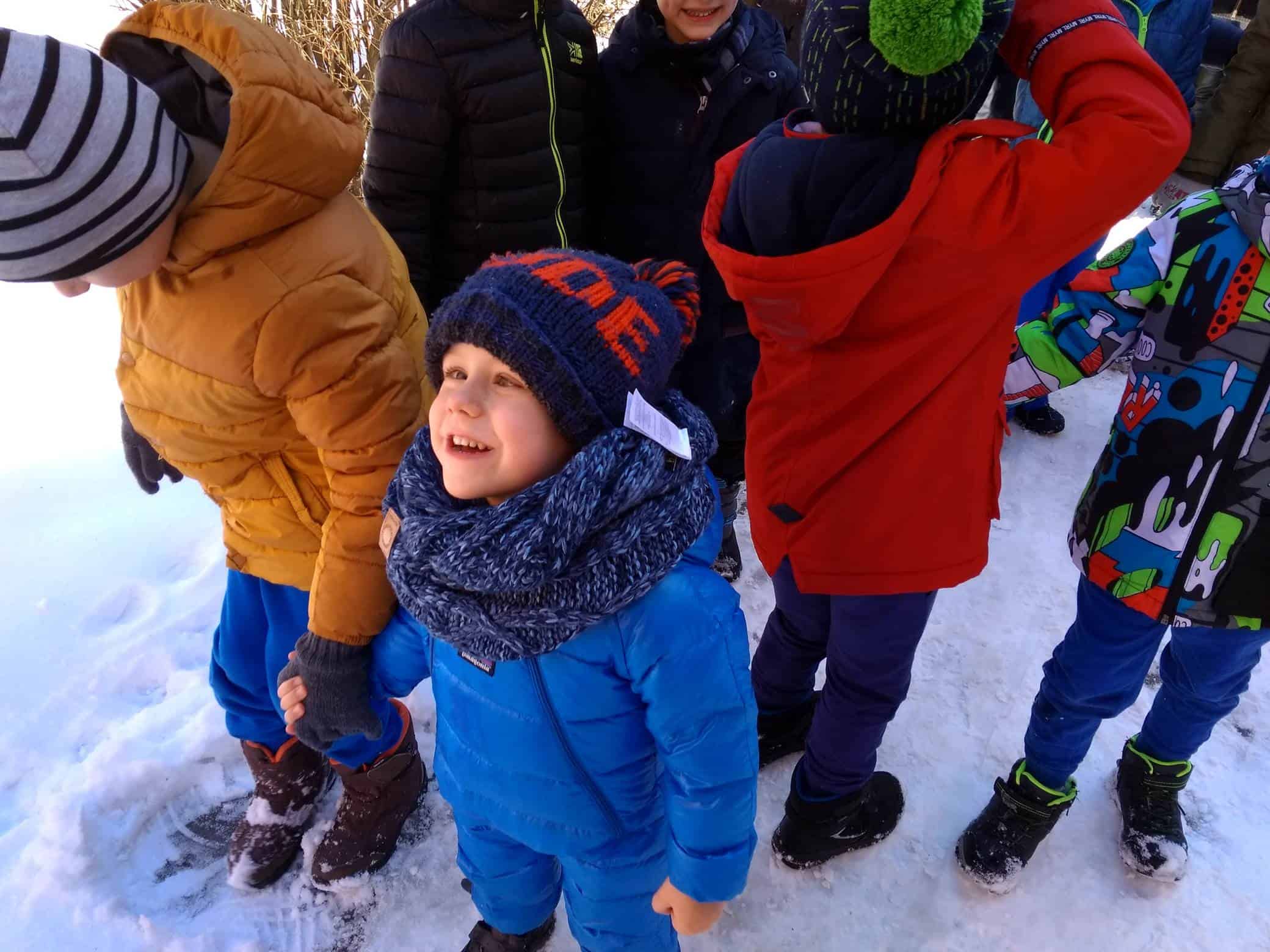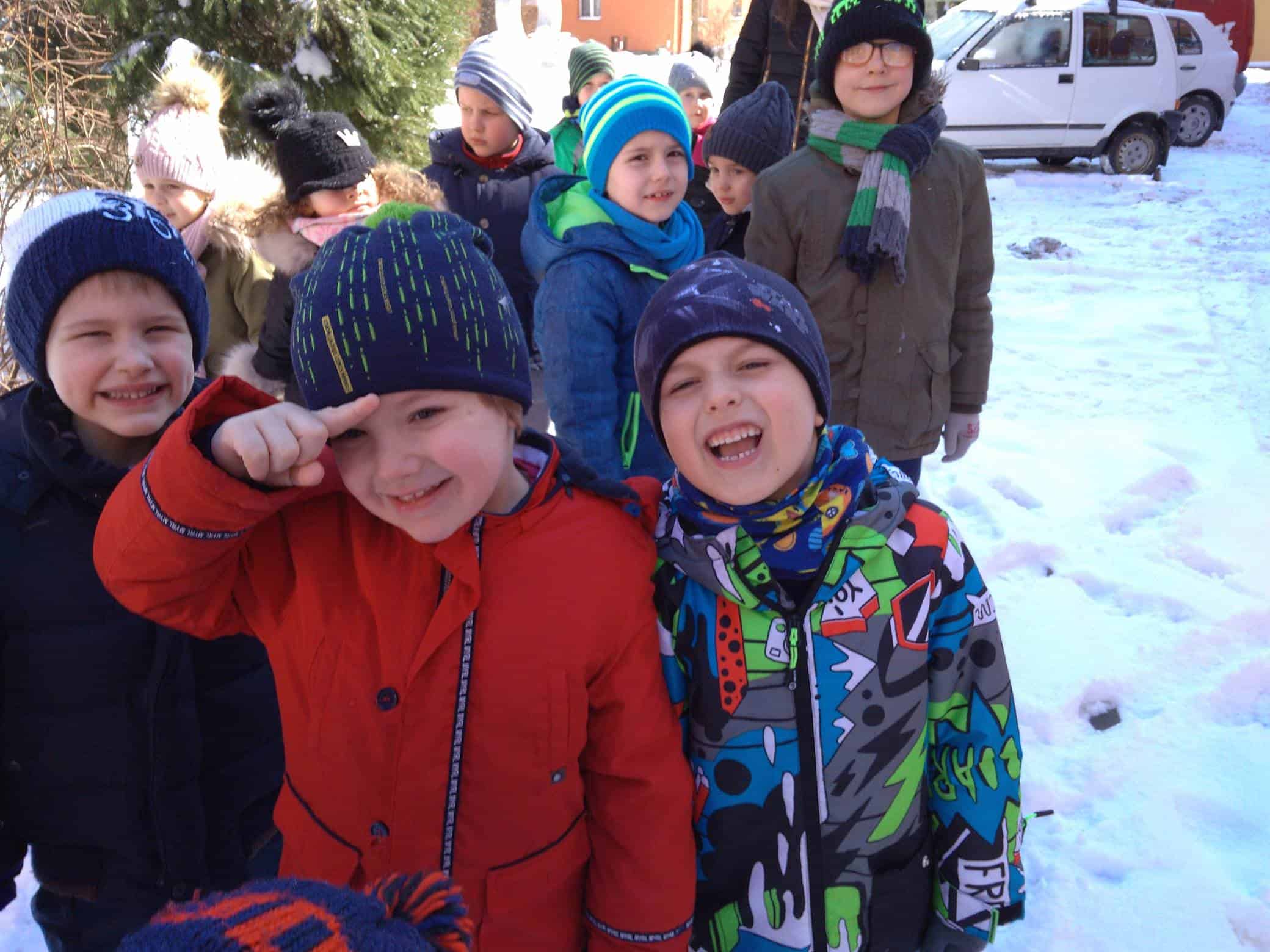 Dzisiaj na lekcji omówiliśmy symptomy wiosny, później poszliśmy jej poszukać. Ubrani całkiem zimowo, staraliśmy się znaleźć jej ślady w przydomowych ogródkach, skwerkach, placach zabaw. Niestety, dzisiaj wiosna zabawiła się z nami w chowanego. Nigdzie jej nie było. Tylko słoneczko mocniej grzało. I choć Iwo zaprowadził nas w miejsce, w którym, widział takie kwiatki, co już je widać, to niestety wszystkie roślinki przysypane były grubą warstwą śniegu. No cóż, spróbujemy znowu!