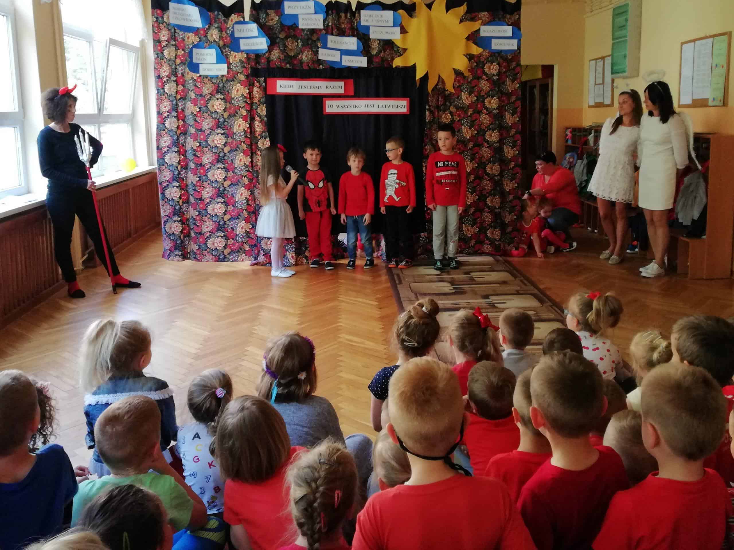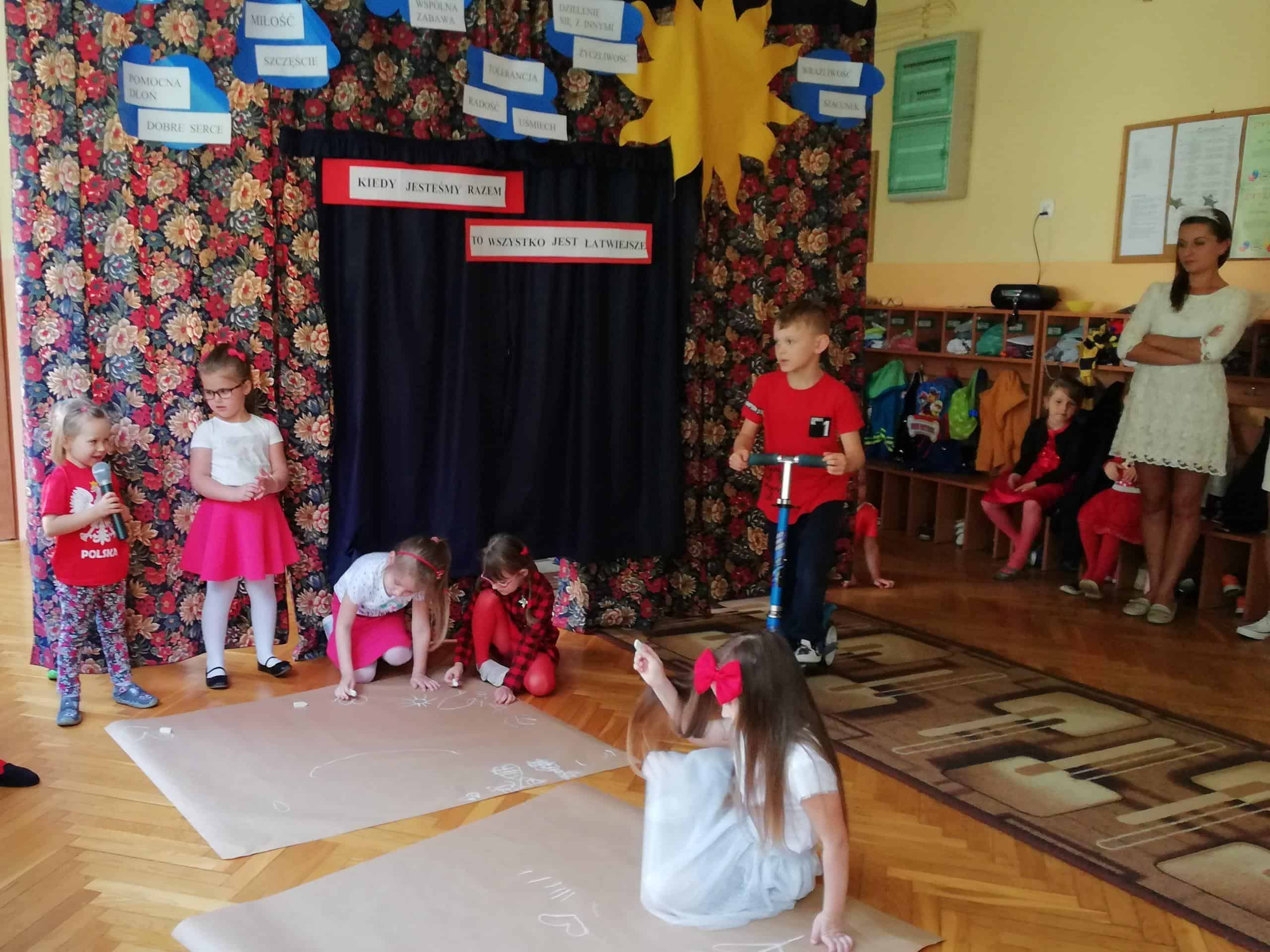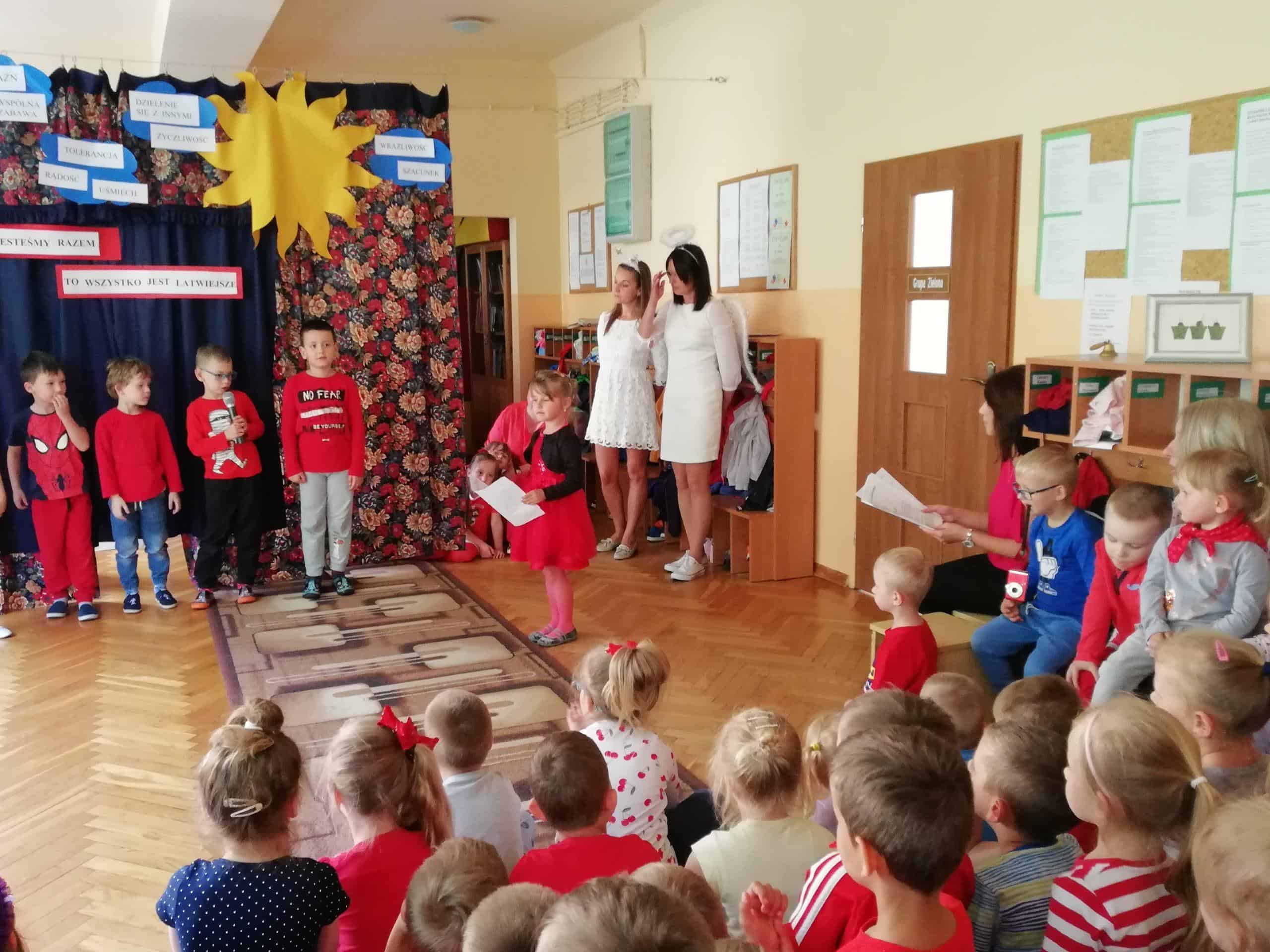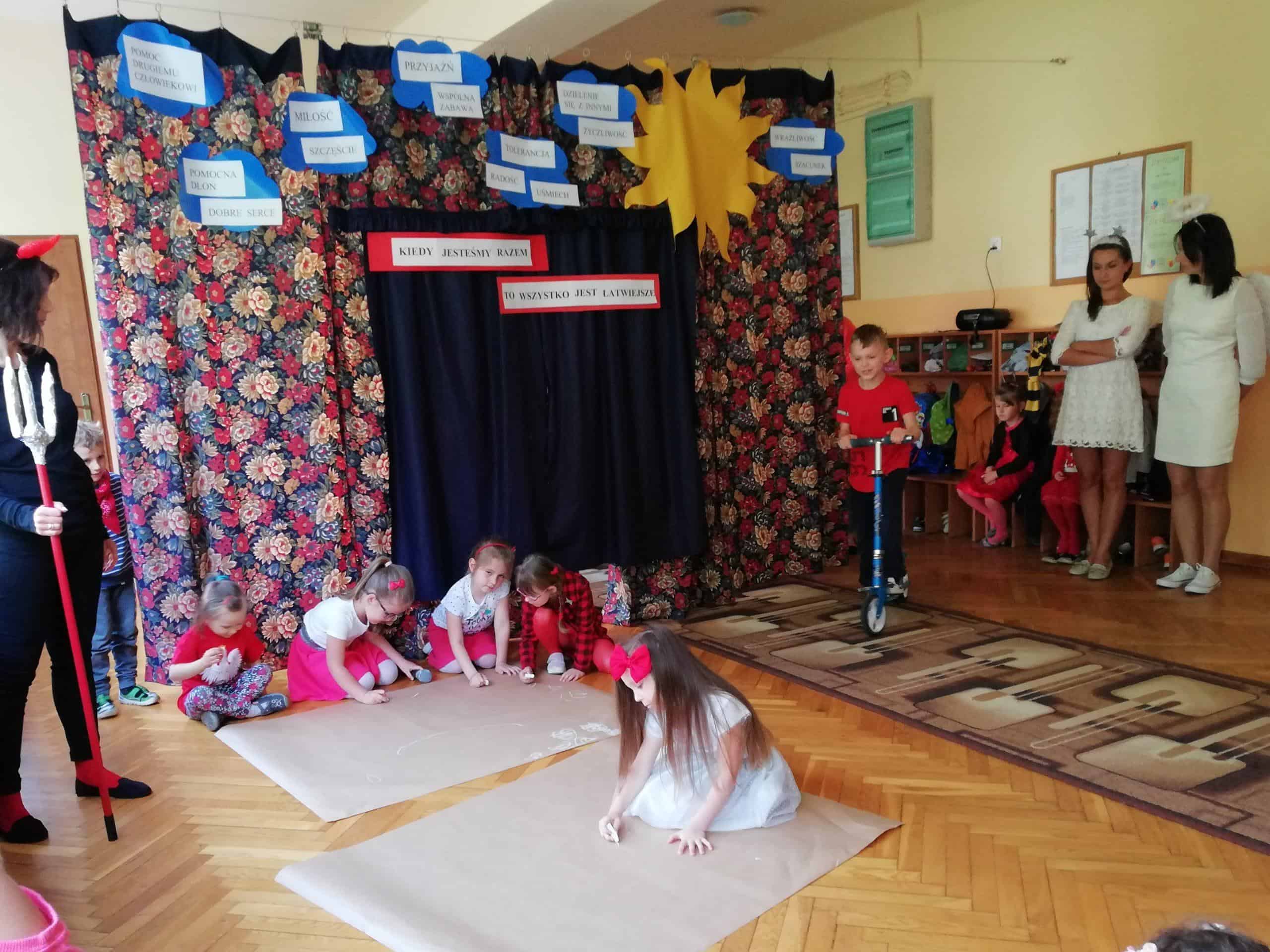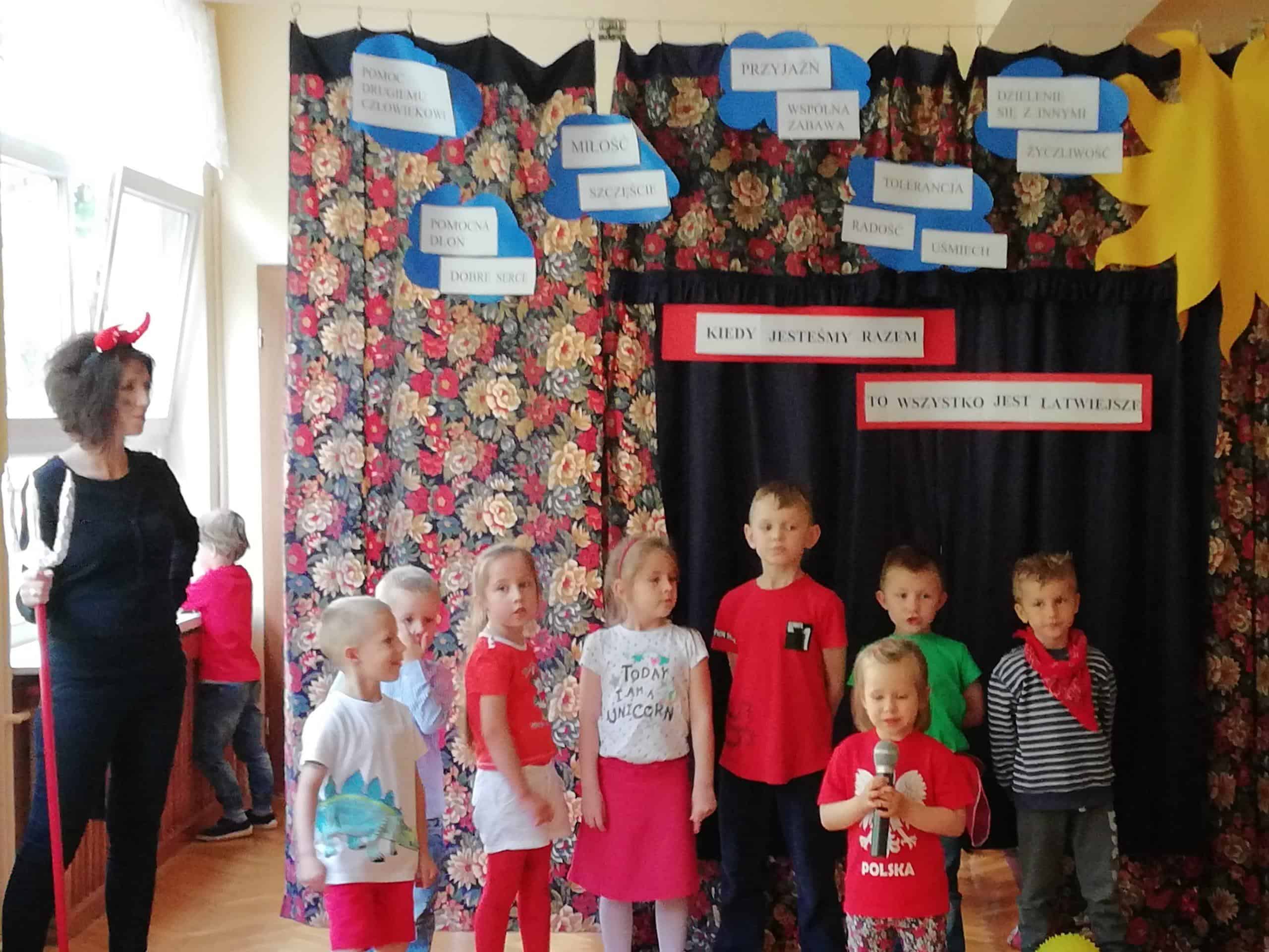15 maja nasze przedszkole mocno się „zaczerwieniło”, gdyż wtedy właśnie obchodziliśmy Dzień Czerwony, w ramach którego, rodzice z dziećmi z Grupy Czerwonej, zaprezentowali wszystkim inscenizację teatralną pt. „Obrazki z podwórka”. Przedstawienie to miało na celu uwrażliwić widza na krzywdę i nieszczęście drugiego człowieka. Miało pokazać, że miłość, życzliwość, przyjaźń, szacunek i chęć pomocy innym to wartości, których należy się uczyć, gdyż nikt w nieszczęściu nie powinien zostać sam, bo: „Jak jesteśmy razem to wszystko jest łatwiejsze, jak jesteśmy razem to życie jest przyjemniejsze, bo jak jesteśmy razem to nic się nie boimy, jak jesteśmy razem to wszystko zwyciężymy”, tak właśnie brzmiało główne przesłanie naszego przedstawienia.