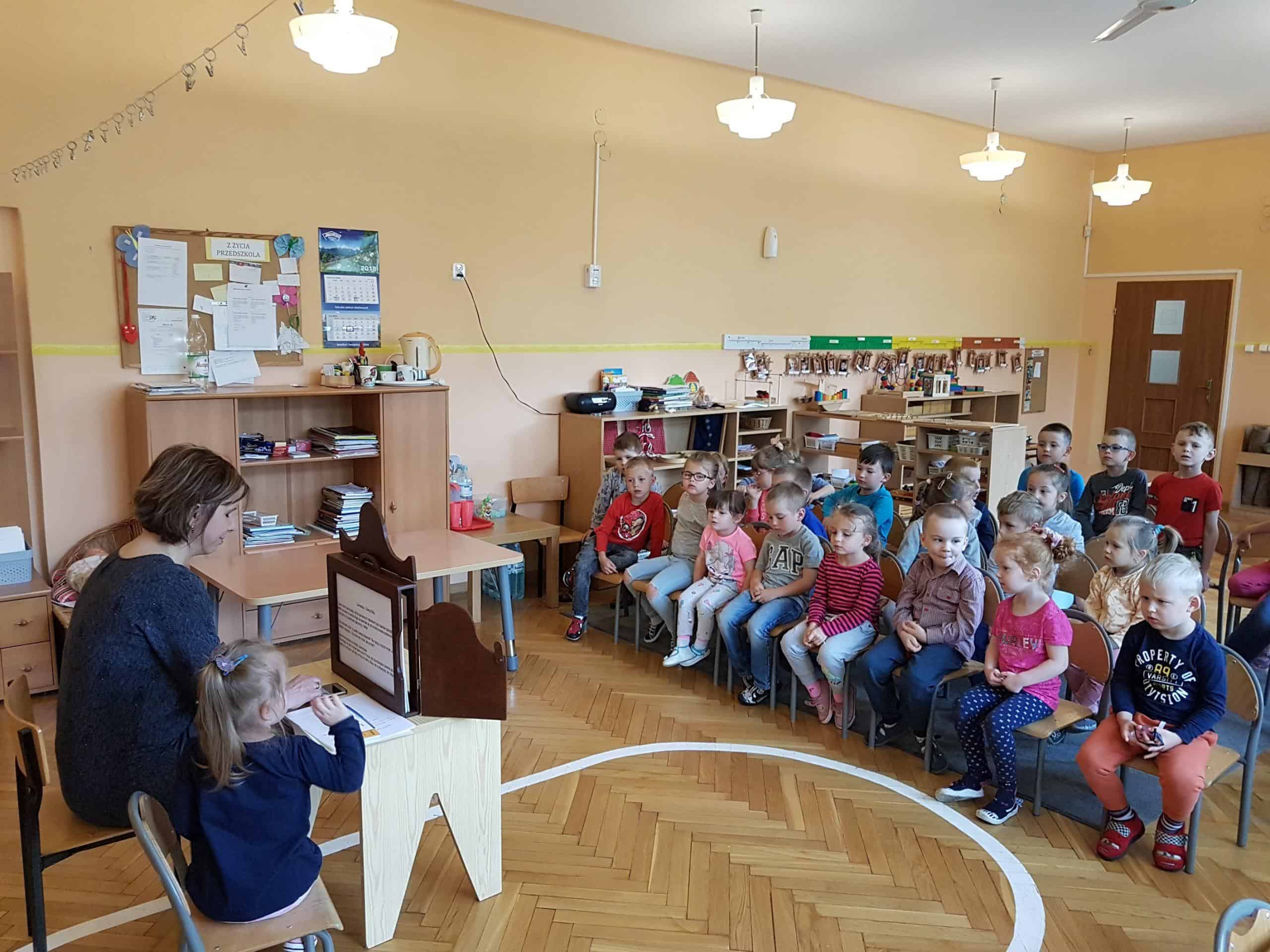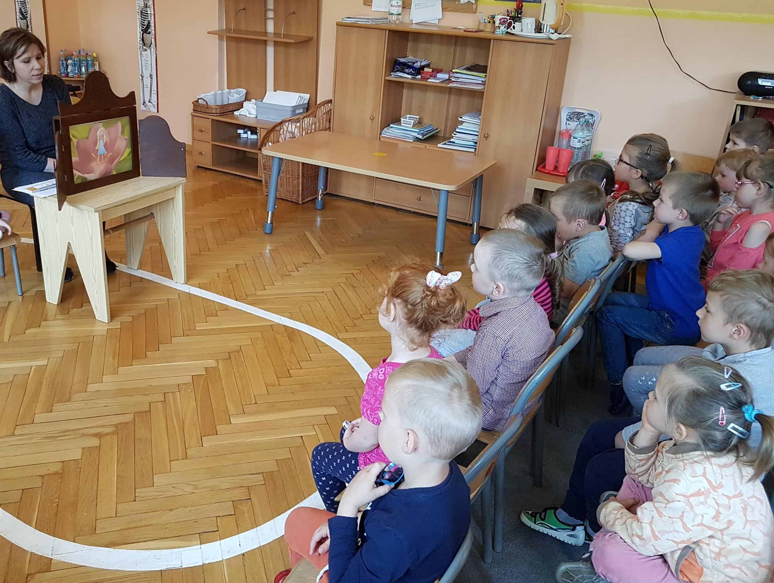 Dzieci z ogromnym zainteresowaniem wysłuchały baśni Hansa Christiana Andersena pt. „Calineczka”. Po czym odpowiadały na pytania dotyczące prezentowanego utworu. Pani Dorota na zakończenie przeprowadziła zabawy muzyczno-ruchowe, w których dzieci chętnie uczestniczyły. Wychodząc podarowała wszystkim piękne, kolorowe zakładki do książek.