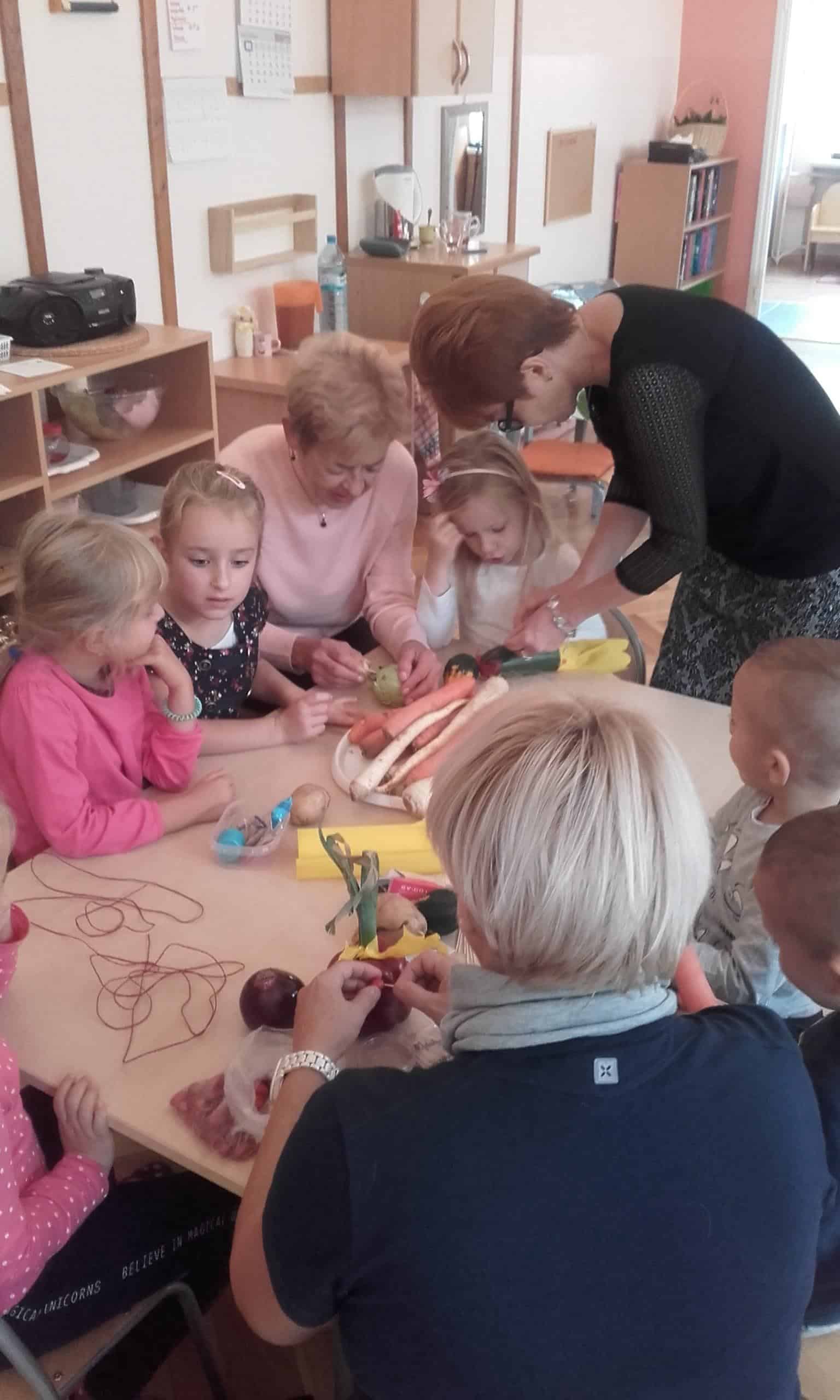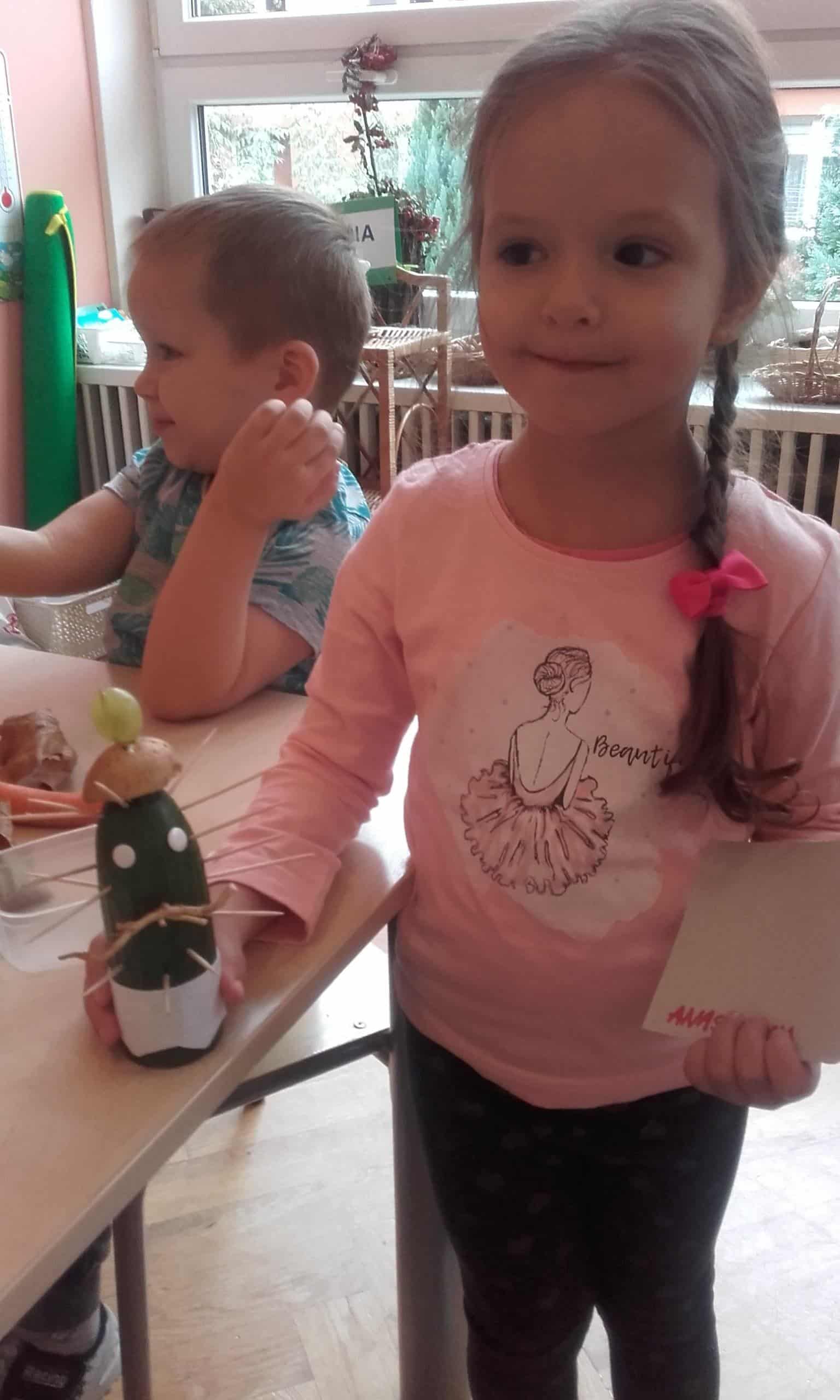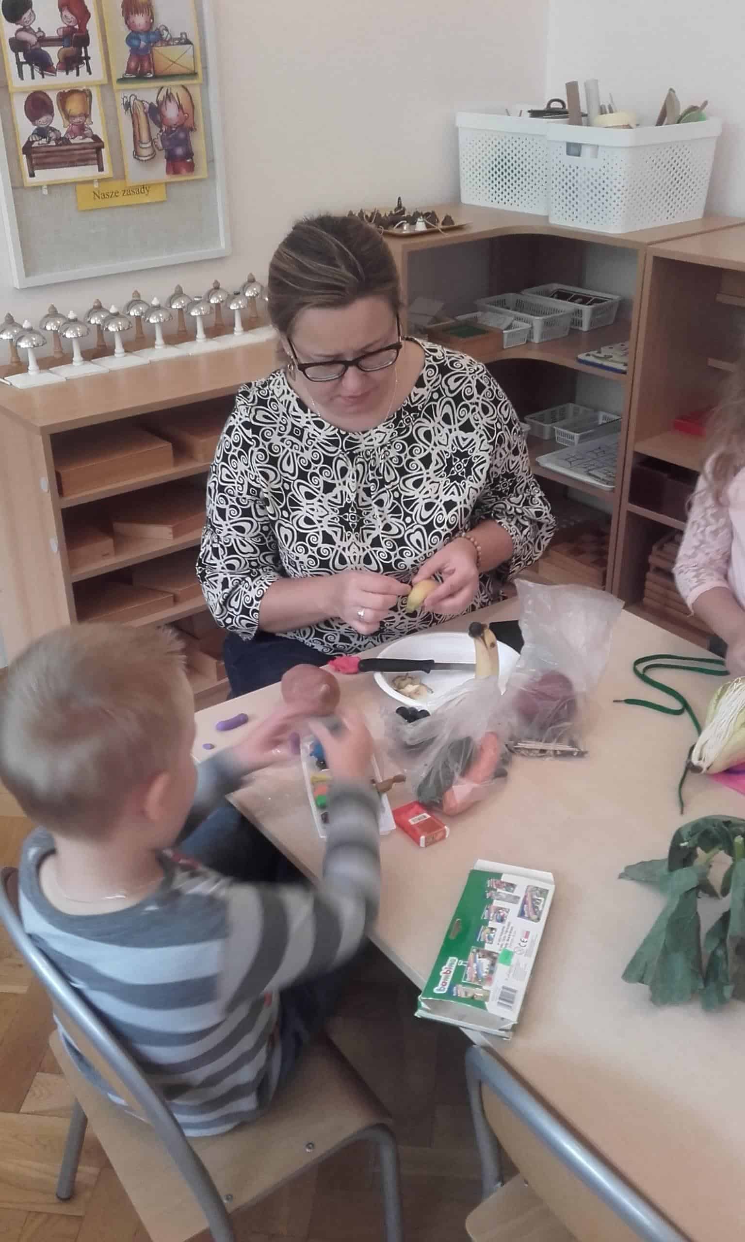 Jesień to piękny czas w przyrodzie – sporo kolorów w otoczeniu, dary jesieni w postaci owoców i warzyw, a także grzyby, kasztany, żołędzie. Jesień może być także inspiracją do działań plastycznych z dziećmi. Zajęcia plastyczne z dziećmi posiadają wiele zalet, są konieczne do kształtowania w dziecku zdolności manualnych, które potem dzieci wykorzystują podczas nauki pisania i wykonywania bardziej precyzyjnych czynności. Dzięki rozmaitym działaniom plastycznym dzieci mogą stymulować swoje zdolności twórcze, rozwijać fantazję , pomysłowość, mogą stawać się coraz bardziej kreatywne. Warsztaty plastyczne z udziałem Rodziców z wykorzystaniem owoców, warzyw, kasztanów, liści… były doskonałą okazją do rozwijania kreatywności dzieci. Zainteresowanie Rodziców tymi warsztatami było duże, wszyscy przyszli z gotowymi pomysłami na wykorzystanie warzyw, owoców i kasztanów. To był mądrze wykorzystany czas, wszyscy czerpali z tego – Rodzice, a zwłaszcza dzieci. Wspólna aktywność Rodzica i dziecka jest dla obu stron bezcenna. W trakcie tych warsztatów powstało mnóstwo wyjątkowo pomysłowych wytworów plastycznych- BRAWO!. To by klimat sprzyjający pracy twórczej.