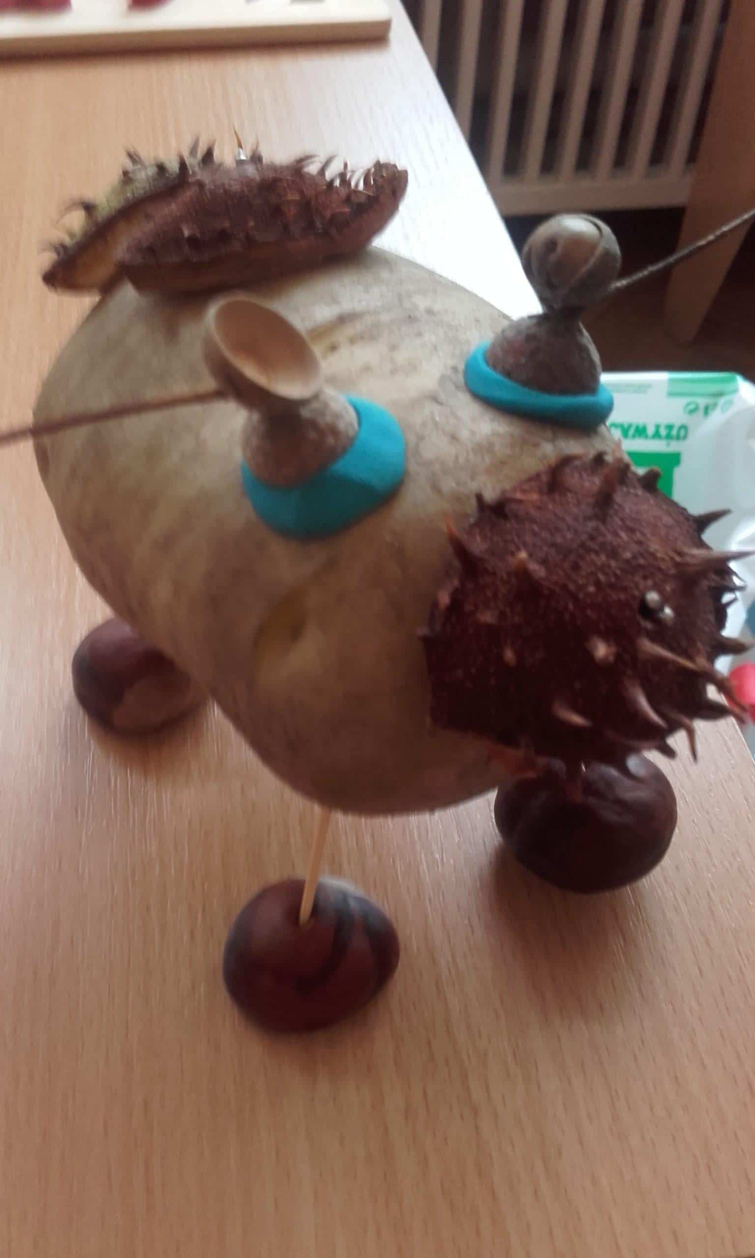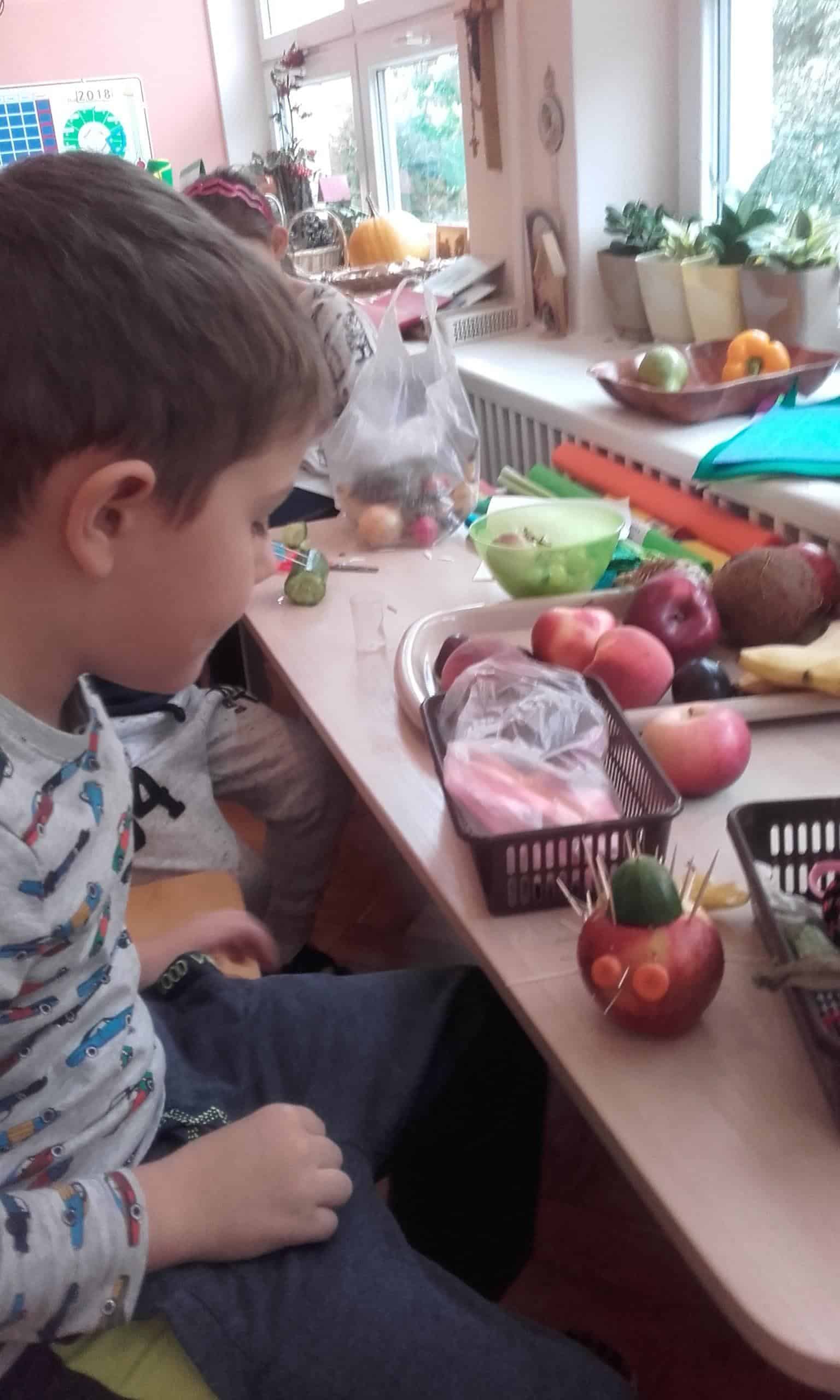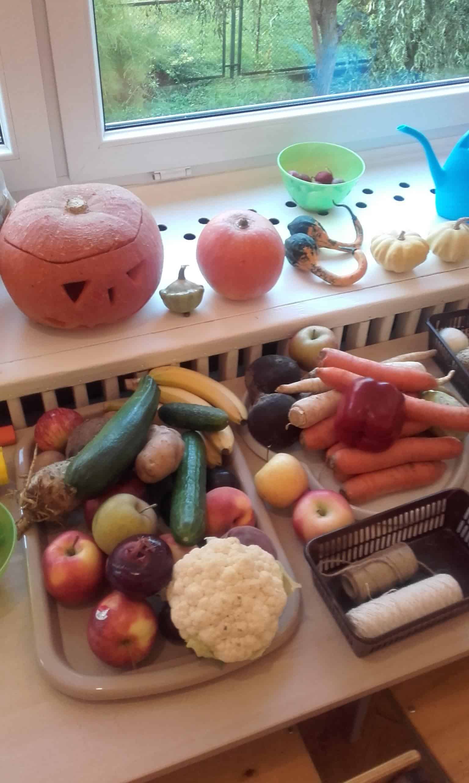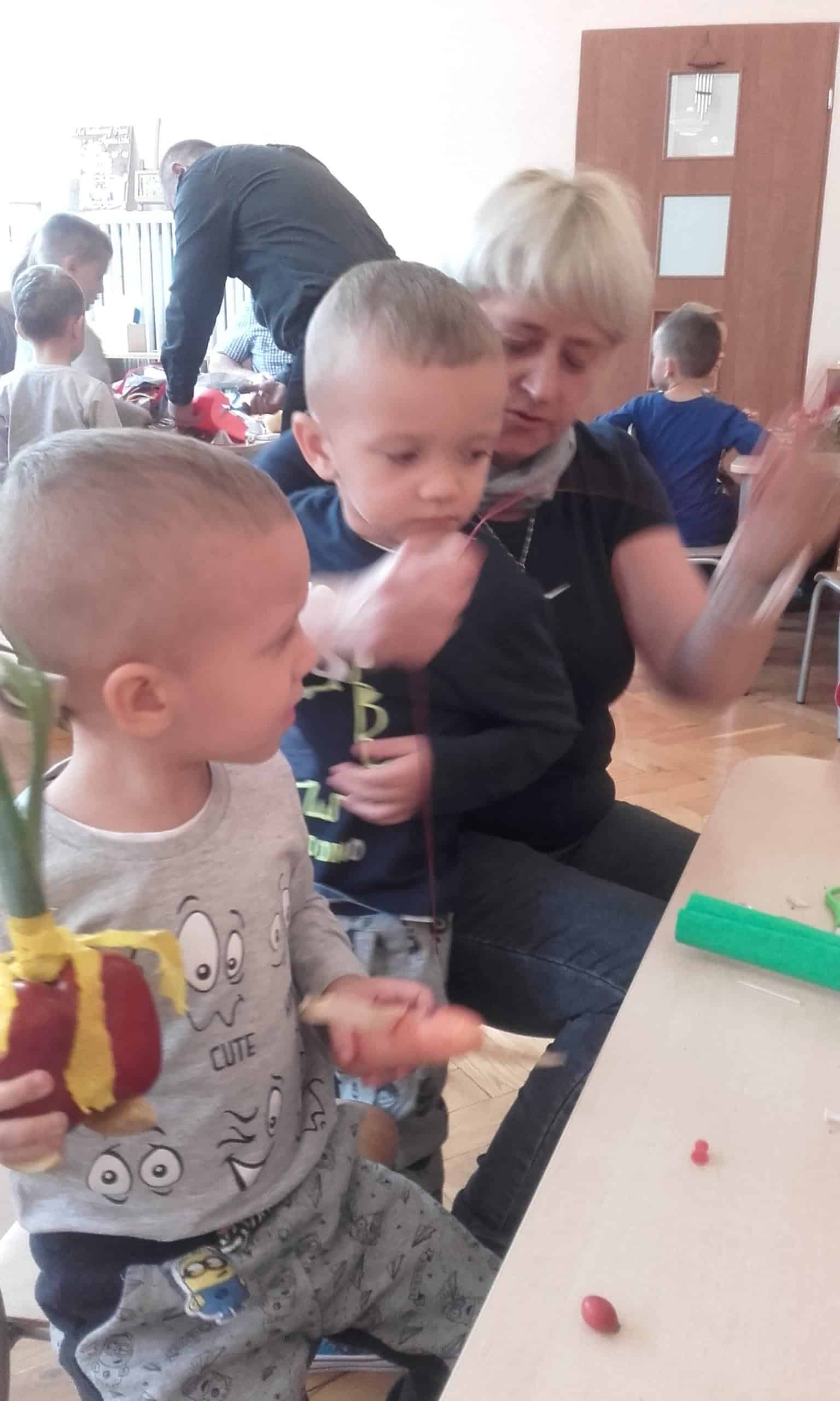 Jesień to piękny czas w przyrodzie – sporo kolorów w otoczeniu, dary jesieni w postaci owoców i warzyw, a także grzyby, kasztany, żołędzie. Jesień może być także inspiracją do działań plastycznych z dziećmi. Zajęcia plastyczne z dziećmi posiadają wiele zalet, są konieczne do kształtowania w dziecku zdolności manualnych, które potem dzieci wykorzystują podczas nauki pisania i wykonywania bardziej precyzyjnych czynności. Dzięki rozmaitym działaniom plastycznym dzieci mogą stymulować swoje zdolności twórcze, rozwijać fantazję , pomysłowość, mogą stawać się coraz bardziej kreatywne. Warsztaty plastyczne z udziałem Rodziców z wykorzystaniem owoców, warzyw, kasztanów, liści… były doskonałą okazją do rozwijania kreatywności dzieci. Zainteresowanie Rodziców tymi warsztatami było duże, wszyscy przyszli z gotowymi pomysłami na wykorzystanie warzyw, owoców i kasztanów. To był mądrze wykorzystany czas, wszyscy czerpali z tego – Rodzice, a zwłaszcza dzieci. Wspólna aktywność Rodzica i dziecka jest dla obu stron bezcenna. W trakcie tych warsztatów powstało mnóstwo wyjątkowo pomysłowych wytworów plastycznych- BRAWO!. To by klimat sprzyjający pracy twórczej.