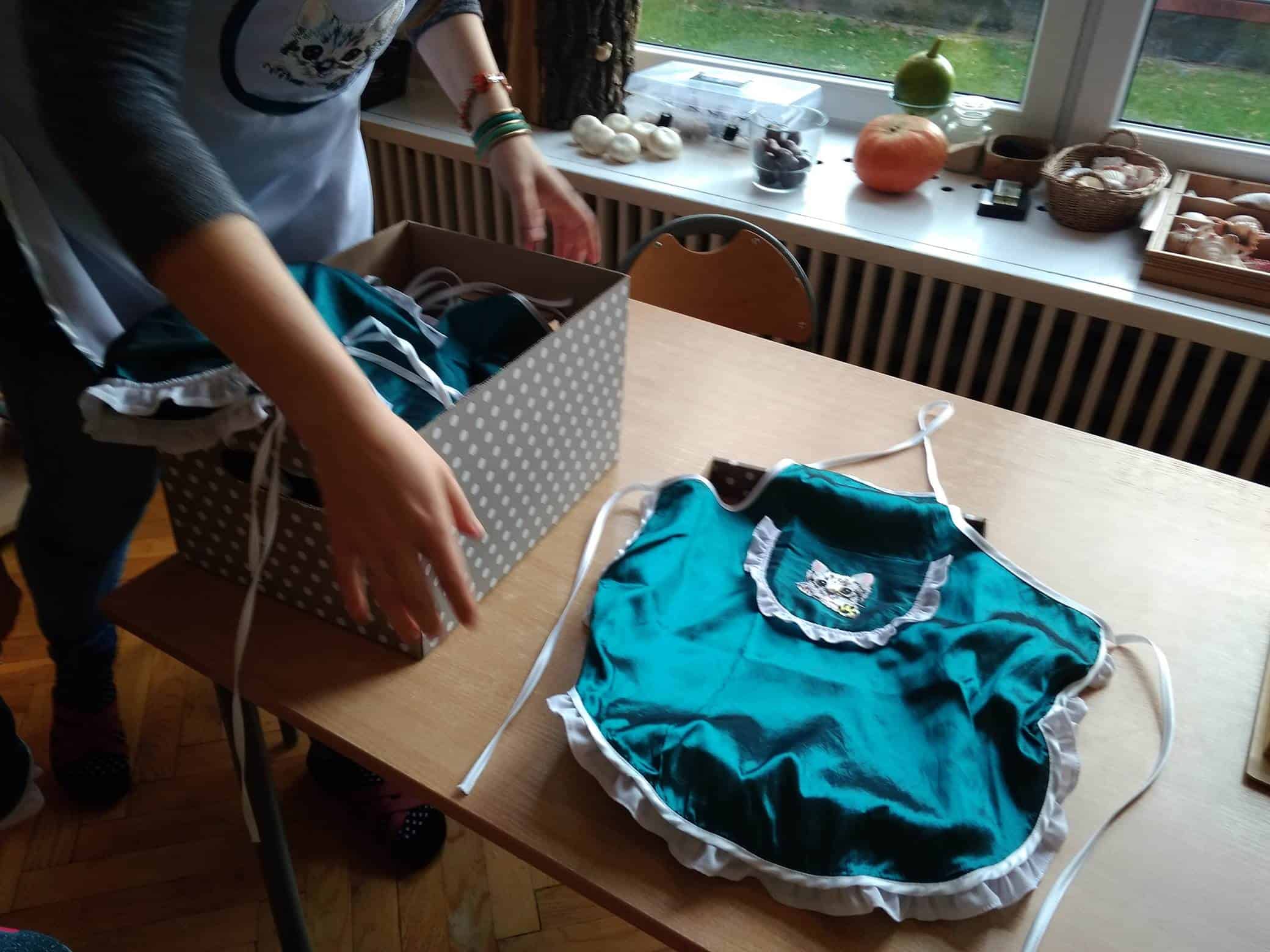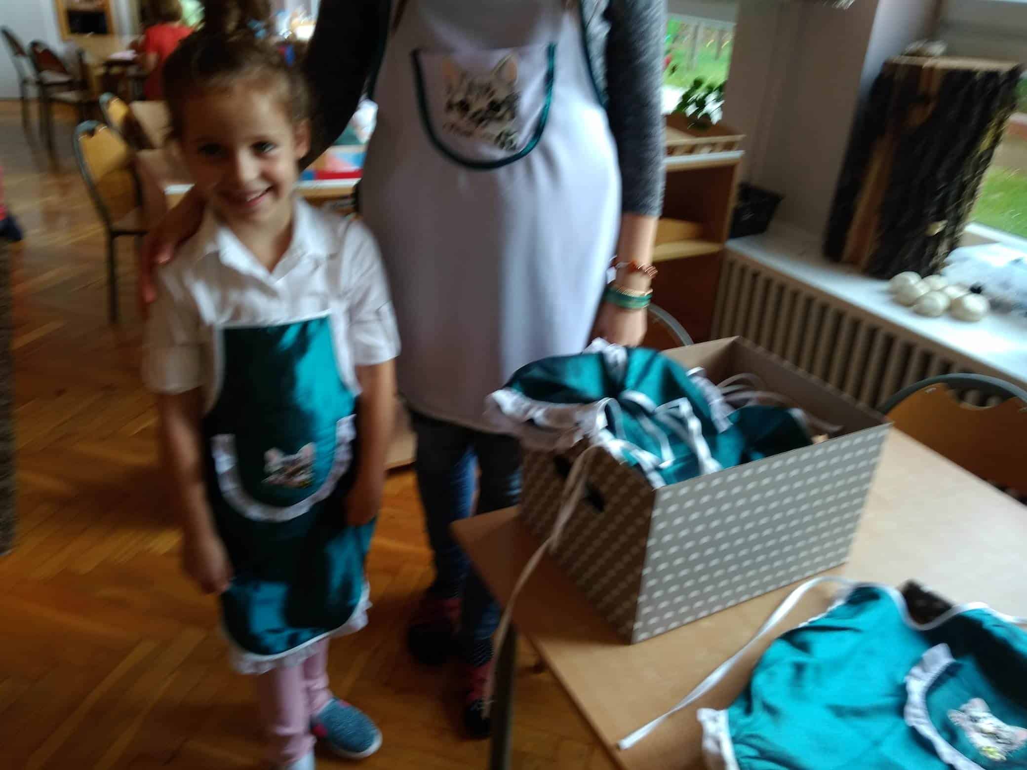 Poniedziałek w grupie Zielonej zaczął się bardzo dobrze. I to dzięki naszym rodzicom. Bo to właśnie rodzice potrafią sprawić, że od rana na naszych buziach gości uśmiech. A wszystko za sprawą…fartuszków. Pięknych, zielono-białych fartuszków dla dzieci i pań. Niezbędny, praktyczny i potrzebny prezent wręczony przez niezwykle przystojnego kuriera. Panie Pawle dziękujemy! I zapraszamy częściej, choć nasze miny były prawdopodobnie bezcenne…Oczywiście dziękujemy rodzicom, którzy zaangażowali się w to miłe przedsięwzięcie. Pani Izo, Pani Edyto, Pani Mariolu, pani Magdo, Panie Wojtku i babciu Laury- dziękujemy!