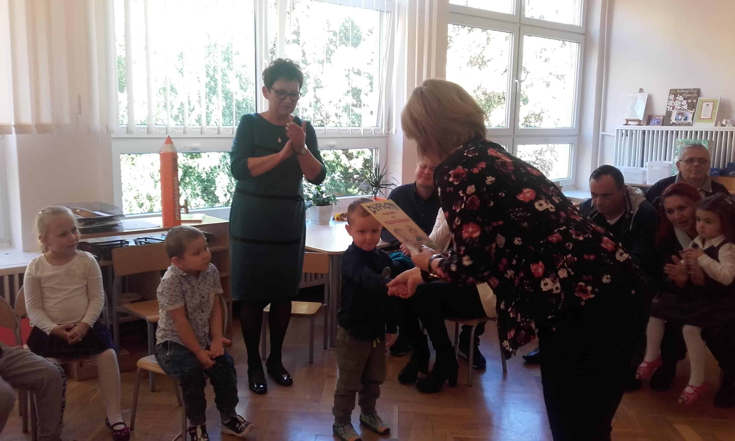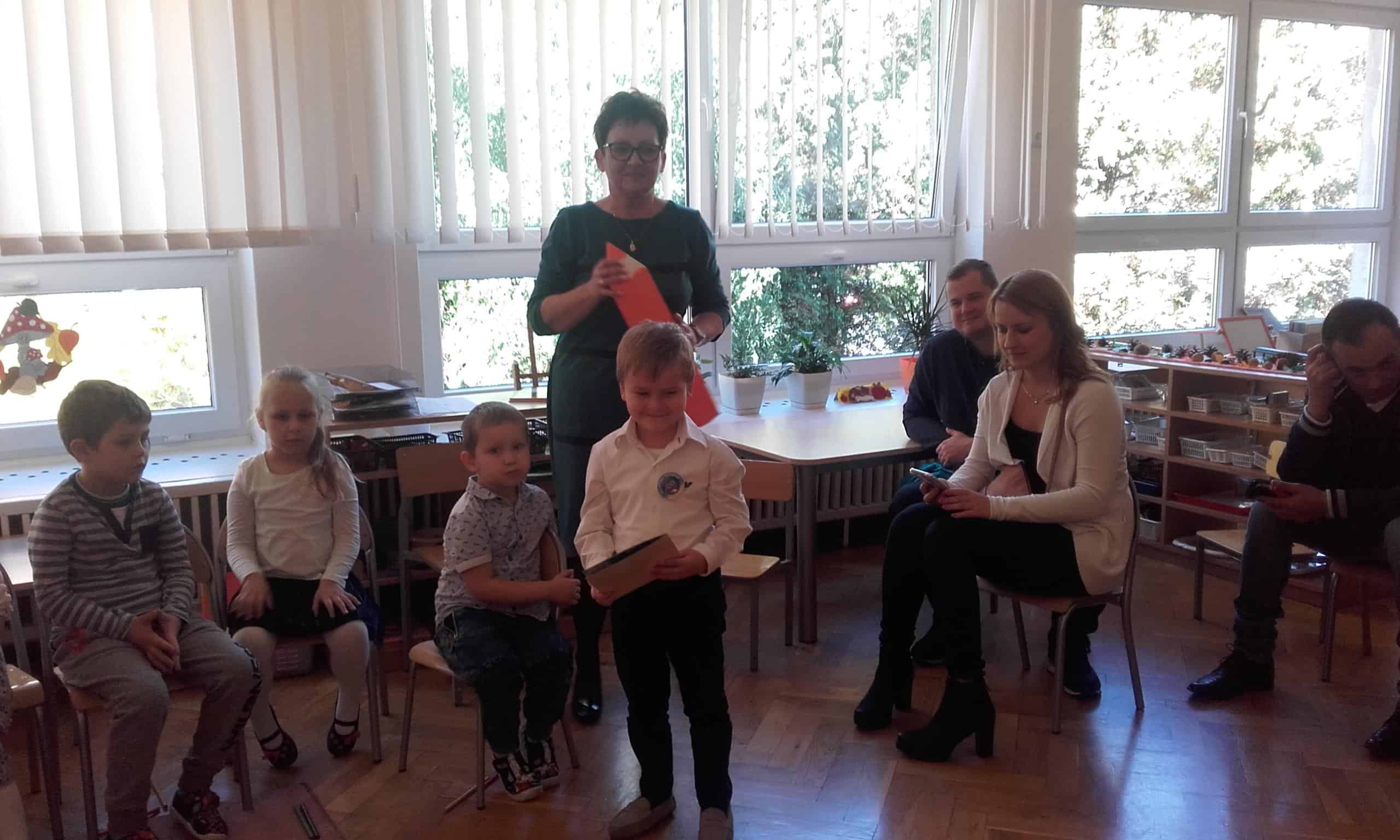 24  października był wyjątkowym dniem w grupie Pomarańczowej. W tym dniu odbyła się uroczystość pasowania na przedszkolaka. W tym roku do naszej grupy dołączyli Franek i Filip, Anastazja, Natalia, Pawełek oraz Wiktor. To właśnie z myślą o nich została zorganizowana ta uroczystość. Wszyscy pięknie w tym dniu wyglądali, pewnie po raz pierwszy publicznie występowali recytując wiersze, śpiewając piosenki i grając na instrumentach. Było to dla nich ogromne wyzwanie. Ale świetnie sobie poradzili. Aktu pasowania na przedszkolaka dokonała Pani Dyrektor, wręczając przy okazji pamiątkowe plakietki i dyplomy. Od tej chwili Filipek, Franio, Pawełek, Natalia, Wiktor i Anastazja stali się prawdziwymi przedszkolakami. Przed nimi wiele ciekawych dni w przedszkolu, nowych doświadczeń, a także wyzwań na miarę przedszkolaka. Cieszymy się bardzo, że dołączyli do naszej grupy,  a my dołożymy wszelkich starań, aby w naszej grupie czuli się dobrze i żeby kiedyś z przedszkolem mogli wiązać same dobre wspomnienia.