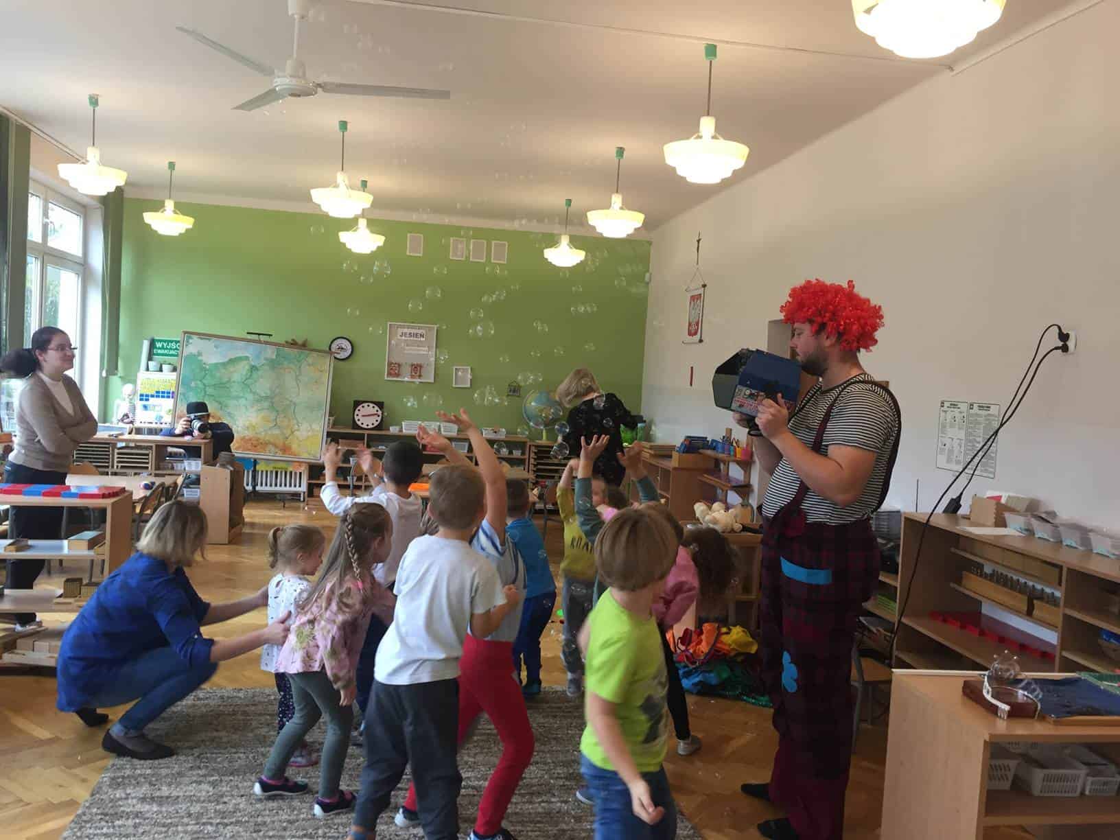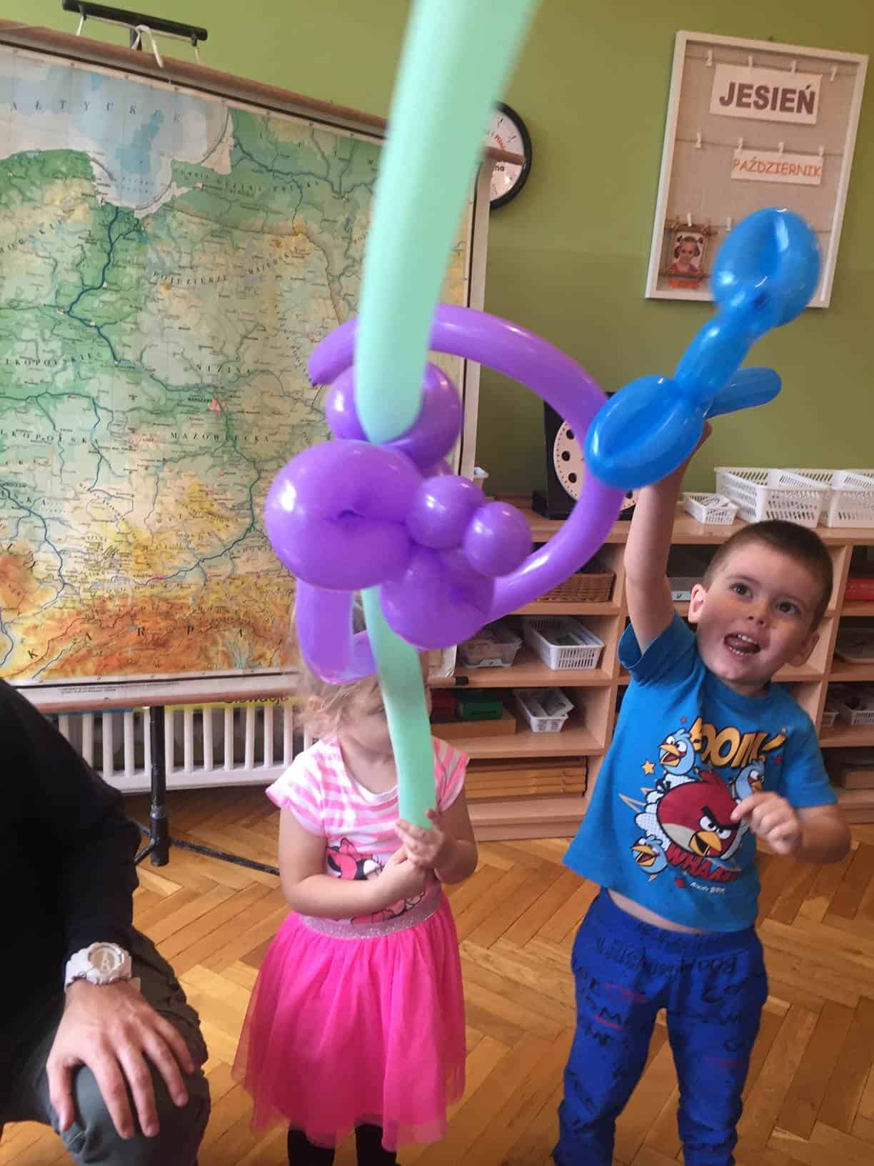 Przyjęcie urodzinowe jest szczególnym wydarzeniem zarówno dla rodziców jak i dziecka. Dlatego jest to poważne wyzwanie. Podjęli się go rodzice Nel. Na tą okazję zaprosili do przedszkola specjalistę od szalonej zabawy z maluchami – animatora zabaw dla dzieci. Pan Piotr odgrywający rolę przemiłego klauna, zapewnił rozrywkę i atrakcje dopasowane do wszelkich wymagań najmłodszych. Uśmiechy zawitały na wszystkich twarzach dzieci. Były tańce, przeciąganie liny, przejście przez dłuuugi tunel, sztuczki cyrkowe, żonglerka, no i oczywiście mydlane bańki. Każde dziecko otrzymało balonowe zwierzątko lub serce.