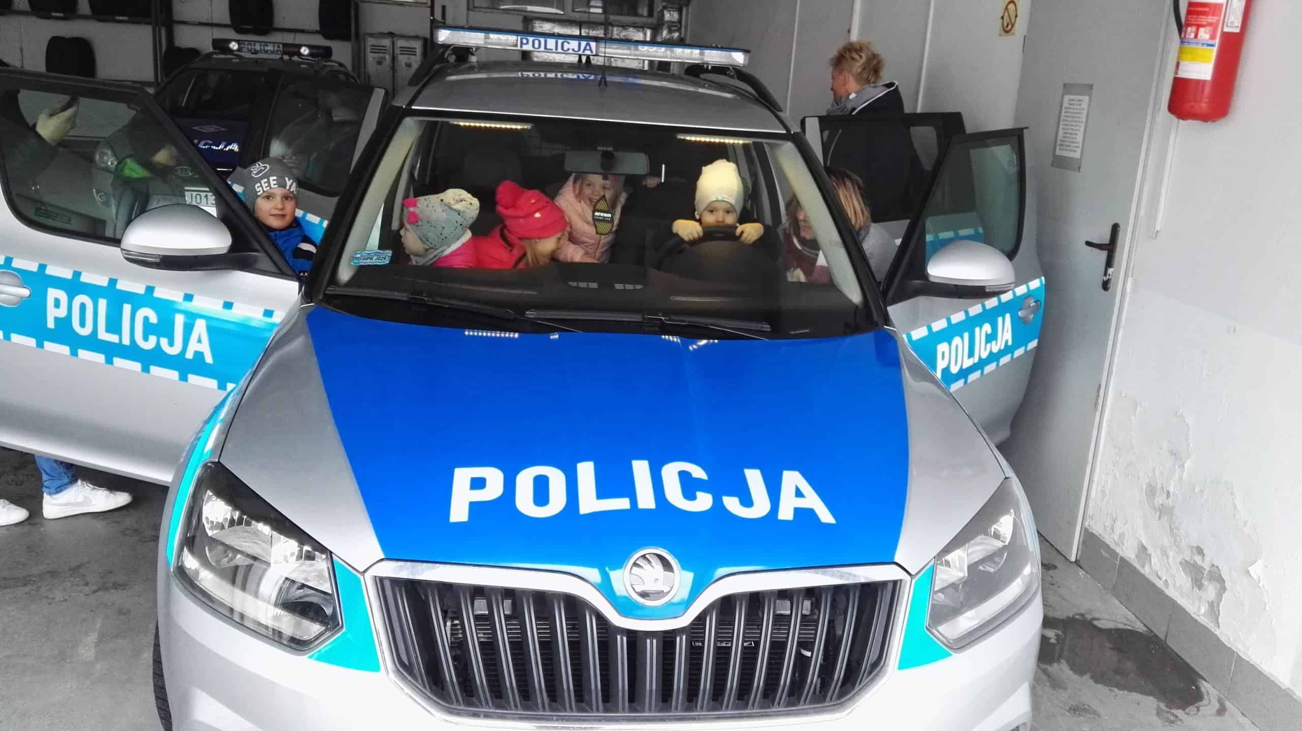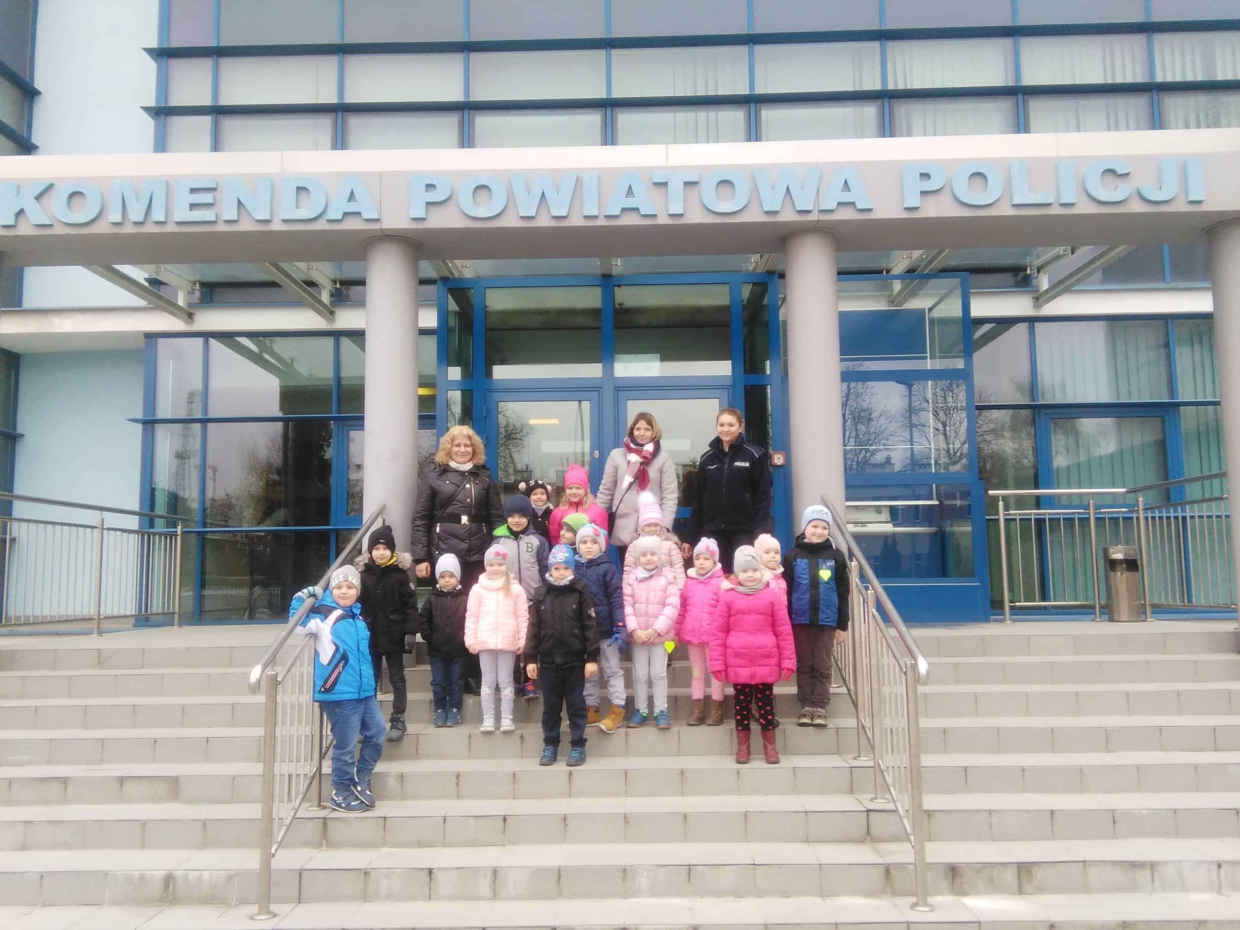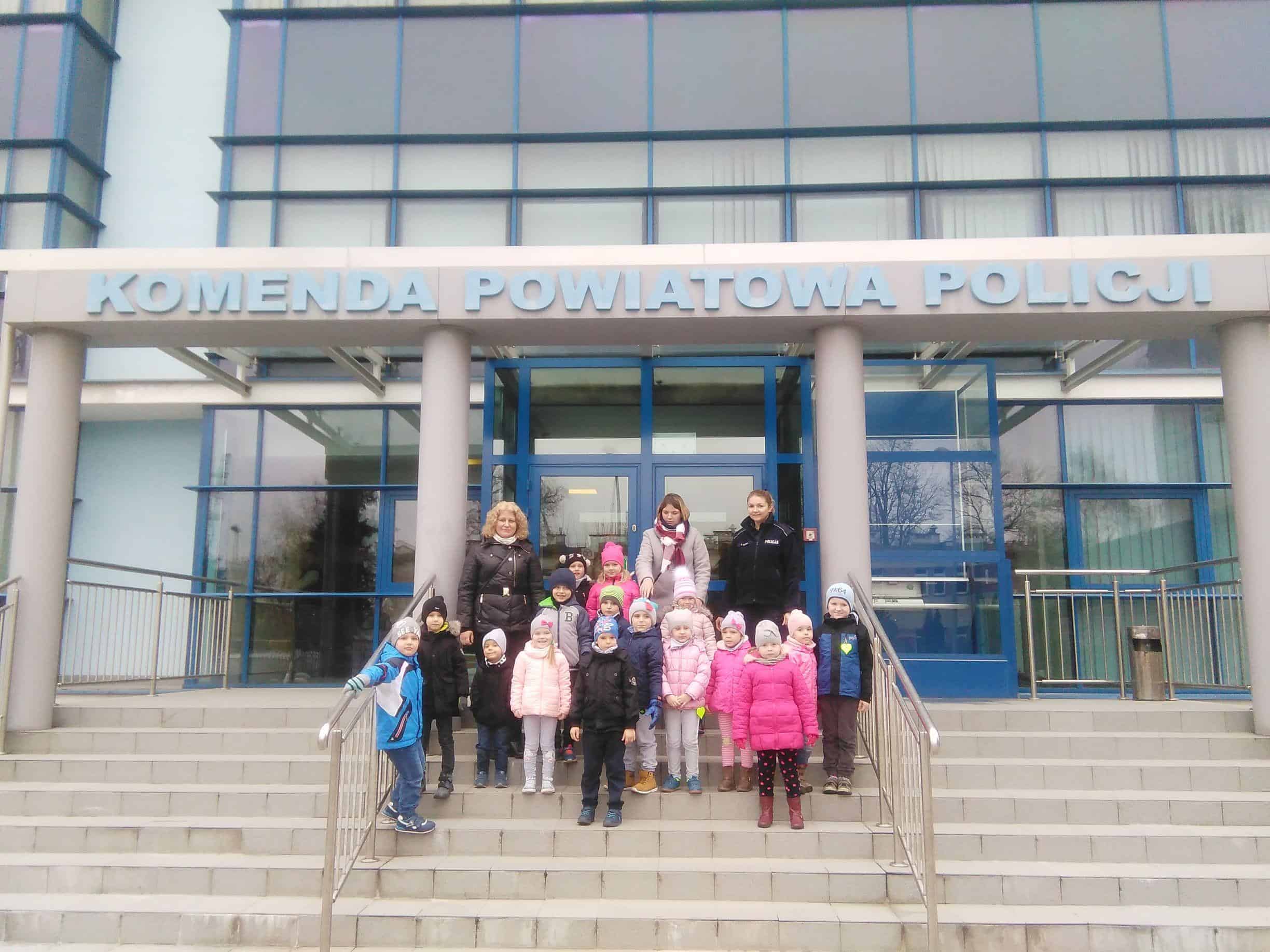 W dniu 16 listopada wybraliśmy się na wycieczkę do Miejskiej Komendy Policji w Jarosławiu, gdzie dzieci miały możliwość przyjrzenia się z bliska pracy funkcjonariuszy policji oraz zwiedzenia obiektu. Pani funkcjonariusz zapoznawała dzieci z codzienną pracą policjantów oprowadzając ich po budynku komendy. W czasie spotkania dzieci zwiedziły pomieszczenia oraz zobaczyły sprzęt i wyposażenie policyjne. W tracie spaceru po komendzie przedszkolaki zwiedziły m.in. „niebieski pokój”- pokój przyjazny dzieciom, poznały zasadę działania weneckiego lustra, pokój zatrzymań i strzelnicę, a na monitorze komputera mogły obejrzeć jak wygląda cela a także obejrzały i skorzystały ze sprzętu do ćwiczeń na siłowni, na której to ćwiczą tutejsi policjanci. Dzieci dowiedziały się, kto to jest policjant dyżurny i czym się zajmuje, mogły dmuchnąć w alkomat. Dużym zainteresowaniem cieszyły się również radiowozy i motocykle wykorzystywane do codziennej służby. Każde dziecko przez chwilę mogło wczuć się w rolę policjanta i stać się pasażerem policyjnego pojazdu, zasiąść za kierownicą policyjnego samochodu oraz usłyszeć sygnały dźwiękowe, co wzbudziło najwięcej emocji. Podczas przebiegającego w miłej atmosferze spotkania dzieci zadawały mnóstwo ciekawych pytań, na które otrzymywały wyczerpujące odpowiedzi. Serdecznie dziękujemy za miłe spotkanie a przekazane treści na pewno na długo pozostaną w pamięci dzieci.