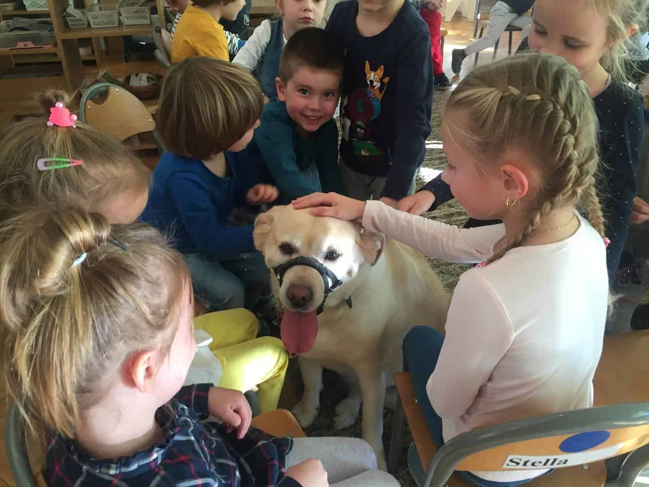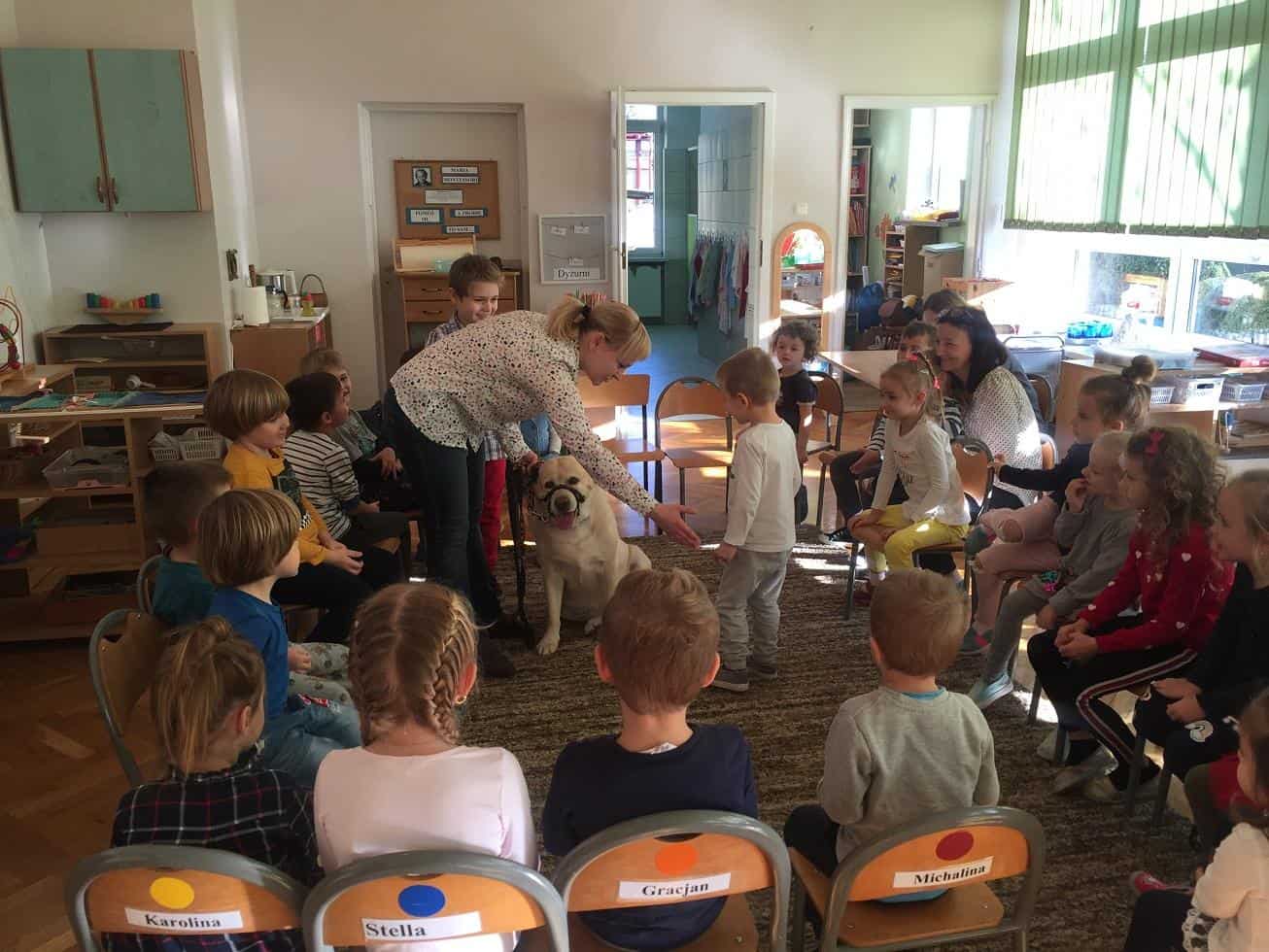 Dzieci bardzo ciepło powitały Jasia i jego czworonożnego przyjaciela.