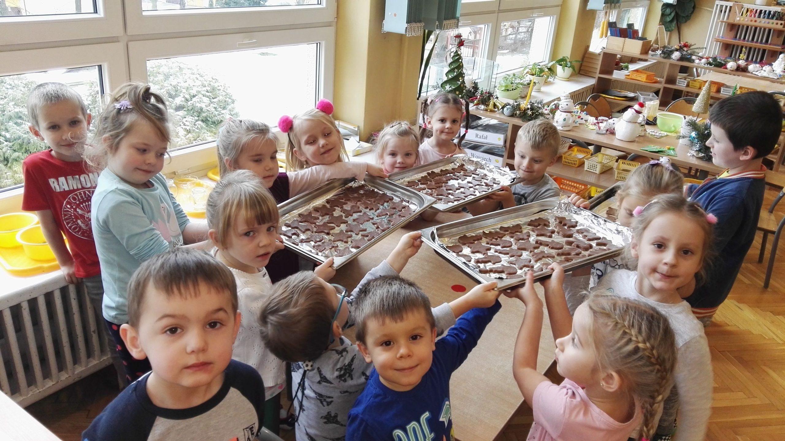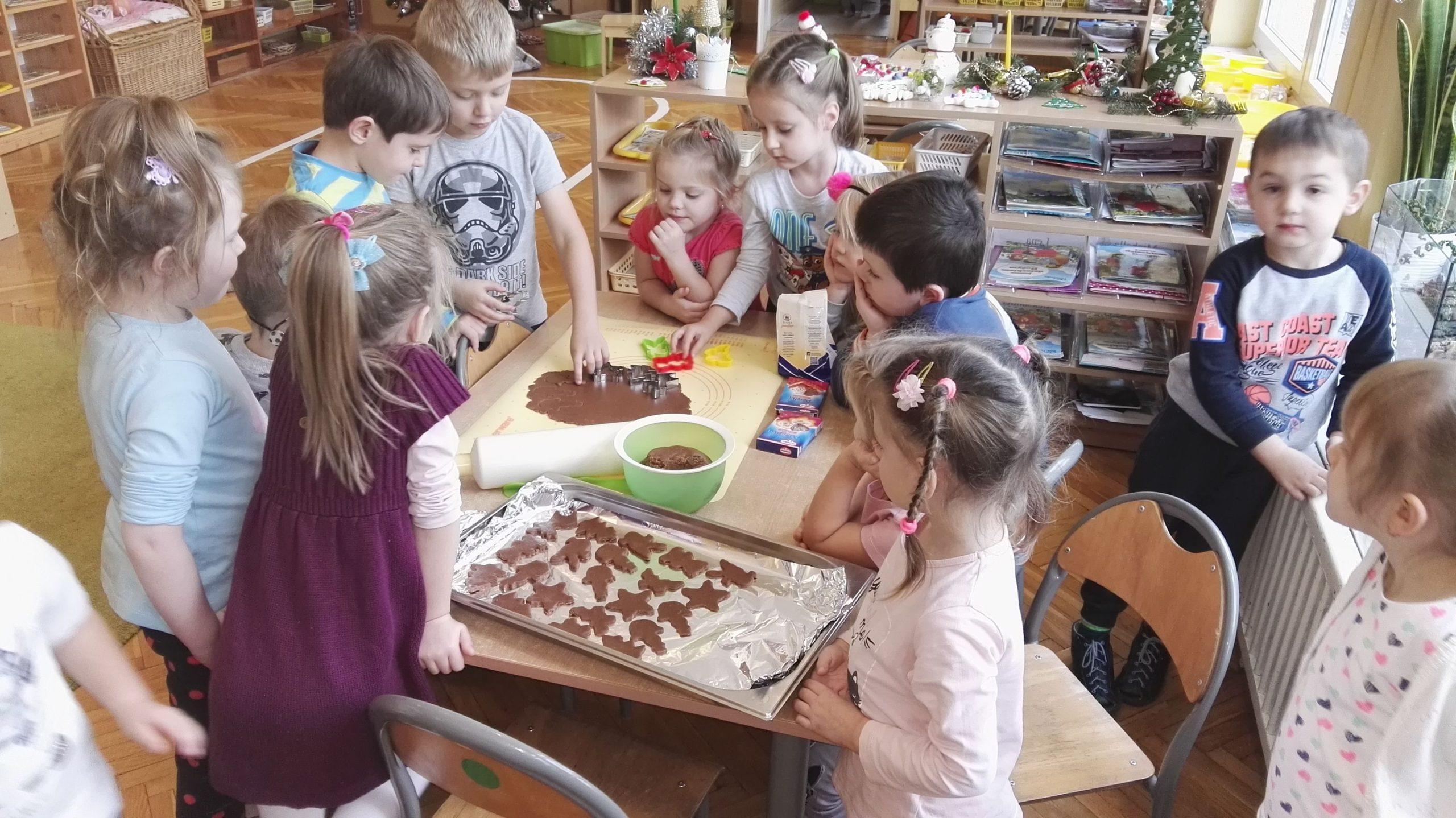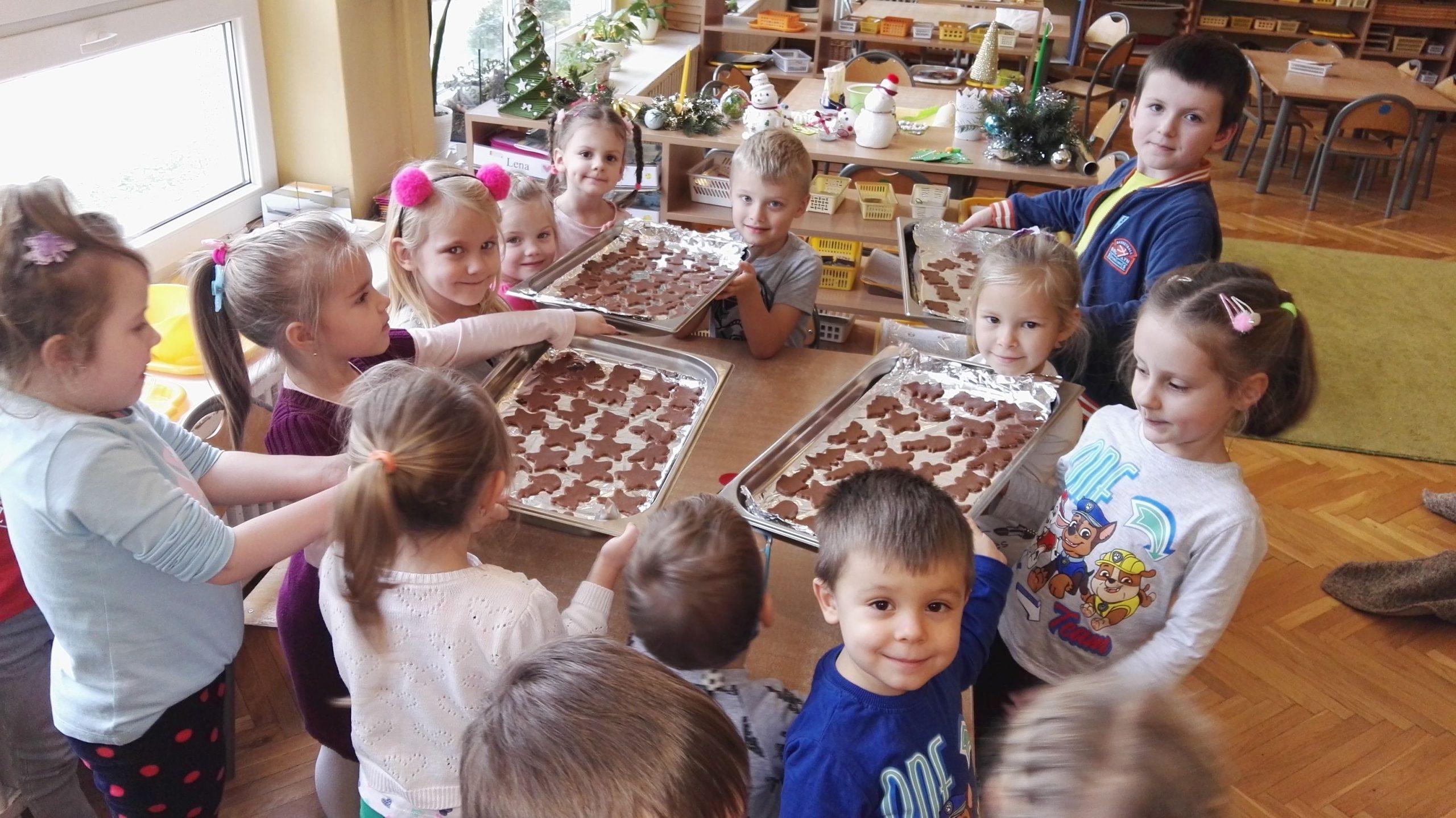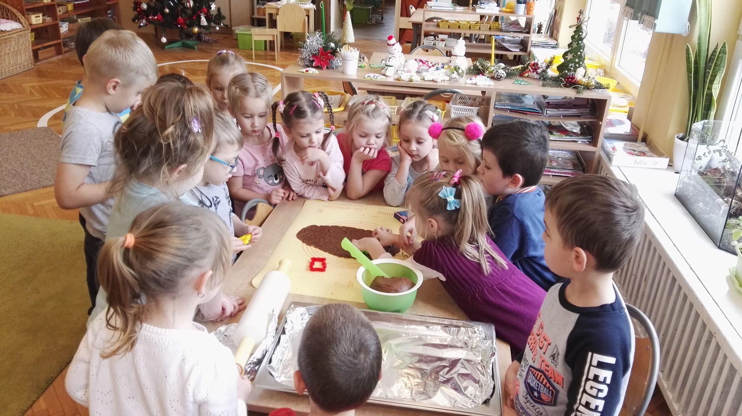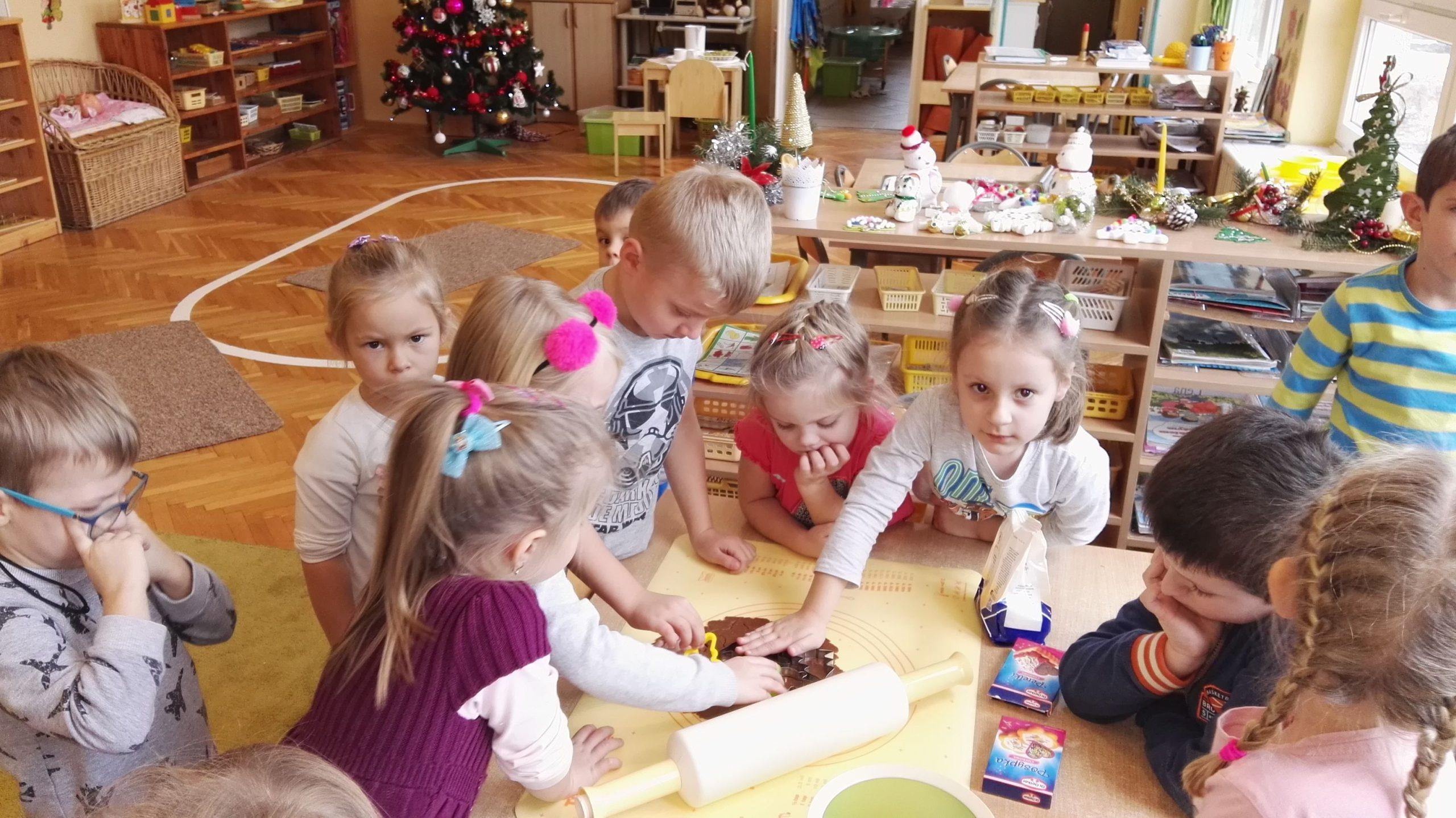 Wigilia Bożego Narodzenia to jeden z najpiękniejszych dni w roku, dlatego w naszej przedszkolnej społeczności przeżywamy go bardzo uroczyście. W tym dniu w każdej grupie, jak i w całym przedszkolu, już od samego rana panowała radosna, ożywiona atmosfera. Dzieci bardzo chętnie pomagały w przygotowaniach. Wspólnie nakrywały do stołu, ustawiały krzesła, rozkładały serwetki. O wyznaczonej godzinie wszystkie grupy zebrały się w holu naszego przedszkola, aby wziąć udział w uroczystej godzince adwentowej,przygotowanej przez Grupę Czerwoną z gościnnym udziałem niektórych przedszkolaków z Grupy Zielonej, pt. „Dziś jest dzień narodzin Pana Jezusa” przedstawionej w formie Jasełek. Aktorzy – Józef, Maryja, Aniołki, Królowie, Pasterze, Kobiety, Dzieci z poszczególnych grup, które złożyły dary u stóp Maleńkiego Jezusa, przygotowane dekoracje (żłobek, gwiazda betlejemska, szopka), wspólny śpiew najpiękniejszych polskich kolęd wprawiły wszystkich w świąteczny nastrój.