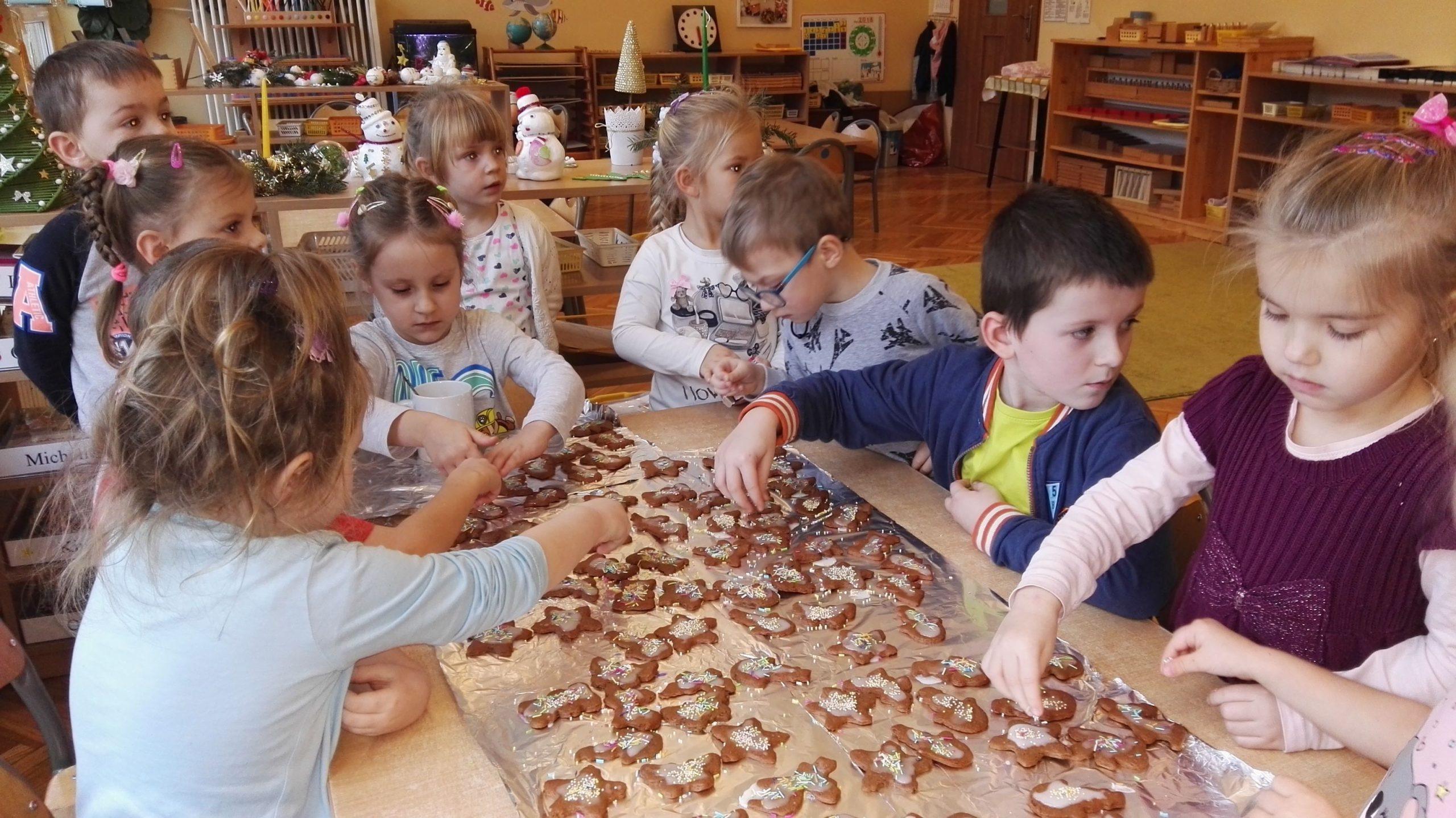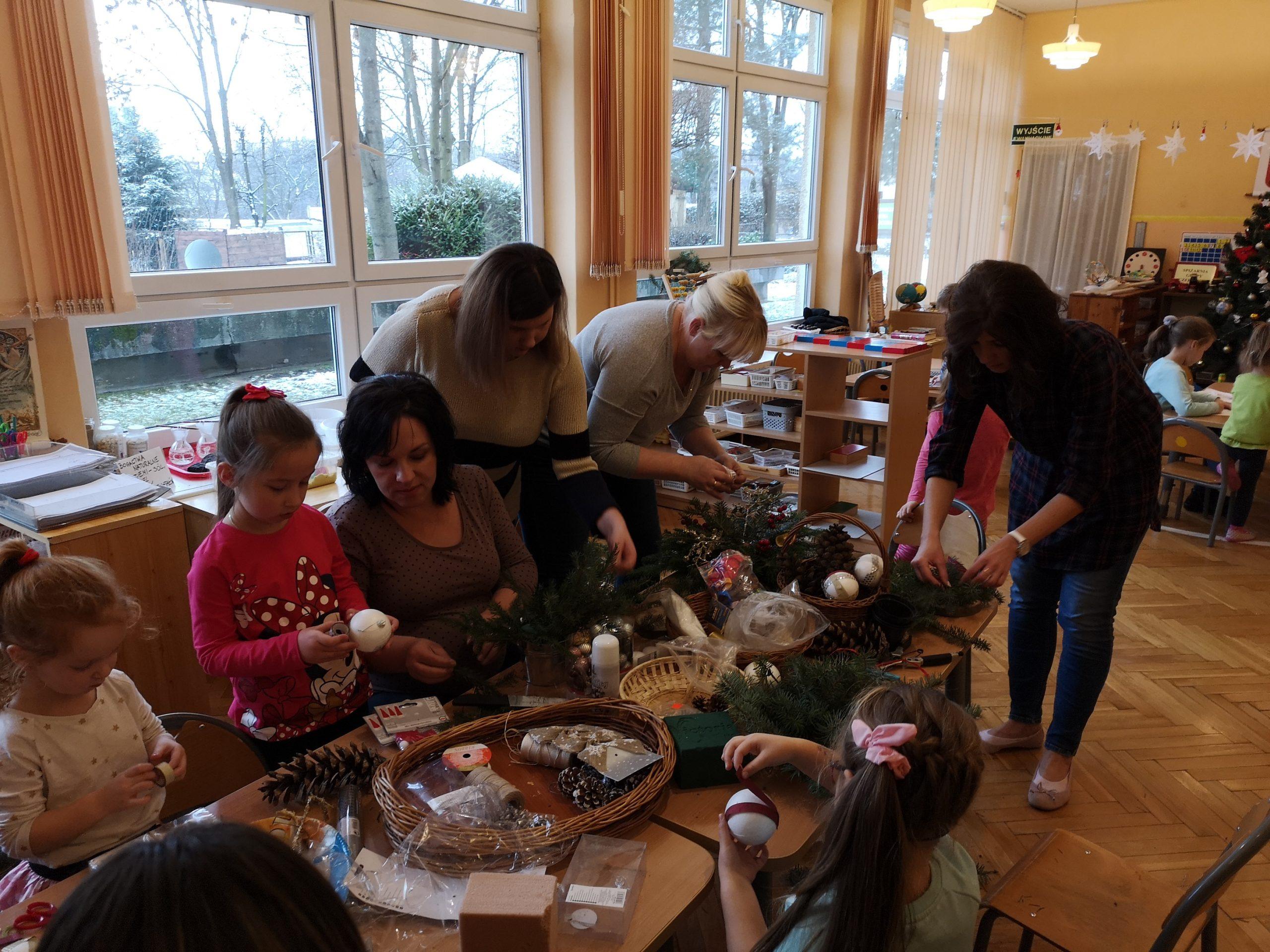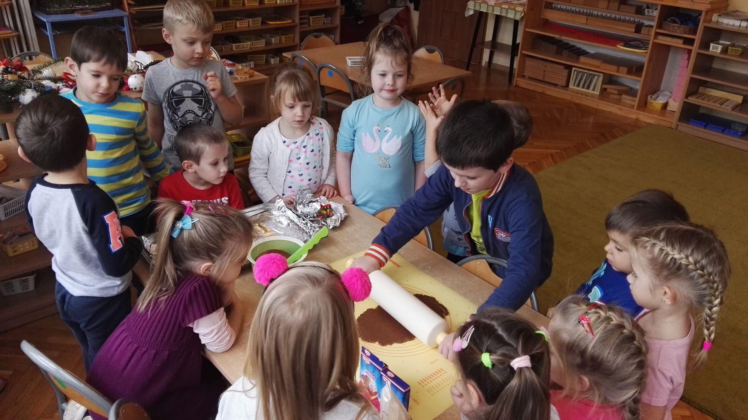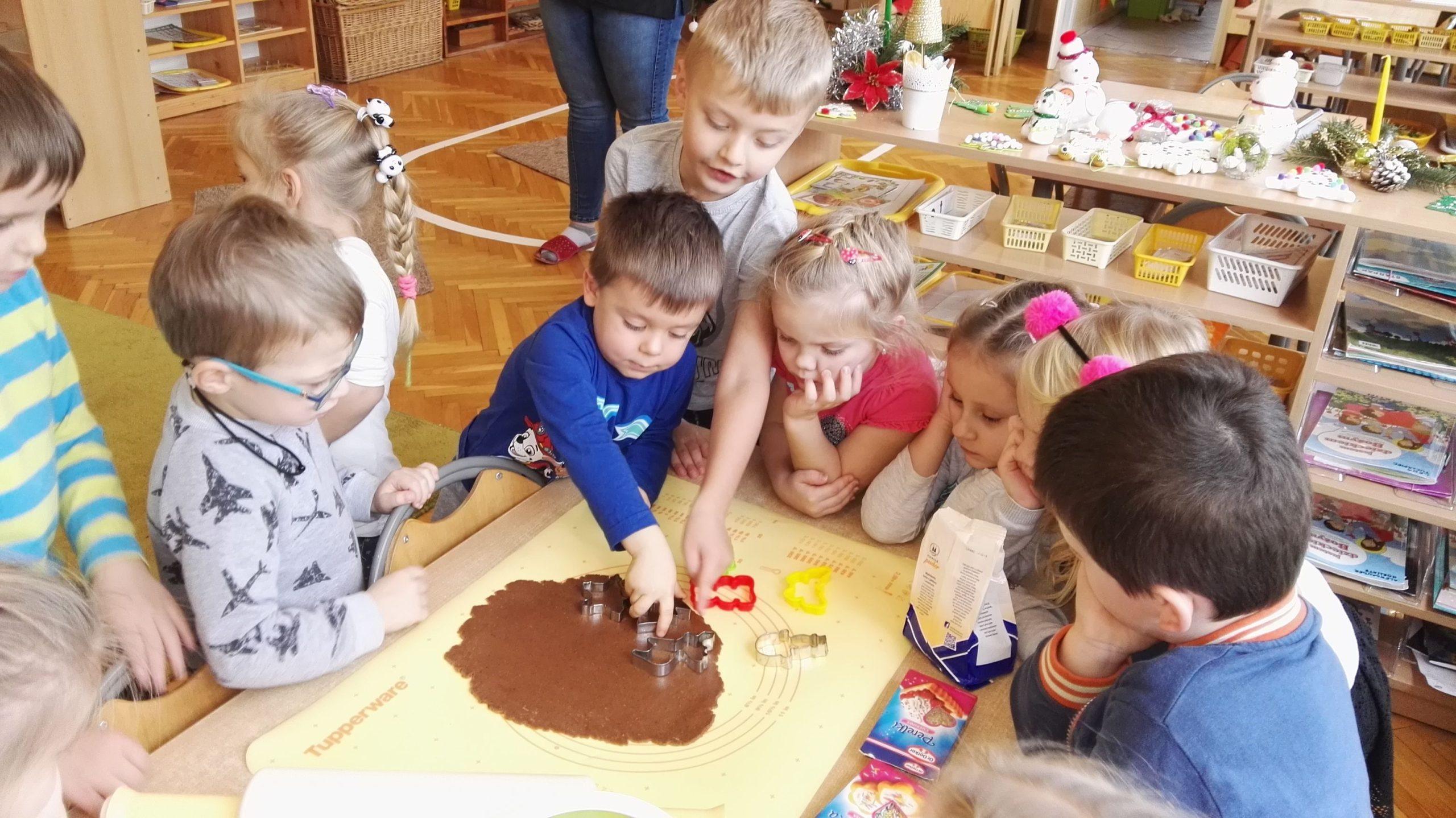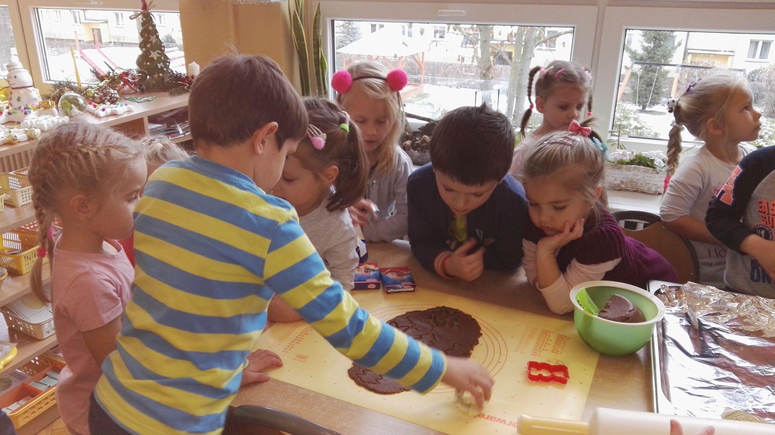 Wigilia Bożego Narodzenia to jeden z najpiękniejszych dni w roku, dlatego w naszej przedszkolnej społeczności przeżywamy go bardzo uroczyście. W tym dniu w każdej grupie, jak i w całym przedszkolu, już od samego rana panowała radosna, ożywiona atmosfera. Dzieci bardzo chętnie pomagały w przygotowaniach. Wspólnie nakrywały do stołu, ustawiały krzesła, rozkładały serwetki. O wyznaczonej godzinie wszystkie grupy zebrały się w holu naszego przedszkola, aby wziąć udział w uroczystej godzince adwentowej,przygotowanej przez Grupę Czerwoną z gościnnym udziałem niektórych przedszkolaków z Grupy Zielonej, pt. „Dziś jest dzień narodzin Pana Jezusa” przedstawionej w formie Jasełek. Aktorzy – Józef, Maryja, Aniołki, Królowie, Pasterze, Kobiety, Dzieci z poszczególnych grup, które złożyły dary u stóp Maleńkiego Jezusa, przygotowane dekoracje (żłobek, gwiazda betlejemska, szopka), wspólny śpiew najpiękniejszych polskich kolęd wprawiły wszystkich w świąteczny nastrój.