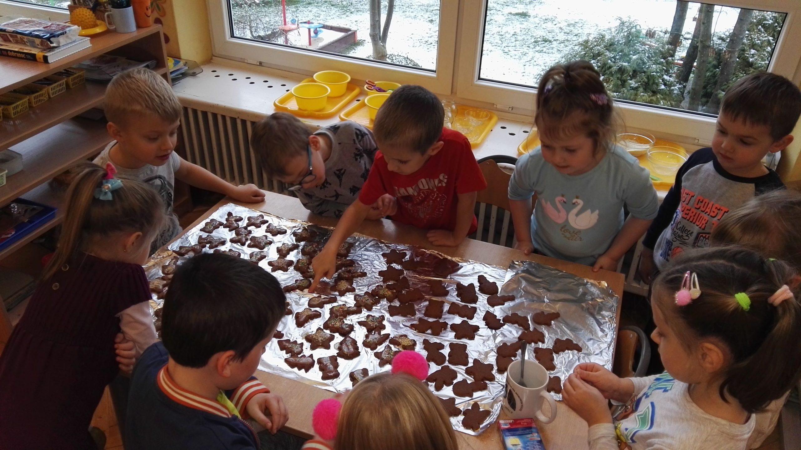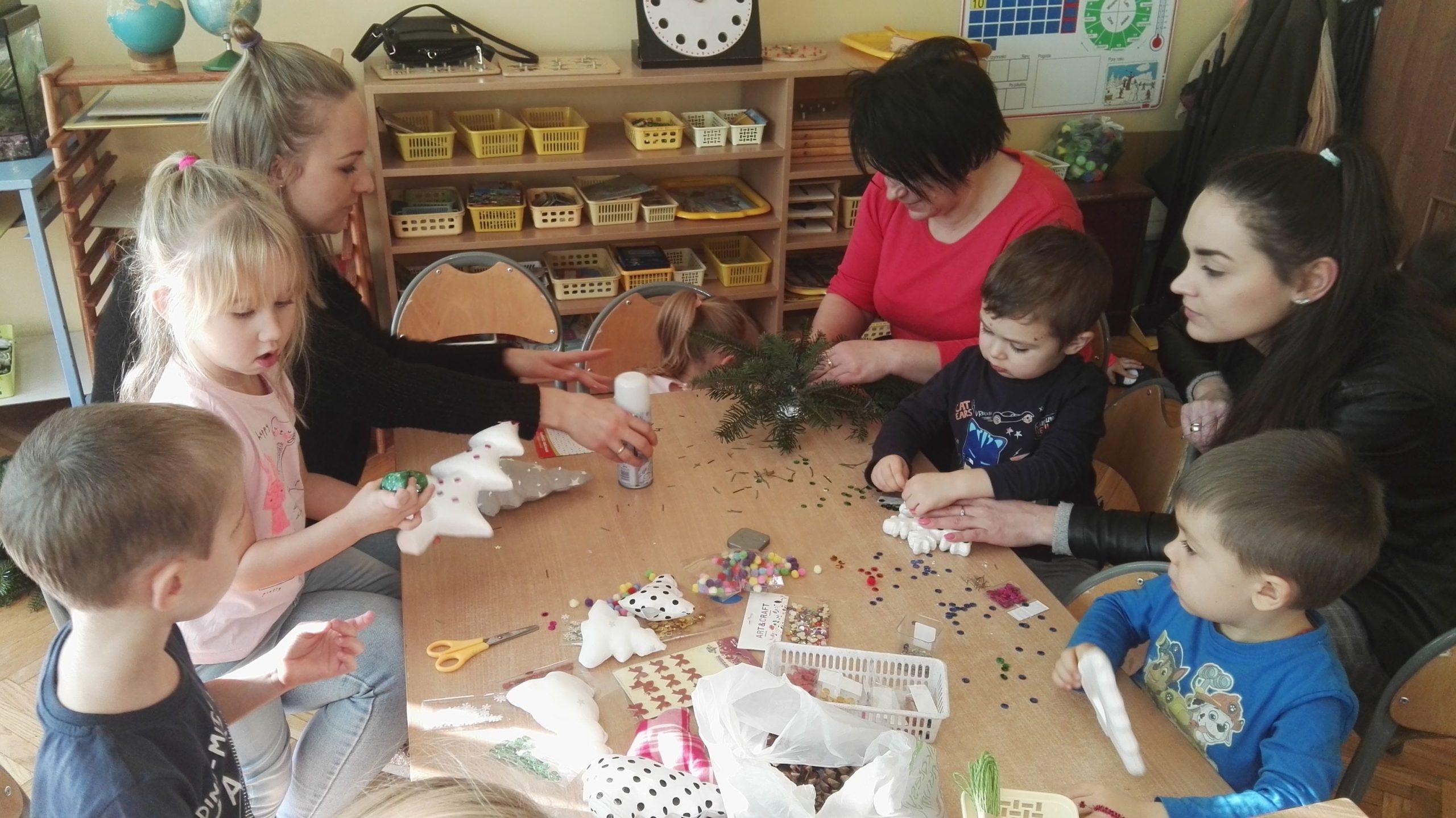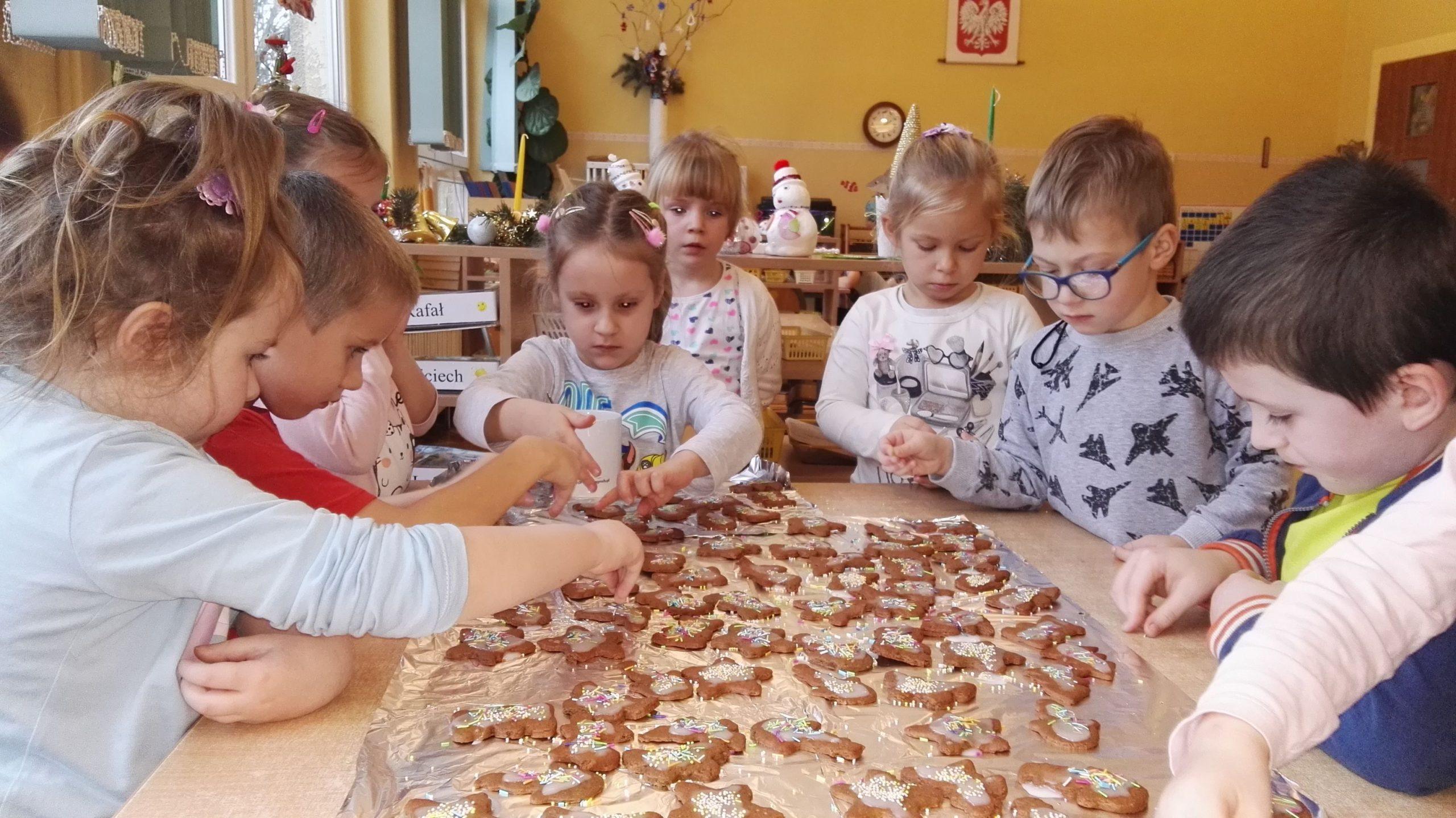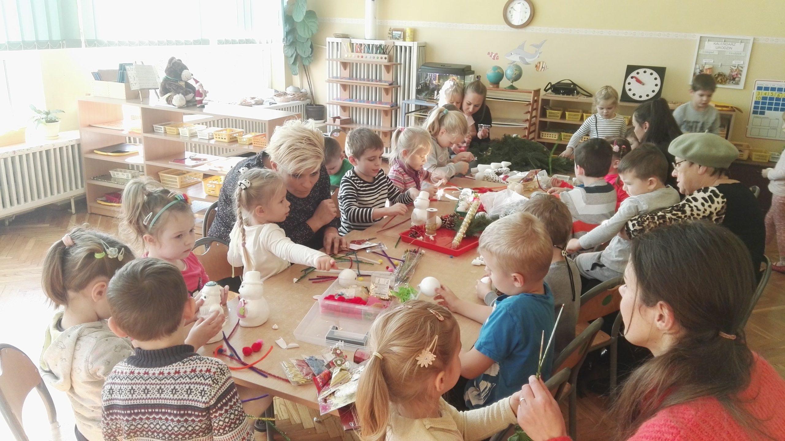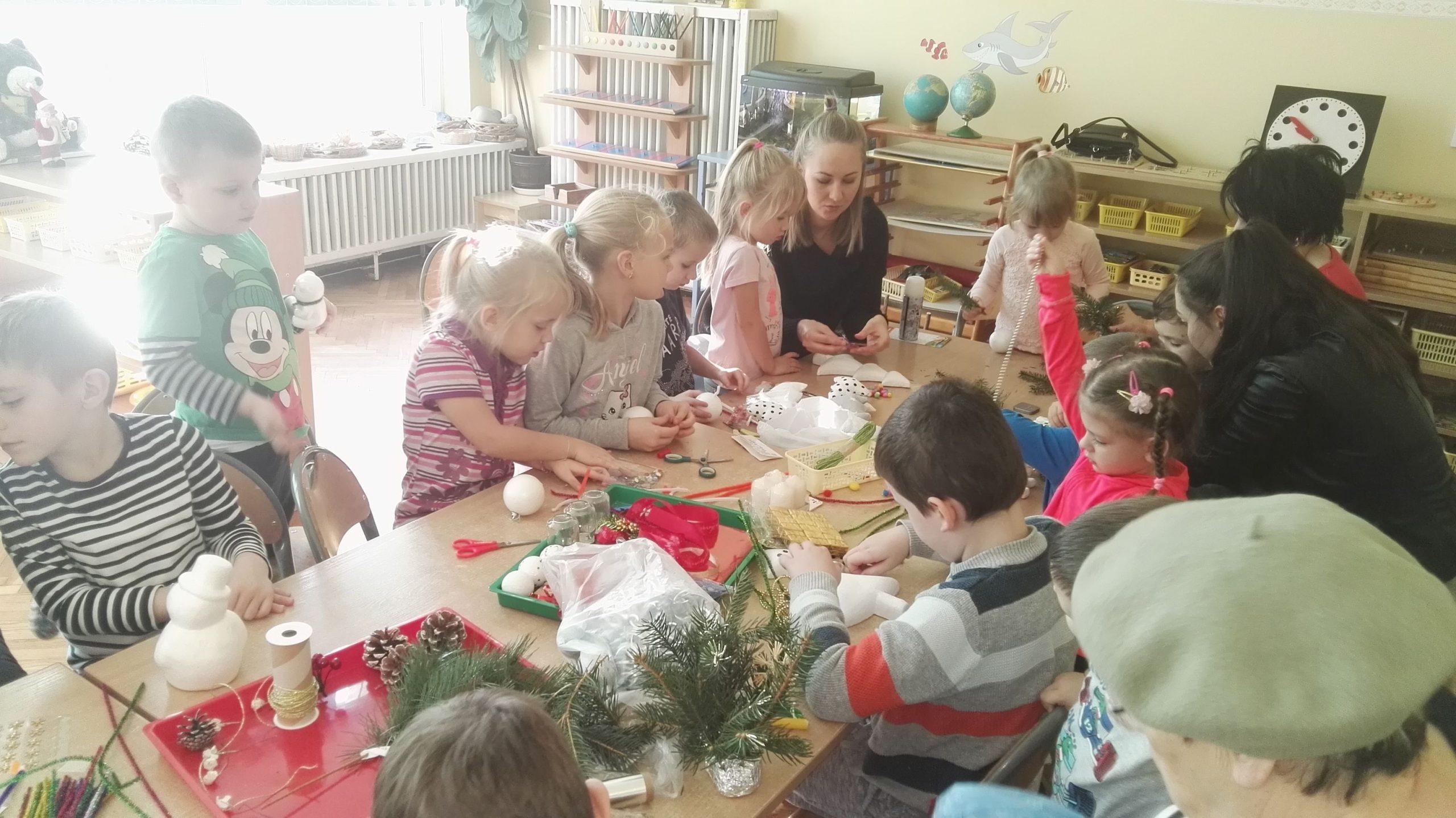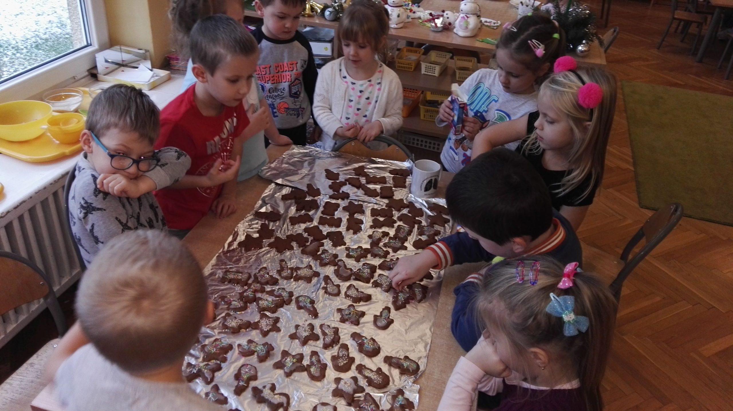 Wigilia Bożego Narodzenia to jeden z najpiękniejszych dni w roku, dlatego w naszej przedszkolnej społeczności przeżywamy go bardzo uroczyście. W tym dniu w każdej grupie, jak i w całym przedszkolu, już od samego rana panowała radosna, ożywiona atmosfera. Dzieci bardzo chętnie pomagały w przygotowaniach. Wspólnie nakrywały do stołu, ustawiały krzesła, rozkładały serwetki. O wyznaczonej godzinie wszystkie grupy zebrały się w holu naszego przedszkola, aby wziąć udział w uroczystej godzince adwentowej,przygotowanej przez Grupę Czerwoną z gościnnym udziałem niektórych przedszkolaków z Grupy Zielonej, pt. „Dziś jest dzień narodzin Pana Jezusa” przedstawionej w formie Jasełek. Aktorzy – Józef, Maryja, Aniołki, Królowie, Pasterze, Kobiety, Dzieci z poszczególnych grup, które złożyły dary u stóp Maleńkiego Jezusa, przygotowane dekoracje (żłobek, gwiazda betlejemska, szopka), wspólny śpiew najpiękniejszych polskich kolęd wprawiły wszystkich w świąteczny nastrój.
