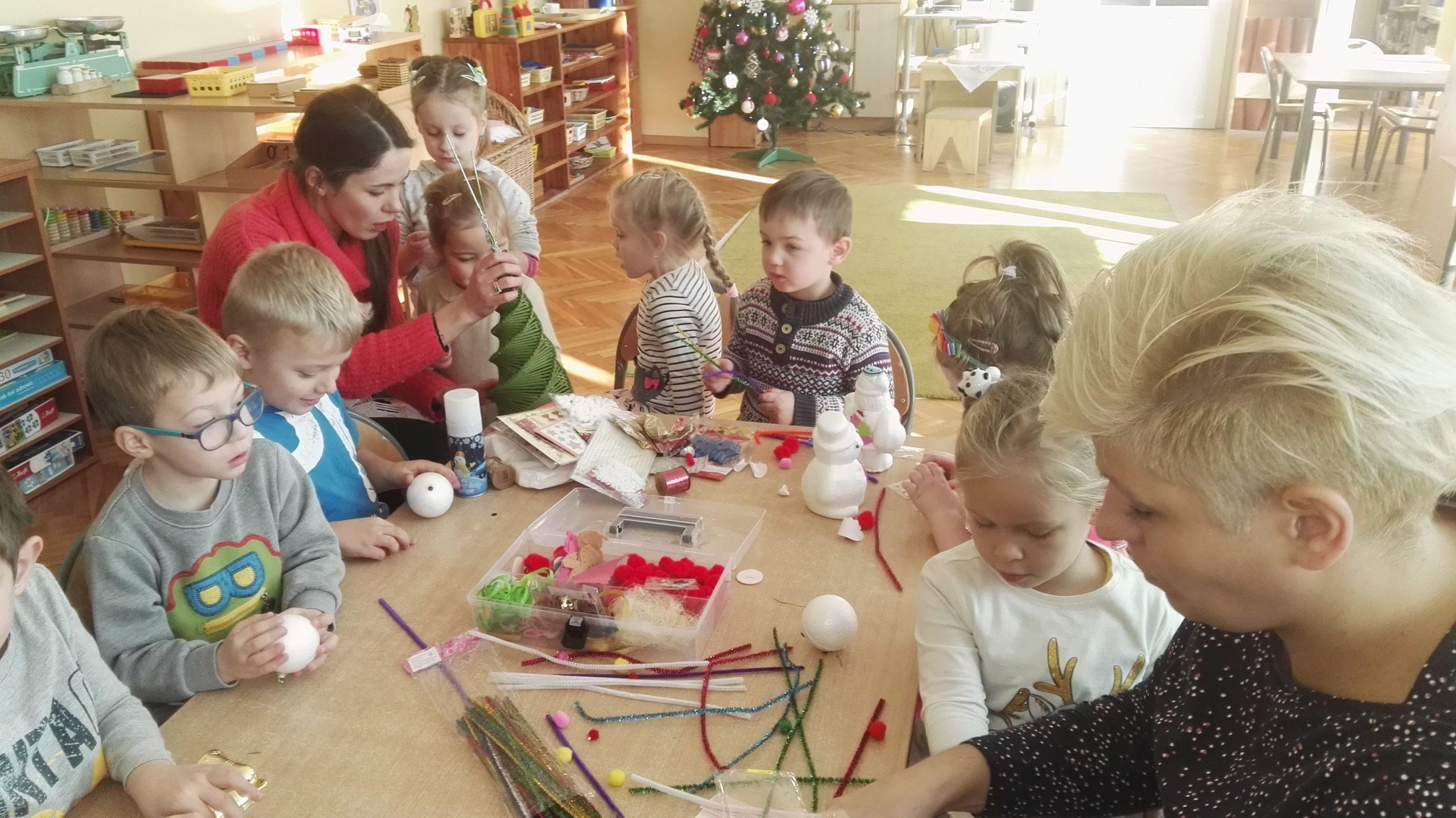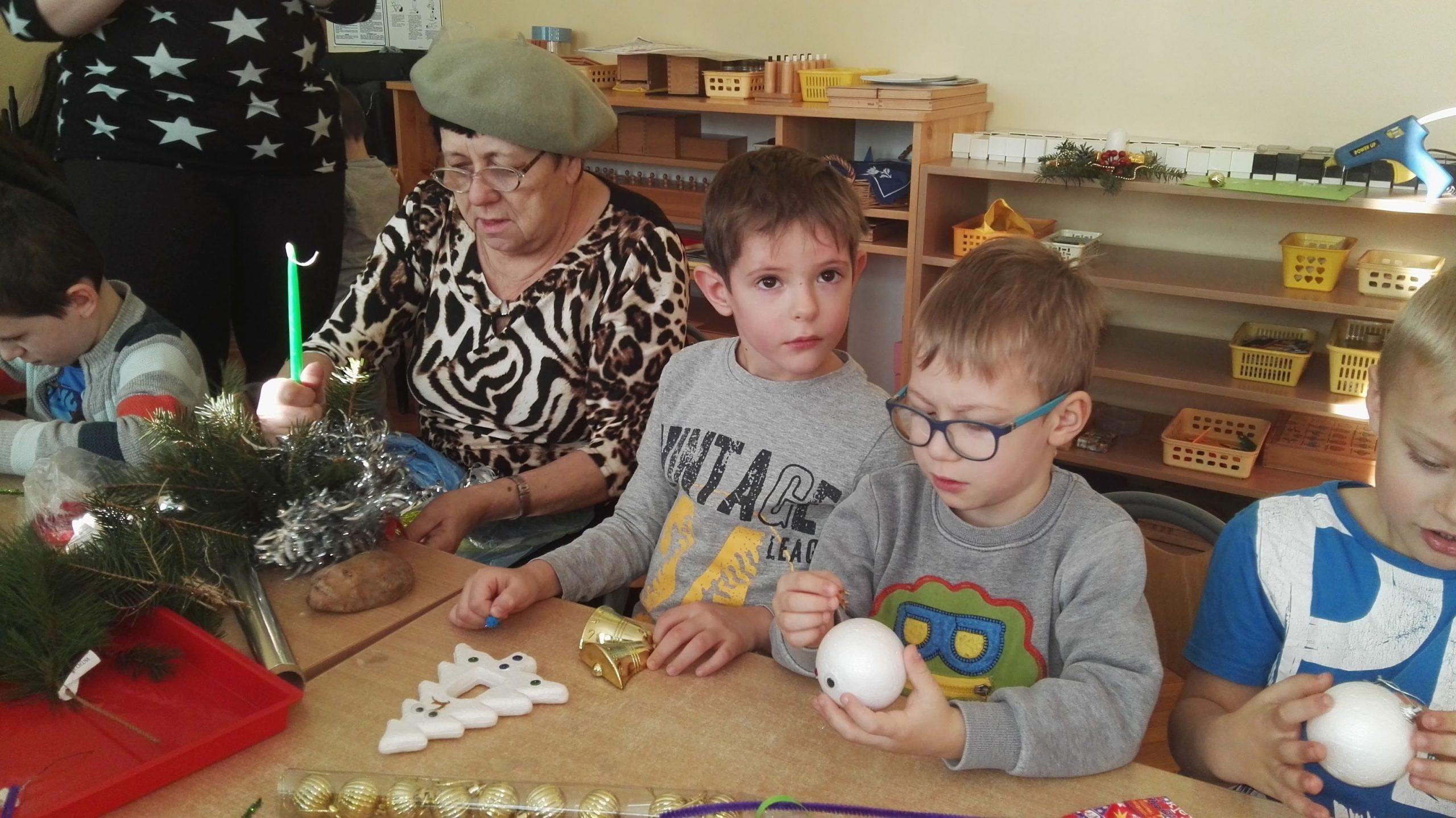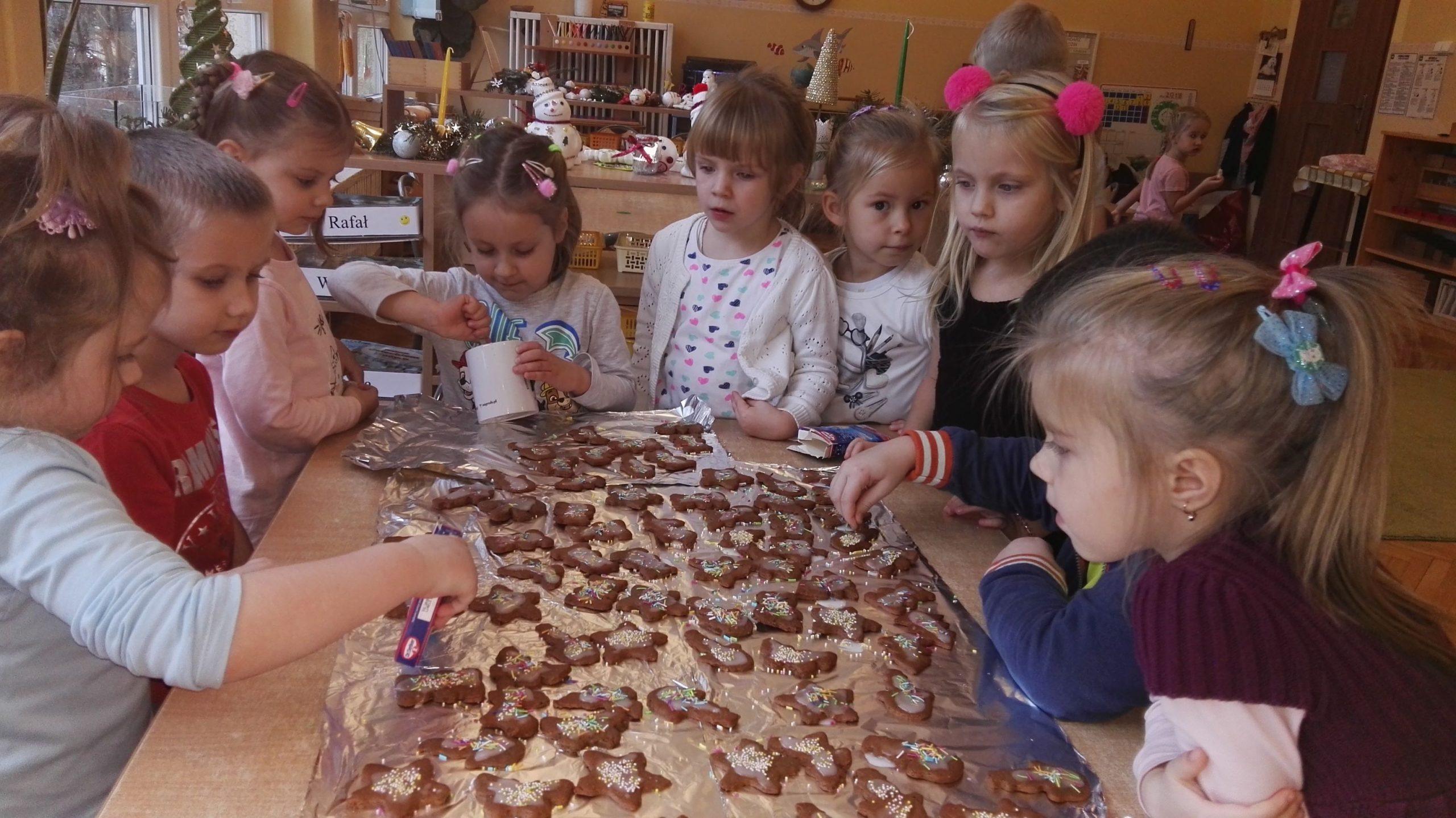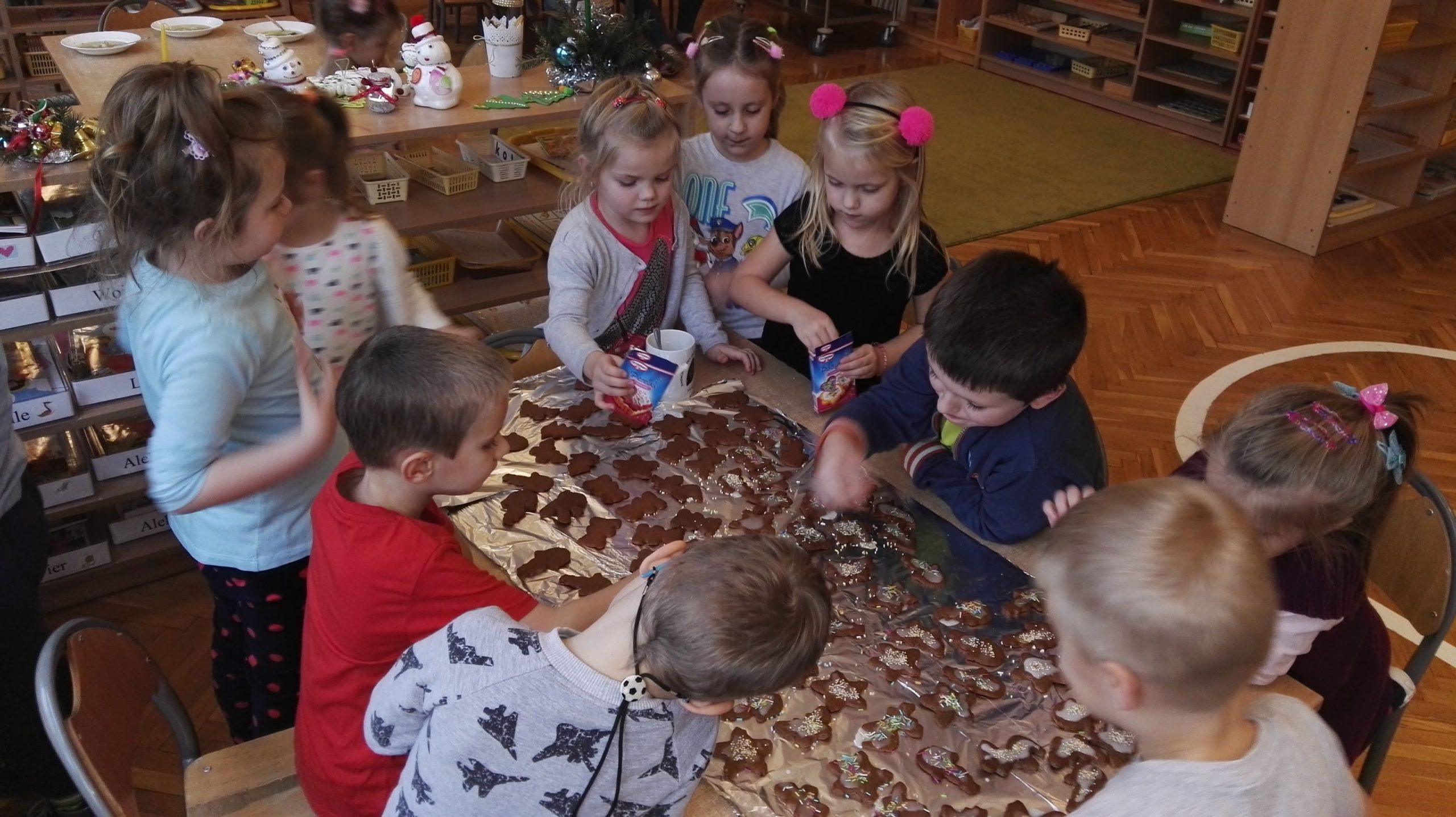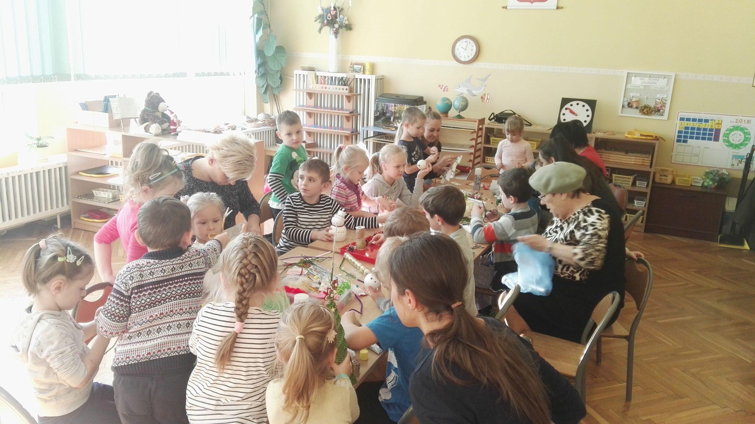 Wigilia Bożego Narodzenia to jeden z najpiękniejszych dni w roku, dlatego w naszej przedszkolnej społeczności przeżywamy go bardzo uroczyście. W tym dniu w każdej grupie, jak i w całym przedszkolu, już od samego rana panowała radosna, ożywiona atmosfera. Dzieci bardzo chętnie pomagały w przygotowaniach. Wspólnie nakrywały do stołu, ustawiały krzesła, rozkładały serwetki. O wyznaczonej godzinie wszystkie grupy zebrały się w holu naszego przedszkola, aby wziąć udział w uroczystej godzince adwentowej,przygotowanej przez Grupę Czerwoną z gościnnym udziałem niektórych przedszkolaków z Grupy Zielonej, pt. „Dziś jest dzień narodzin Pana Jezusa” przedstawionej w formie Jasełek. Aktorzy – Józef, Maryja, Aniołki, Królowie, Pasterze, Kobiety, Dzieci z poszczególnych grup, które złożyły dary u stóp Maleńkiego Jezusa, przygotowane dekoracje (żłobek, gwiazda betlejemska, szopka), wspólny śpiew najpiękniejszych polskich kolęd wprawiły wszystkich w świąteczny nastrój.