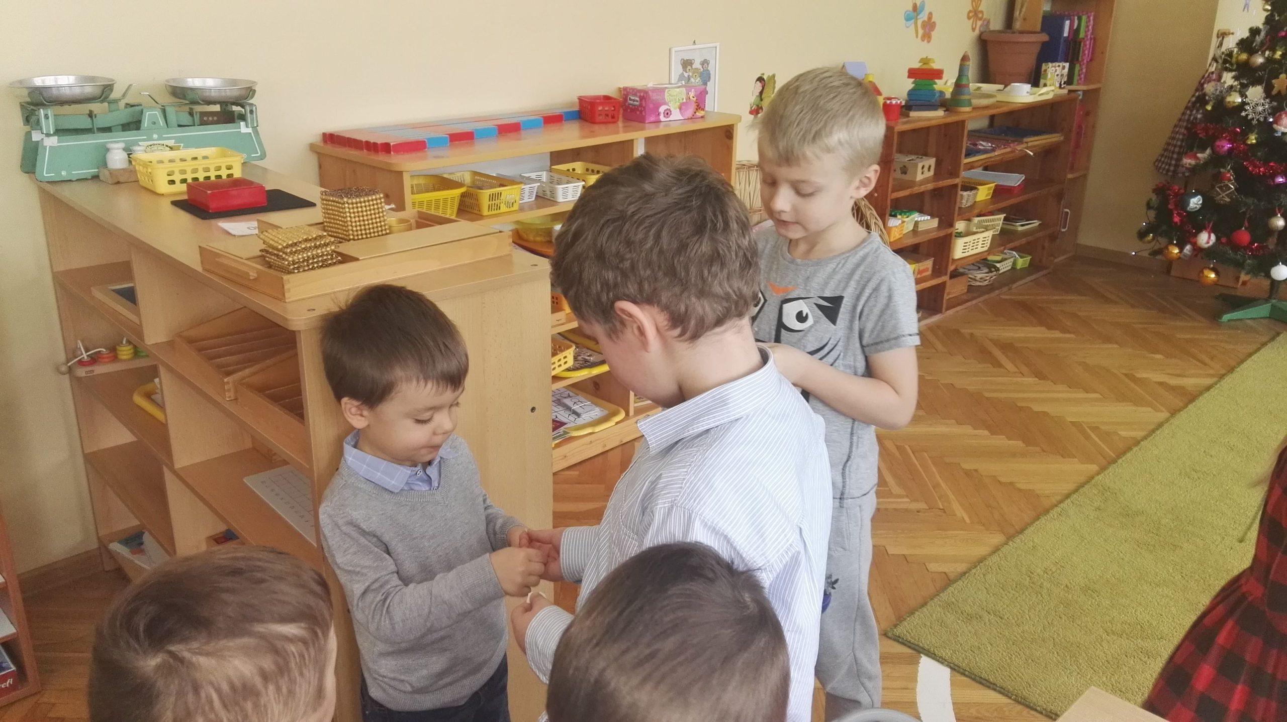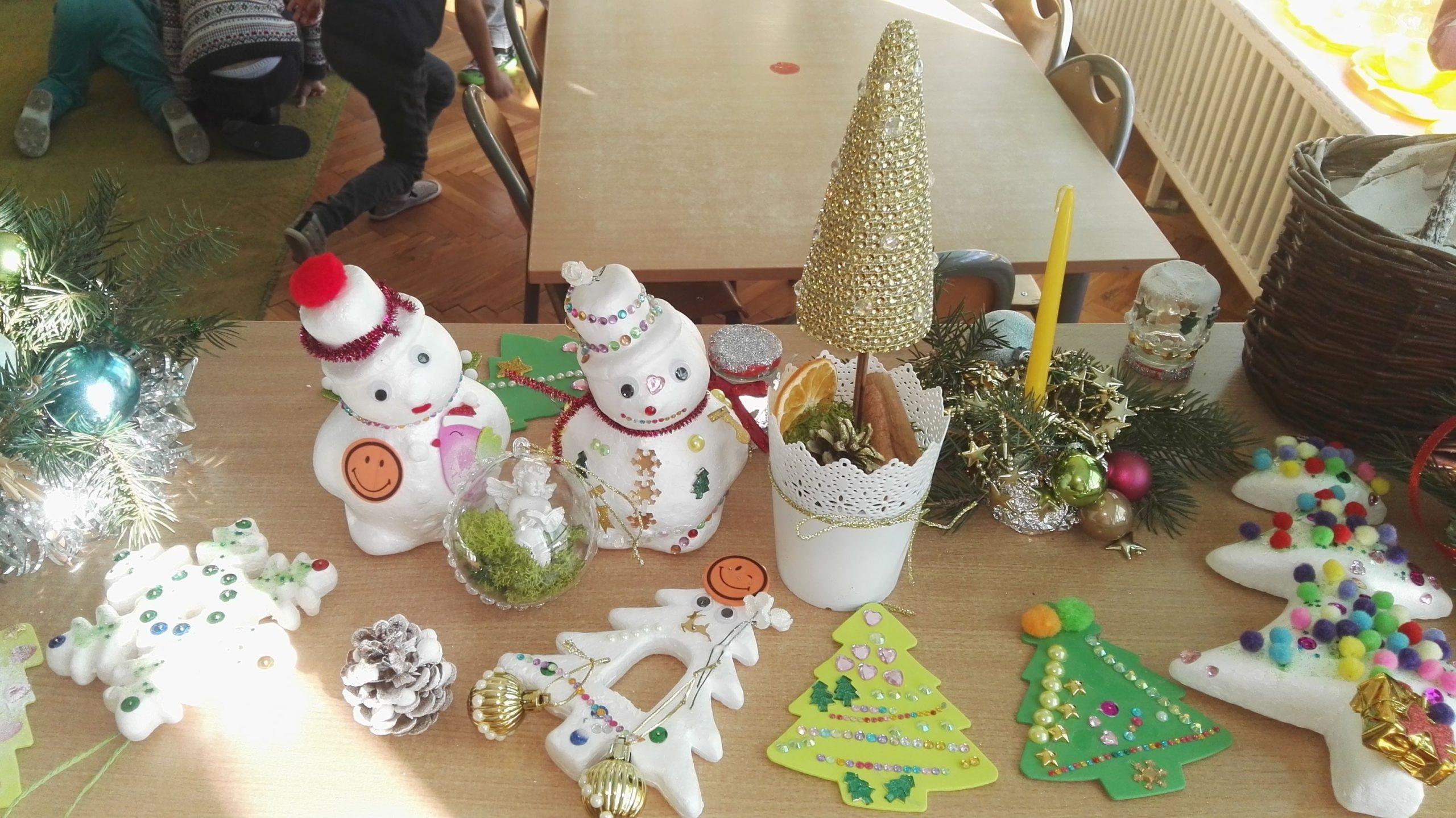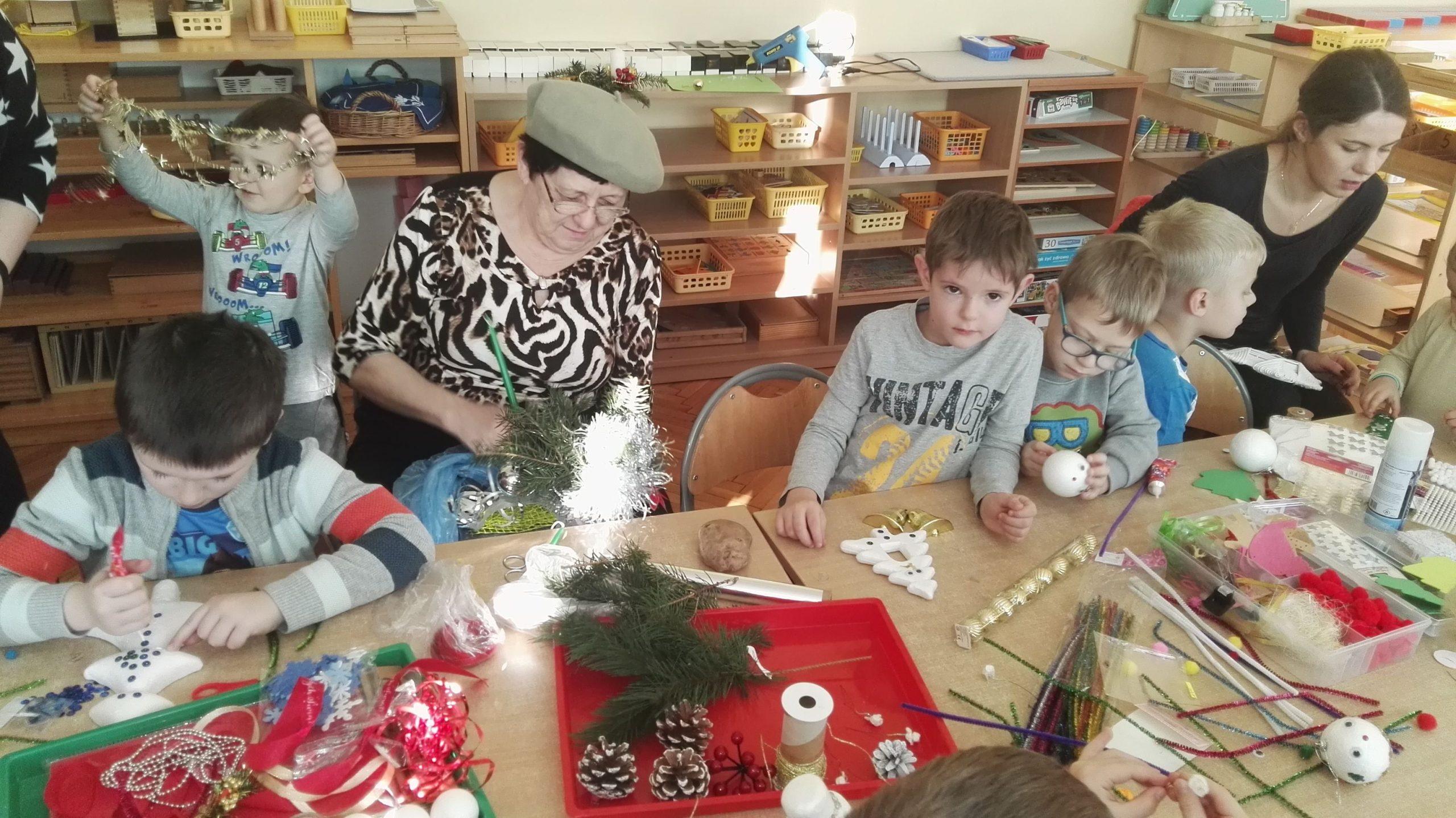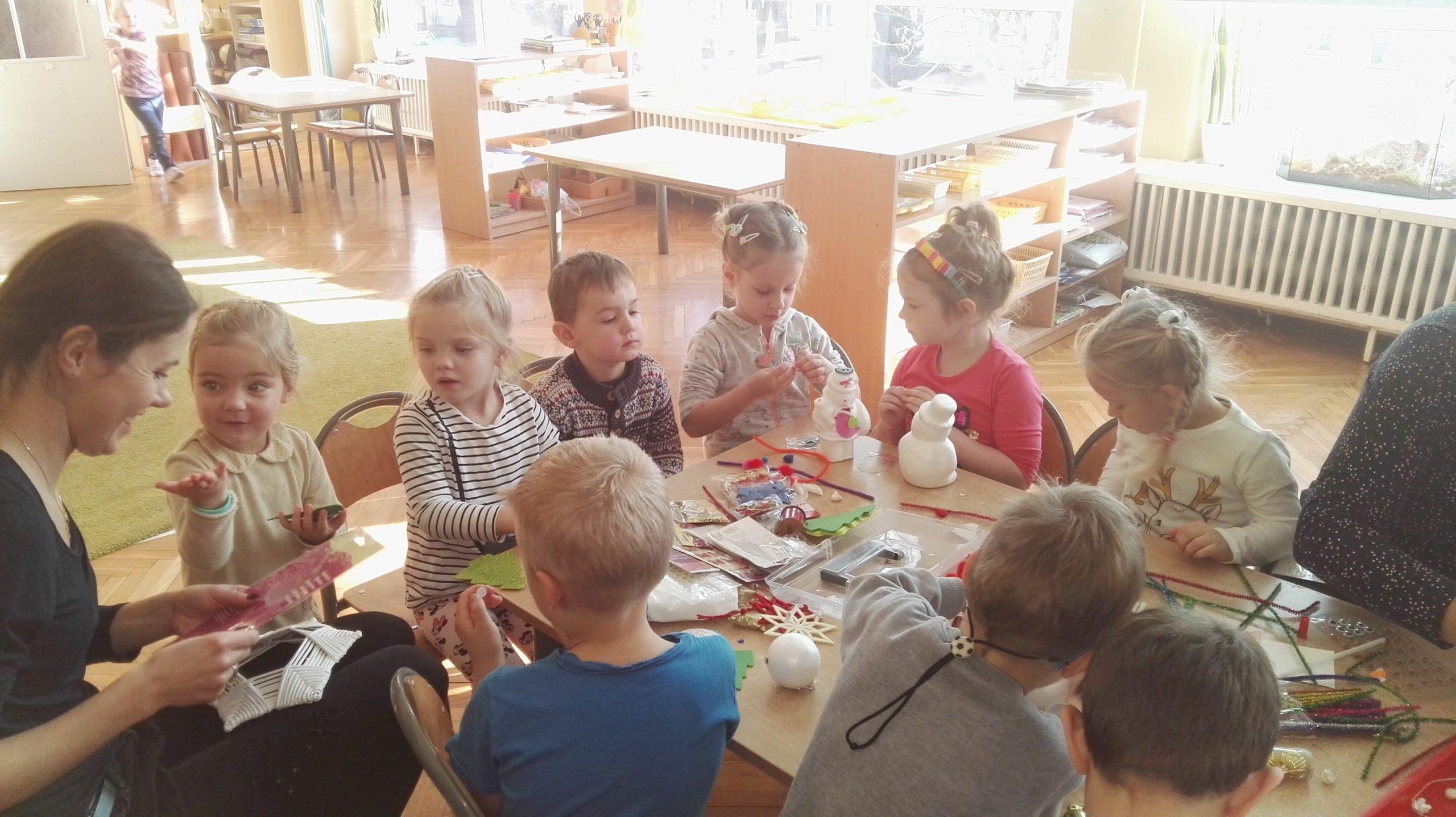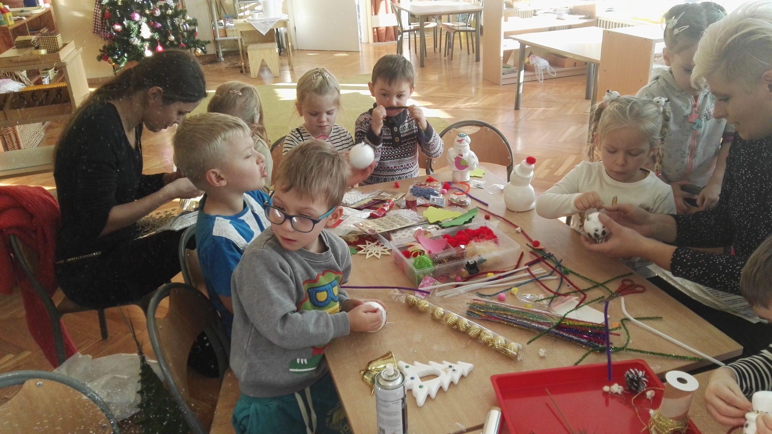 Wigilia Bożego Narodzenia to jeden z najpiękniejszych dni w roku, dlatego w naszej przedszkolnej społeczności przeżywamy go bardzo uroczyście. W tym dniu w każdej grupie, jak i w całym przedszkolu, już od samego rana panowała radosna, ożywiona atmosfera. Dzieci bardzo chętnie pomagały w przygotowaniach. Wspólnie nakrywały do stołu, ustawiały krzesła, rozkładały serwetki. O wyznaczonej godzinie wszystkie grupy zebrały się w holu naszego przedszkola, aby wziąć udział w uroczystej godzince adwentowej,przygotowanej przez Grupę Czerwoną z gościnnym udziałem niektórych przedszkolaków z Grupy Zielonej, pt. „Dziś jest dzień narodzin Pana Jezusa” przedstawionej w formie Jasełek. Aktorzy – Józef, Maryja, Aniołki, Królowie, Pasterze, Kobiety, Dzieci z poszczególnych grup, które złożyły dary u stóp Maleńkiego Jezusa, przygotowane dekoracje (żłobek, gwiazda betlejemska, szopka), wspólny śpiew najpiękniejszych polskich kolęd wprawiły wszystkich w świąteczny nastrój.