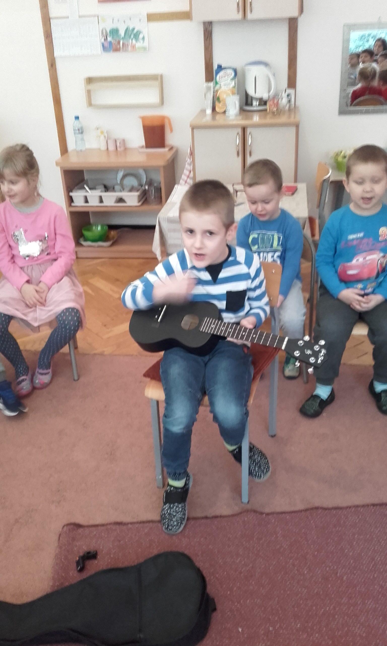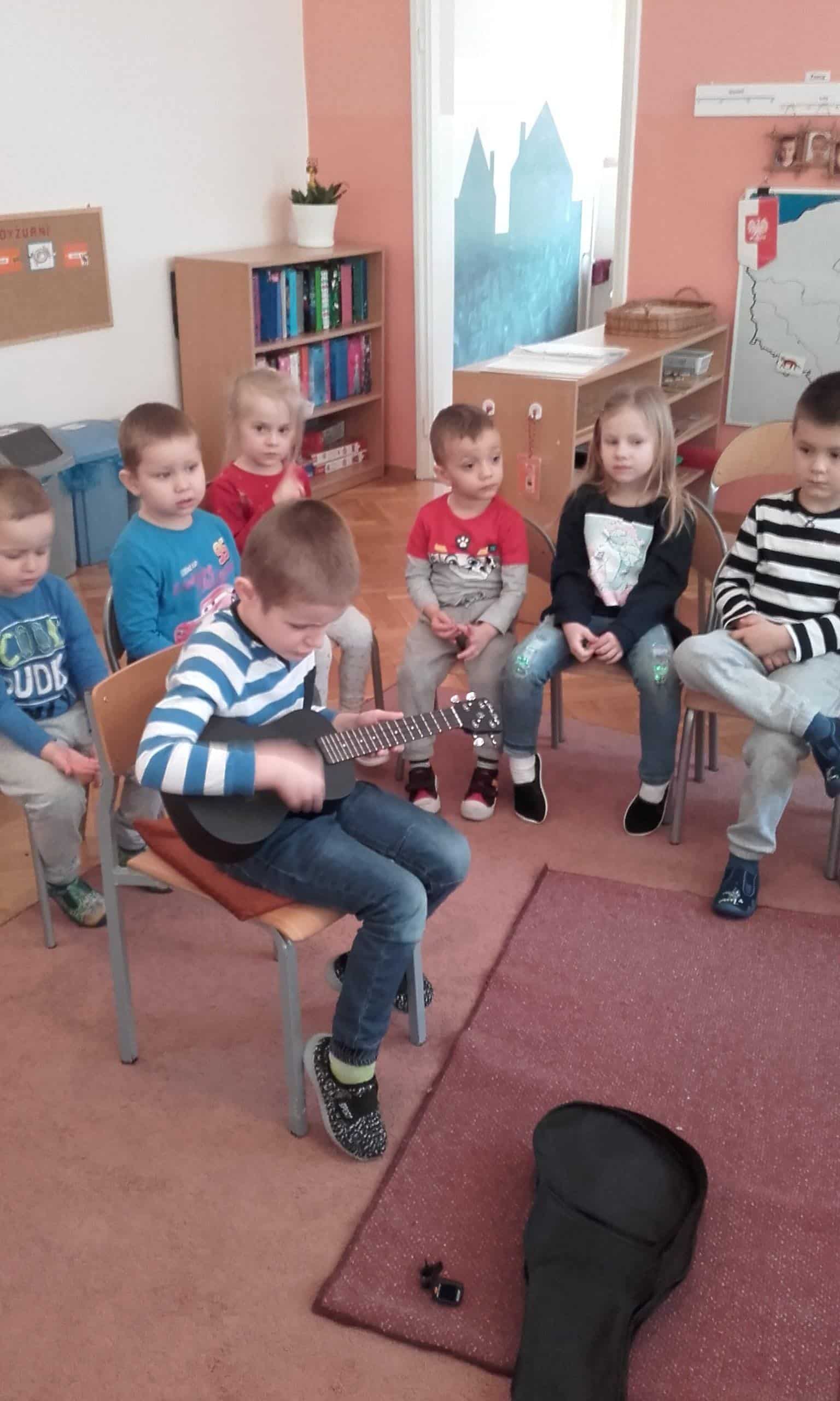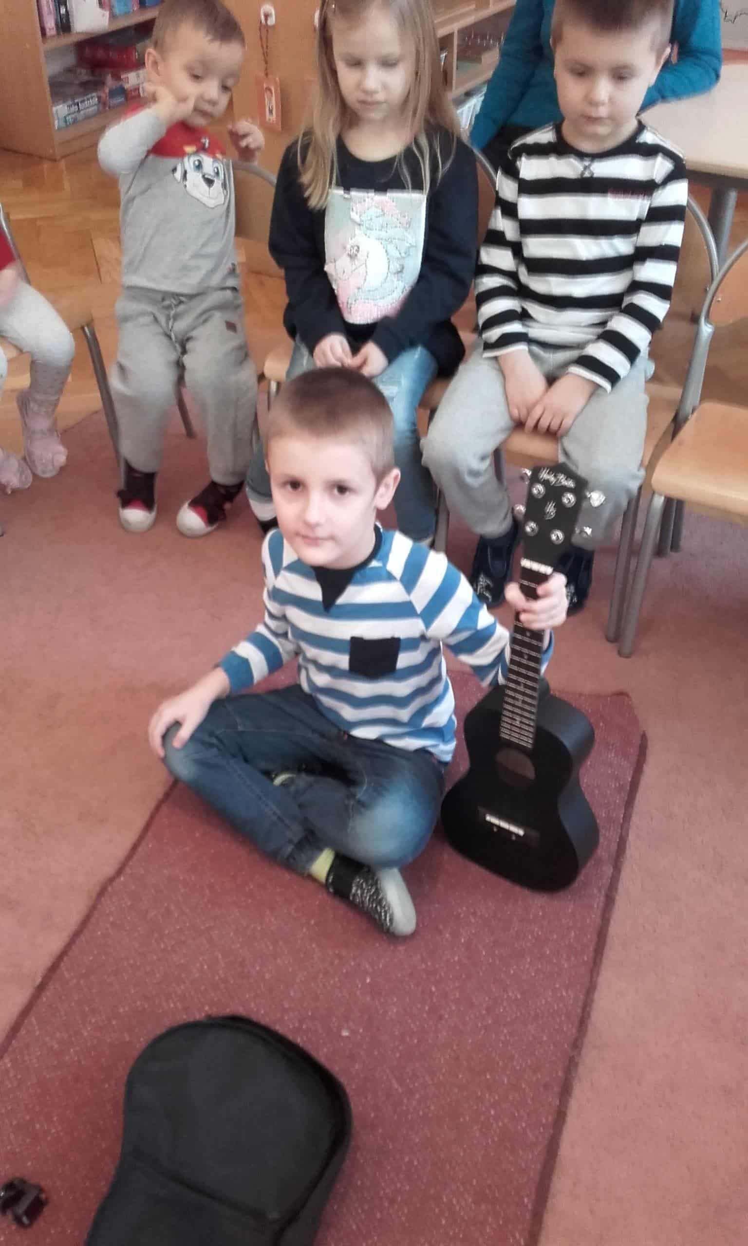 Każde dziecko jest wyjątkowe i ma pewien określony w sobie potencjał. Od nas dorosłych – nauczycieli i rodziców zależy, czy ten potencjał dostrzeżemy i docenimy i dołożymy wszelkich starań, aby go rozwinąć. U dzieci możemy zaobserwować rożne rodzaje zdolności: np. twórcze, czyli rozumiane jako umiejętność znajdowania wielu rożnych rozwiązań zadań i problemów, a także kierunkowe zwane też zdolnościami specjalnymi. Mogą to być uzdolnienia matematyczne, artystyczne , językowe… Warto doceniać każde wysiłki dziecka w tym względzie. Niektóre dzieci pięknie rysują, inne pięknie śpiewają lub recytują , jeszcze inne mają bardzo dobrą wyobraźnię i np. budują nietypowe konstrukcje z klocków lub kochają majsterkować. Niektóre zainteresowane są nauką gry na instrumencie. To są właśnie pierwsze symptomy pewnych predyspozycji i uzdolnień. Konieczne jest zatem wychodzenie naprzeciw tym uzdolnieniom, zainteresowaniom i ukierunkowanie ich zgodnie z możliwościami i potencjałem dziecka. Wychodząc naprzeciw rozwojowi potencjału drzemiącego w dzieciach postanowiliśmy rozpocząć cykl zajęć, podczas których dzieci będą mogły prezentować swoje zainteresowania, uzdolnienia, będą mogły prezentować swoje np. ciekawe kolekcje. Jako pierwszy zaprezentował się ADAŚ, który zaprezentował nam swój instrument muzyczny. Już sama nazwa bardzo zaciekawiła dzieci – ukulele koncertowe. Dzieci dowiedziały się, że jest to instrument należący do instrumentów strunowych szarpanych. ADAŚ okazał się prawdziwym ekspertem w tej dziedzinie. Opisał budowę instrumentu, wytłumaczył, jak się go stroi, w jaki sposób wydobywa dźwięki. Na koniec mogliśmy wysłuchać mini koncertu w wykonaniu Adasia. Wszystkim bardzo się podobało. Nie był to jedyny występ Adasia, bowiem kilka dni wcześniej Adaś wystąpił w towarzystwie swojej Mamy podczas konkursu kolęd i pastorałek organizowanym w Szkole Mistrzostwa Sportowego grając i śpiewając kolędę „Dzisiaj w Betlejem”- serdecznie gratulujemy. Brawo!!!