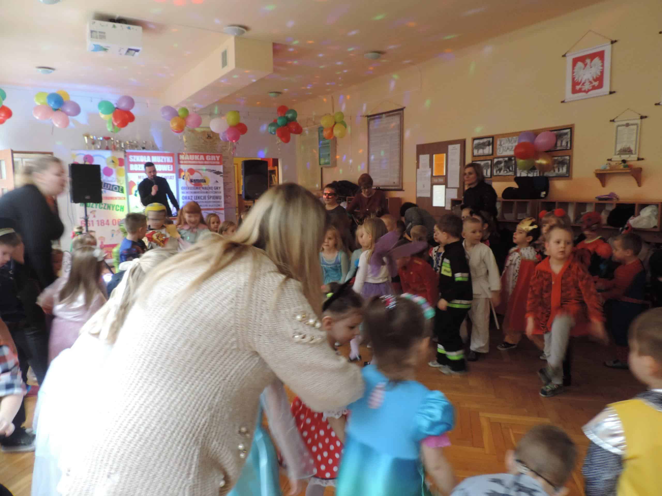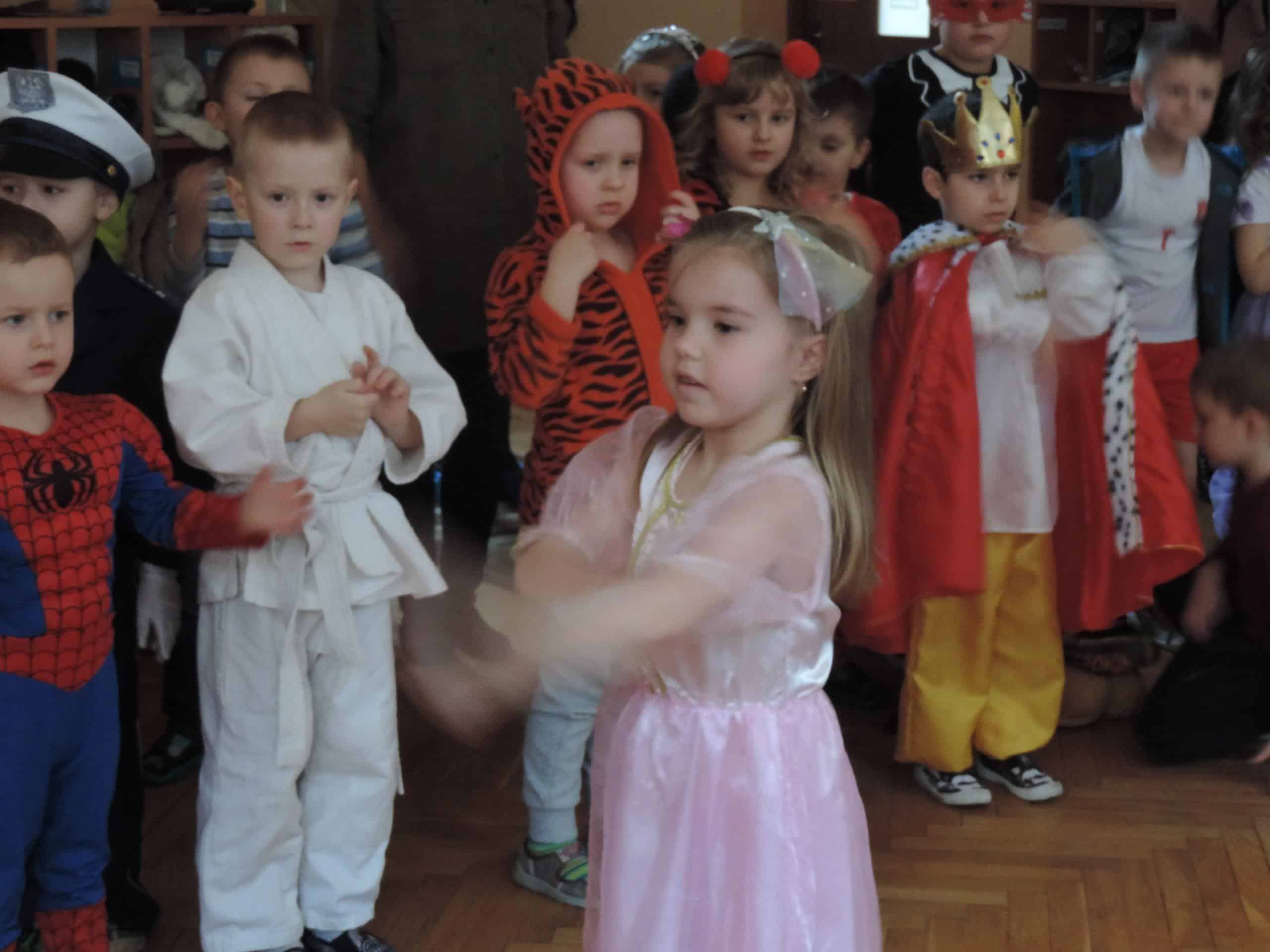 Tak też było i u nas. W dniu 5.02. odbył się w naszym przedszkolu Bal Karnawałowy. Tego dnia wszystkie dzieci już od rana były podekscytowane czekającą ich zabawą. Przedszkolaki przemieniły się bajkowe postacie . Były wśród nich: księżniczki, motylki, królewny, policjanci, piraci, strażacy, kowboje i wiele innych ciekawych postaci. Wystrój sali wprowadził w karnawałowy nastrój i zachęcał do wesołej zabawy. Na tę wyjątkową okazję zaprosiliśmy pana Dominika, który zachęcał wszystkich do tańca przygotowaną muzyką. Kiedy pojawiły się pierwsze rytmy muzyki wszystkie przedszkolaki wspólnie ze swoimi paniami z wielką ochotą rozpoczęły pląsy i tańce. Były „tańce – łamańce”, „pociąg”, „kaczuchy” i wiele innych wesołych utworów. Jednym słowem zabawa na 102!!!.