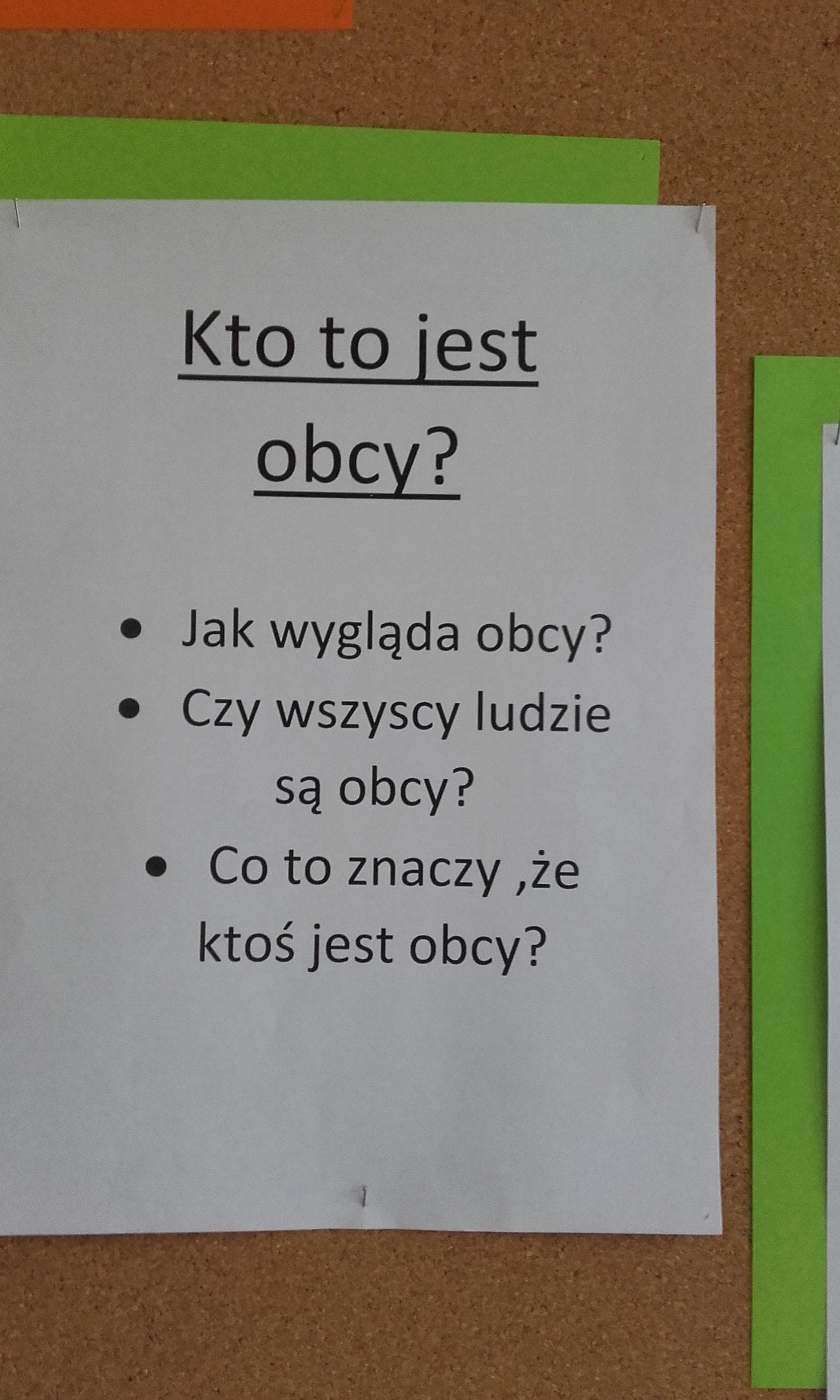 W przedszkolu realizowany jest program profilaktyczno – wychowawczy szeroko traktujący między innymi problem bezpieczeństwa dzieci. W tym roku szkolnym do działań z dziećmi włączone zostały treści związane z problematyką zagrożeń, jakie potencjalnie w obecnych czasach zagrażają dzieciom. Głównym celem tych działań jest nauczenie dzieci asertywnej postawy wobec dorosłych, zwłaszcza wtedy, kiedy przekraczają dopuszczalne granice społeczne i prawne. Tym działaniom będzie towarzyszyć hasło ” Naucz mnie, kiedy mówić – NIE!”. Zakres niebezpieczeństw jest coraz większy – zatem niezbędne jest wyrobienie u dzieci odruchu nieufności wobec nieznajomych – obcych. Szczególny niepokój budzą kontakty z nieznajomymi, a bezpieczeństwo dzieci zależny w głównej mierze od tego, czy dzieci są świadome zagrożeń i wiedzą jak ich uniknąć. Dlatego też rozpoczęliśmy realizację cyklu zajęć: Obcy – niebezpieczny (tworzenie piramidy postaci: jak wygląda, jaki ma wiek, czym kusi), poznanie 3 zasad radzenia sobie w sytuacji zagrożenia (1. Mówię NIE,2. Odchodzę, 3.Mówię zaufanemu dorosłemu), tworzenie listy zaufanych osób, „Wilk w koziej skórze- miła osoba o złych zamiarach, Potrafię mówić NIE- wiem jak sobie radzić w trudnej sytuacji i kto mi pomoże. Odbędą się również zajęcia uczące dzieci wyznaczania granic swojego ciała, dzieci będą poznawać zasady bezpiecznego kontaktu z osobami dorosłymi i uczone będą wyrażania niezgody na zachowanie nieakceptowane przez dziecko w kontekście tzw. „złego dotyku” . Przeprowadzone również zostaną praktyczne treningi 1.wzywania pomocy krzykiem i przez telefon, utrwalenia znajomości telefonów alarmowych 2. ucieczki przed napastnikiem,3. udawania, że nie słyszy się zaczepek i zachęt obcego. Jest to bardzo ważne, musimy uczynić wszystko, aby zwiększyć bezpieczeństwo naszych dzieci.