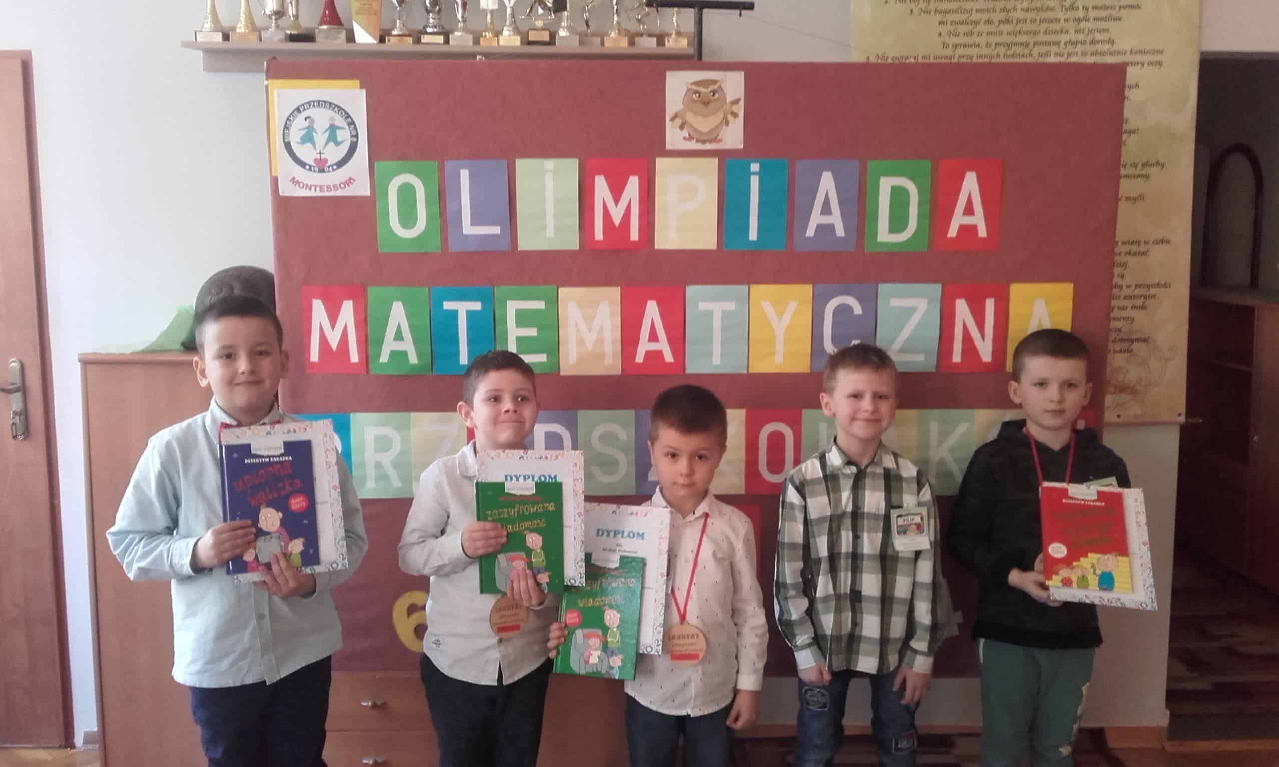 W przedszkolu organizowane są rożne sytuacje edukacyjne do rozwijania zainteresowań dzieci, a także do prezentowania swoich uzdolnień. Z myślą o dzieciach, które prezentują wyższy poziom sprawności w zakresie edukacji matematycznej zorganizowano już IV edycję Olimpiady Matematycznej dla Przedszkolaków. Rok 2019 został ogłoszony przez Senat Rokiem Matematyki dla upamiętnienia dorobku znanych polskich matematyków i pokazania wpływu matematyki dla rozwoju społeczeństw. Matematyka nazywana jest królową nauk, towarzyszy nam codziennie w wielu aspektach naszego życia. Dzieciom też. Olimpiada została zorganizowana dla dzieci 5 i 6 letnich z jarosławskich przedszkoli. Dzieci zmagały się z zadaniami matematycznymi o podwyższonym stopniu trudności, znacznie wykraczającymi poza ramy podstawy programowej wychowania przedszkolnego. Dzieci z entuzjazmem rozwiązywały zadania tekstowe, dokonywały zestawień liczbowych,gdy musiały wcielić się w rolę księgowego. Odczytywanie godzin na zegarze, dodawanie w zakresie 20 nie sprawiało żadnych trudności. Odszukiwanie liczb parzystych i nieparzystych też nie było problemem. Towarzyszący nam podczas Olimpiady rodzice byli bardzo dumni z osiągnięć swoich dzieci. W Olimpiadzie wzięło udział 18 dzieci z 7 jarosławskich przedszkoli. Było to duże przedsięwzięcie. Laureatami IV edycji Olimpiady Matematycznej z naszego przedszkola zostali: Gr. Pomarańczowa: Tomasz Kopacz i Michał Hołowacz, Gr. Zielona: Stella Dziukiewicz, Gr. Czerwona: Jakub Motyka, Gr. Niebieska: Filip Słoma, Gr. Żółta : Rafał Malinowski. To ogromny sukces tych dzieci. Są małymi mistrzami matematyki. Pamiątkowe dyplomy, medale i książki będą stanowić na pewno cenną pamiątkę tej Olimpiady. Serdecznie gratulujemy wszystkim laureatom – BRAWO!.
