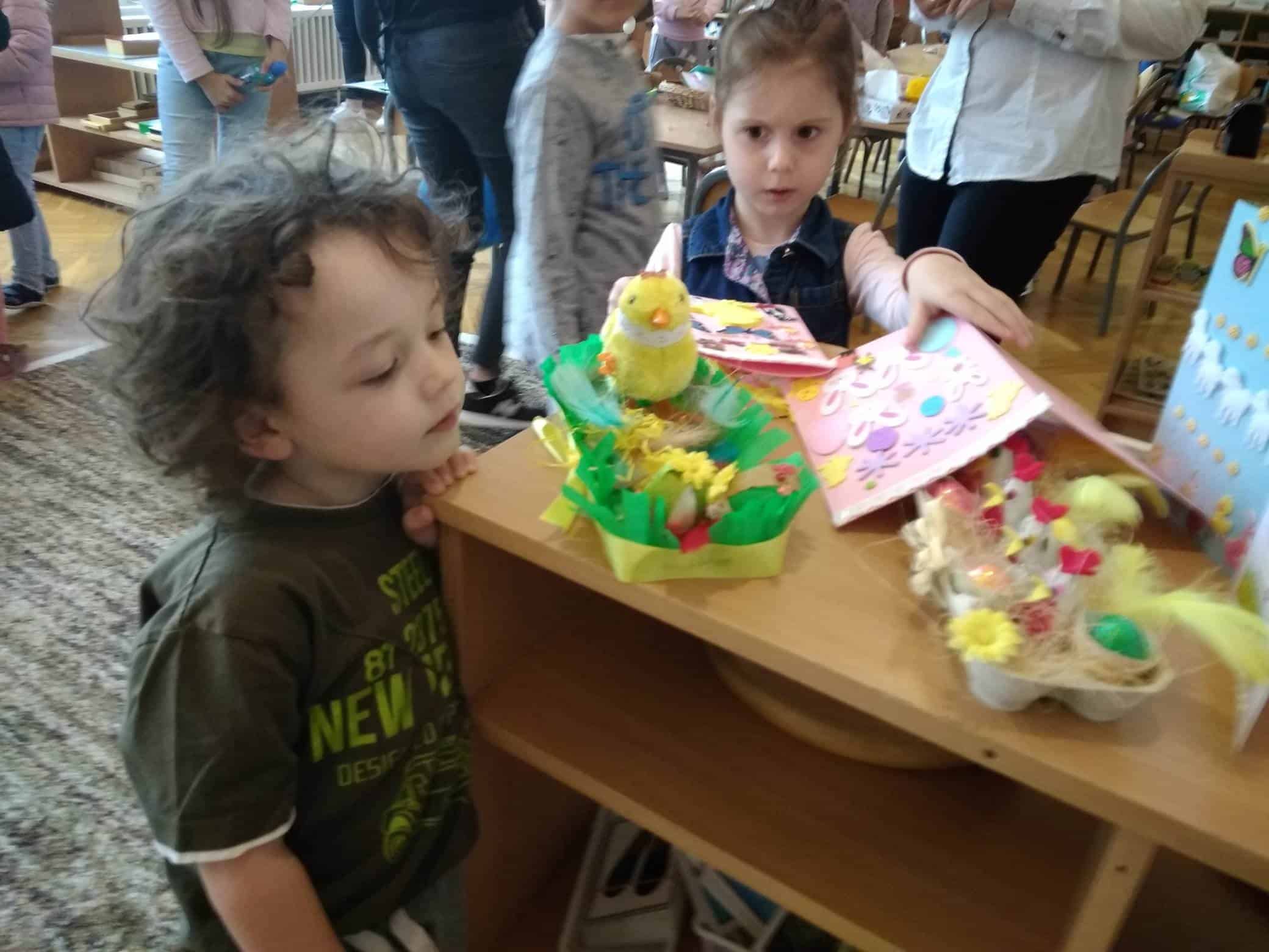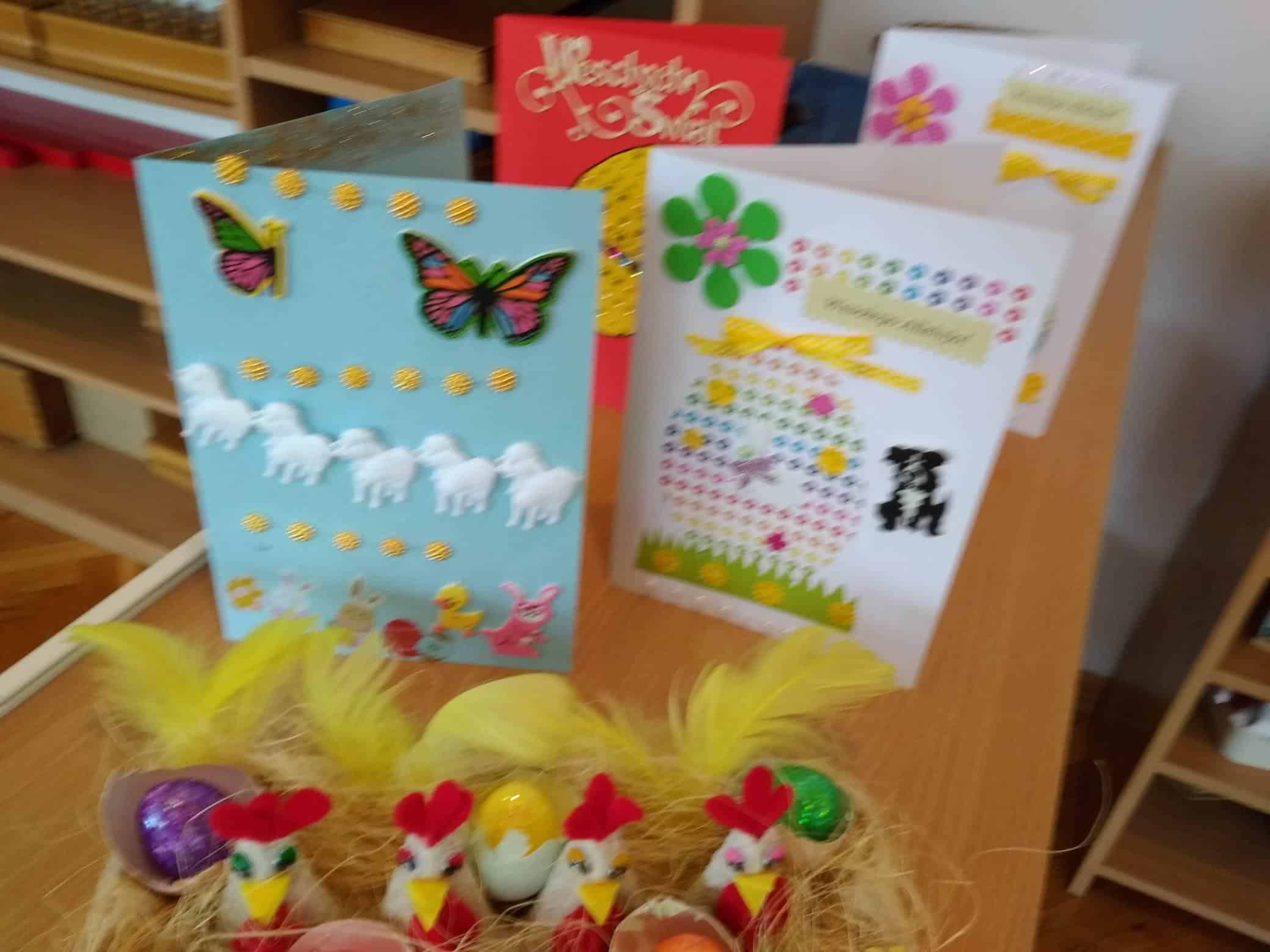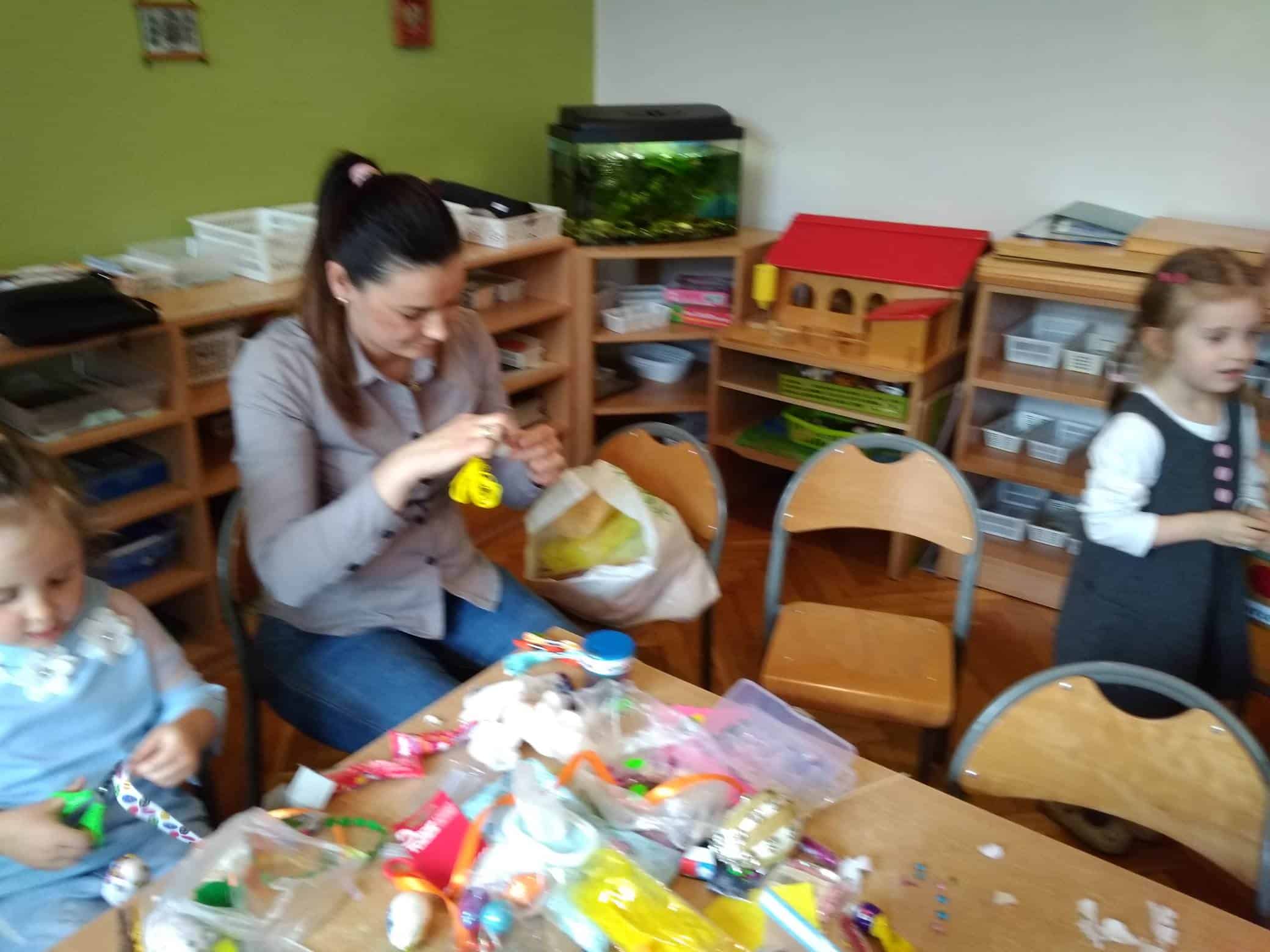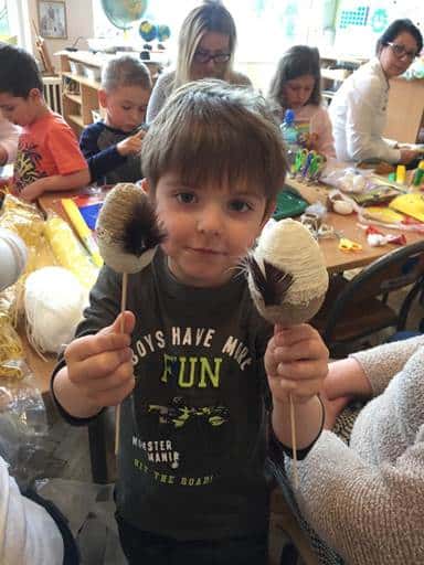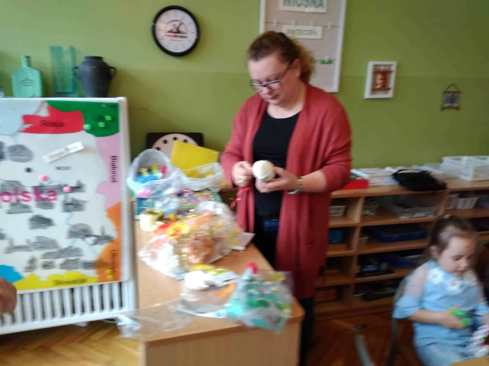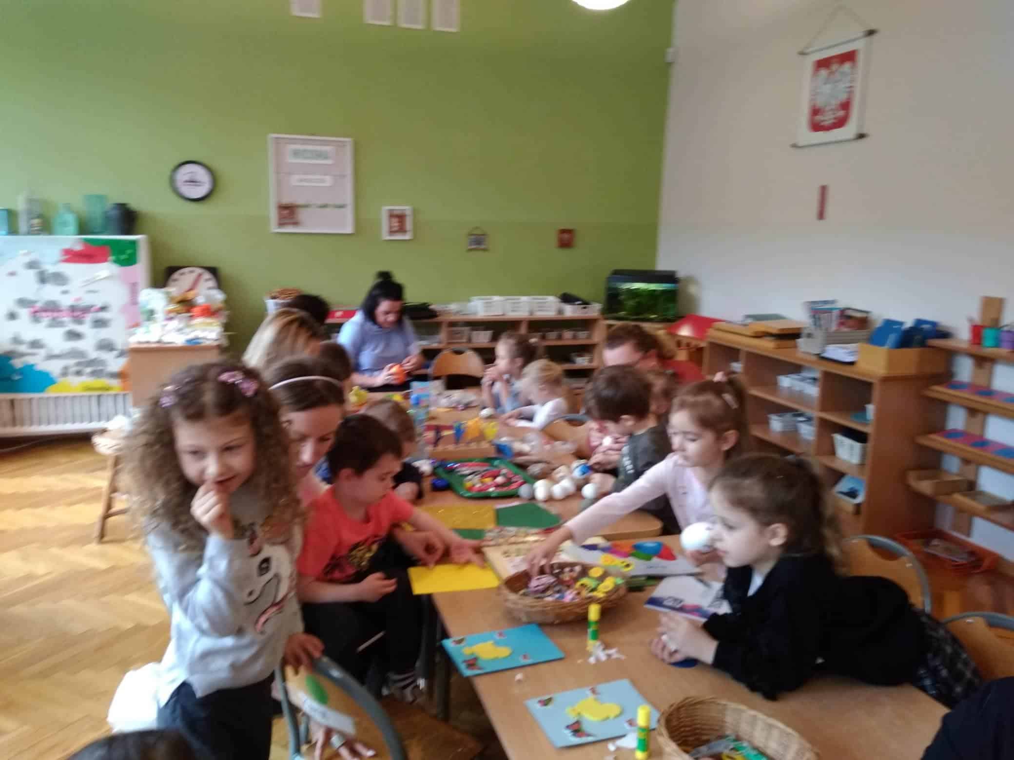 Nasze przedszkole bardzo ceni sobie współpracę z Rodzicami, oraz ich zaangażowanie w proces rozwoju dziecka. Wśród Rodziców największym powodzeniem cieszą się zajęcia w których mogą bezpośrednio uczestniczyć. Warsztaty z Rodzicami to propozycja wspólnej zabawy i nauki z dzieckiem. Proponowane aktywności umożliwiają nawiązanie bezpośrednich relacji z innymi dziećmi i ich Rodzicami, a także pozwalają lepiej poznać środowisko przedszkolne. Aby w przedszkolu zagościła świąteczna atmosfera zorganizowaliśmy dla dzieci, rodziców, oraz innych członków rodzin warsztaty plastyczne Wielkanocne kartki, pisanki, ozdoby. Nasza sala zamieniła się na dwie godziny w pracownię plastyczną, w której działo się wiele ciekawych rzeczy. Babcie, ciocie oraz rodzice odkrywali swoje talenty plastyczne, a dzieci zamieniły się w prawdziwych artystów. Wszyscy pracowali z ogromnym zapałem ale był też i czas na miłe pogawędki. Wszyscy wykazali się dużą kreatywnością i inwencją twórczą. Wykonane prace zostały umieszczone na wystawie przedszkolnej, przez co magia świąt zagościła już w naszym przedszkolu.