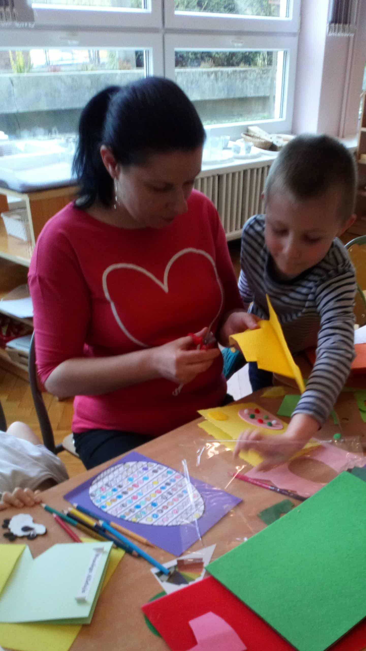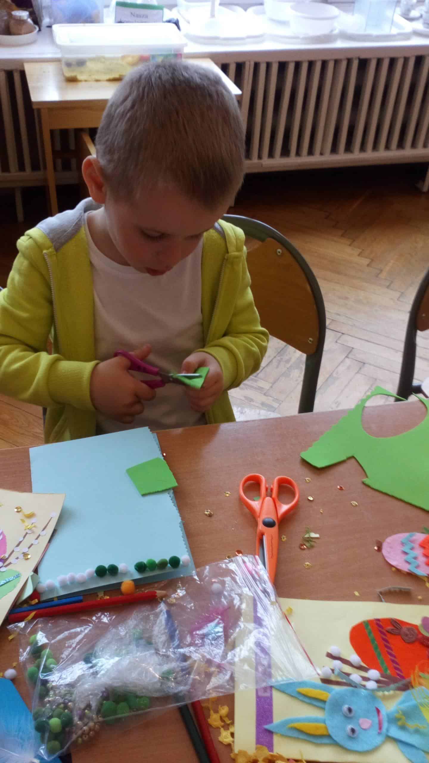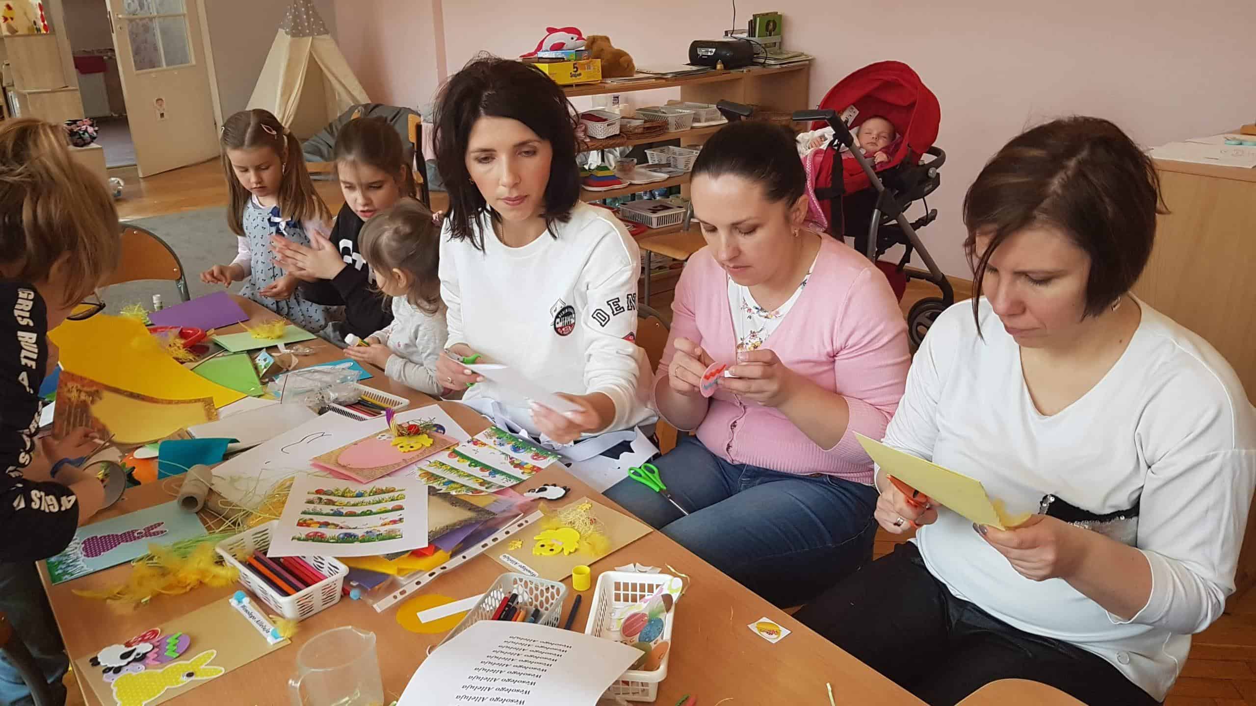 11 kwietnia w naszej grupie odbyły się warsztaty wielkanocne z udziałem rodziców, rodzeństwa a nawet kuzynostwa – Amelii i Wiktorii, które swoimi umiejętnościami przyszły wspierać Maję i Nadię – swoje, dwie nieco młodsze, kuzynki. W repertuarze tegorocznego rękodzieła było tworzenie kartek wielkanocnych za pomocą różnorodnych technik plastycznych. We wspaniałym gronie, miłej, rodzinnej atmosferze, wśród tak wielu utalentowanych gości, pomysłów było bardzo wiele. Nasza sala przedszkolna zamieniła się na ten czas w jedną, wielką pracownię plastyczną, w której działo się wiele ciekawych rzeczy. Rodzice odkrywali swoje talenty plastyczne a dzieci zamieniły się w prawdziwych artystów. Wszyscy pracowali z ogromnym zapałem, ale był też i czas na miłe pogawędki:) Powstało bardzo dużo pięknych i niepowtarzalnych dekoracji świątecznych w postaci wyjątkowych karteczek wielkanocnych.