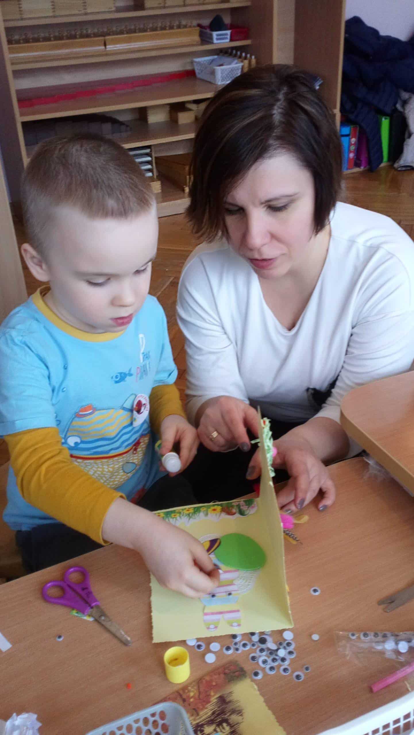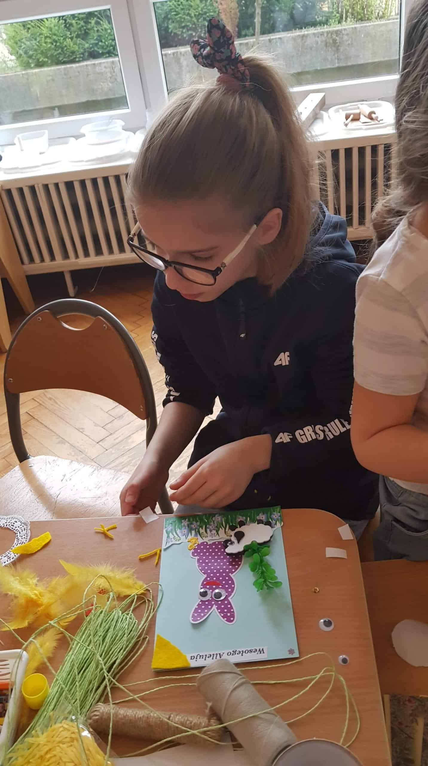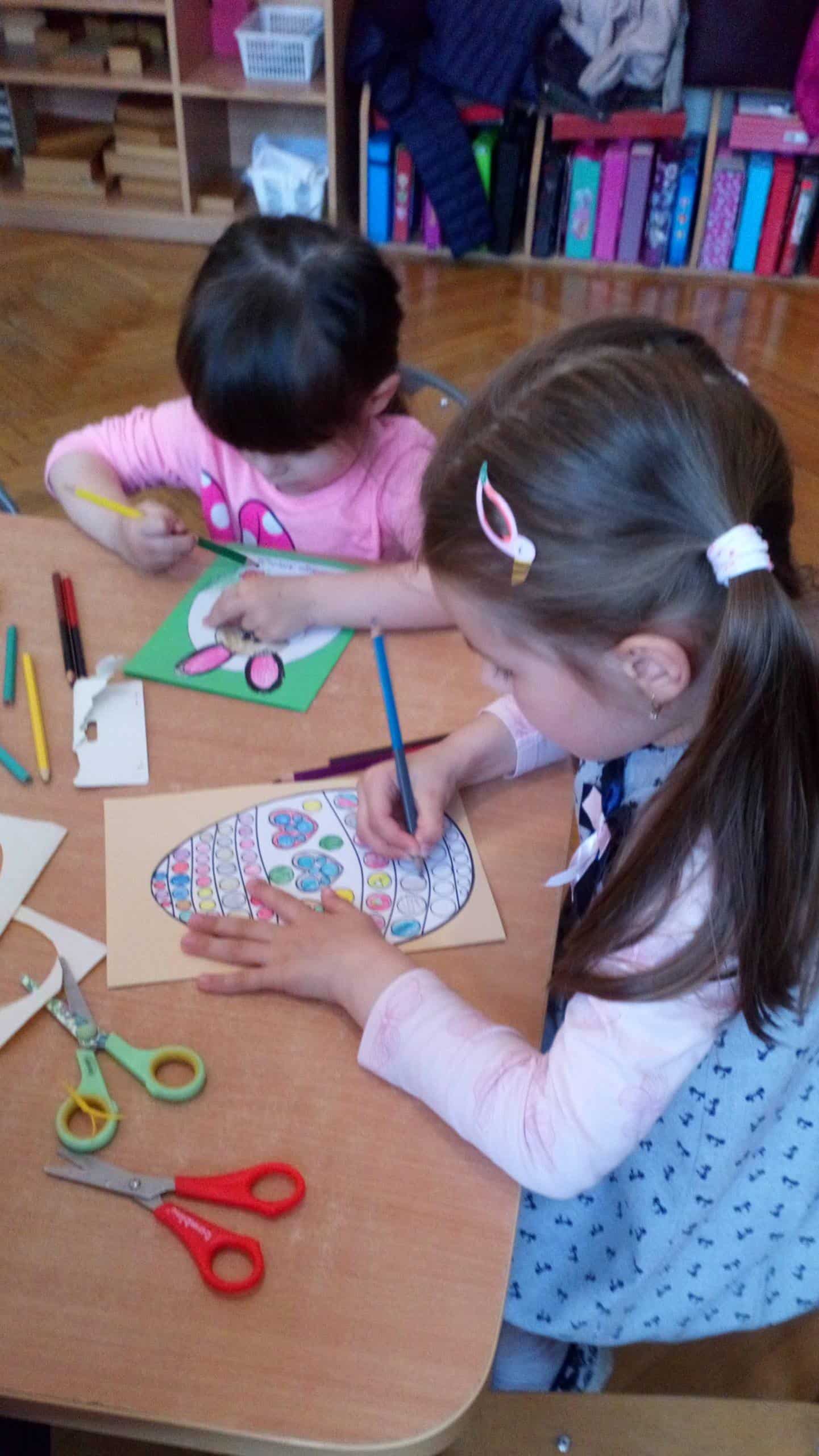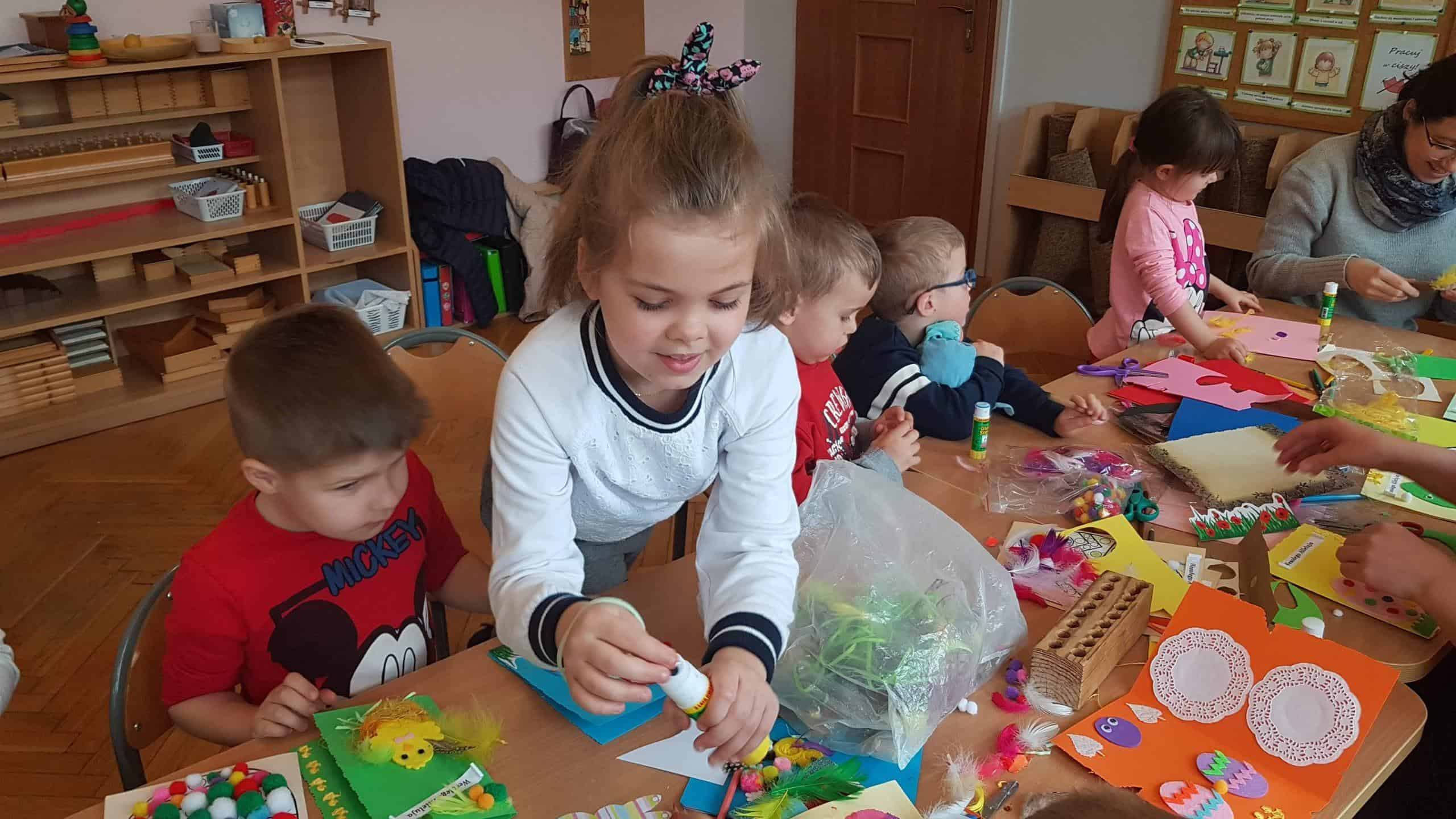 11 kwietnia w naszej grupie odbyły się warsztaty wielkanocne z udziałem rodziców, rodzeństwa a nawet kuzynostwa – Amelii i Wiktorii, które swoimi umiejętnościami przyszły wspierać Maję i Nadię – swoje, dwie nieco młodsze, kuzynki. W repertuarze tegorocznego rękodzieła było tworzenie kartek wielkanocnych za pomocą różnorodnych technik plastycznych. We wspaniałym gronie, miłej, rodzinnej atmosferze, wśród tak wielu utalentowanych gości, pomysłów było bardzo wiele. Nasza sala przedszkolna zamieniła się na ten czas w jedną, wielką pracownię plastyczną, w której działo się wiele ciekawych rzeczy. Rodzice odkrywali swoje talenty plastyczne a dzieci zamieniły się w prawdziwych artystów. Wszyscy pracowali z ogromnym zapałem, ale był też i czas na miłe pogawędki:) Powstało bardzo dużo pięknych i niepowtarzalnych dekoracji świątecznych w postaci wyjątkowych karteczek wielkanocnych.